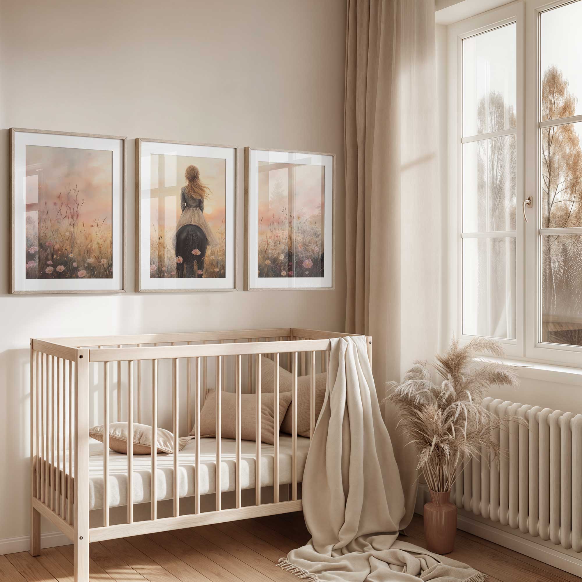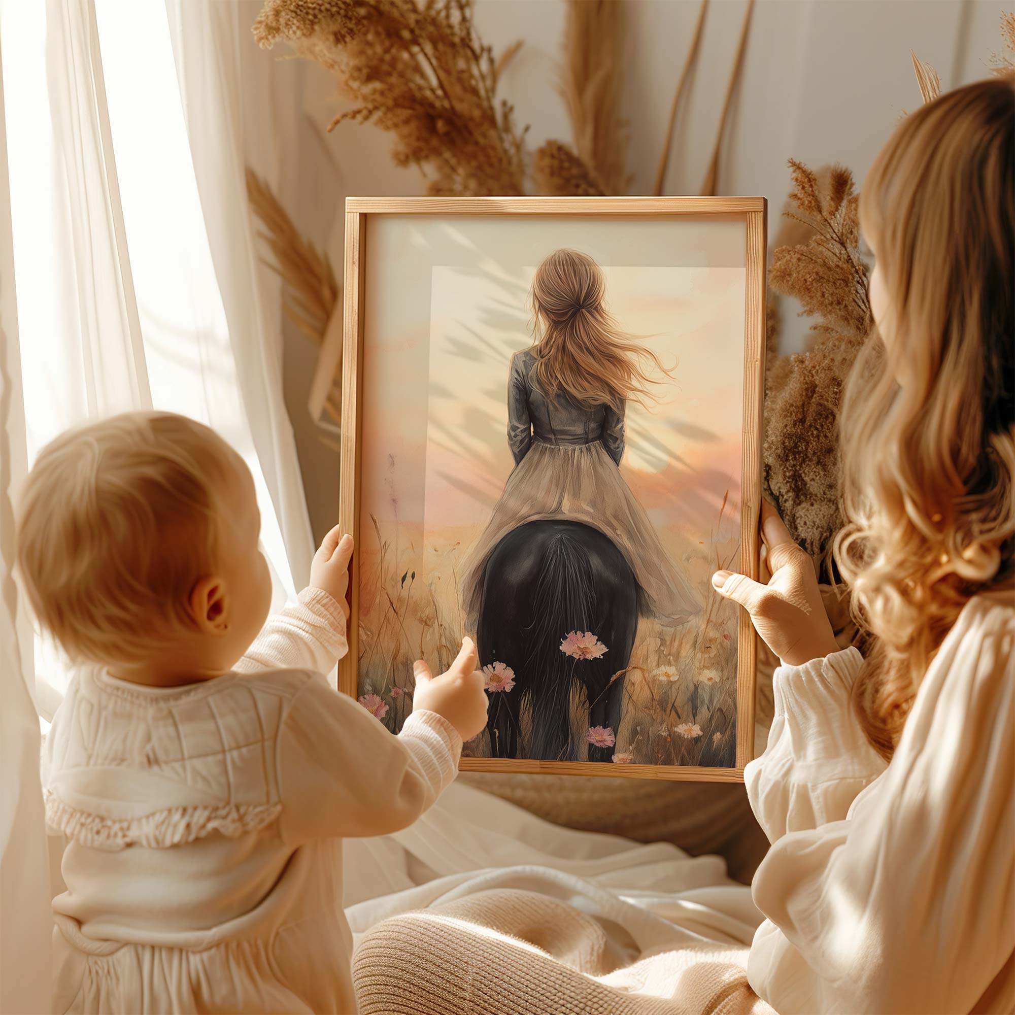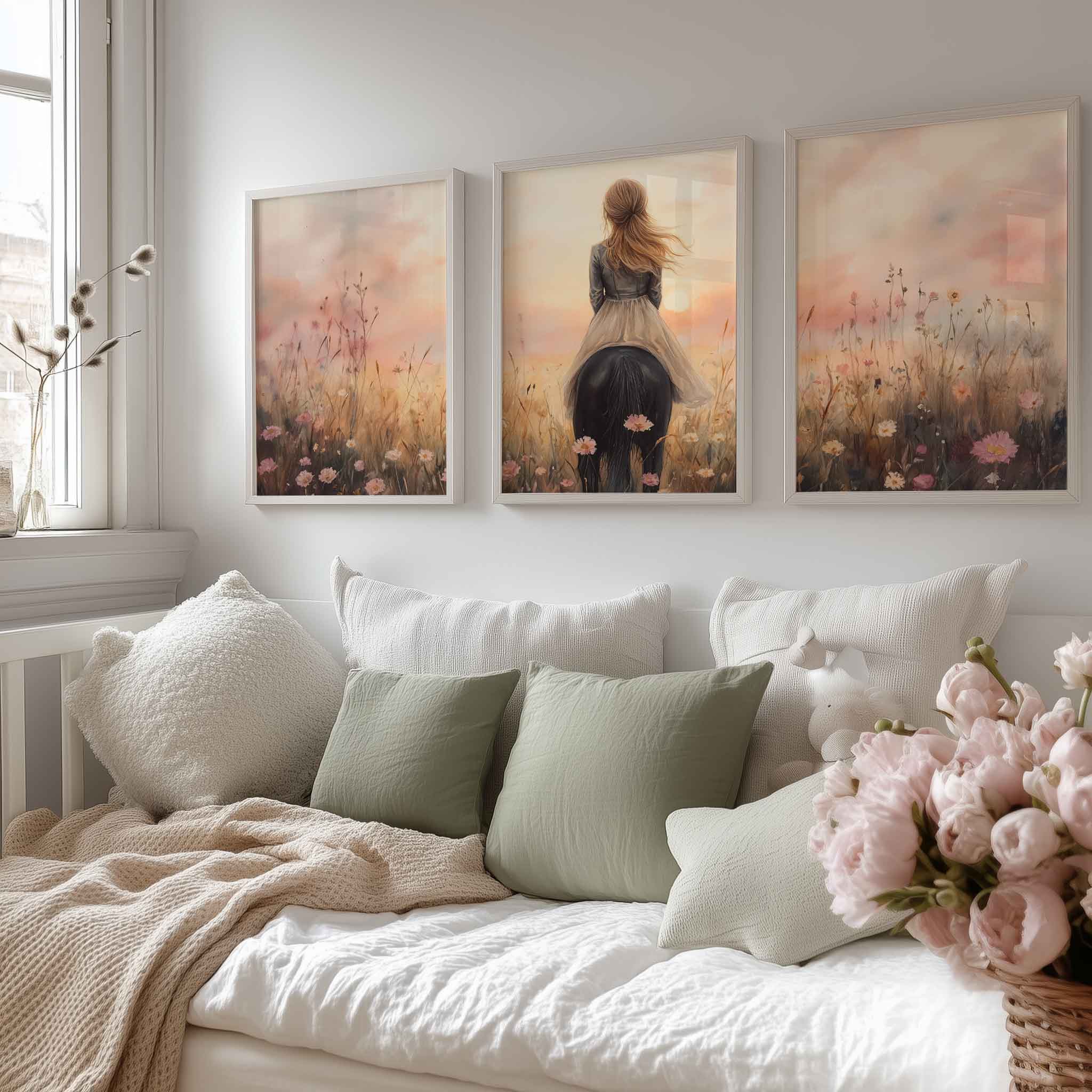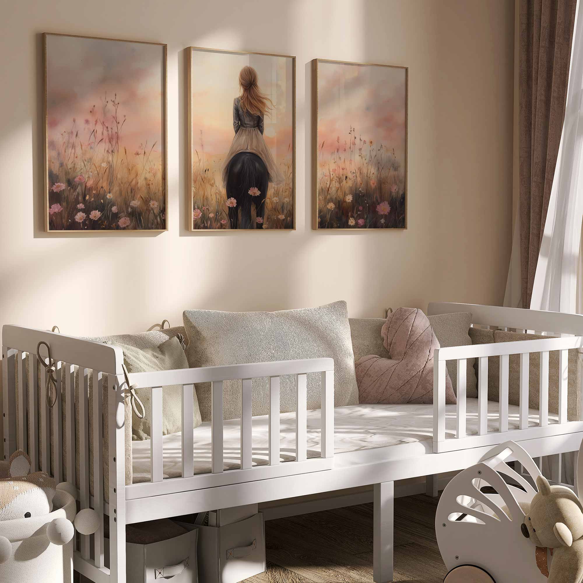 Terug naar collectie Posters Zacht Dromerig Paard in Bloemenveld