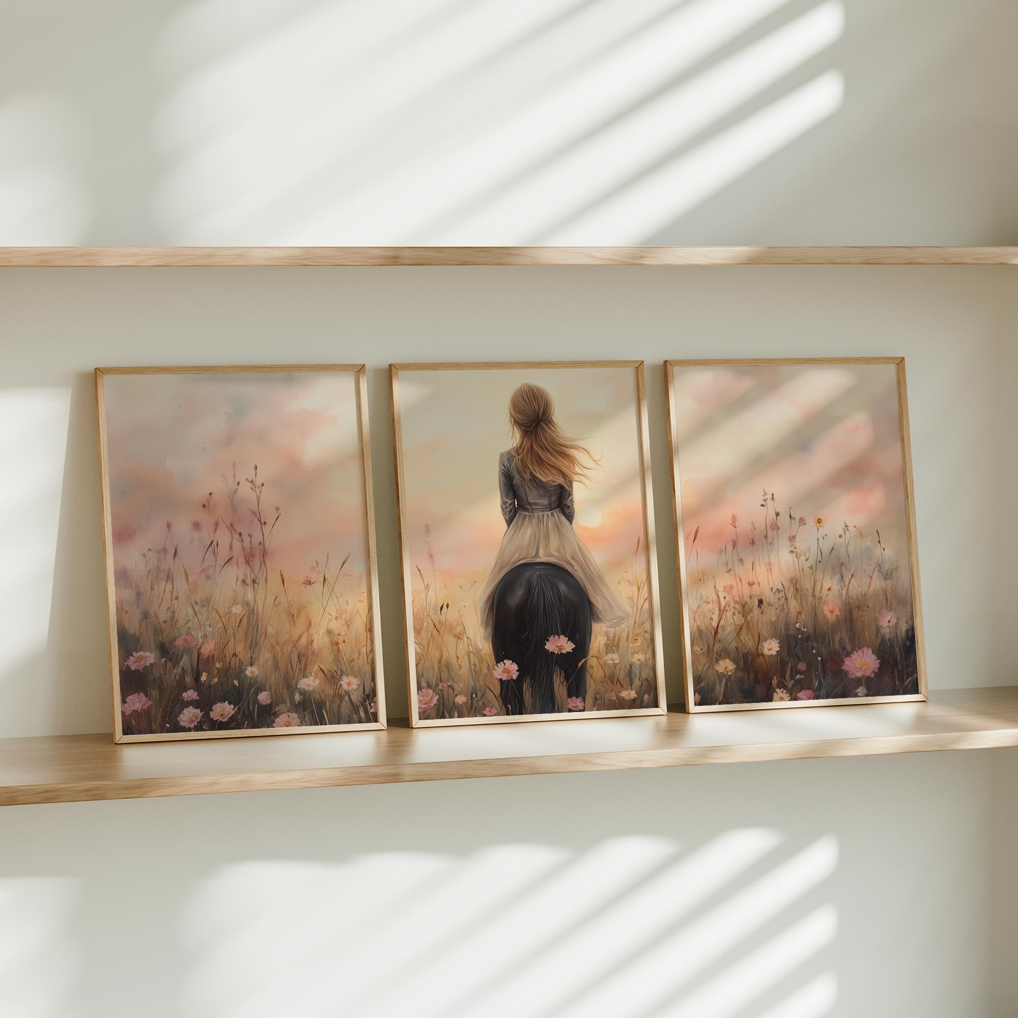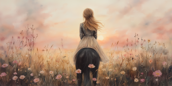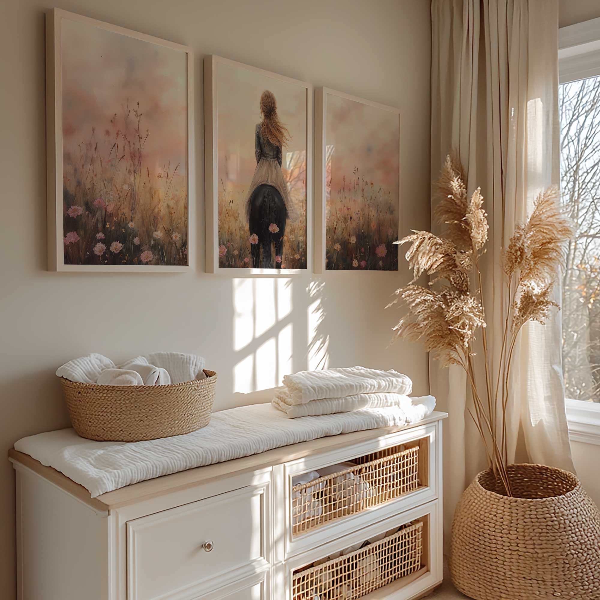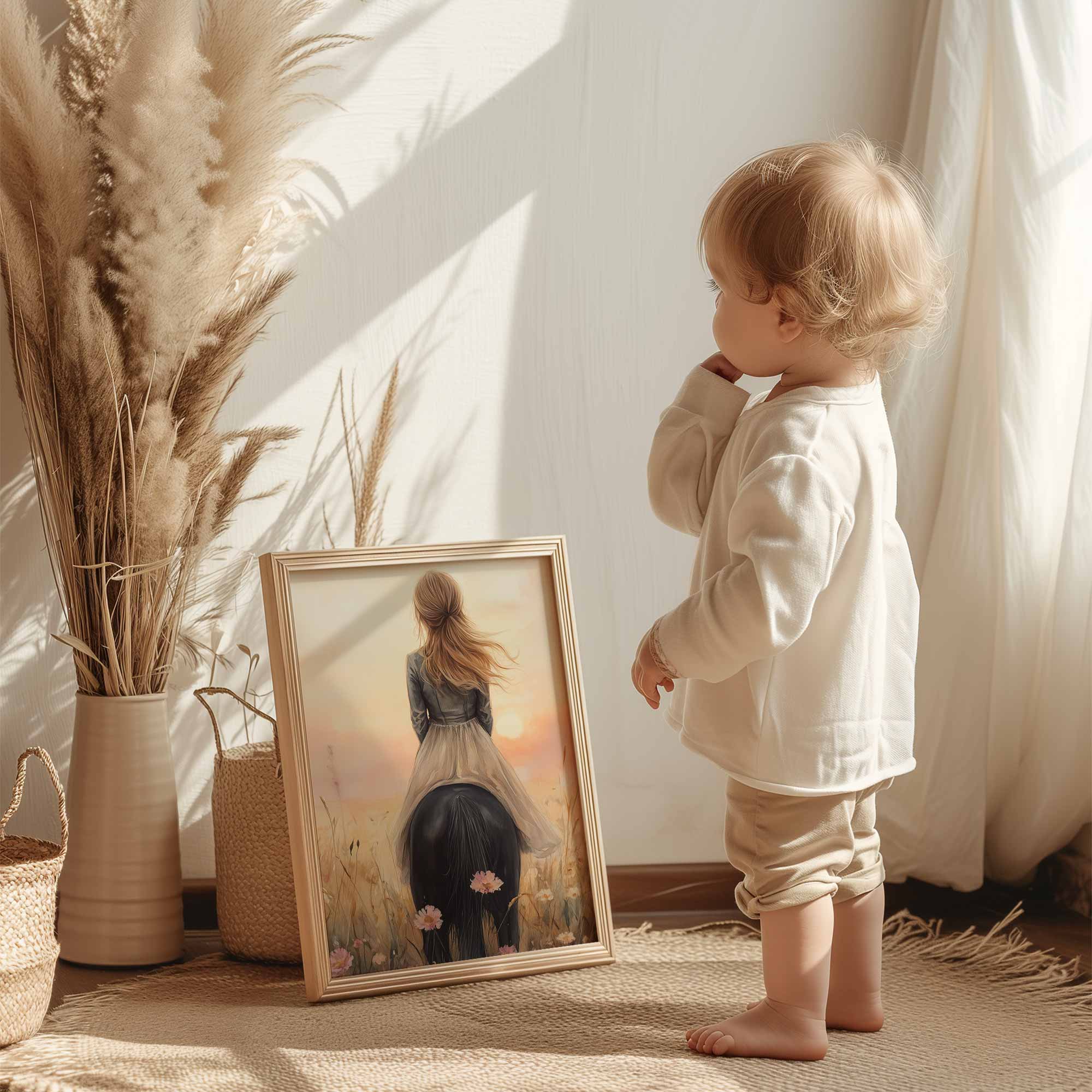 Terug naar collectie Posters Zacht Dromerig Paard in Bloemenveld