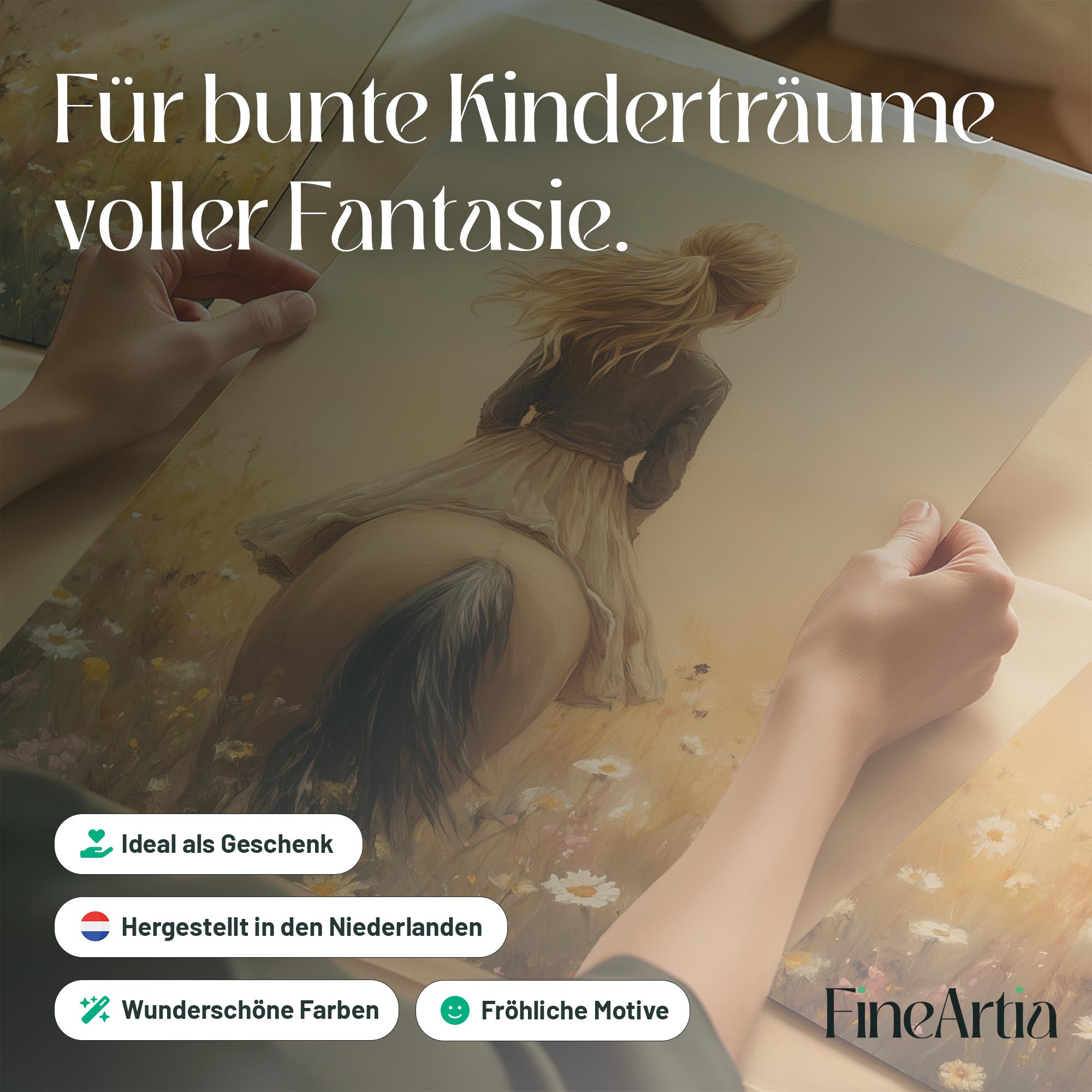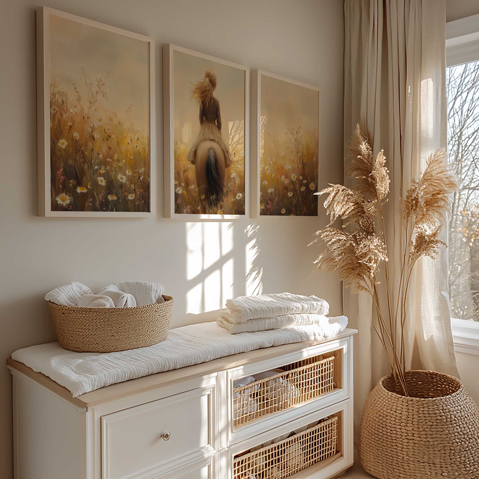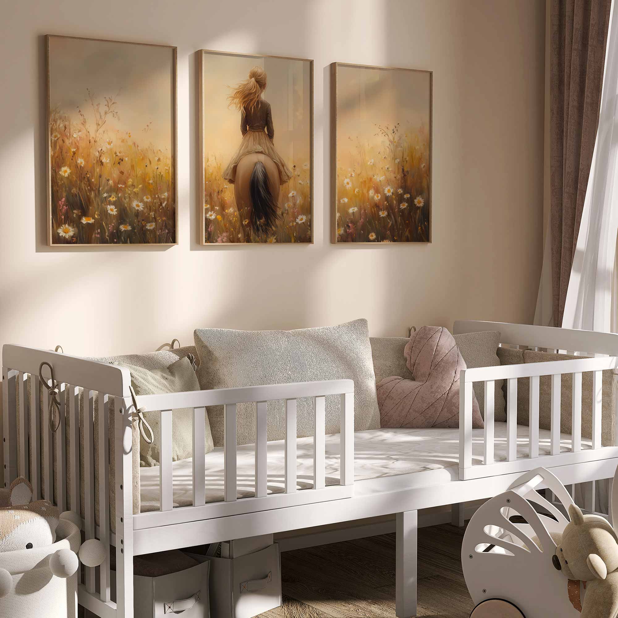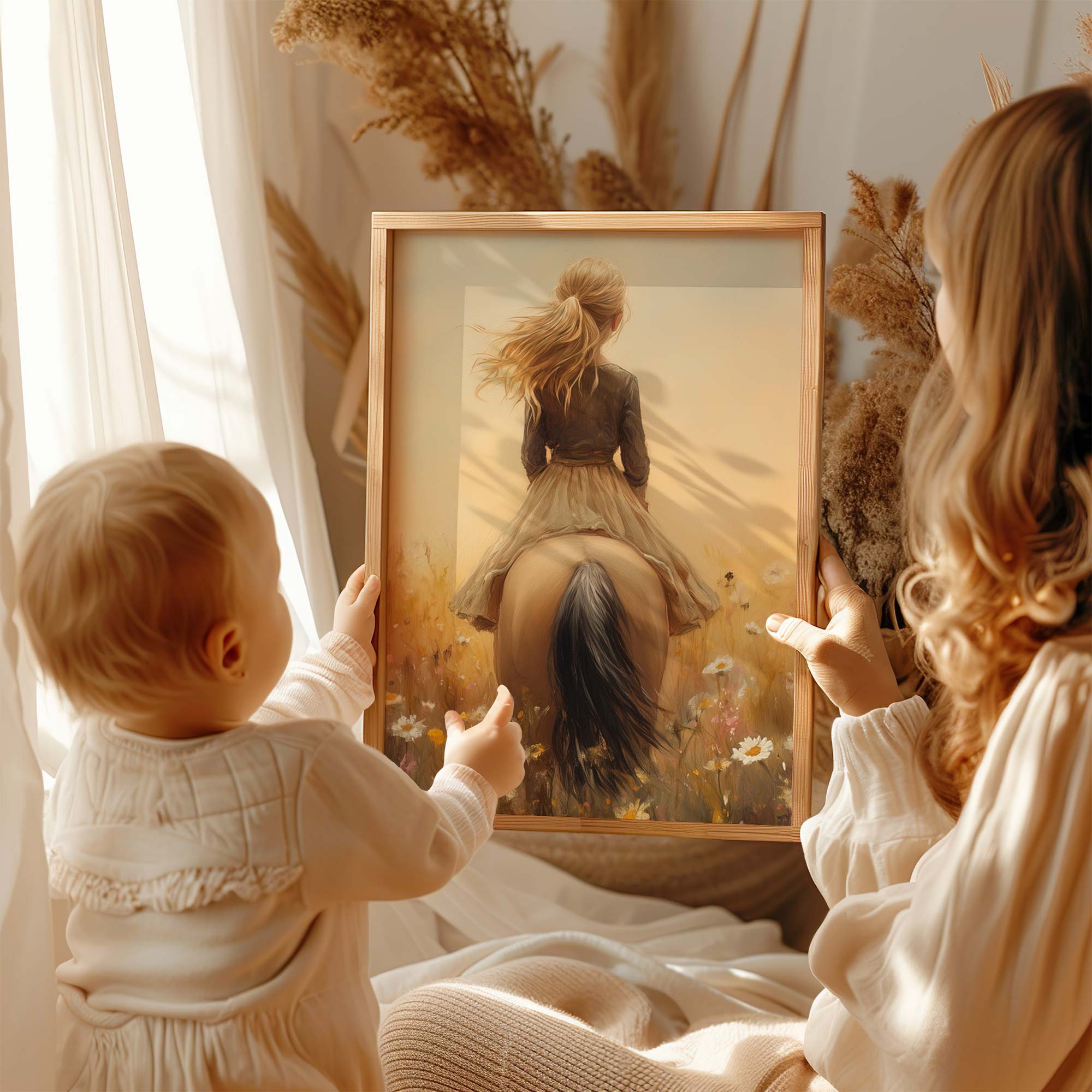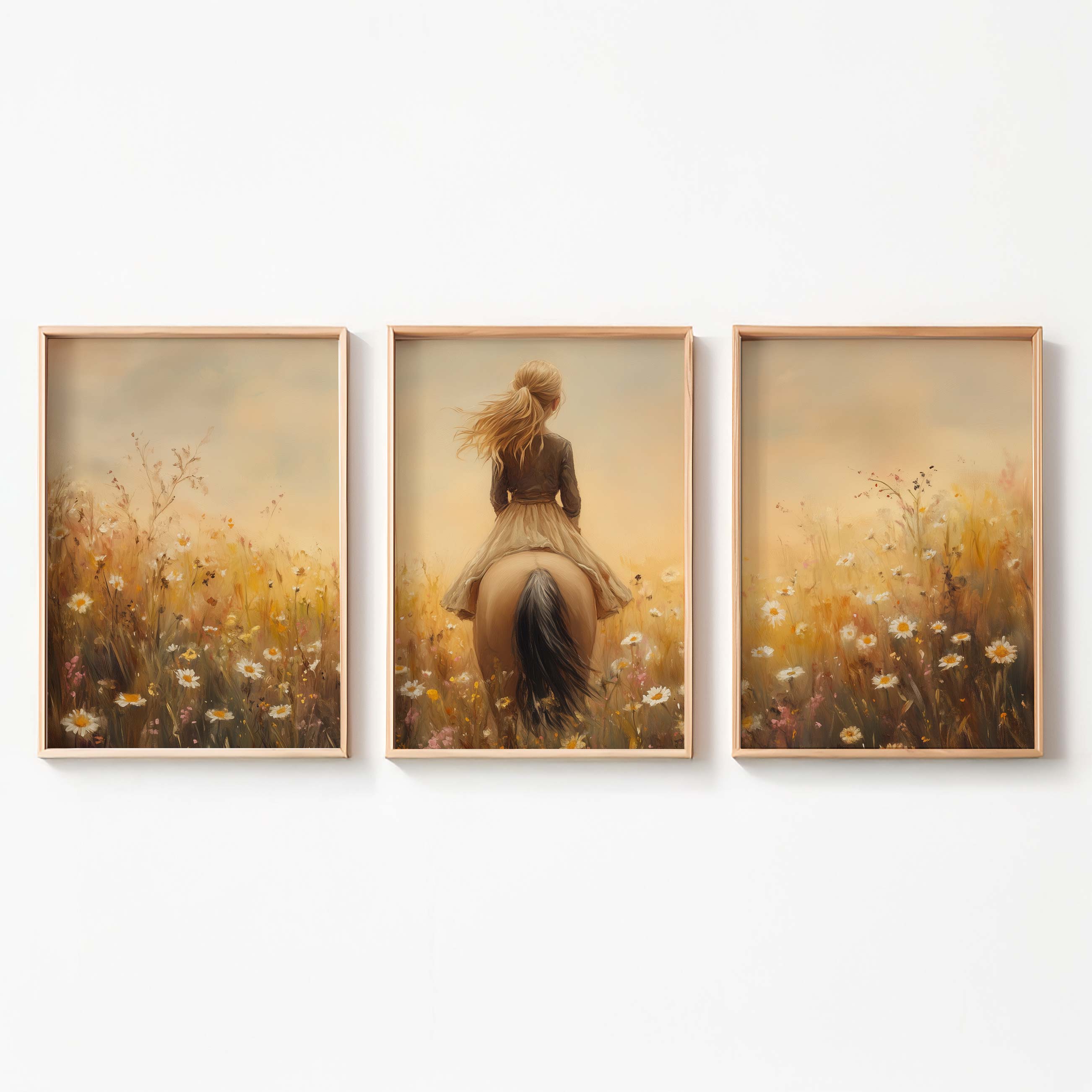 Zacht Dromerig Tafereel: Vrouw te Paard in Bloemenveld