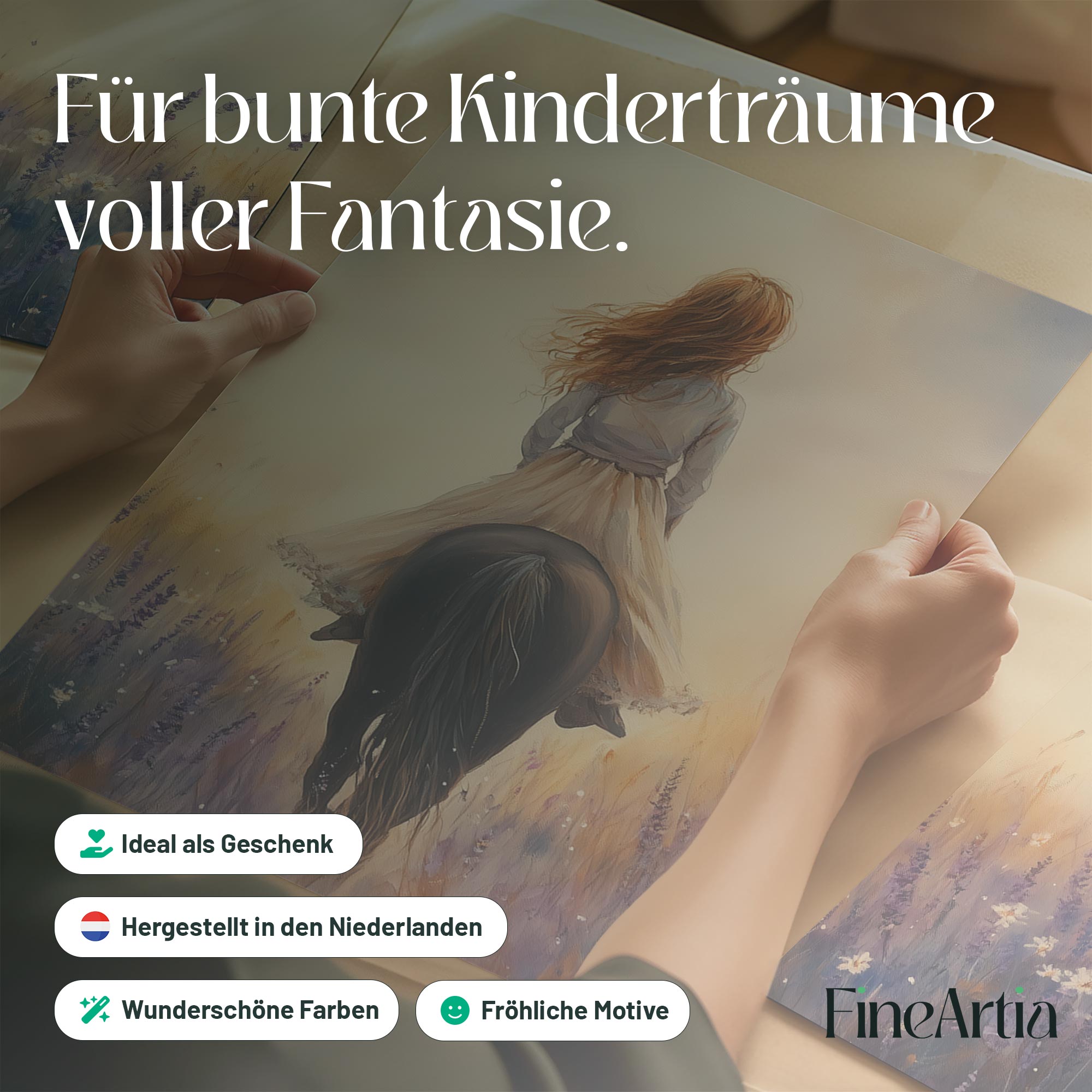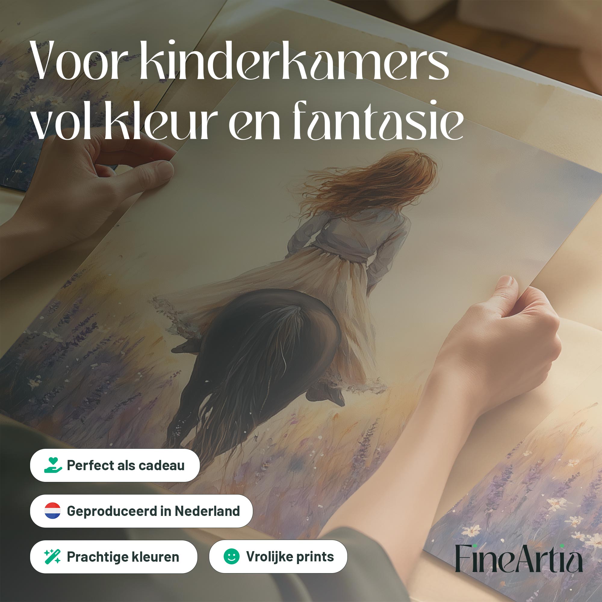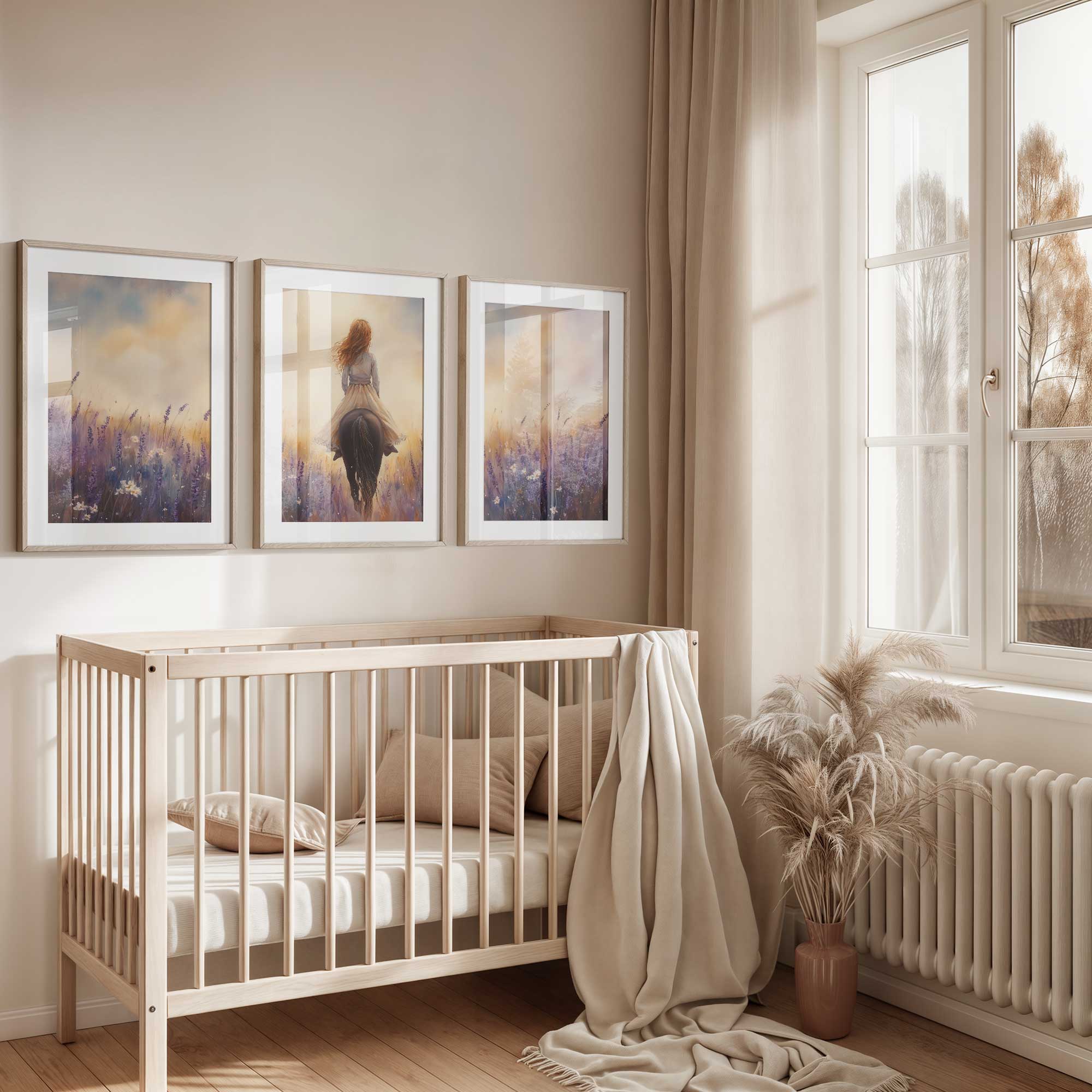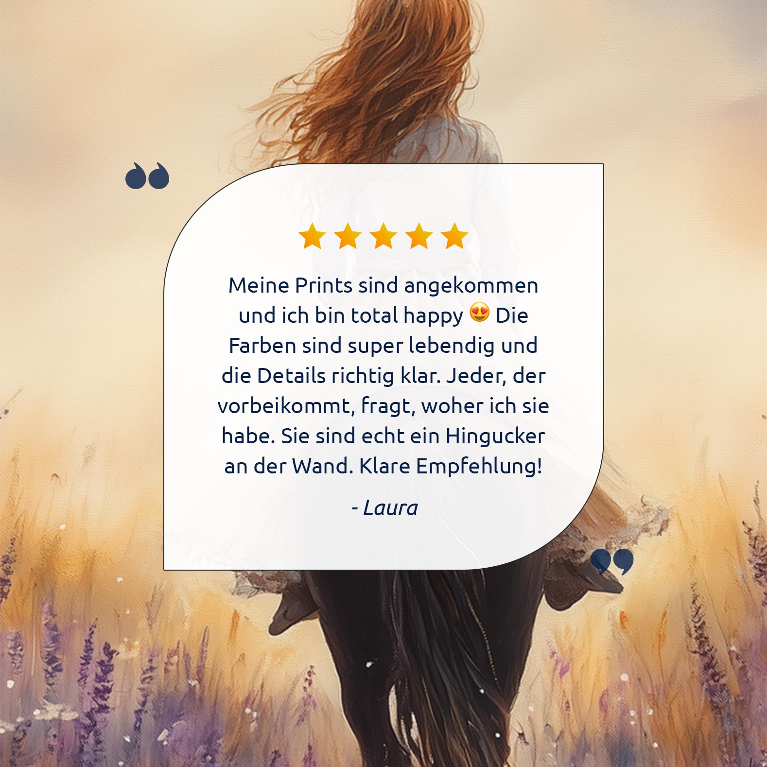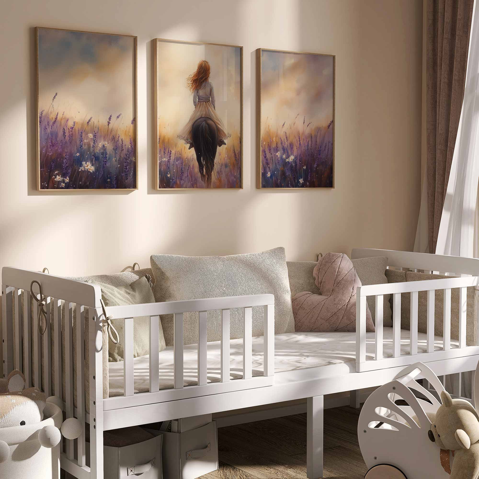 Terug naar collectie Posters Zacht Droombeeld: Vrouw te Paard in Bloemenveld