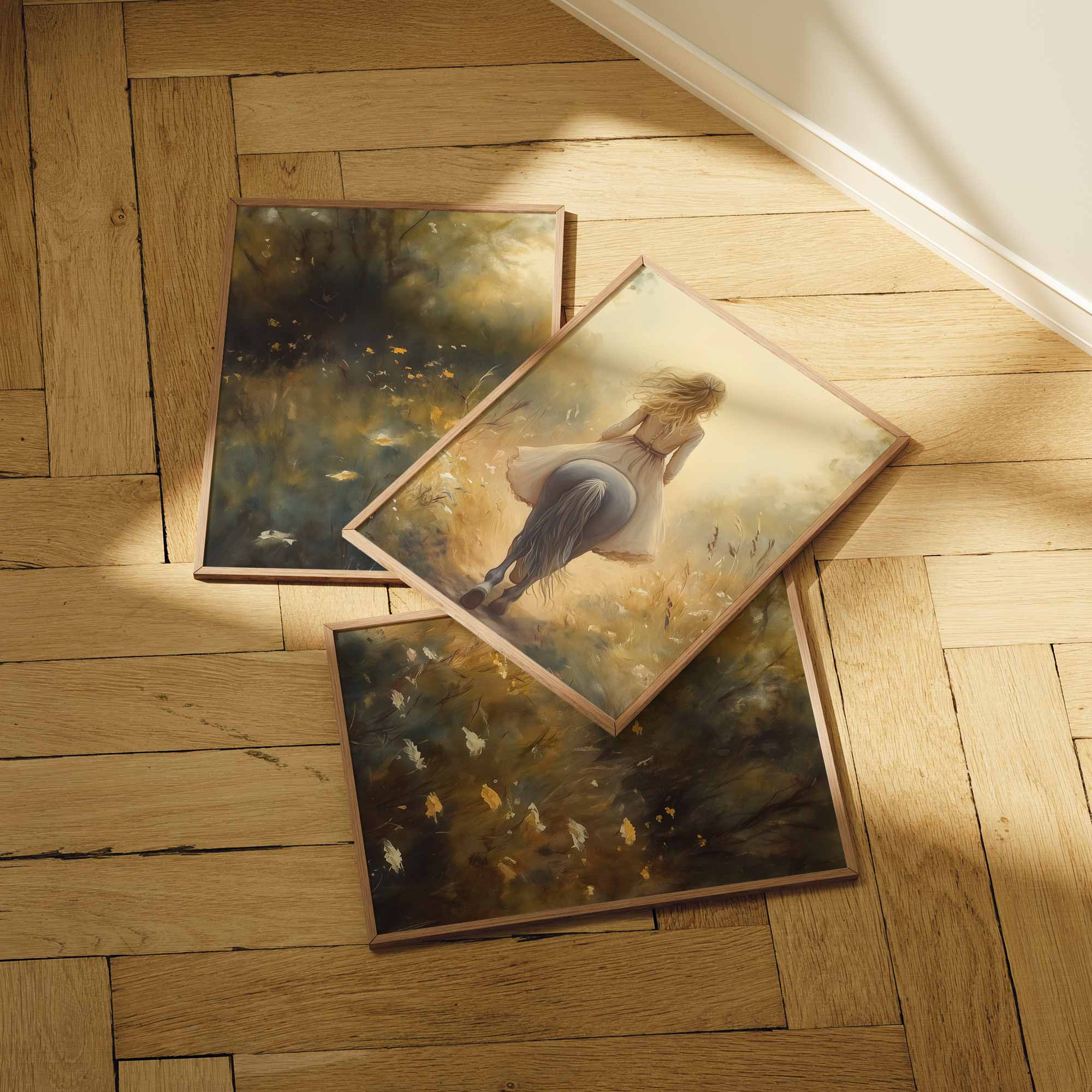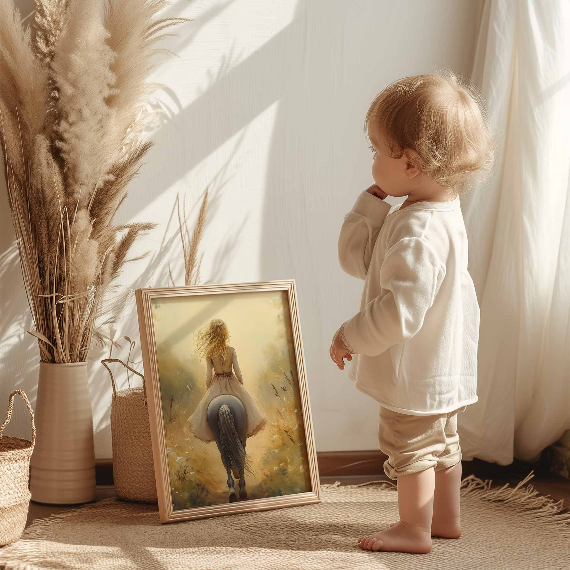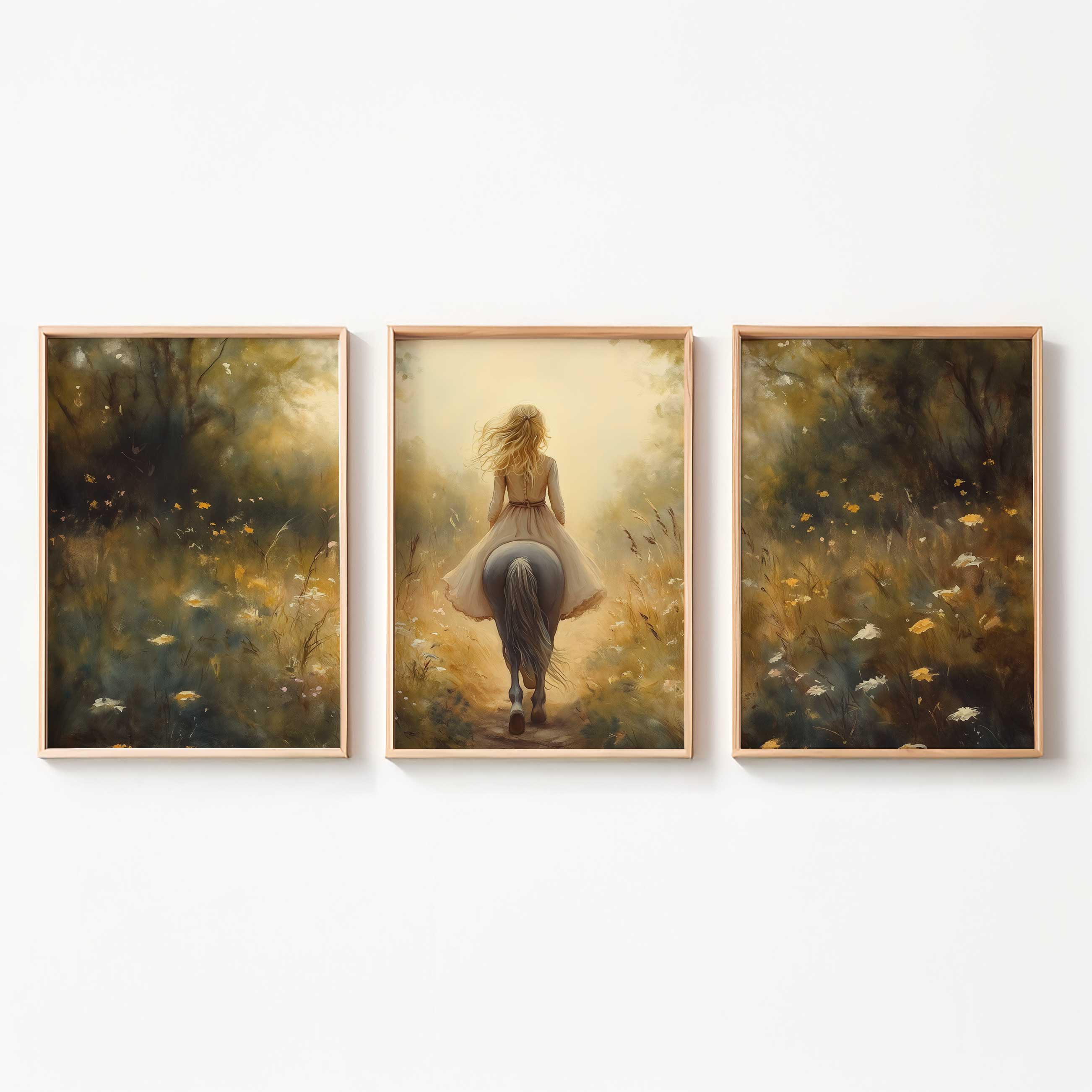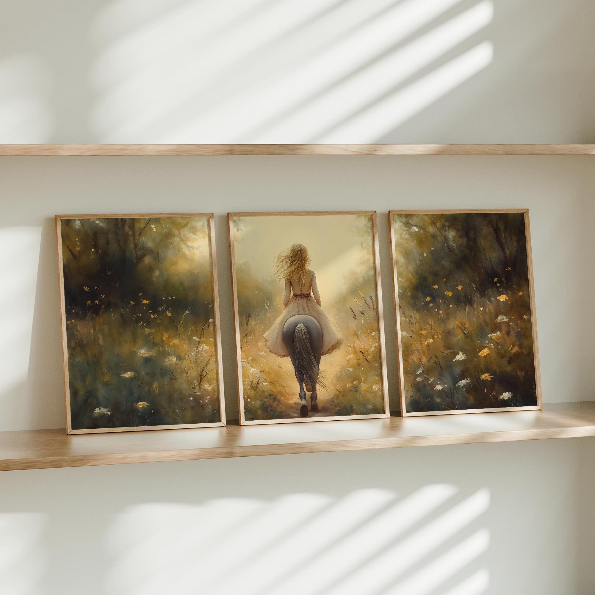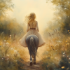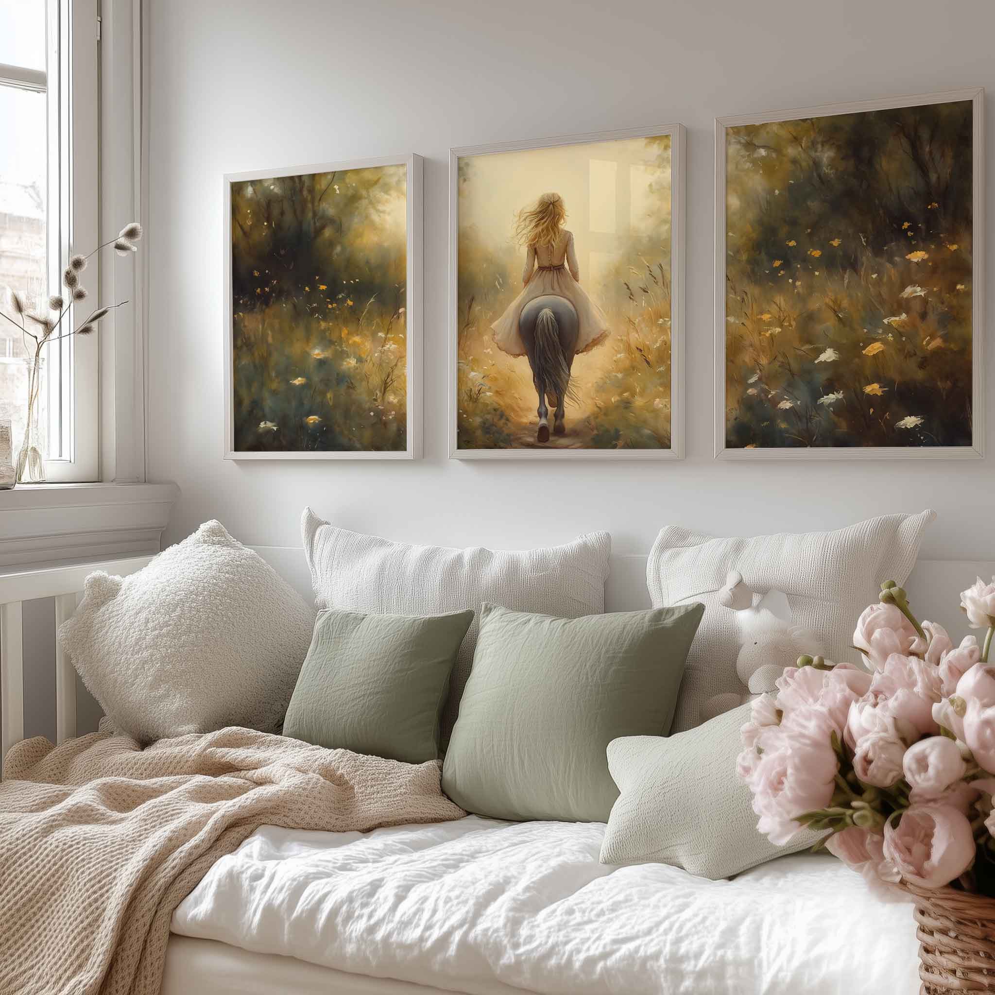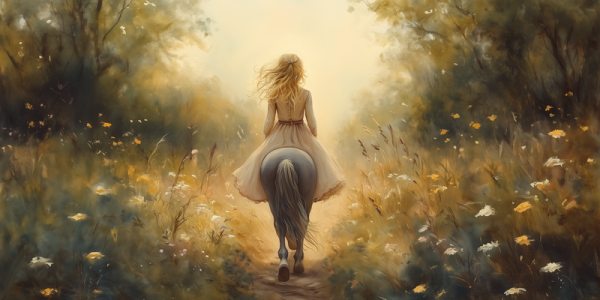 Zacht Droomlandschap: Dame te Paard in Bloemenveld