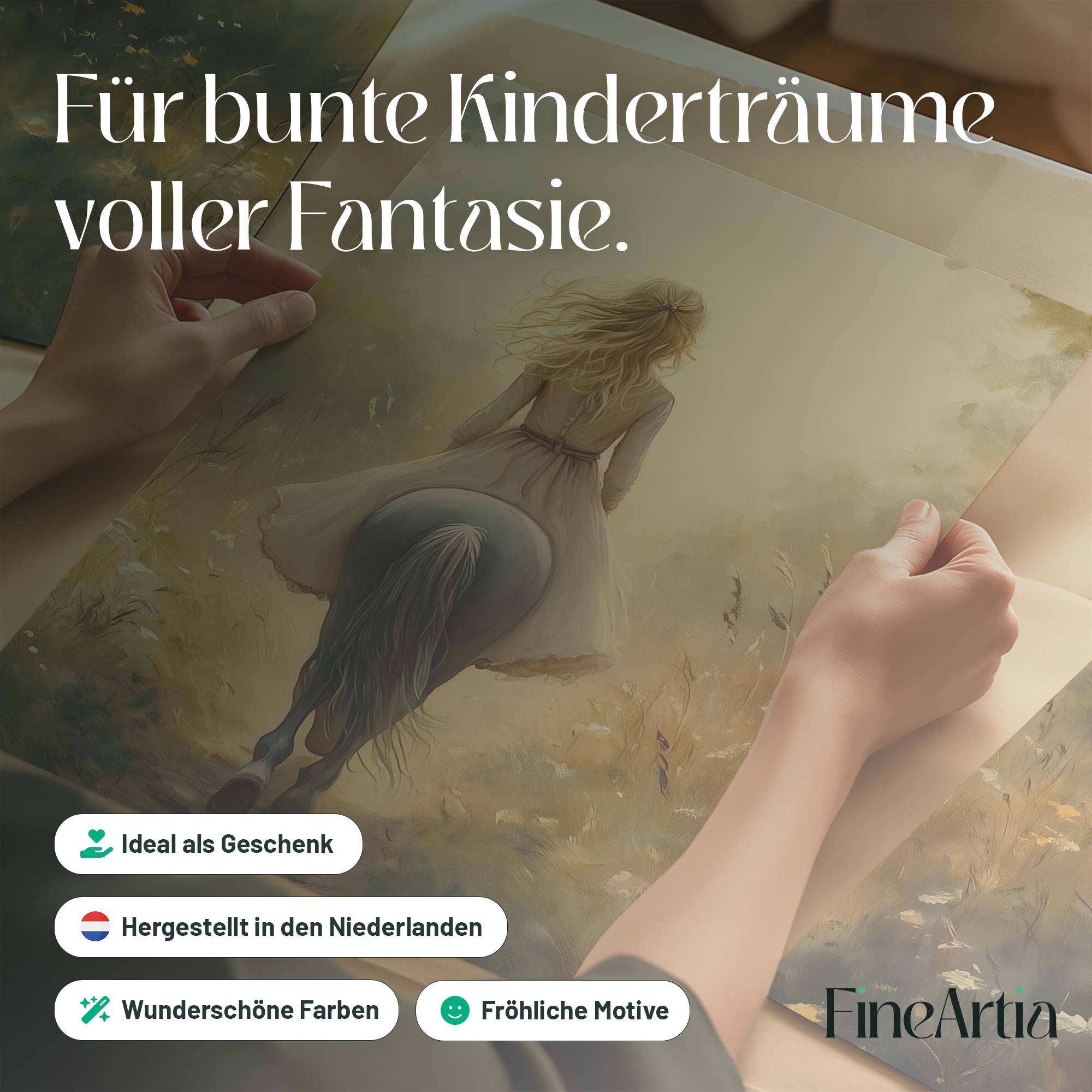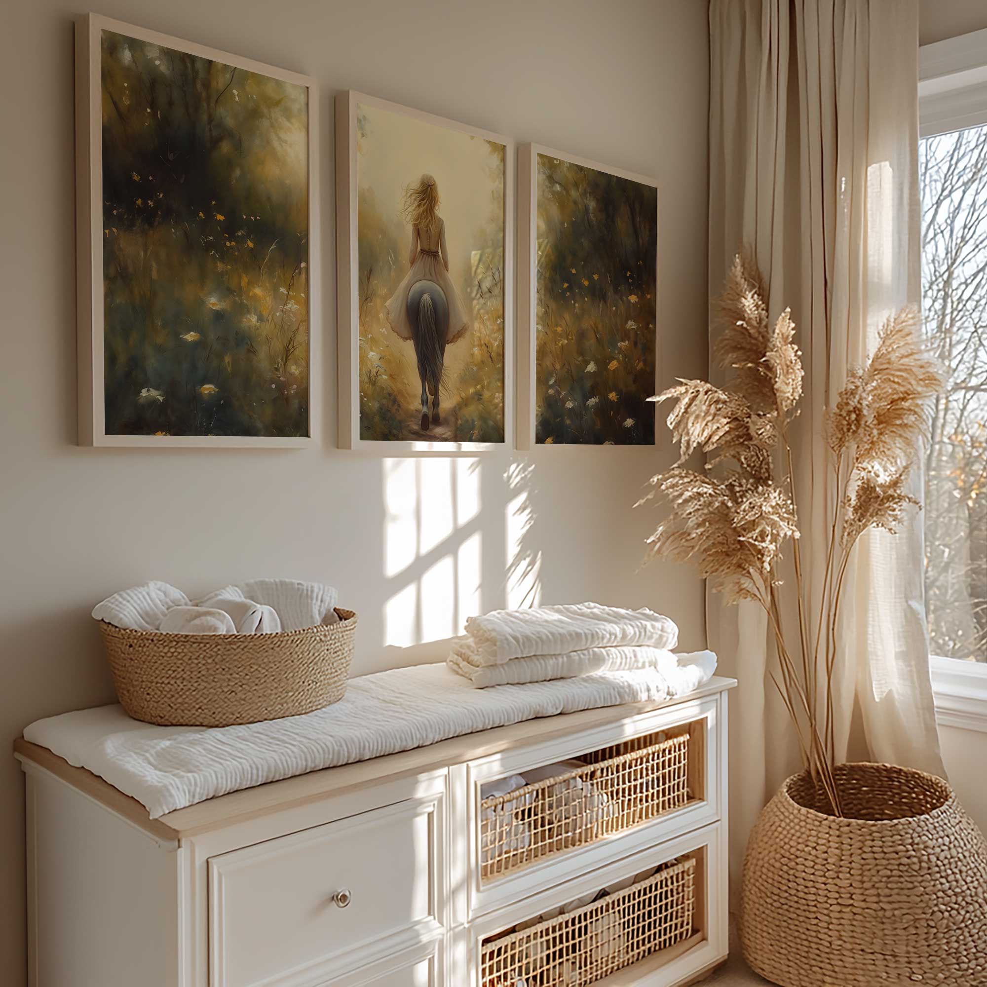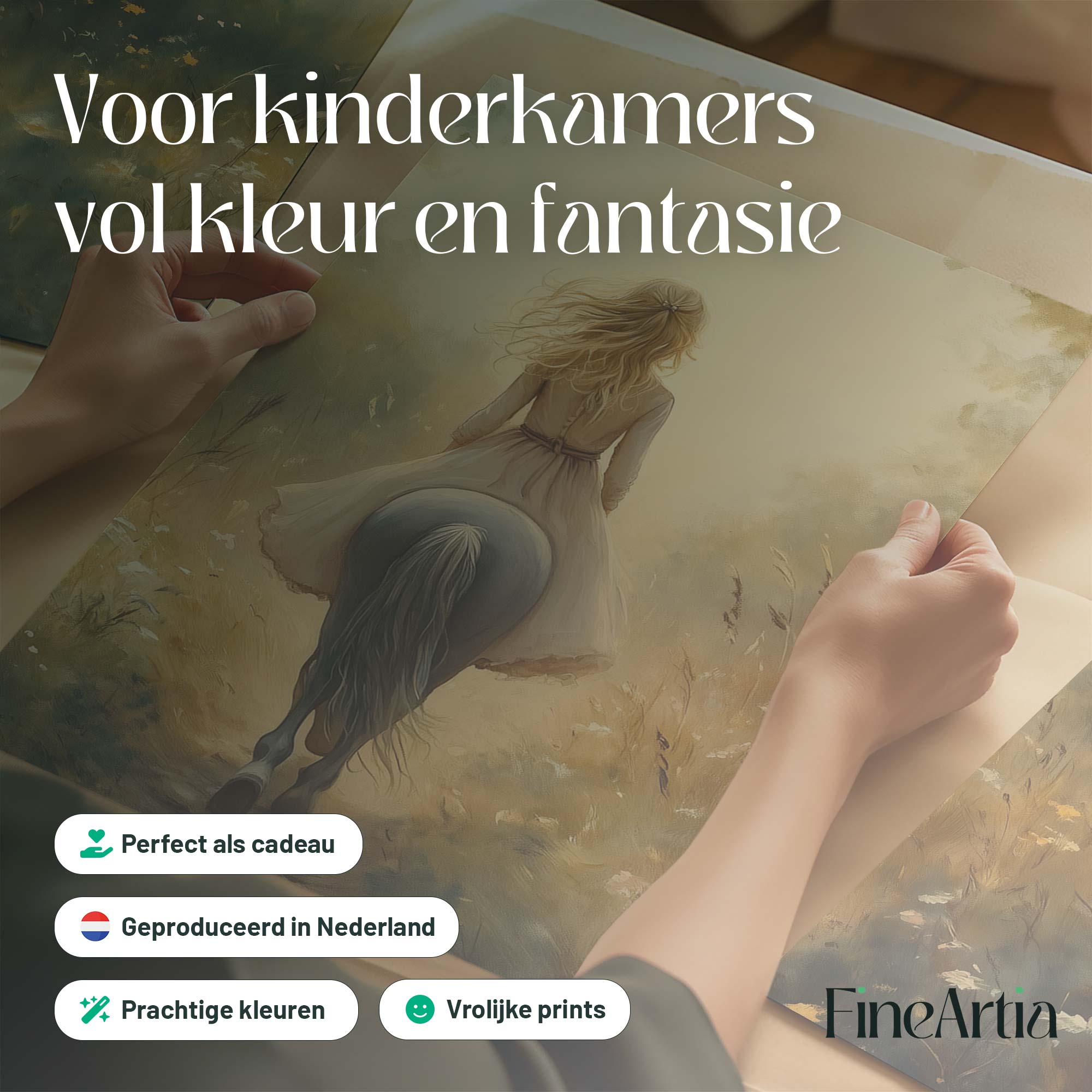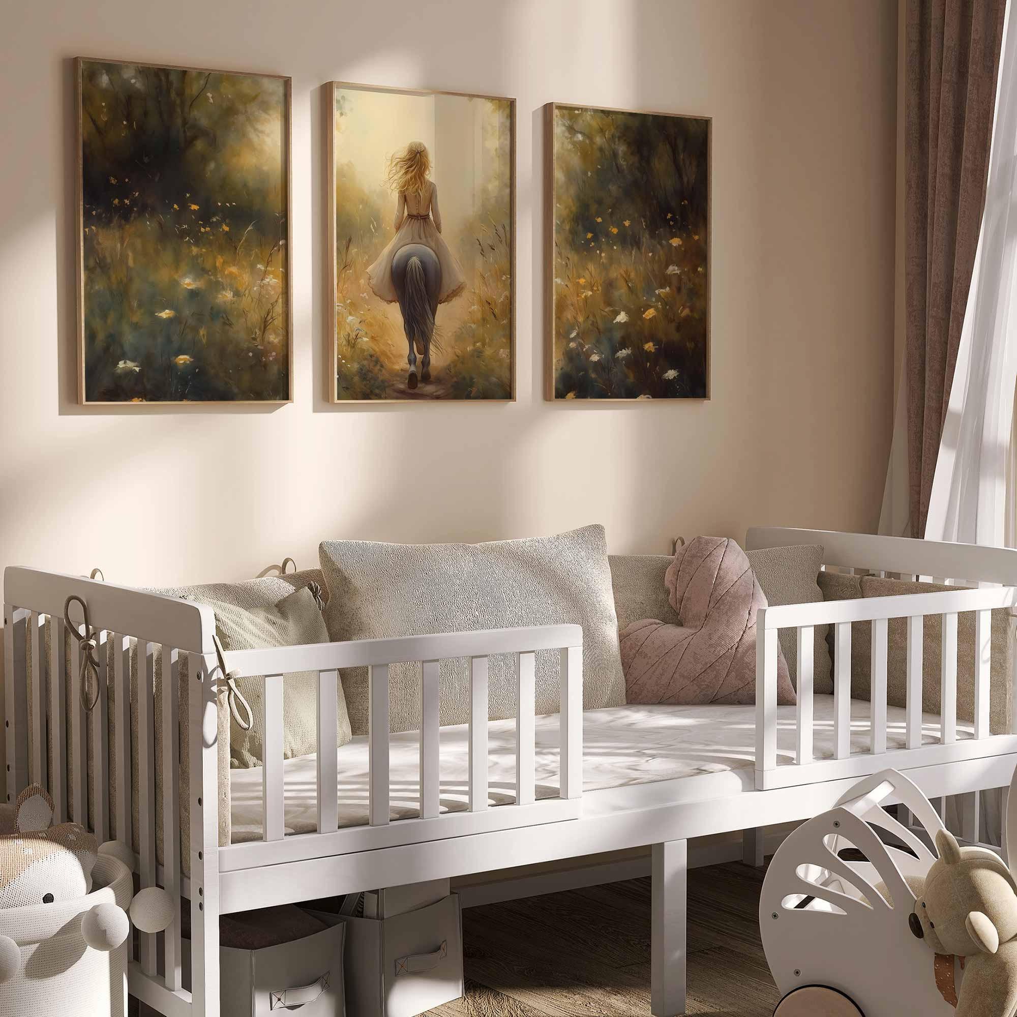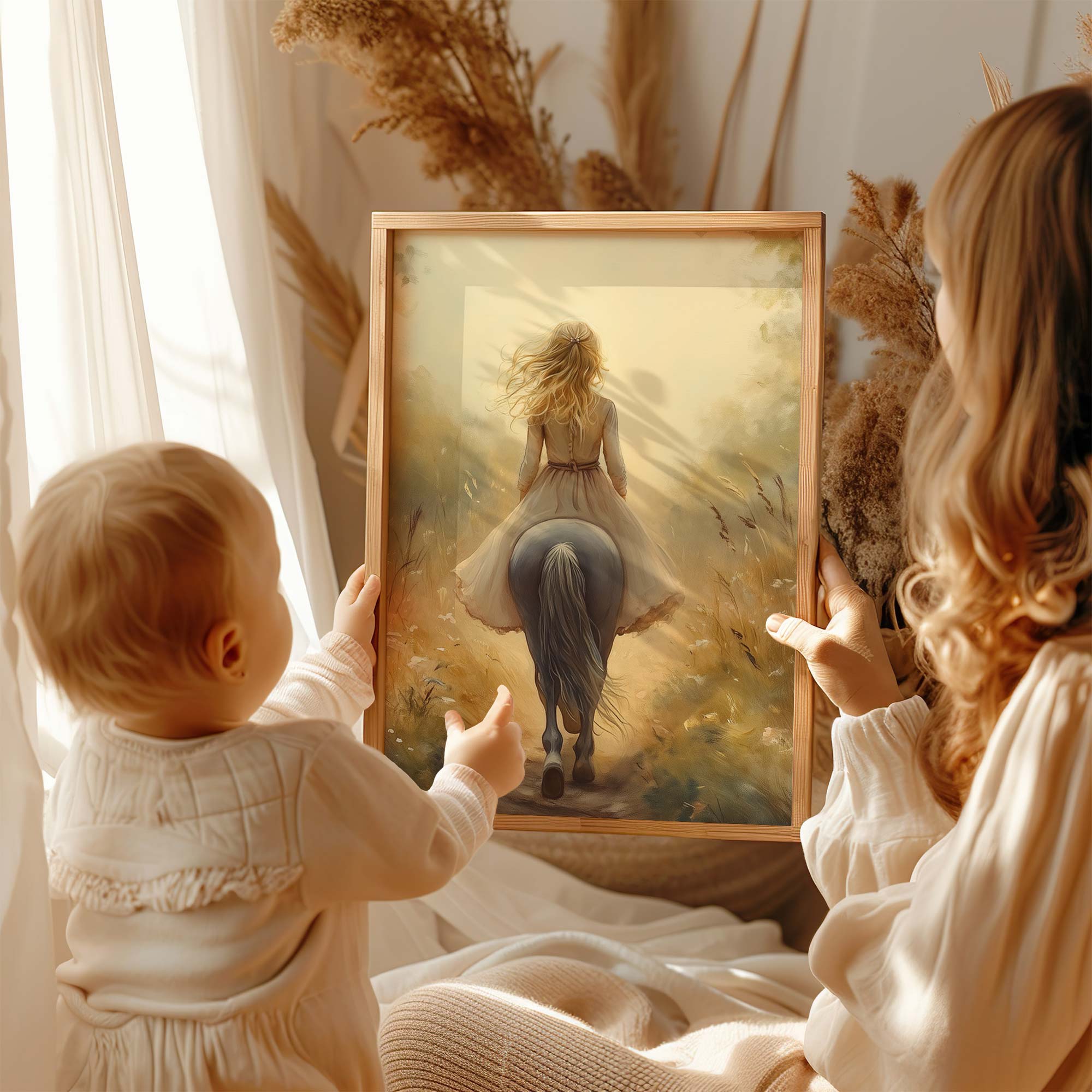 Zacht Droomlandschap: Dame te Paard in Bloemenveld