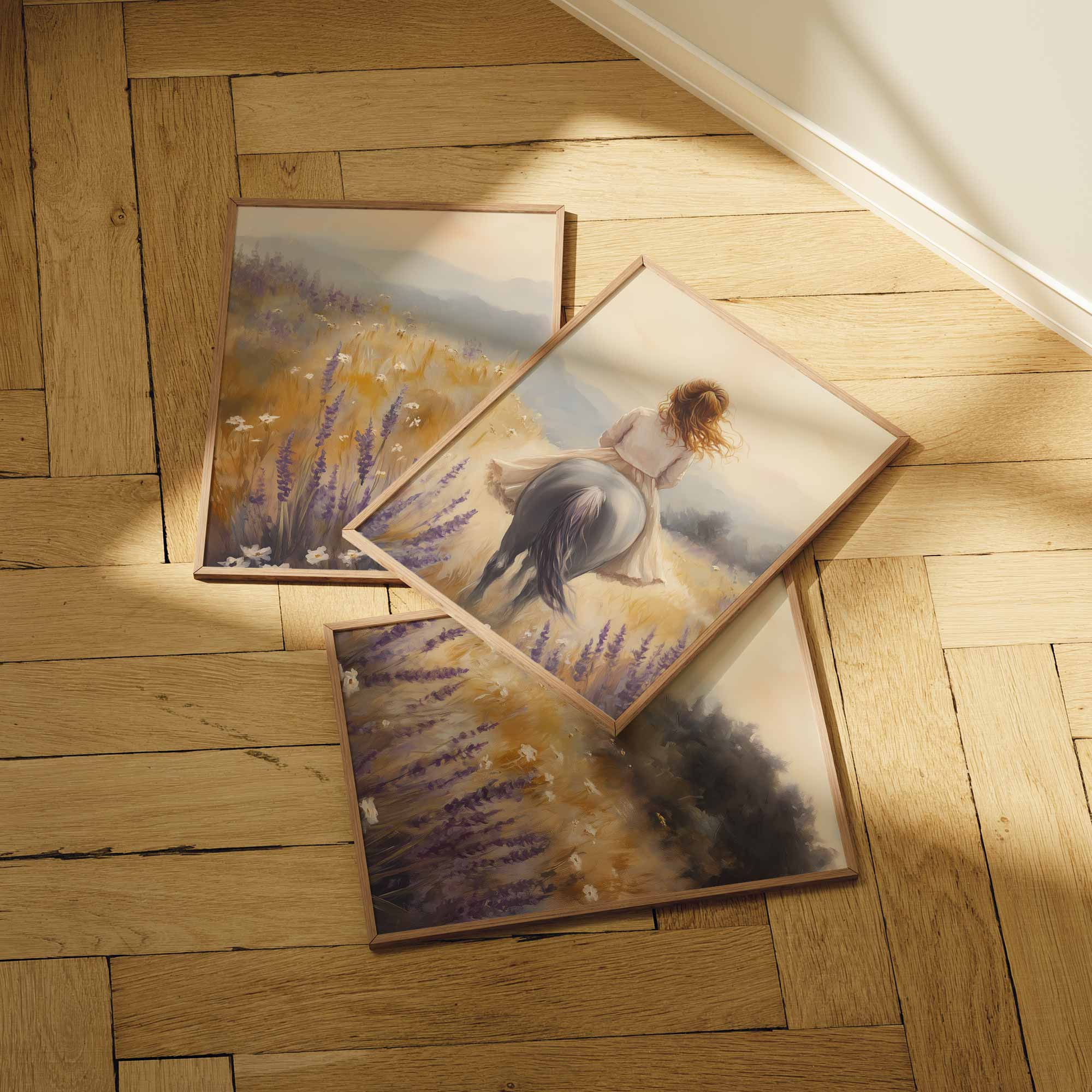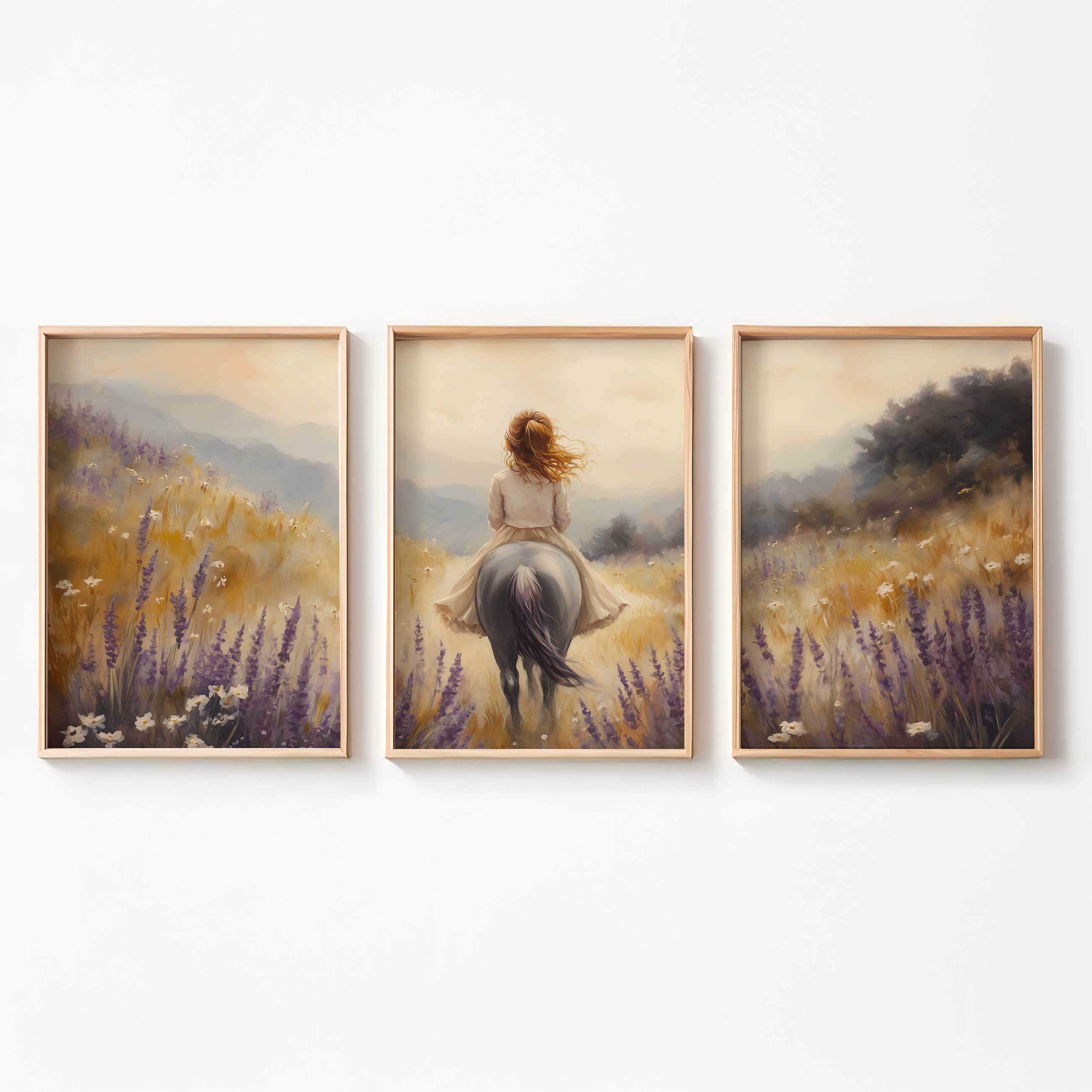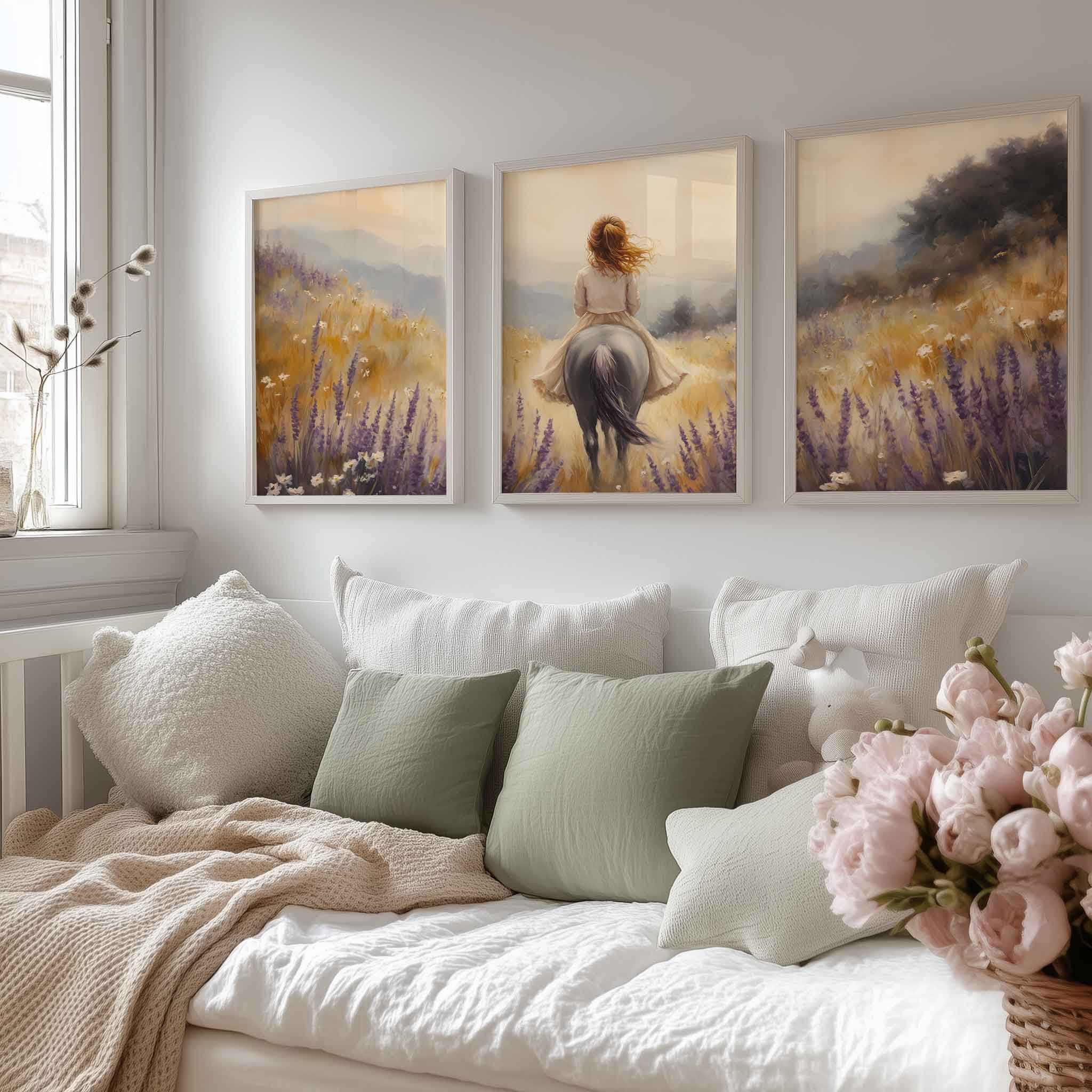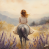 Terug naar collectie Posters Zacht Droomlandschap: Dame te Paard in Bloemenveld