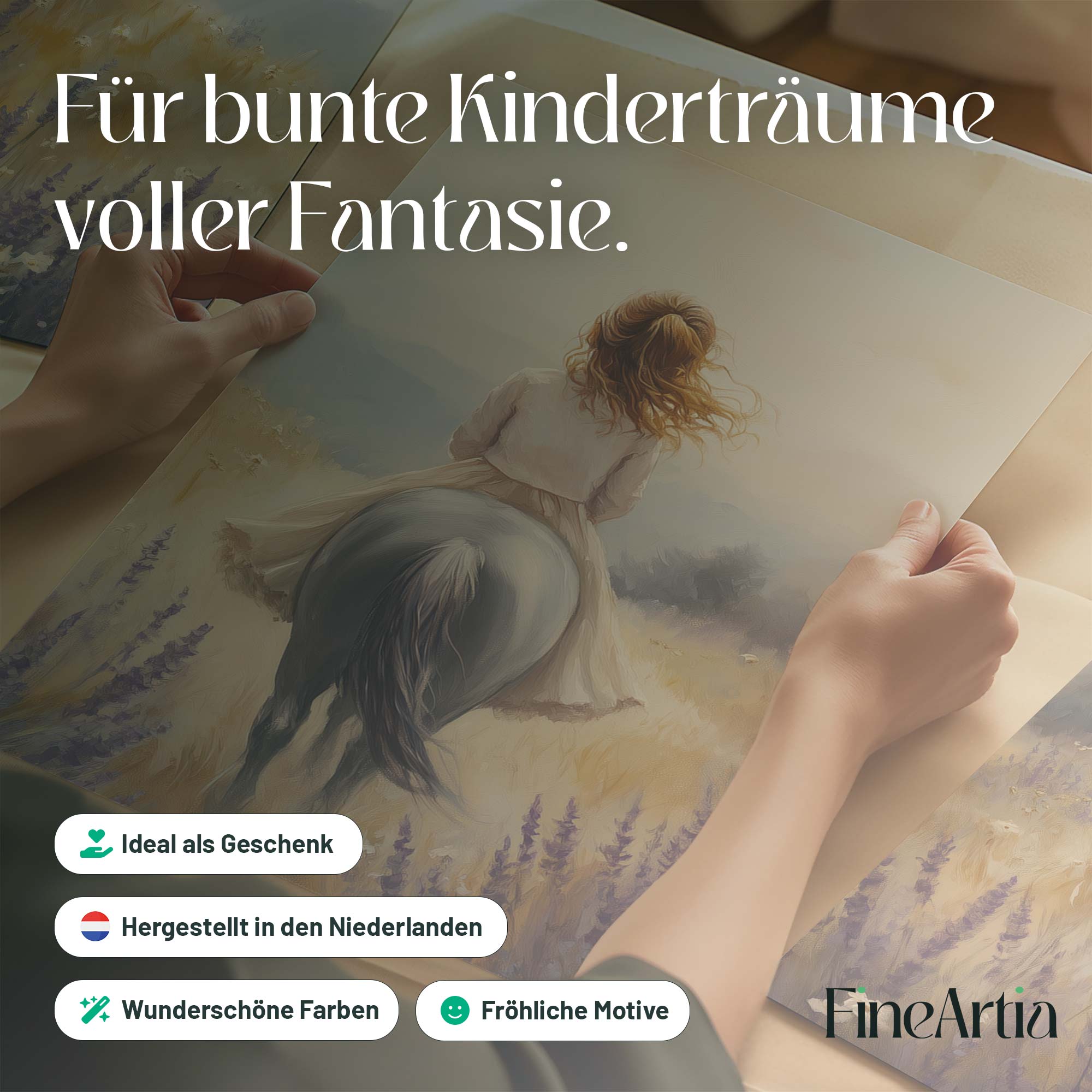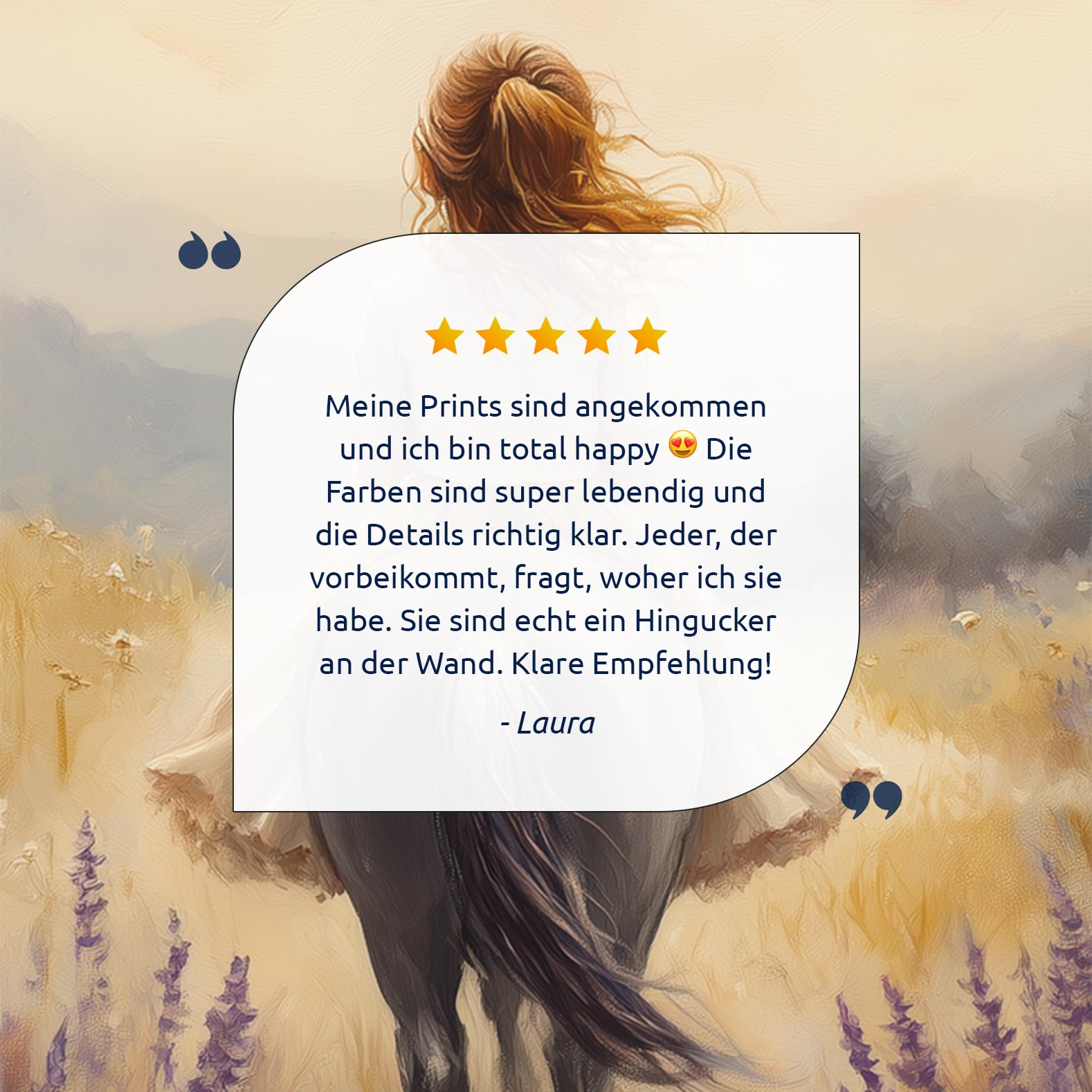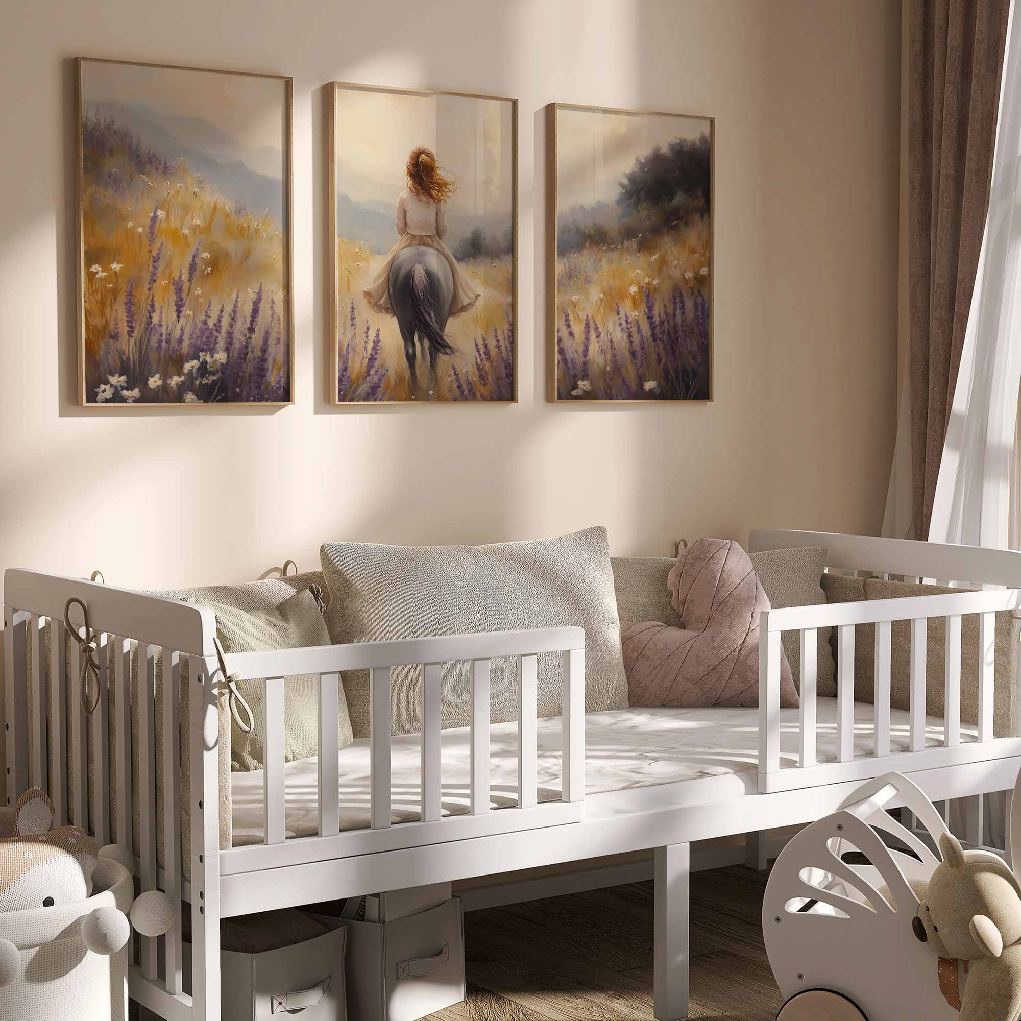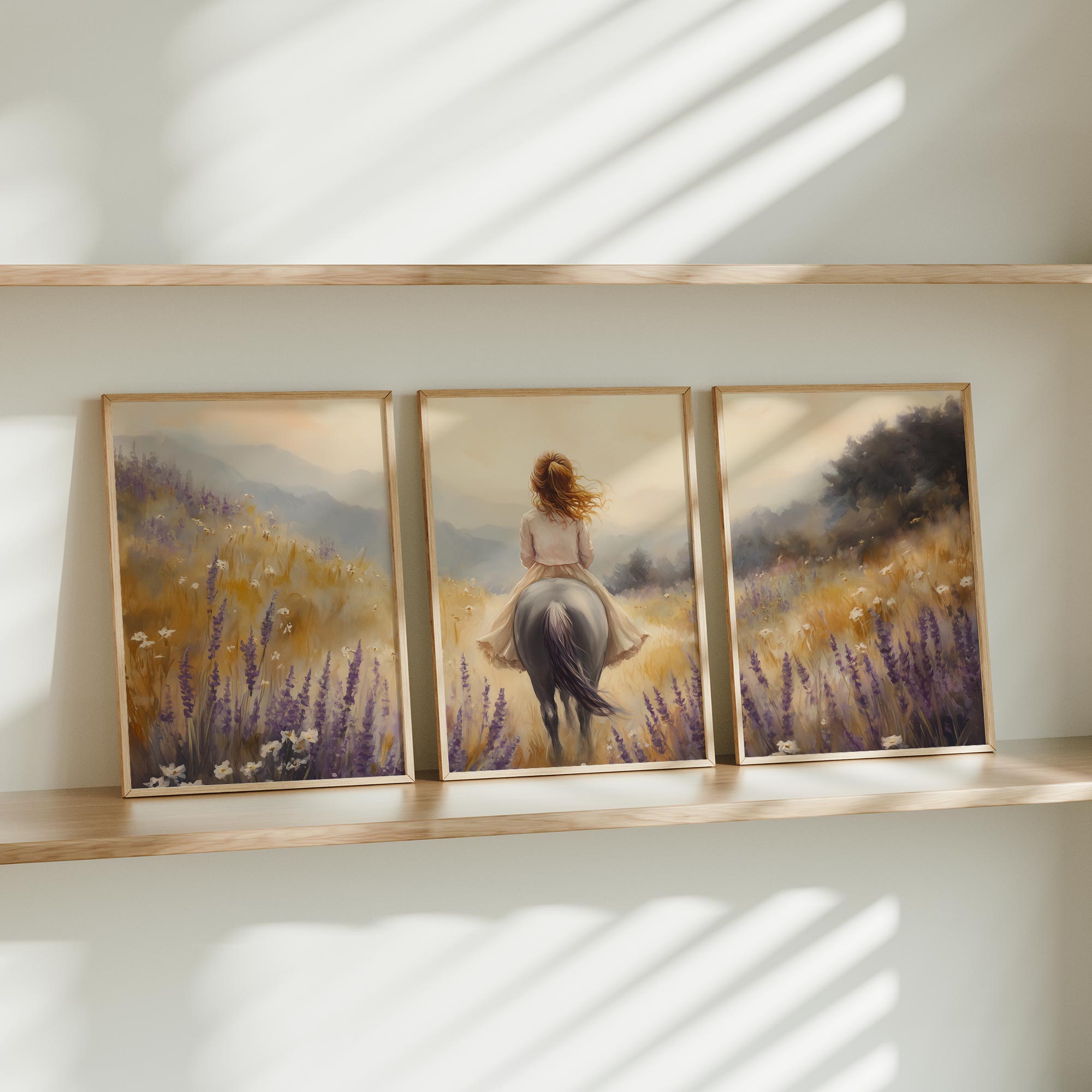 Terug naar collectie Posters Zacht Droomlandschap: Dame te Paard in Bloemenveld