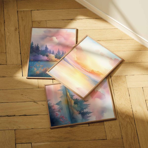Zacht Droomlandschap: Meer, Bergen en Wolken