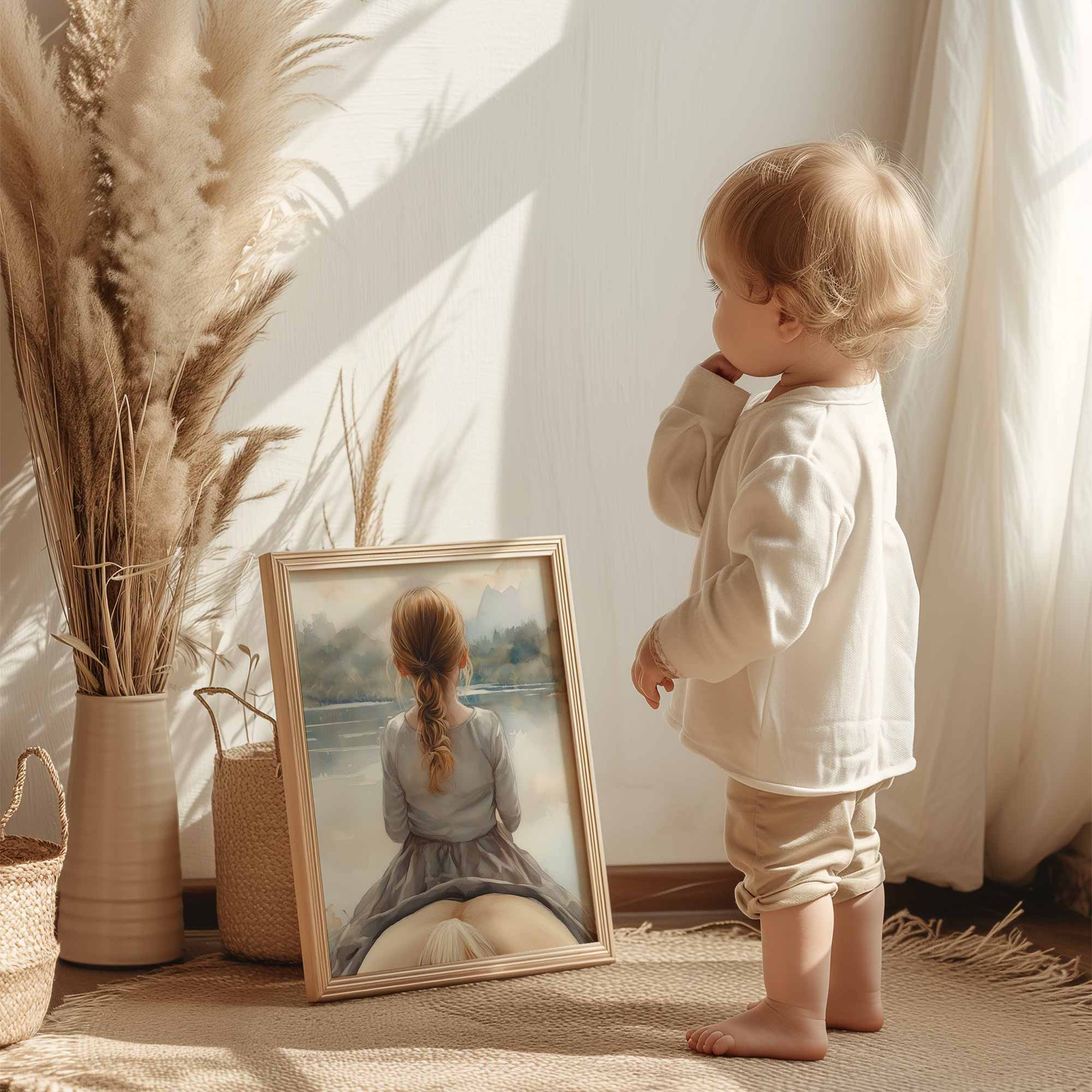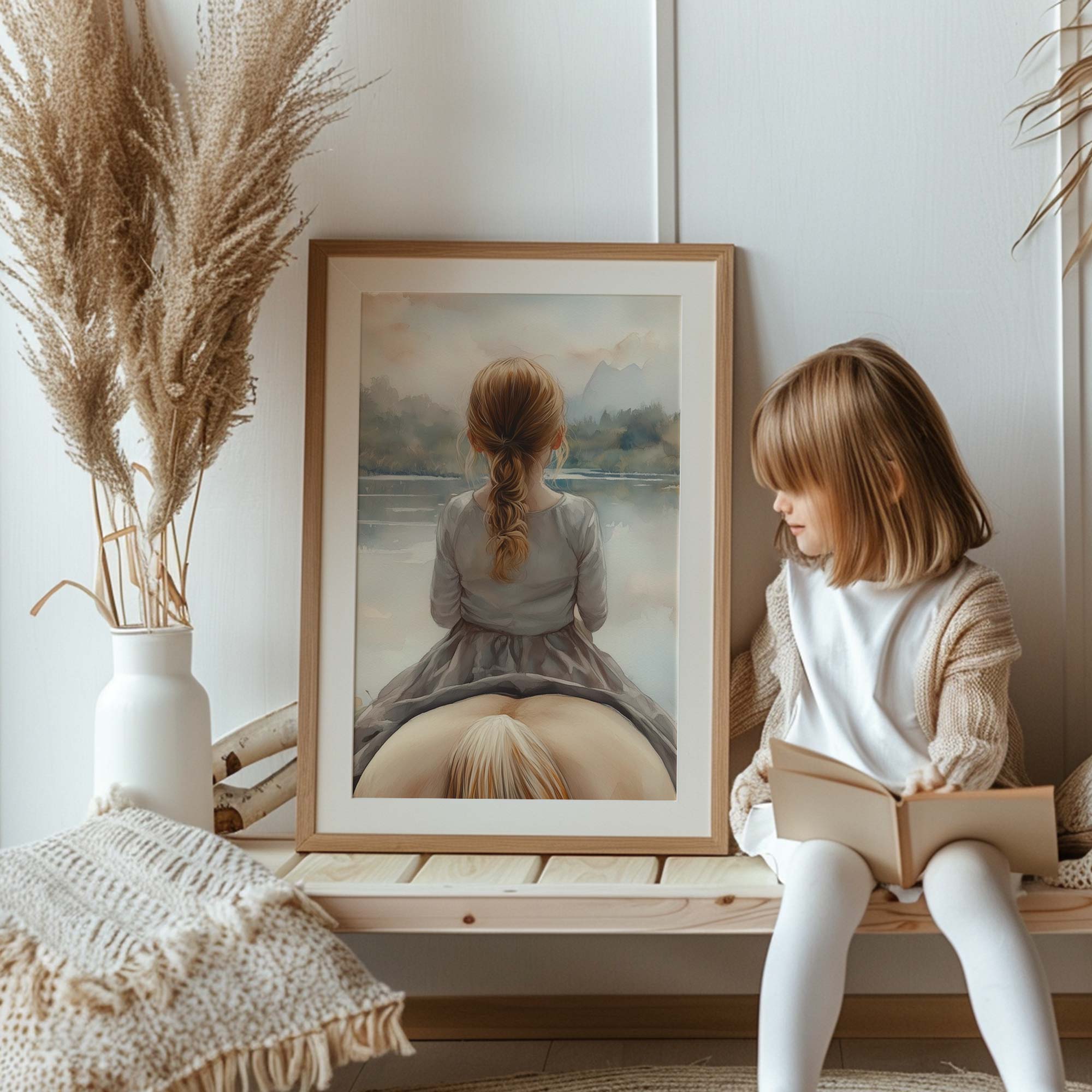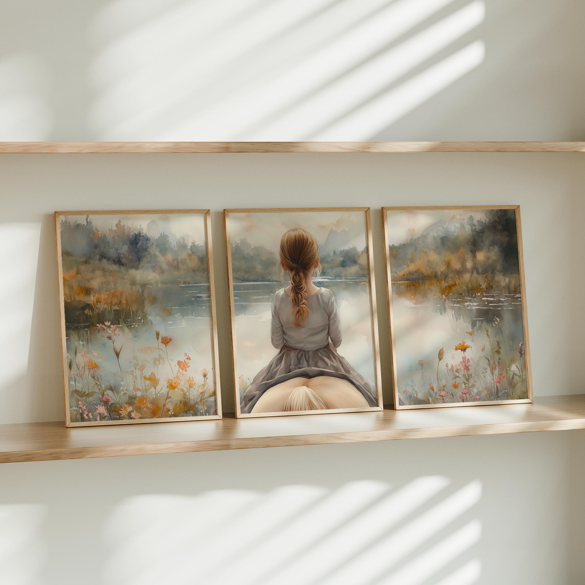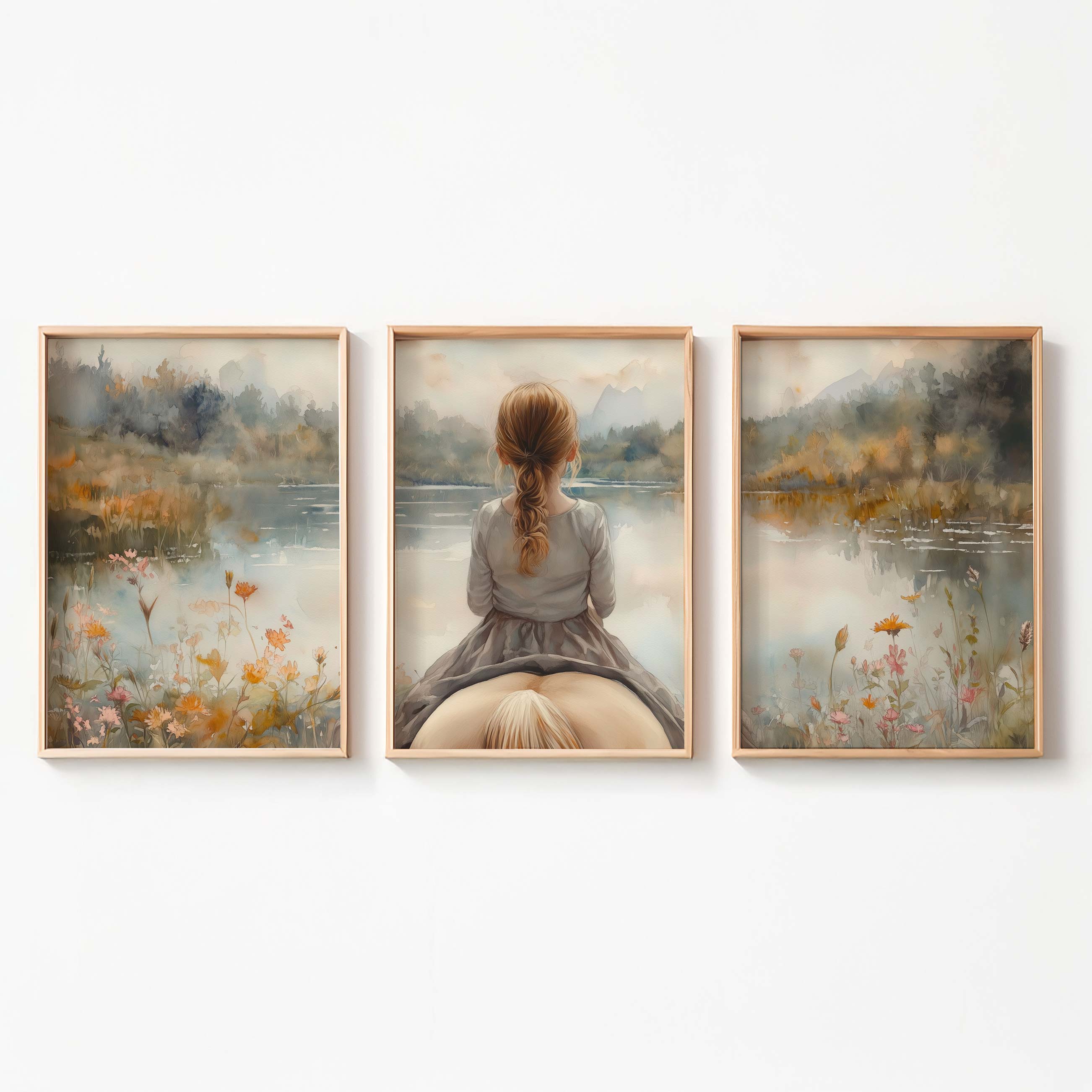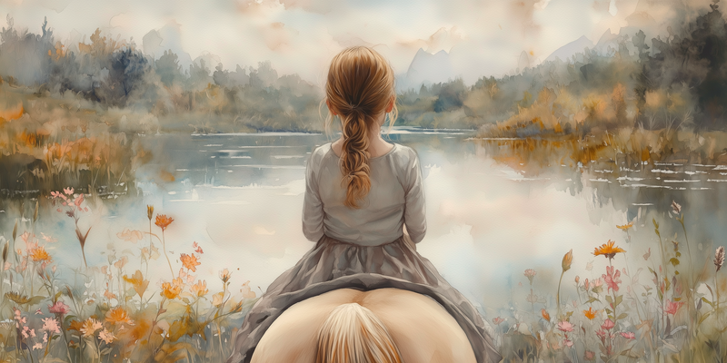 Zacht Droomlandschap: Meisje en Paard bij het Meer