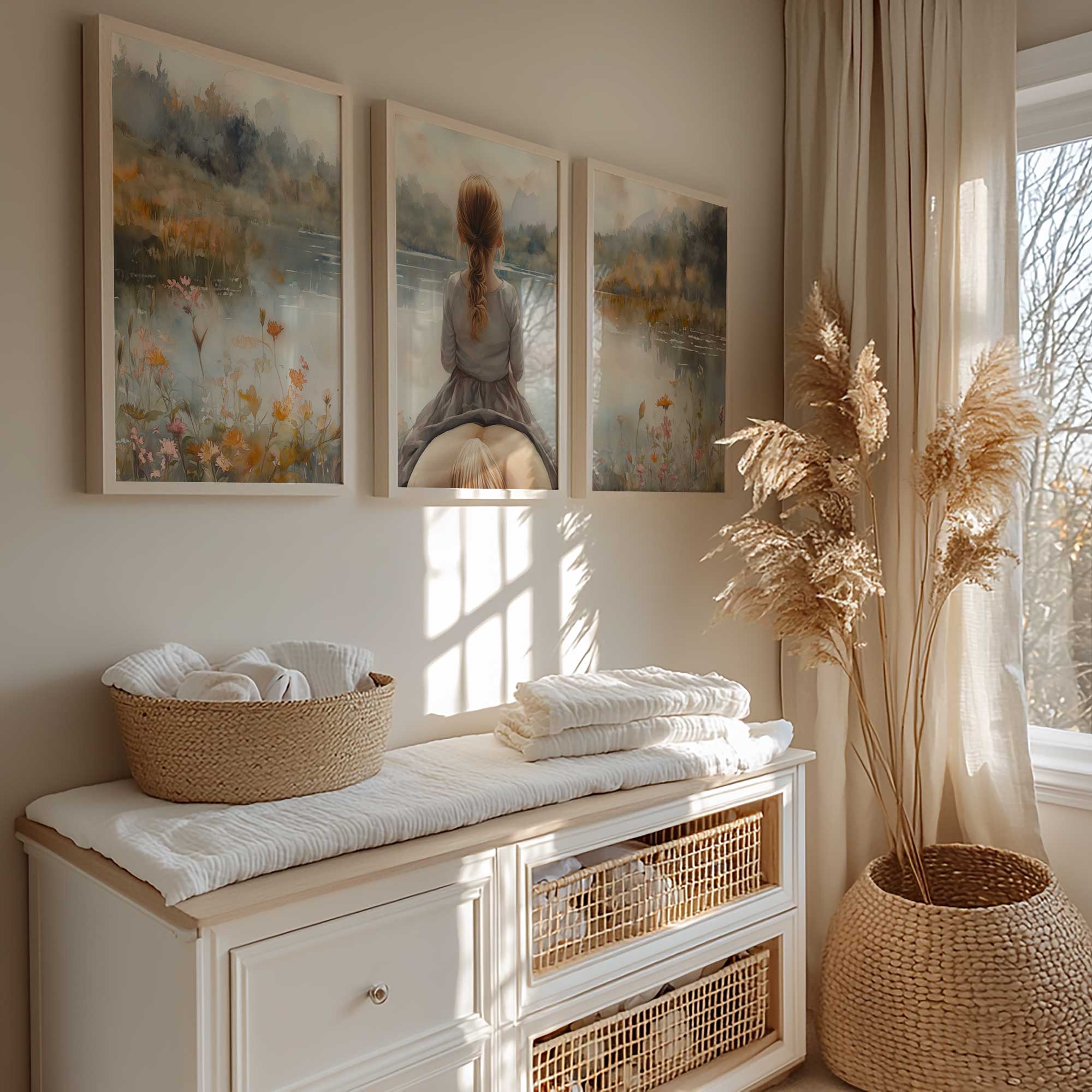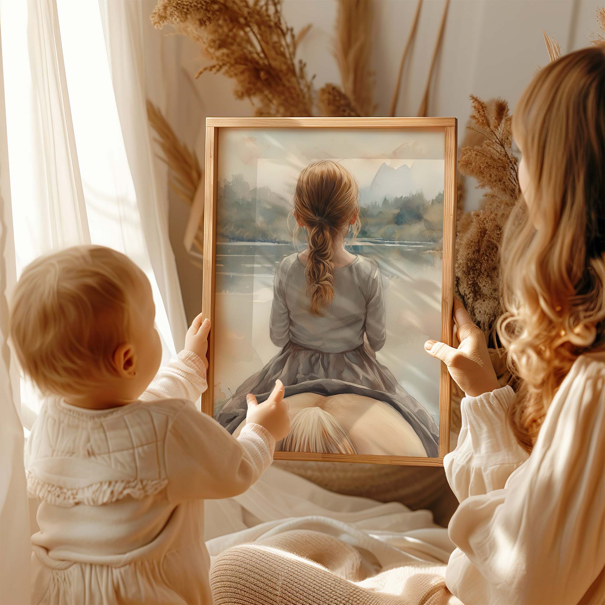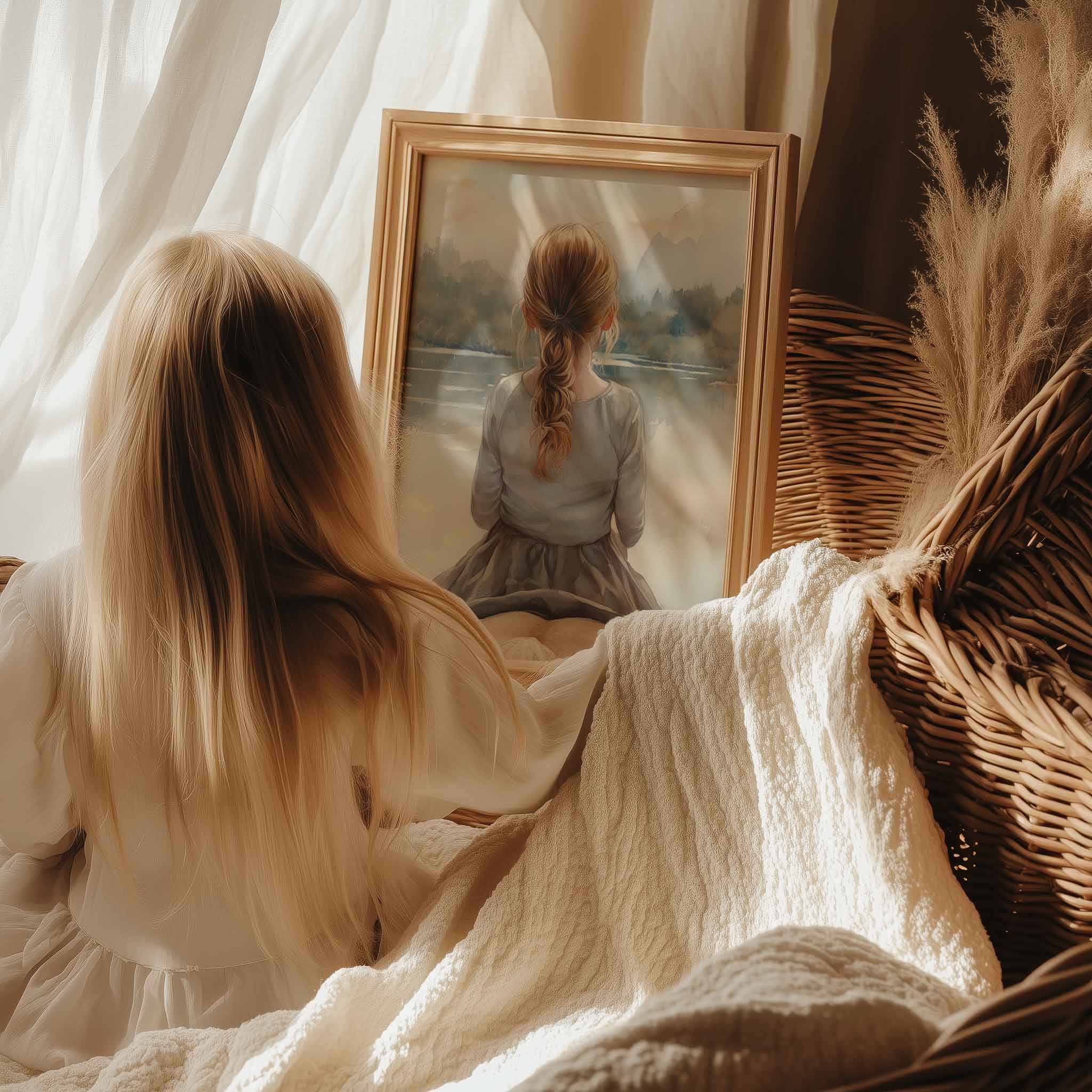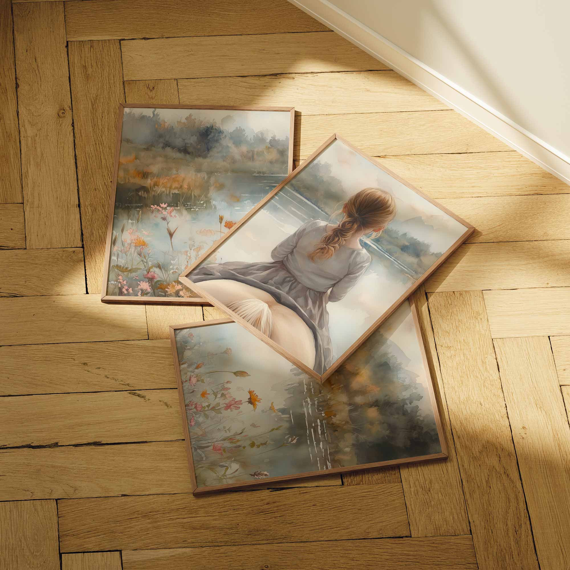 Zacht Droomlandschap: Meisje en Paard bij het Meer