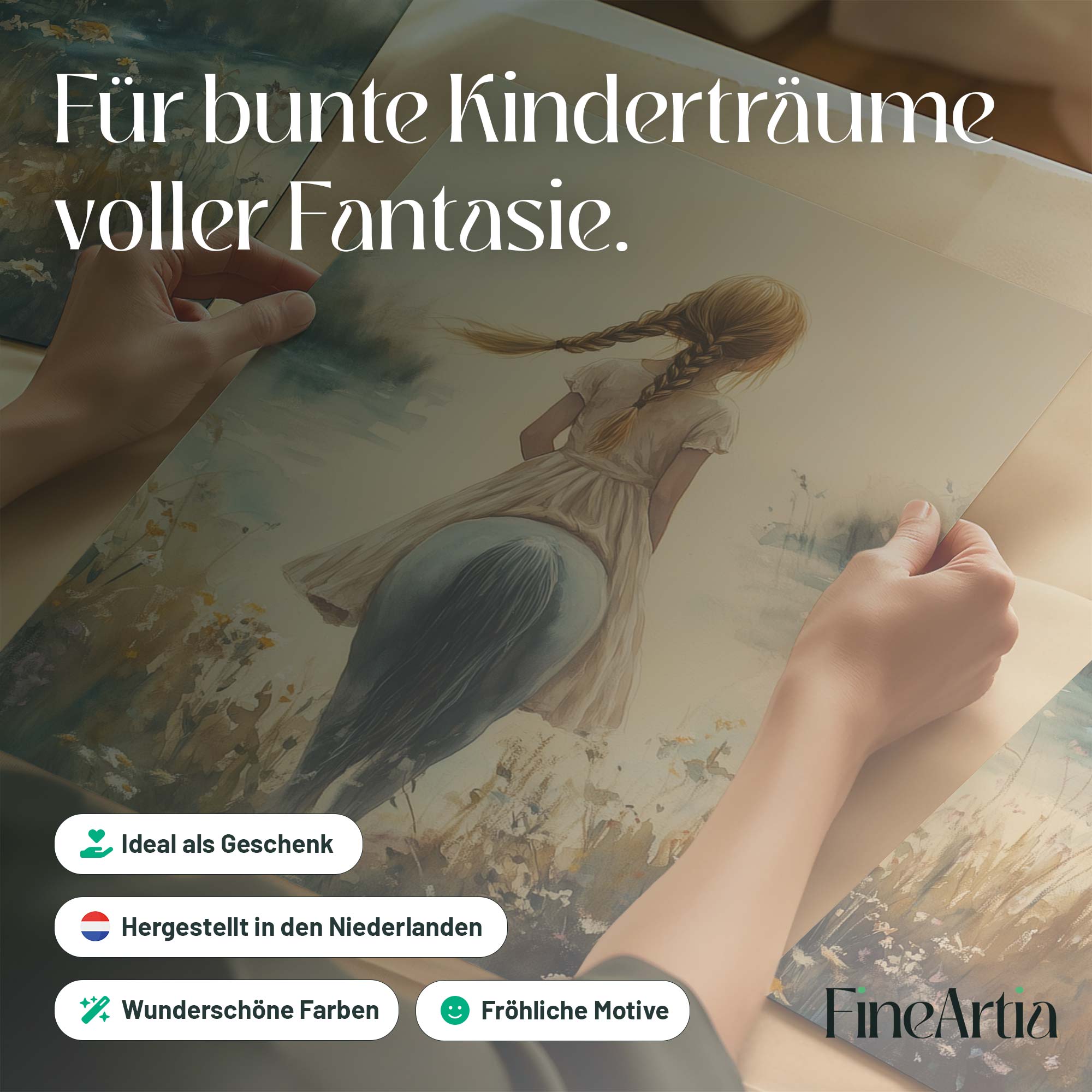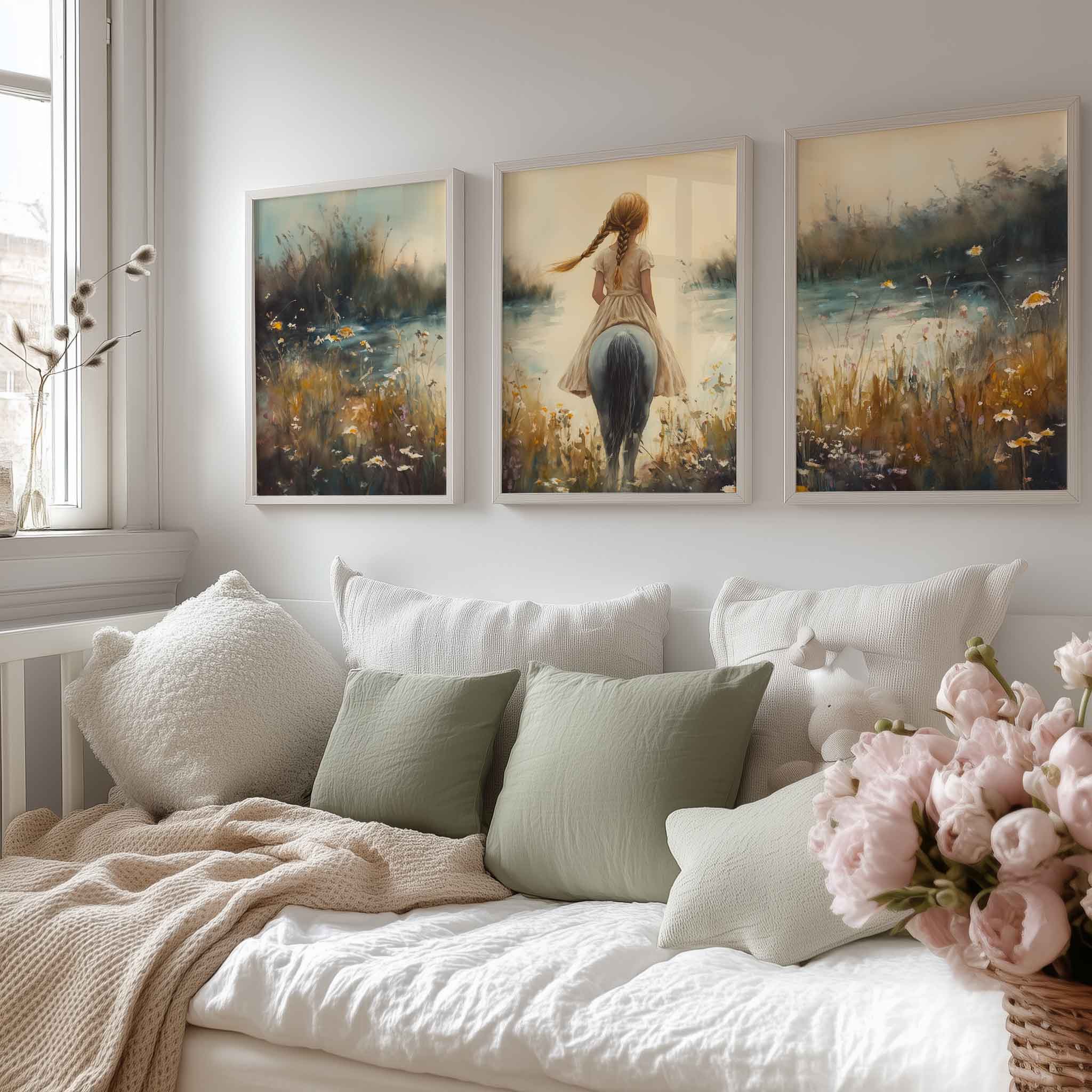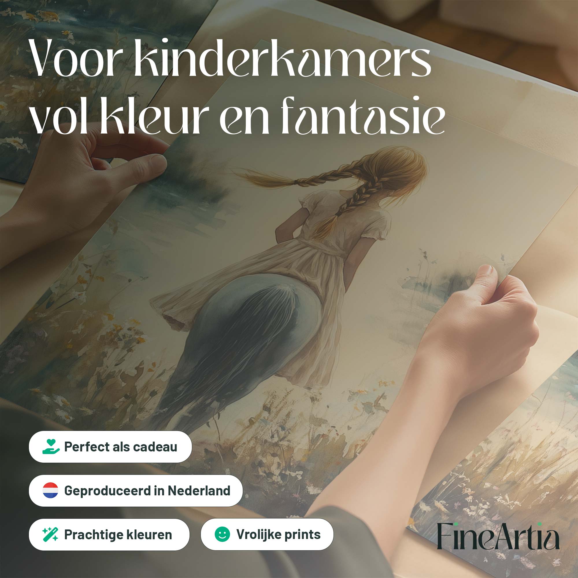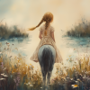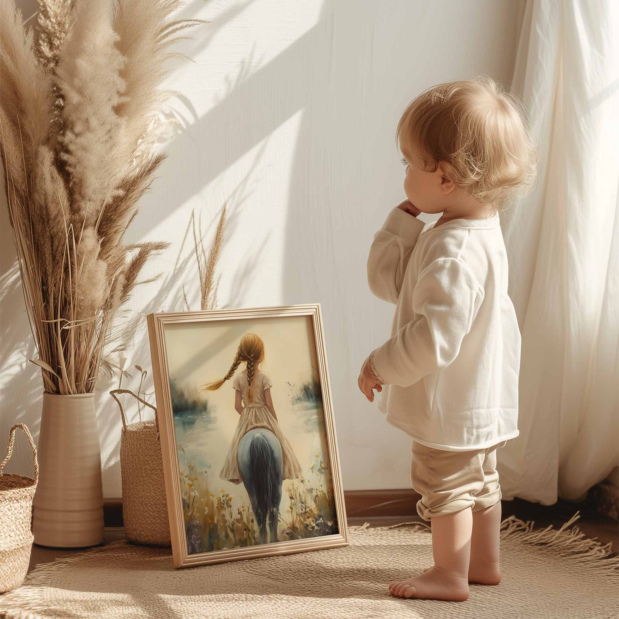Zacht Droomlandschap: Meisje en Paard in Bloemenveld