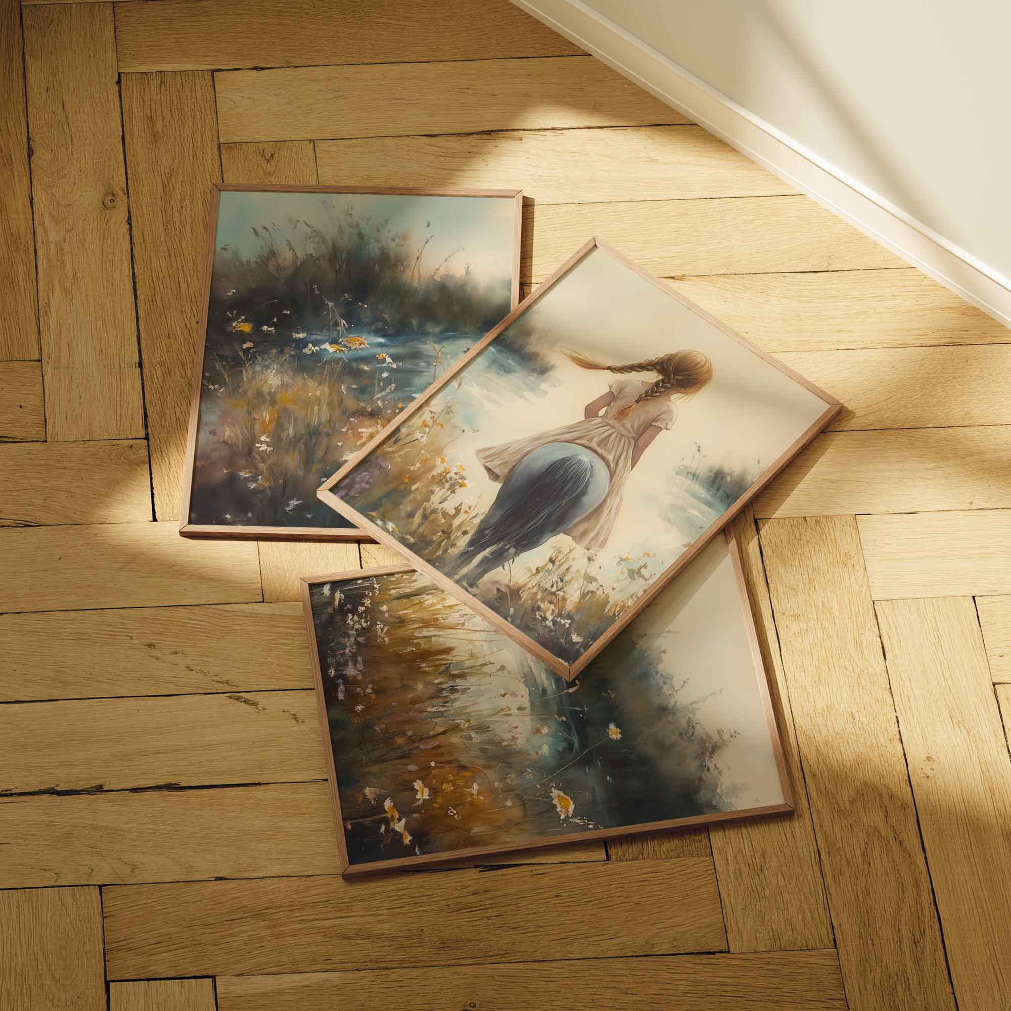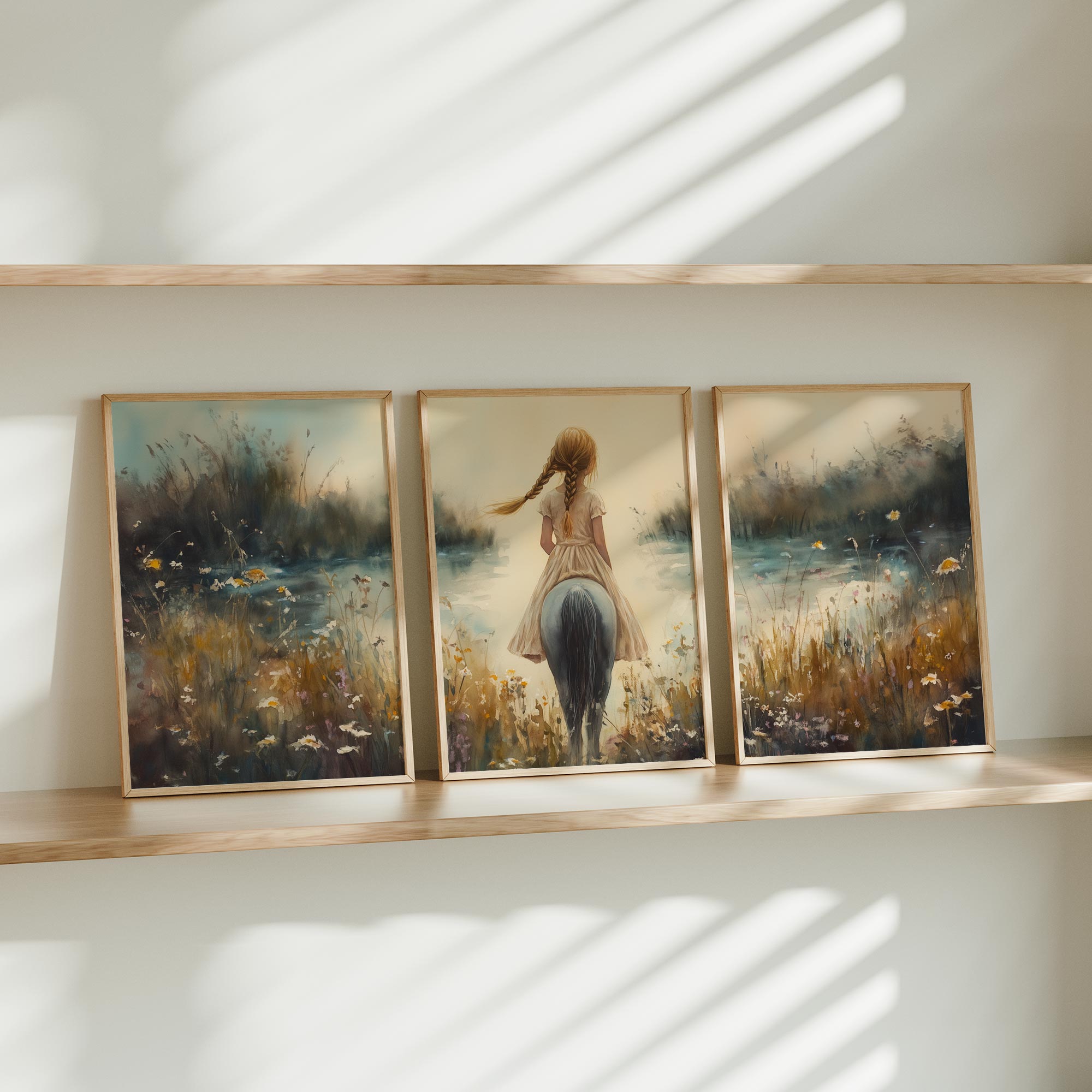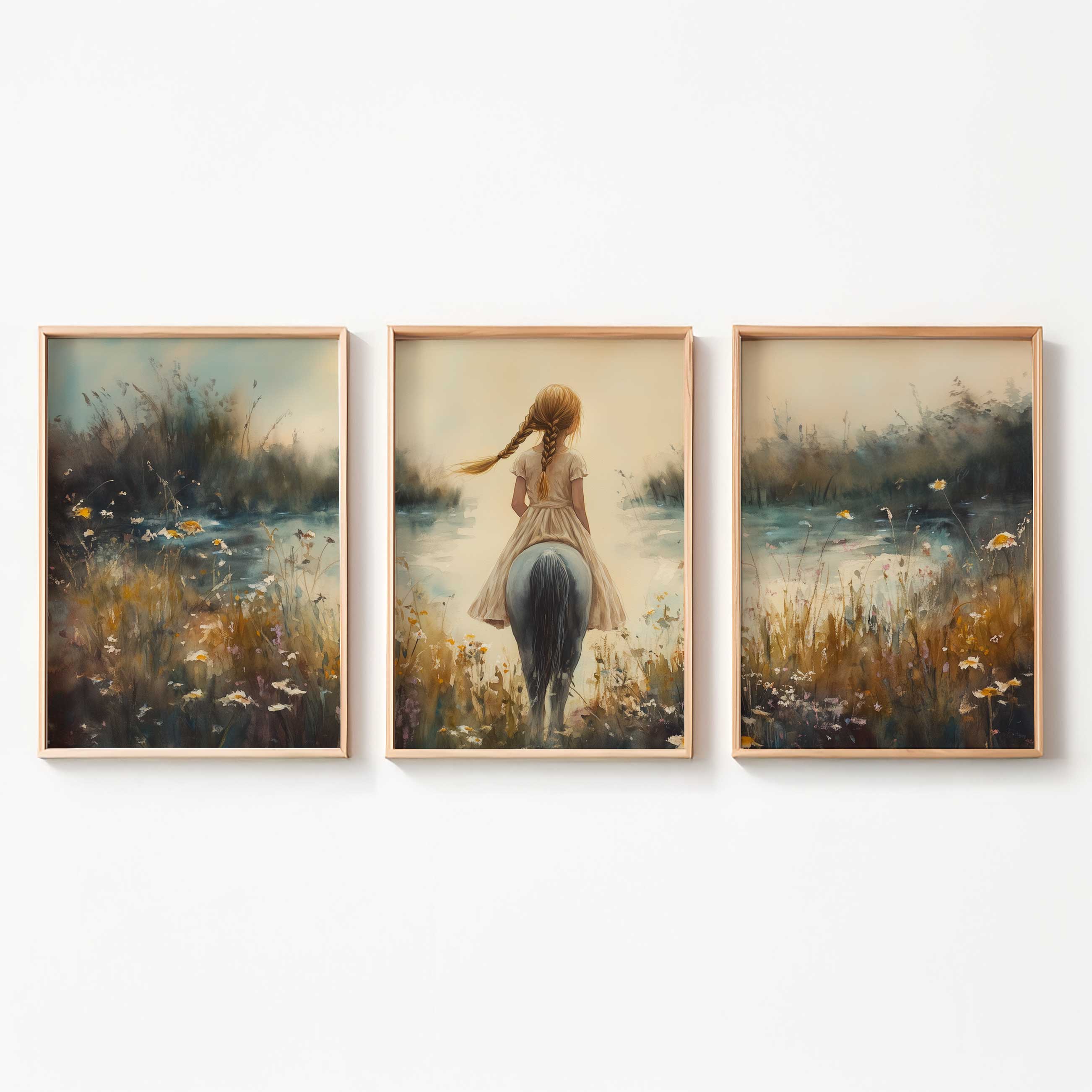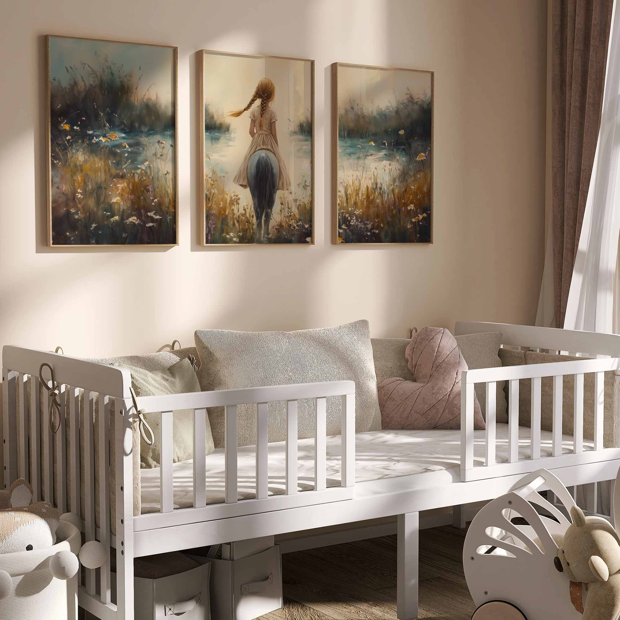 Zacht Droomlandschap: Meisje en Paard in Bloemenveld