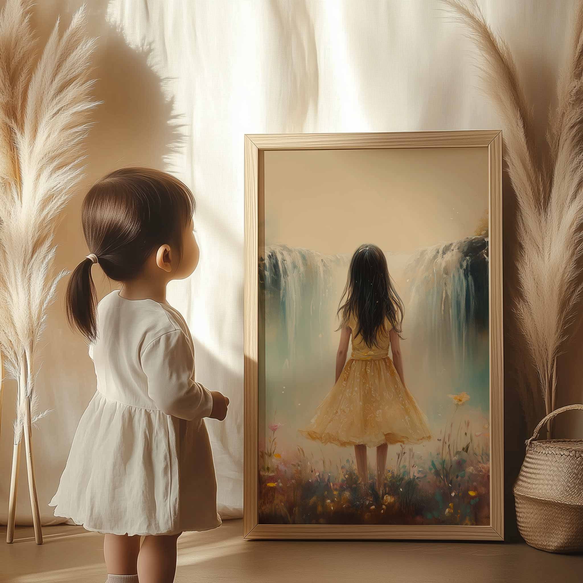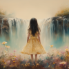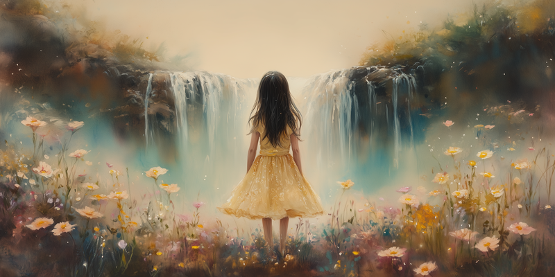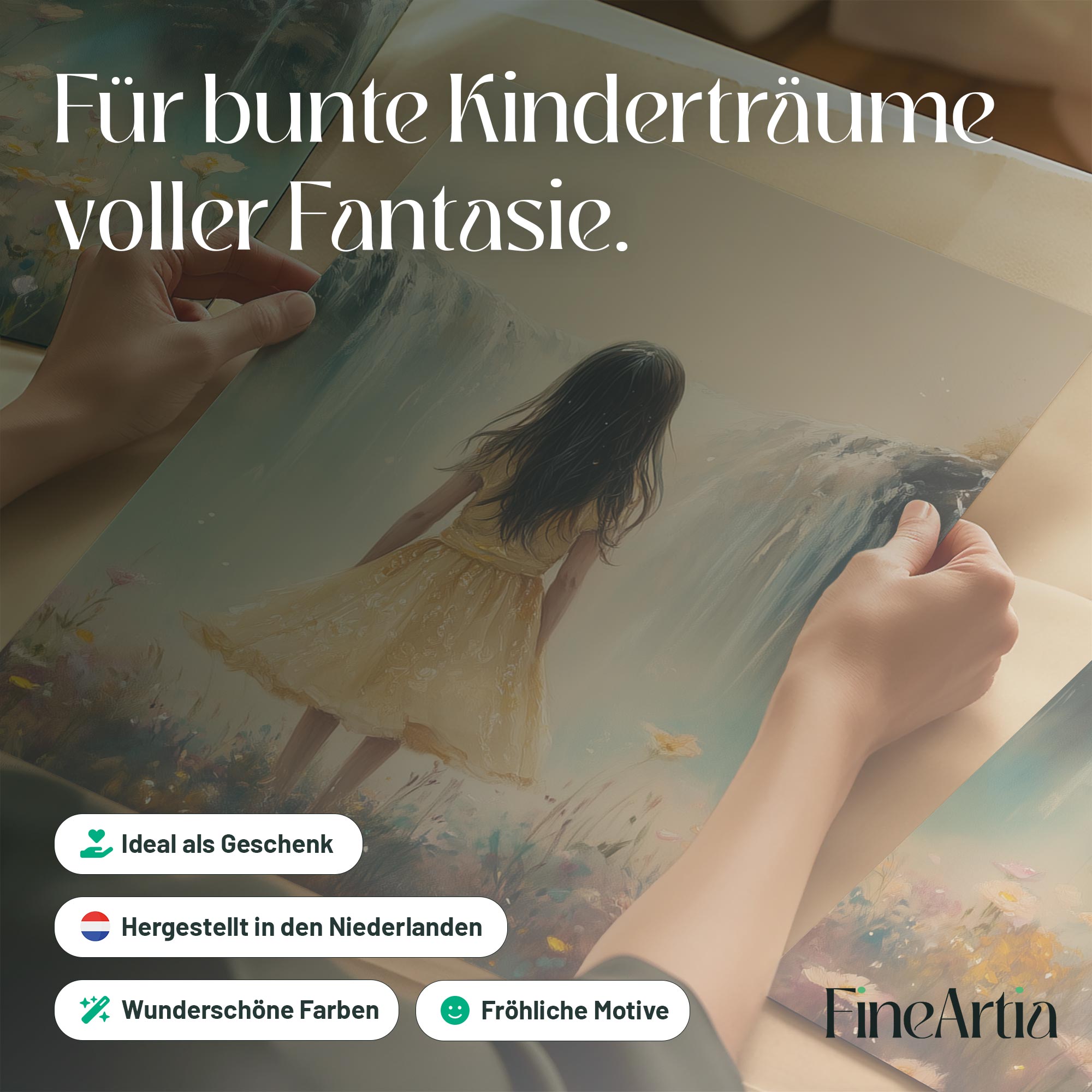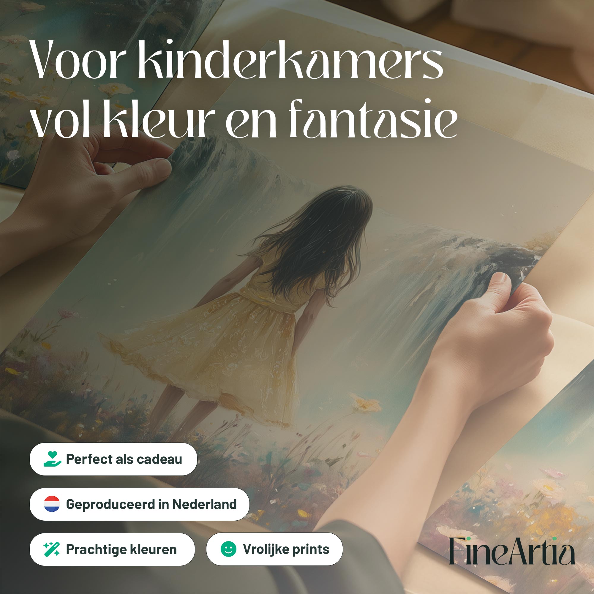 Zacht Droomlandschap met Meisje en Bloemenveld