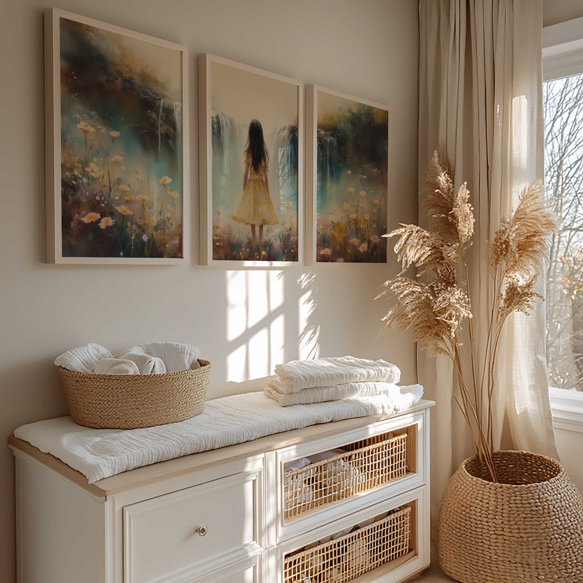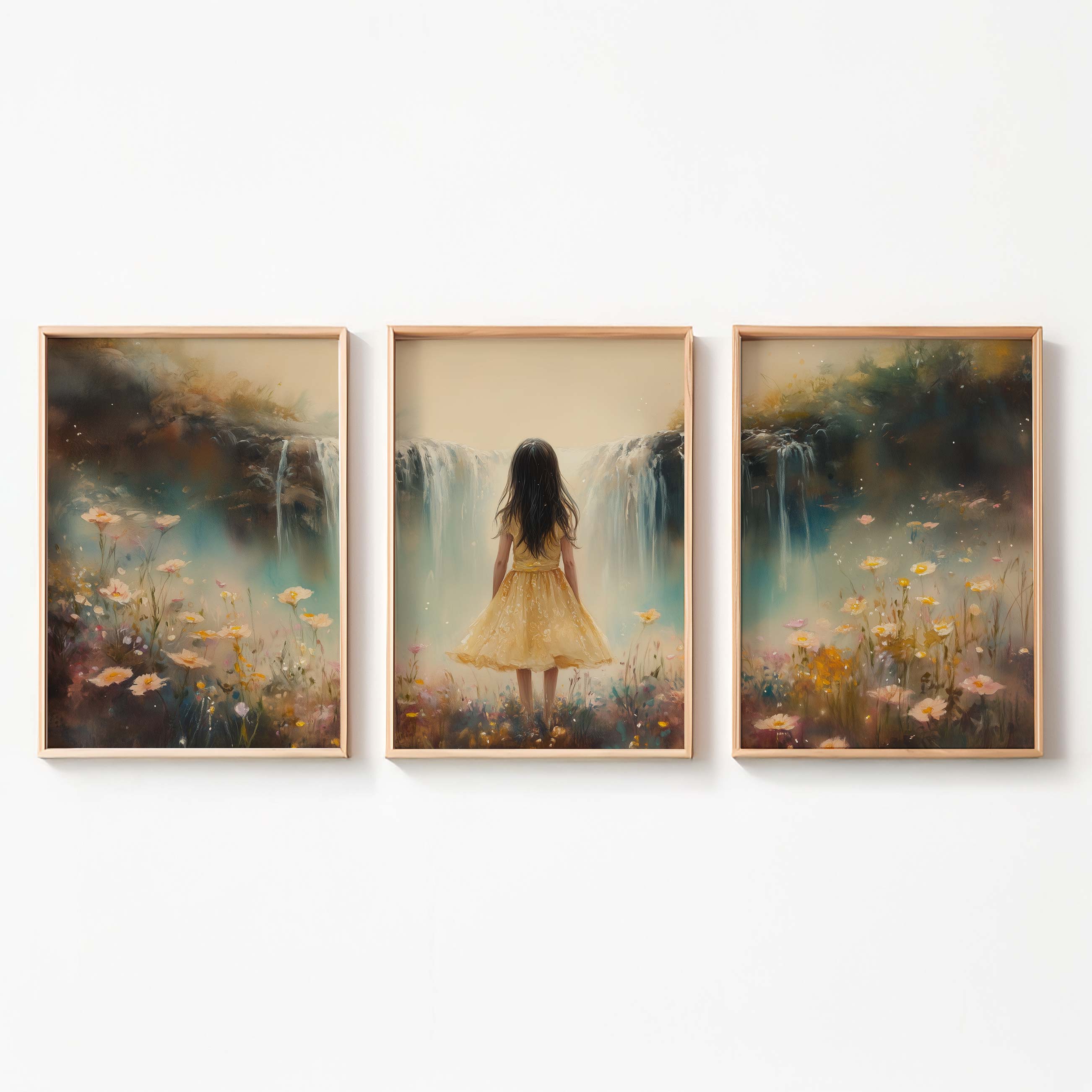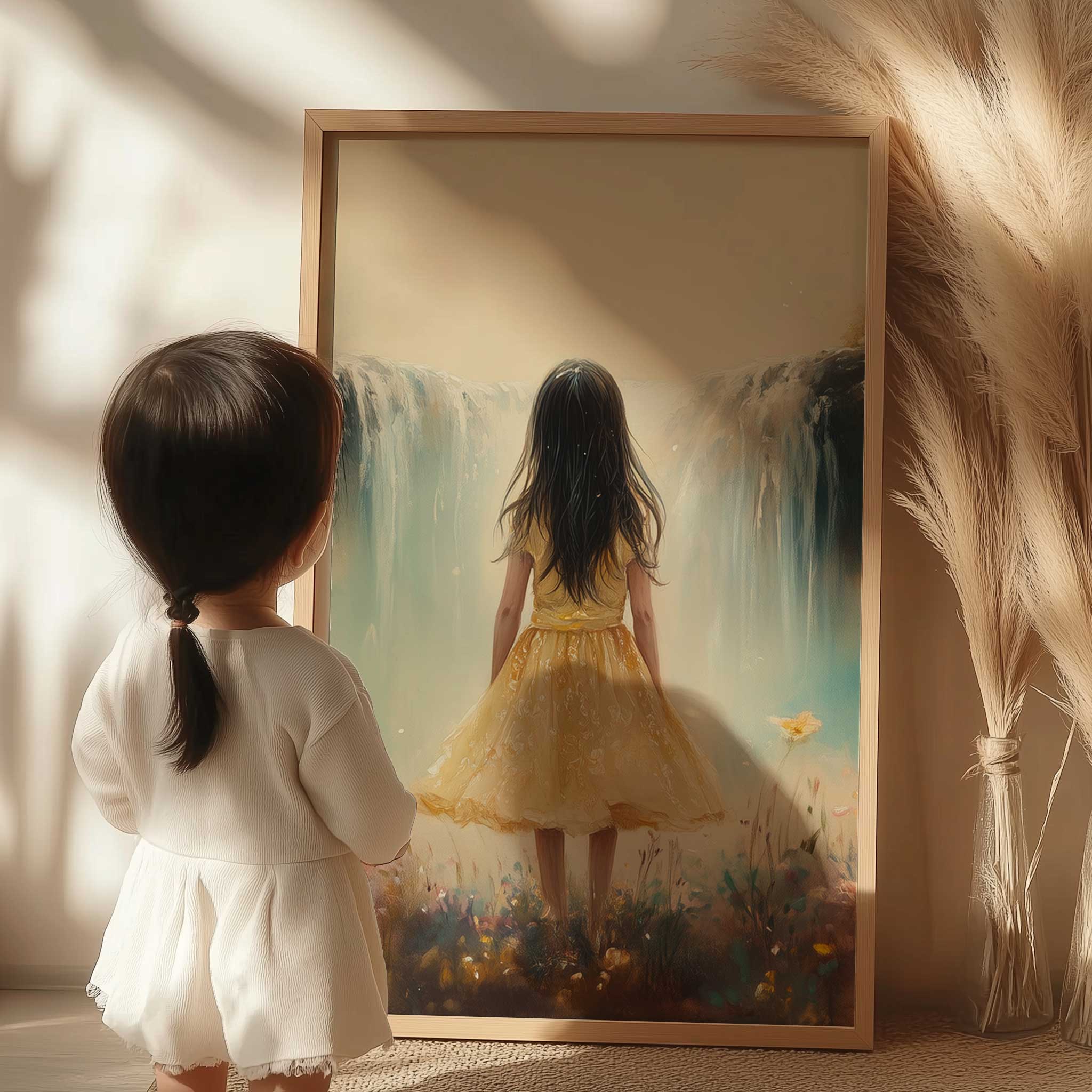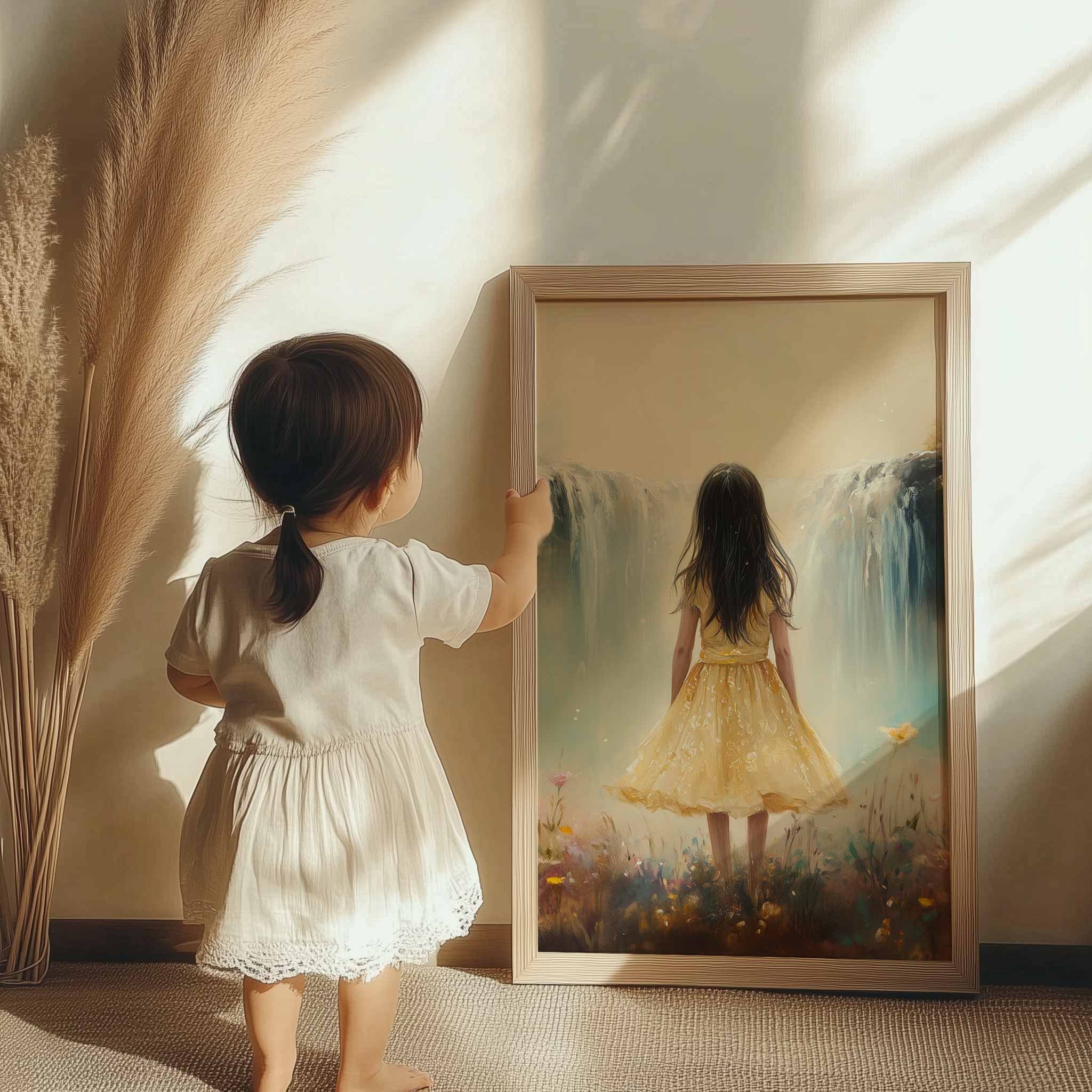 Zacht Droomlandschap met Meisje en Bloemenveld