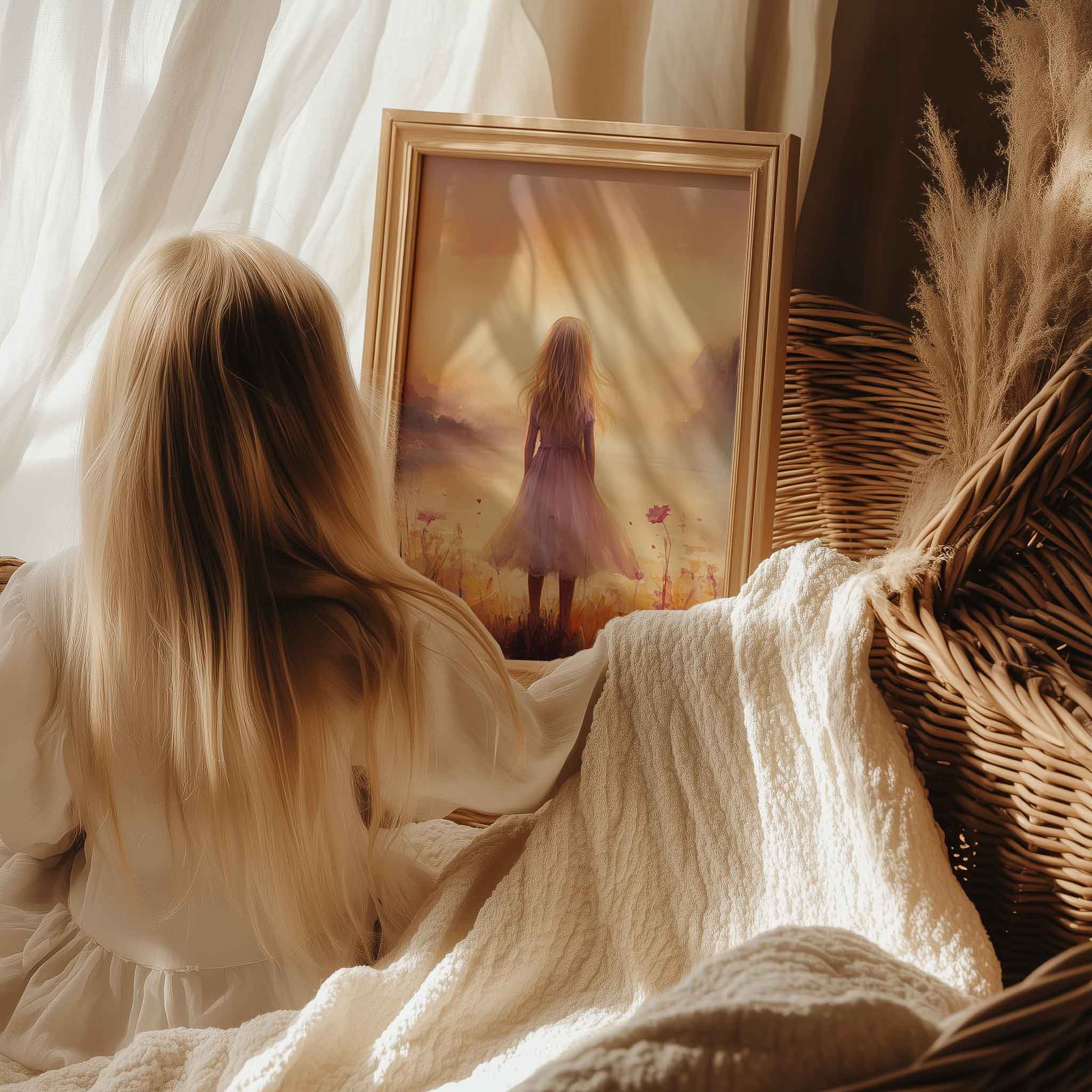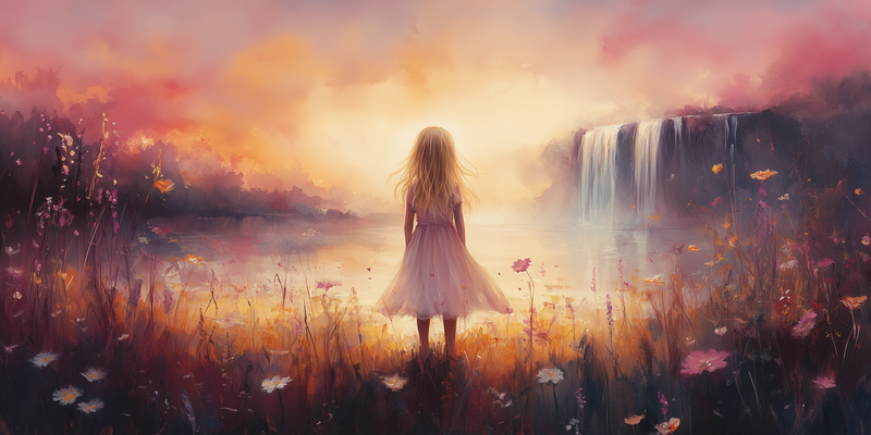 Terug naar collectie Posters Zacht Droomlandschap met Meisje en Waterval