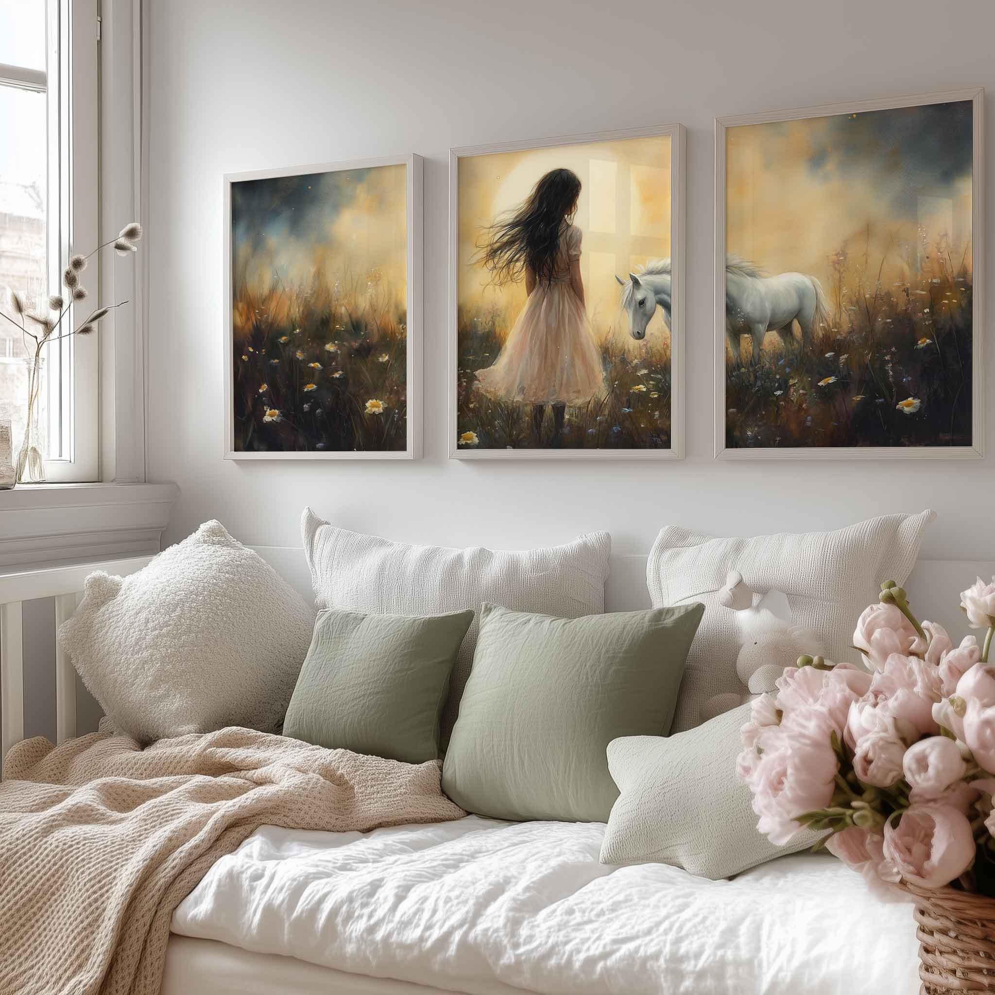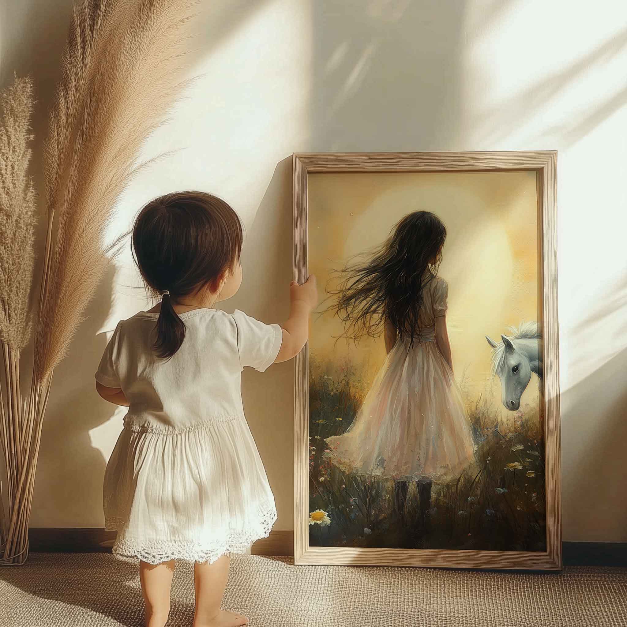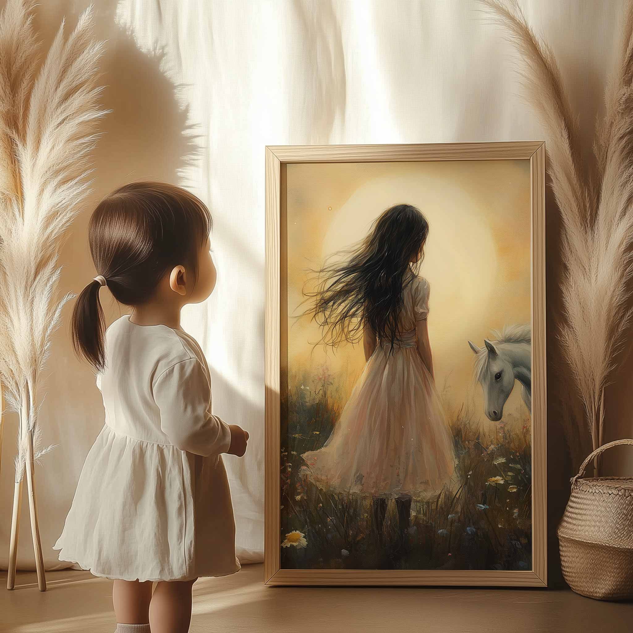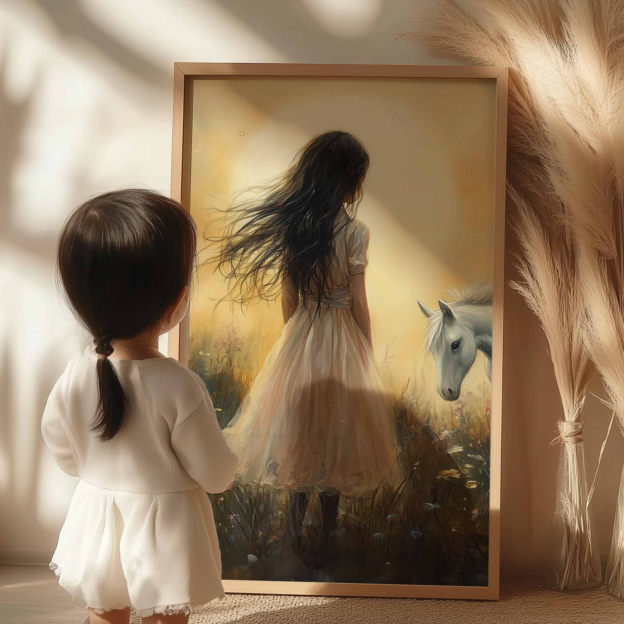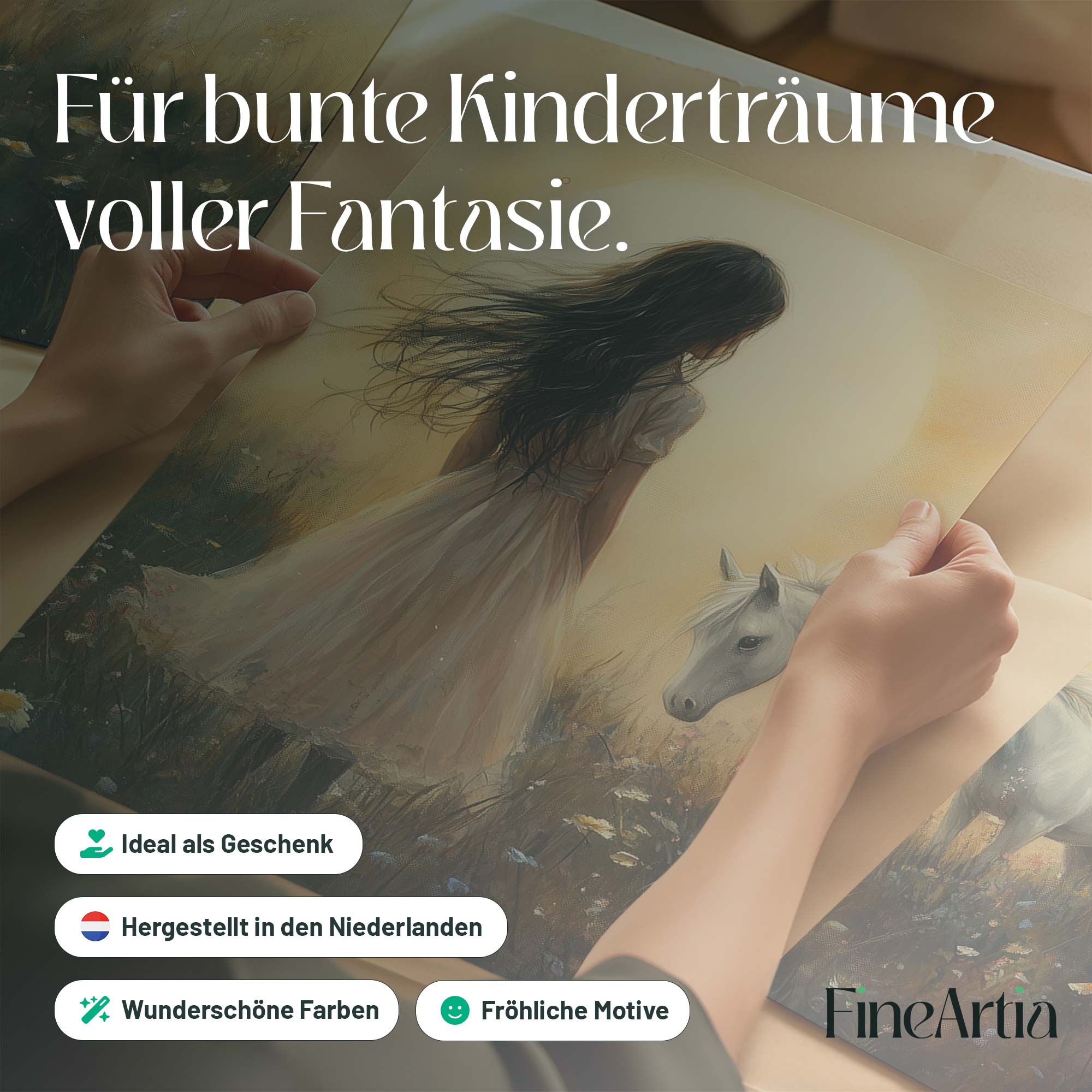 Terug naar collectie Posters Zacht Droomlandschap met Meisje en Witte Paard