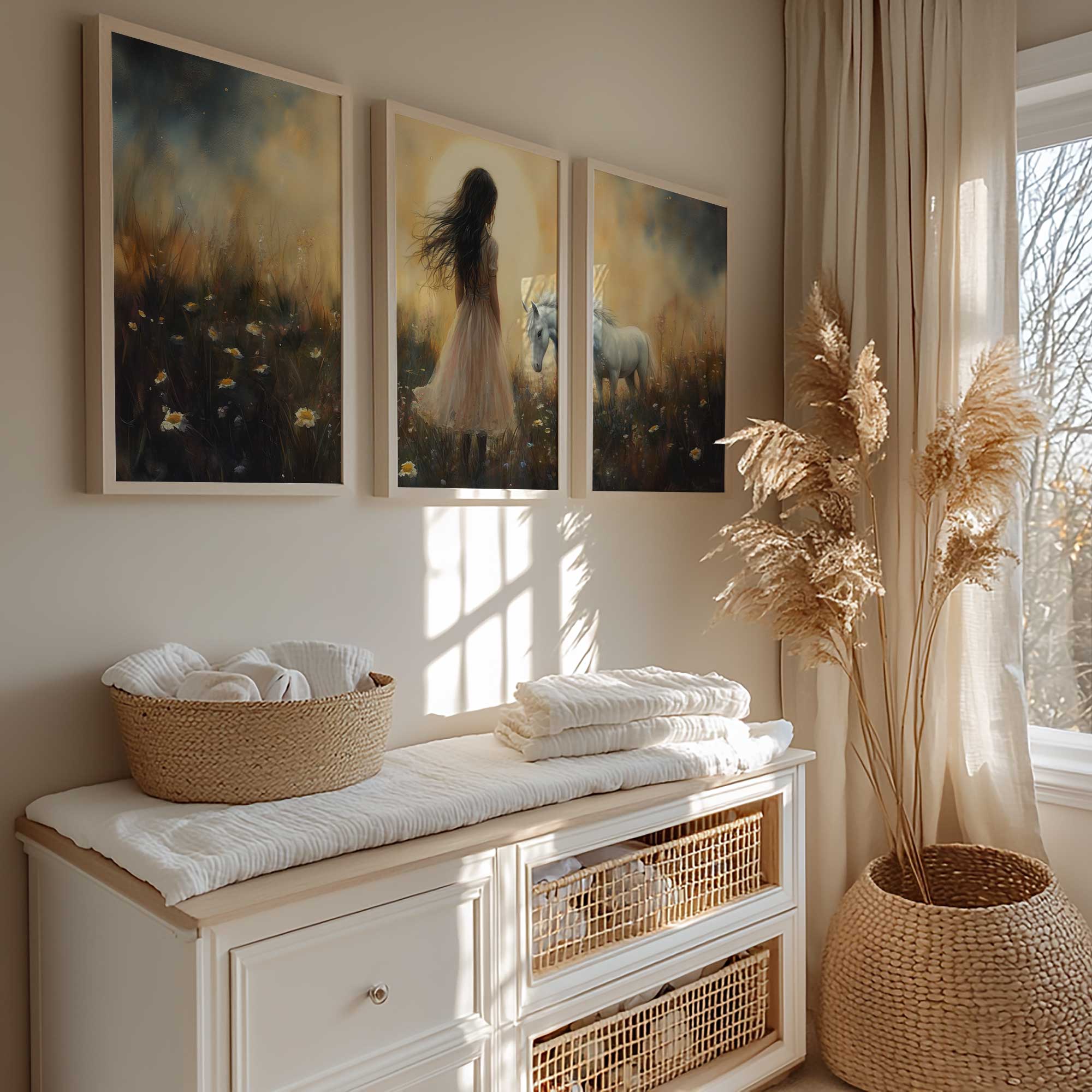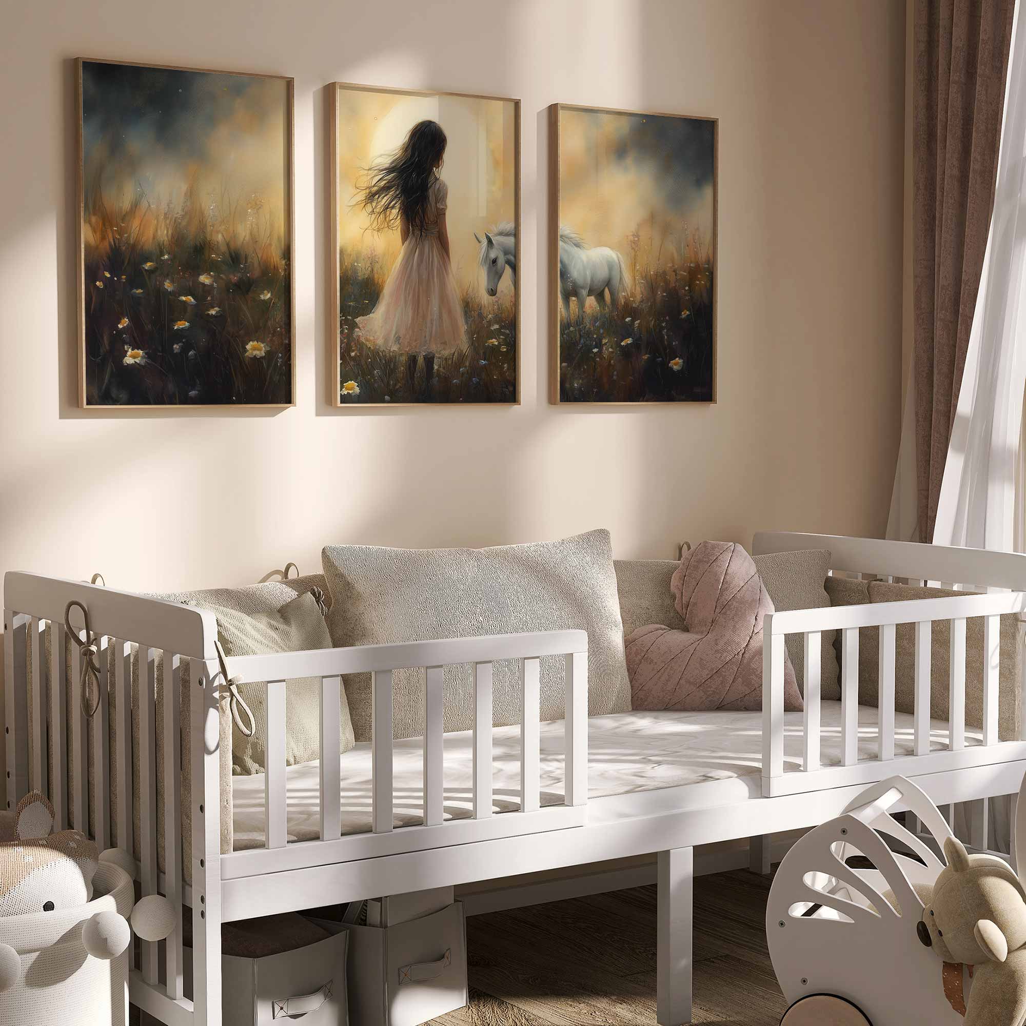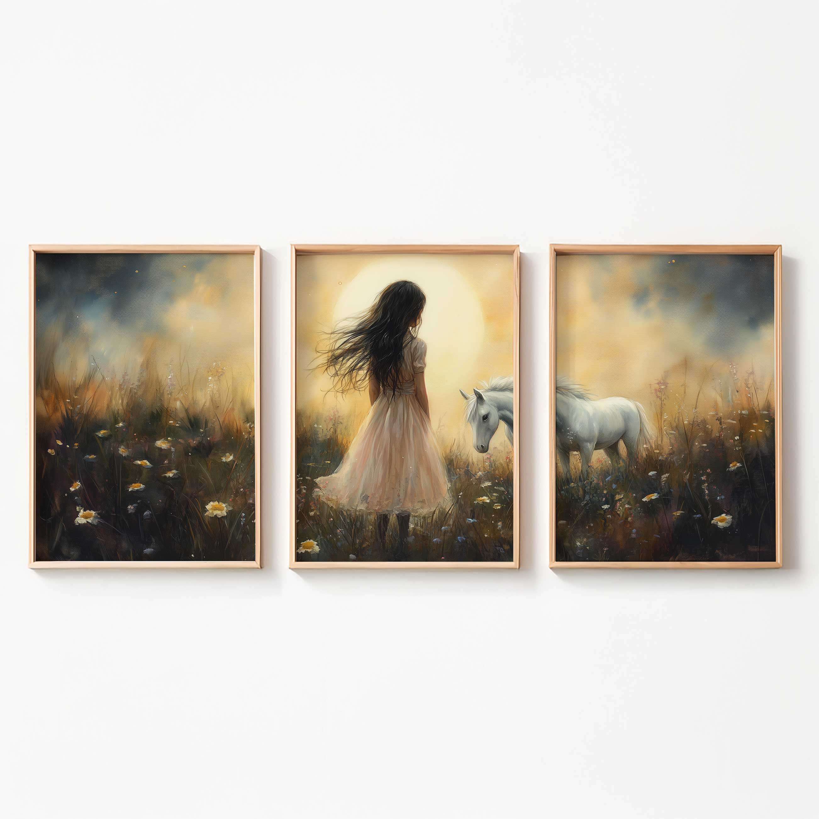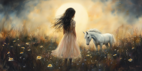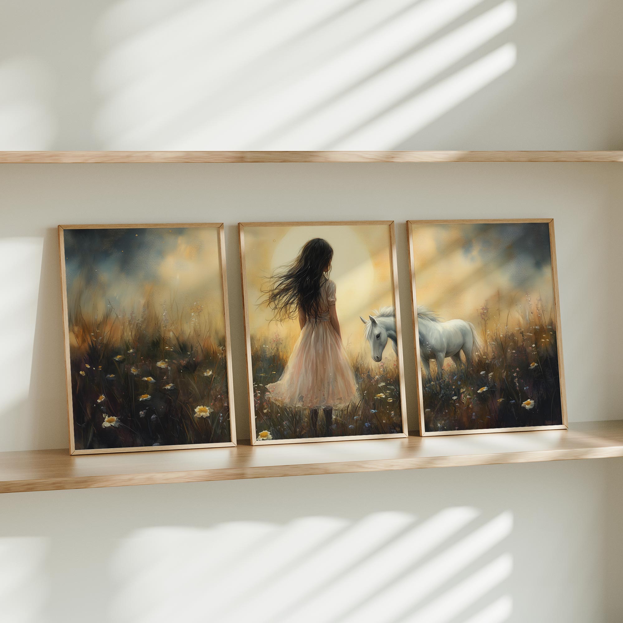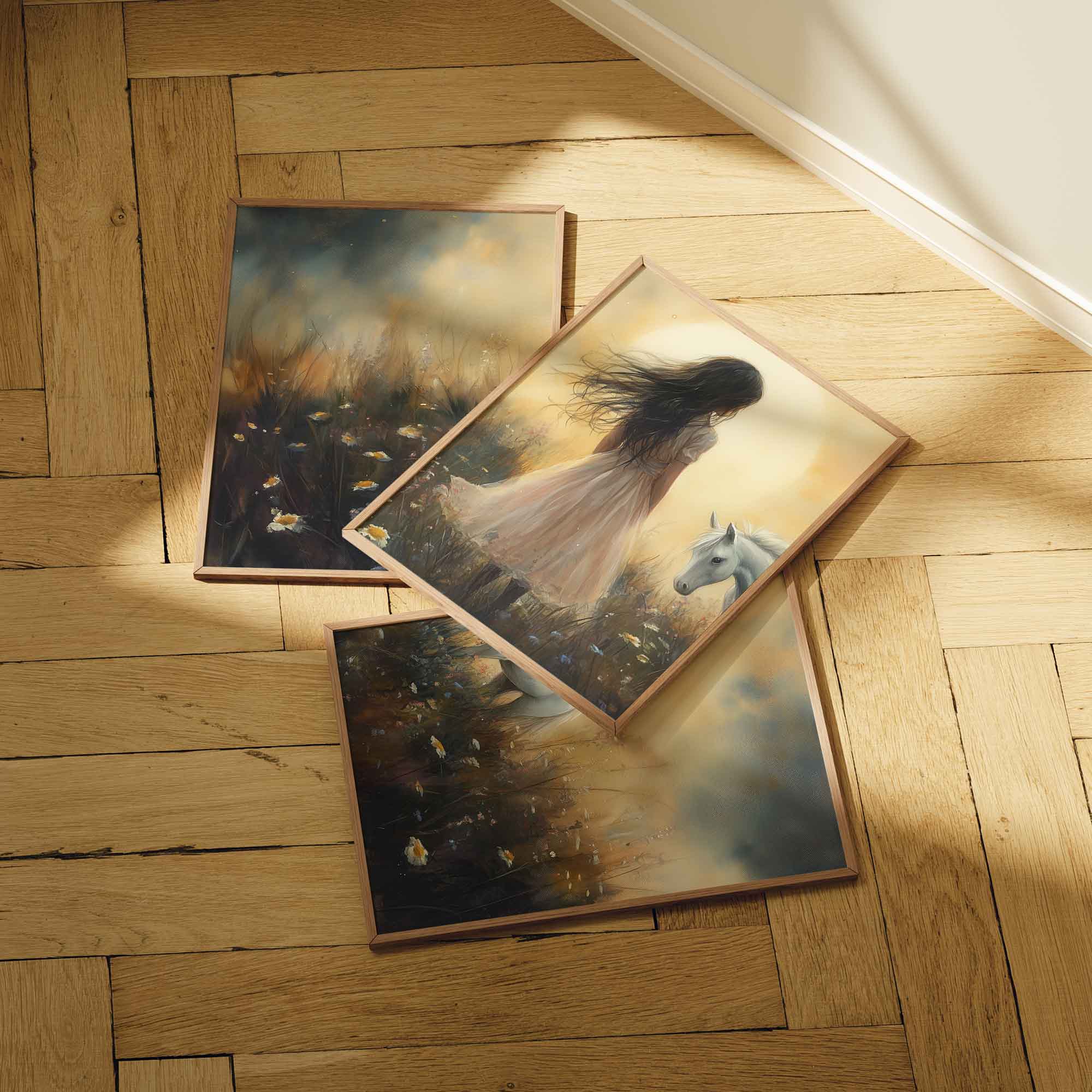 Terug naar collectie Posters Zacht Droomlandschap met Meisje en Witte Paard