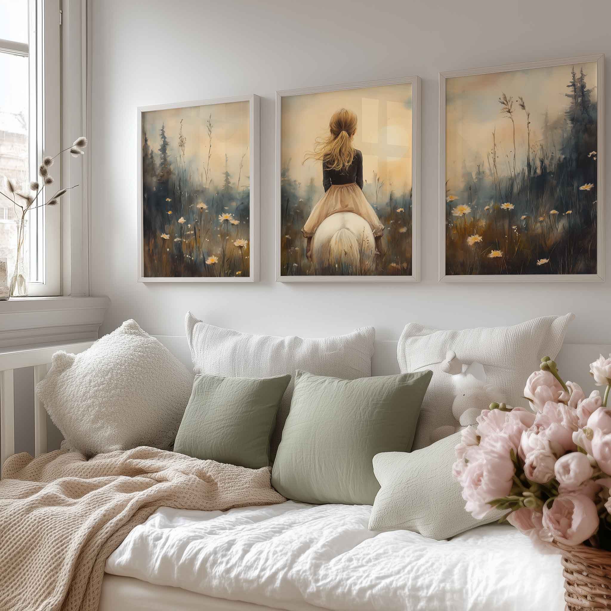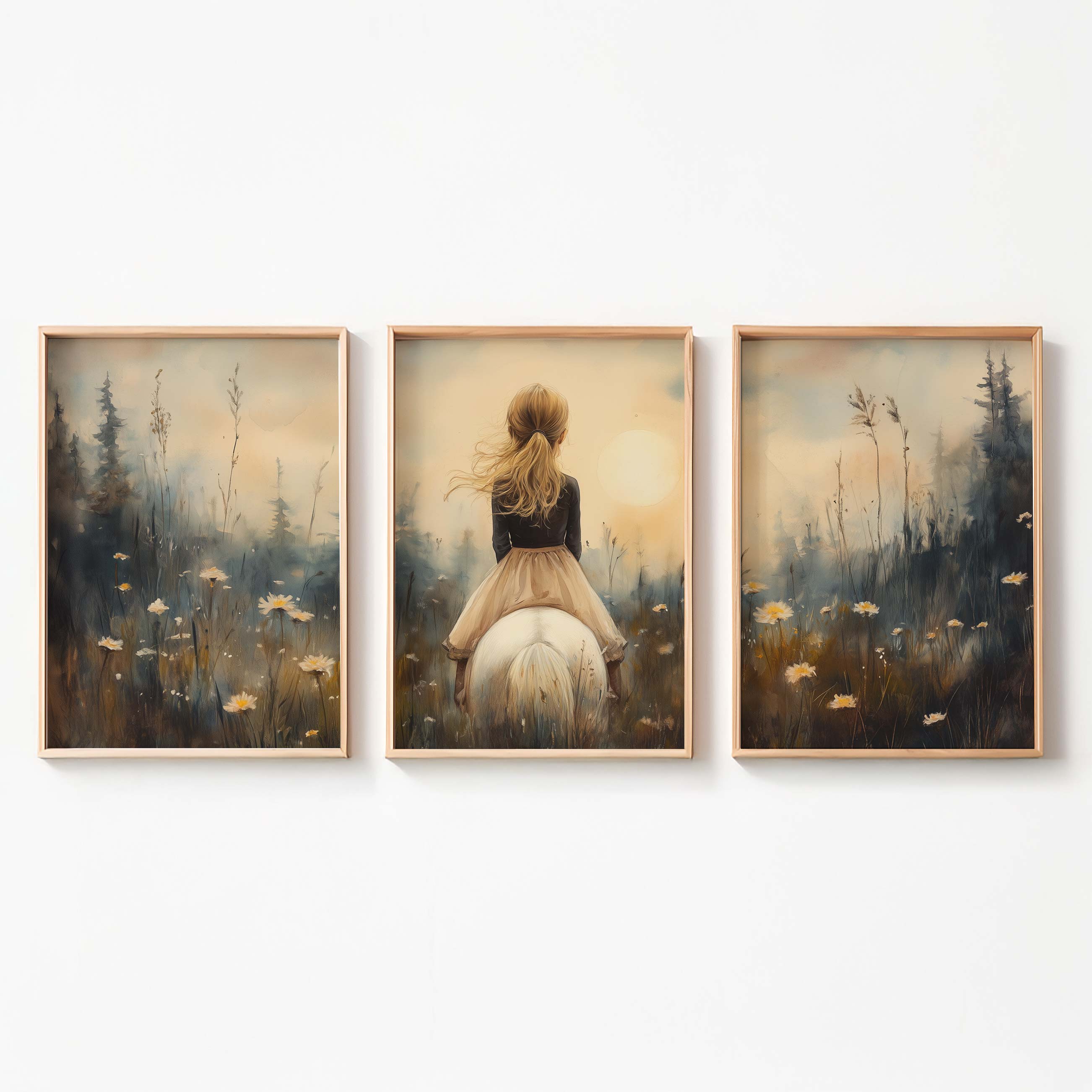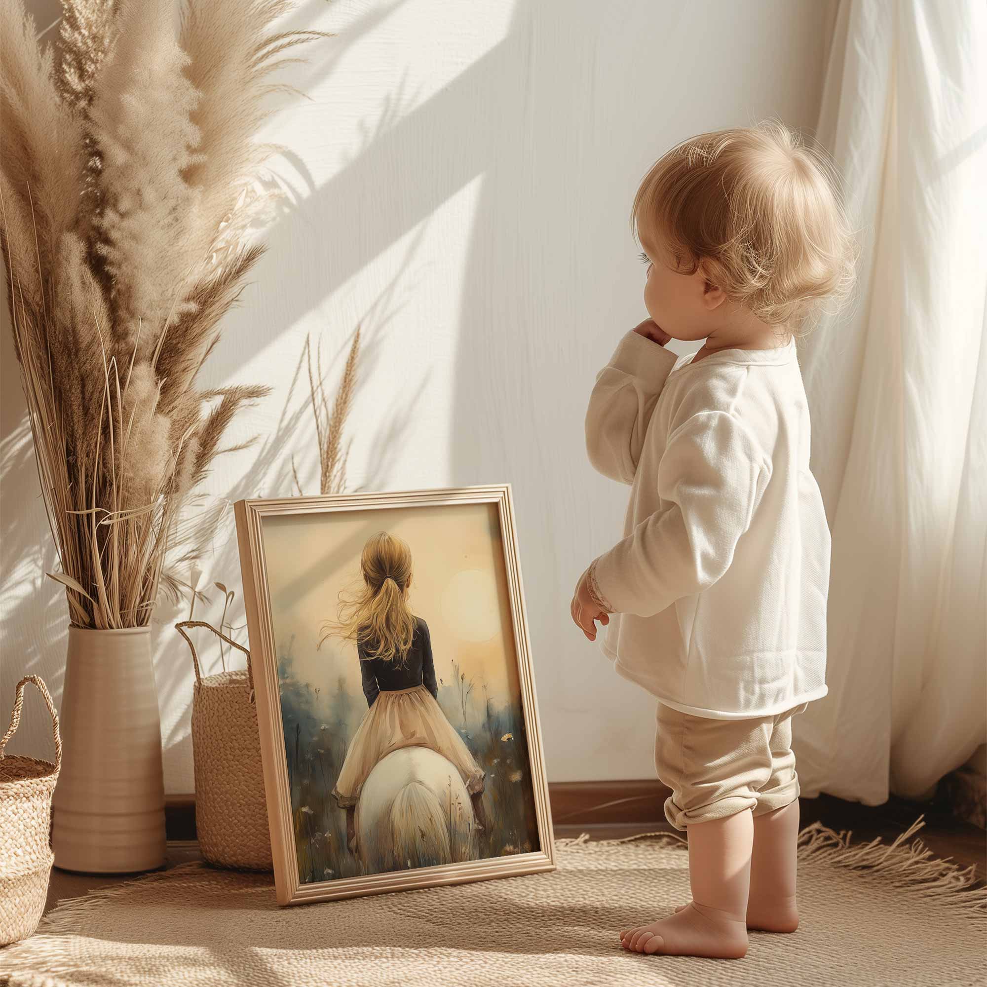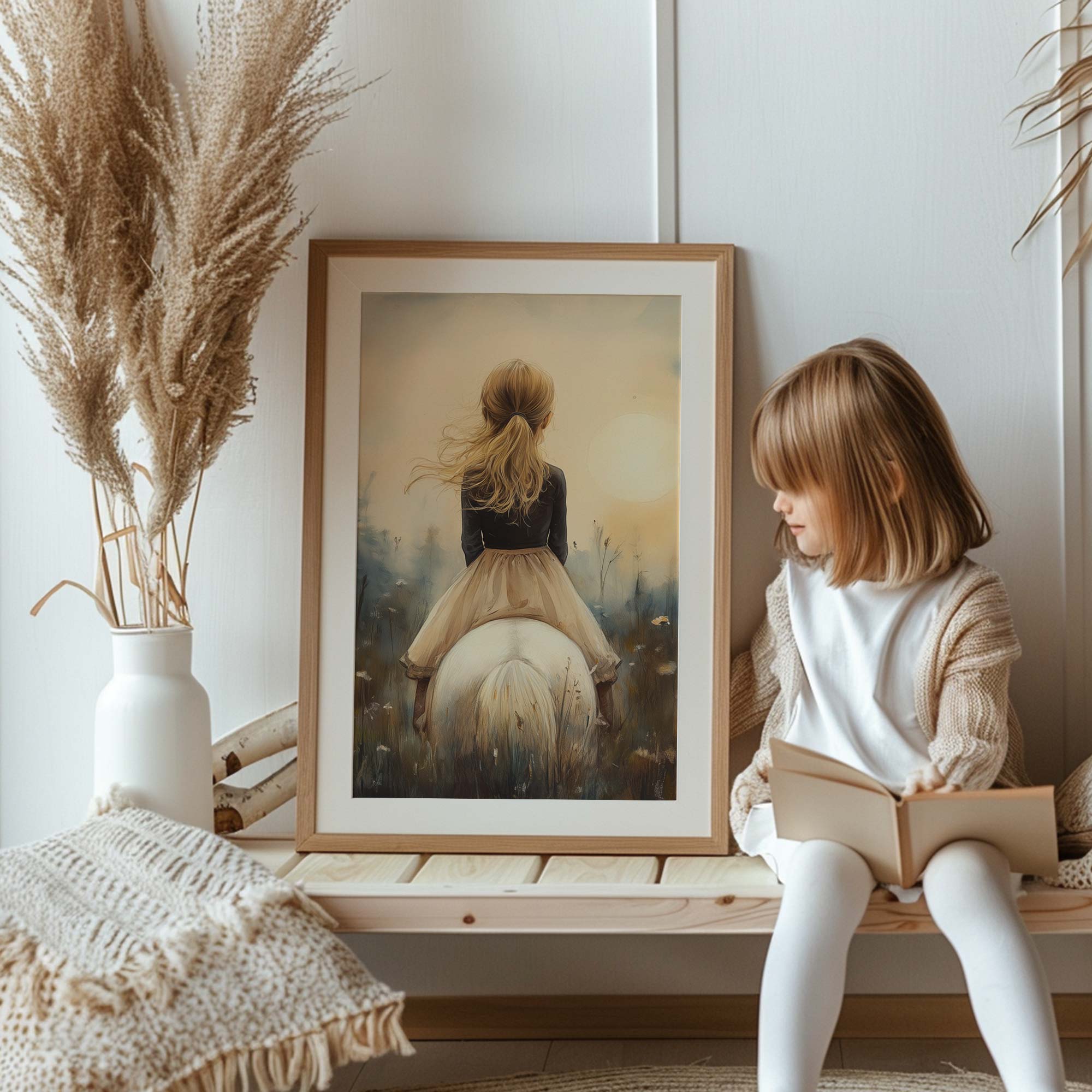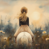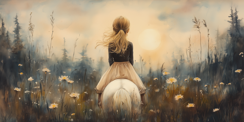 Zacht Droommeisje op Witte Paard in Bloemenveld