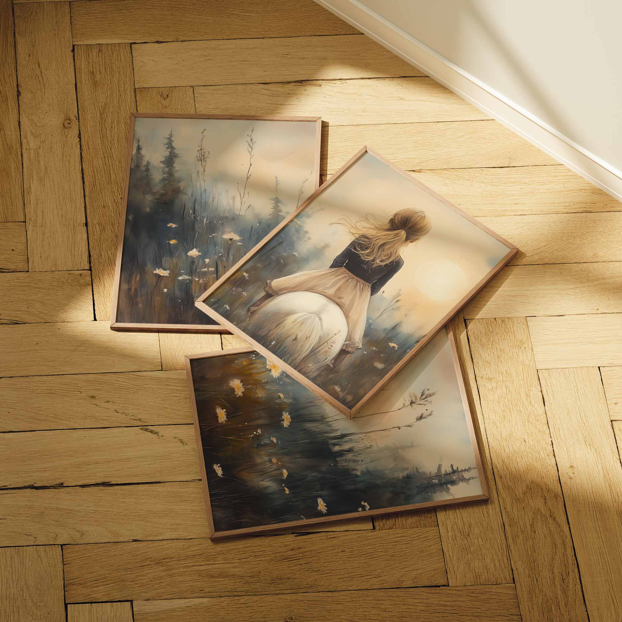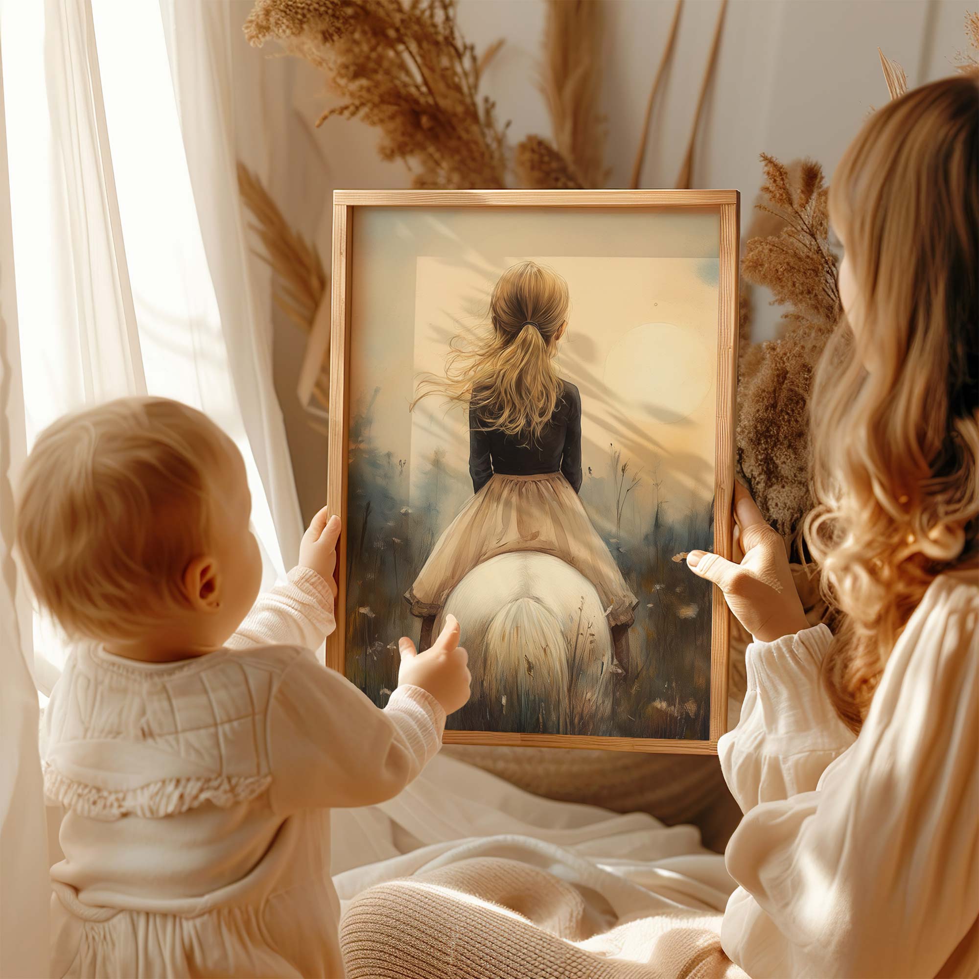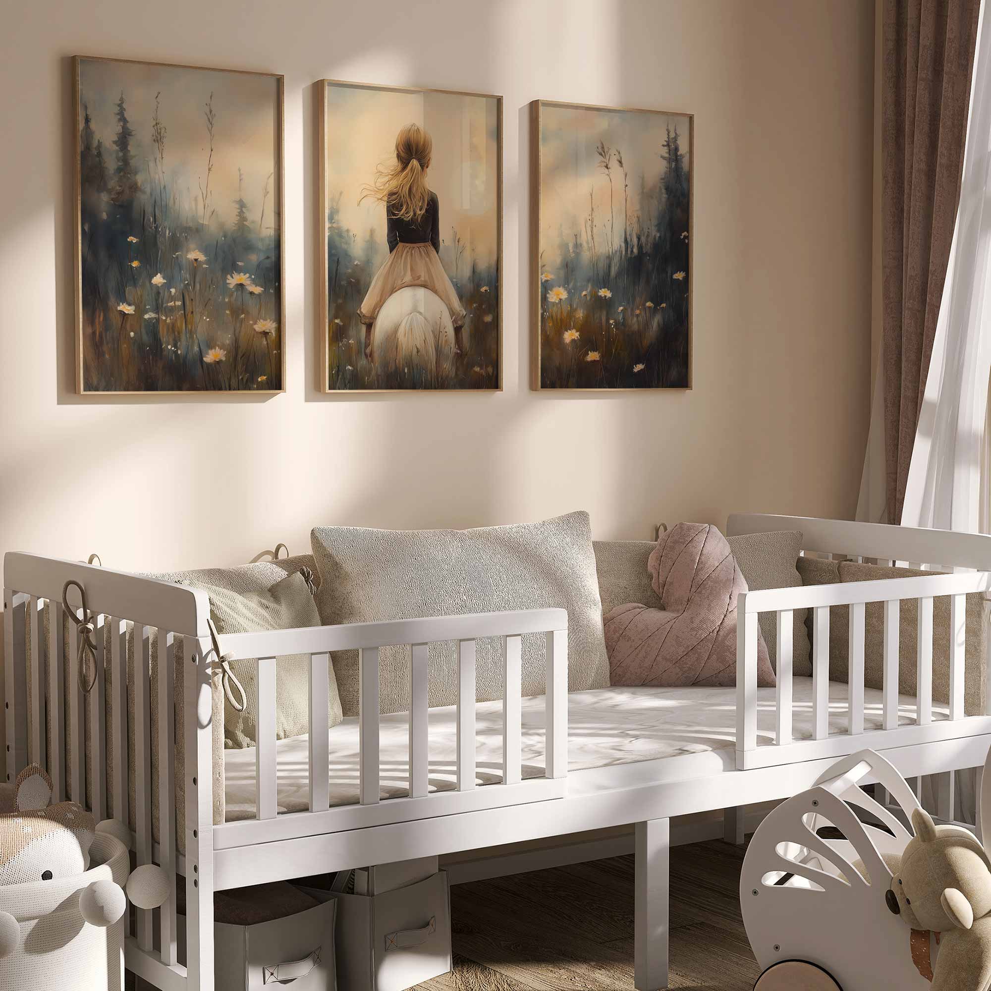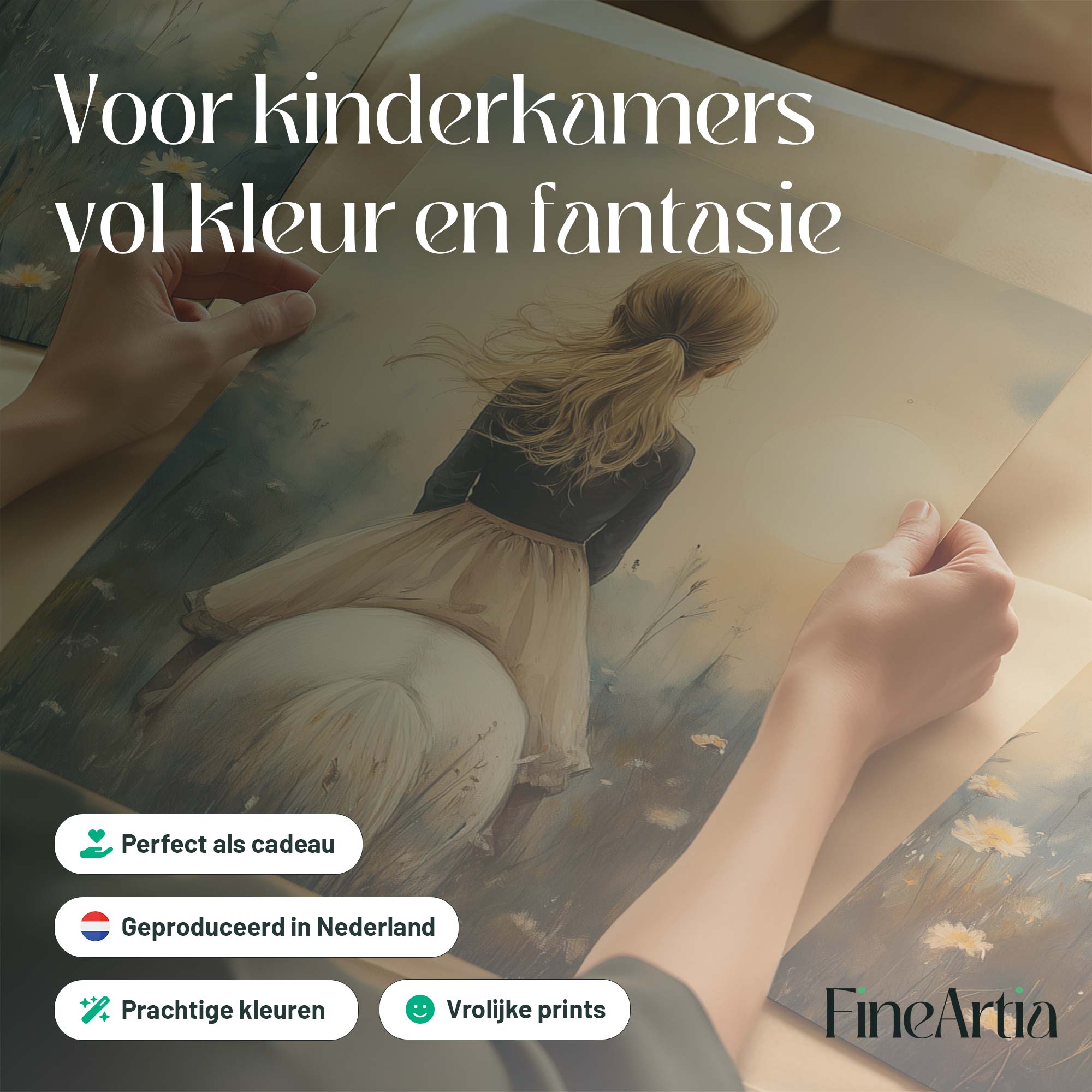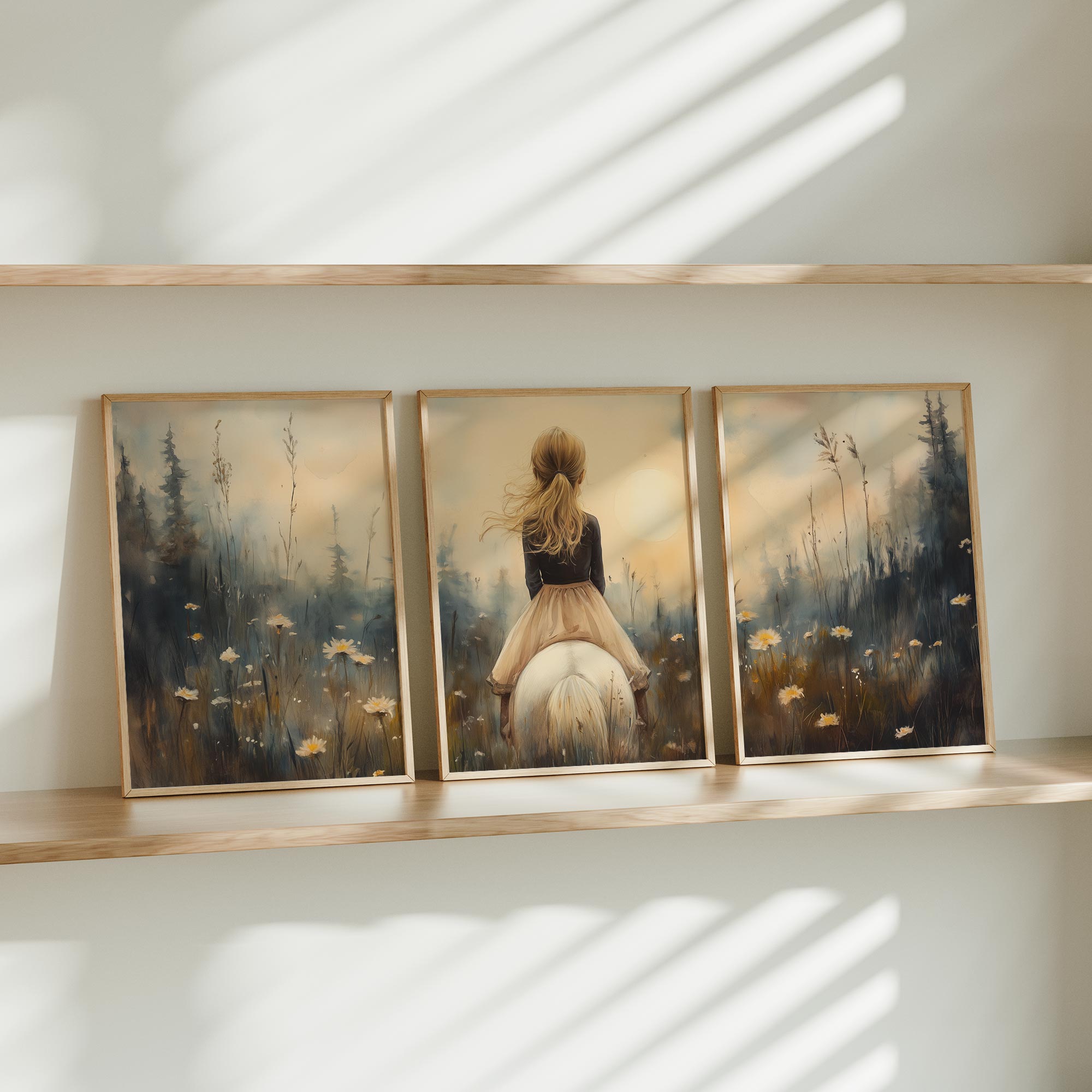 Zacht Droommeisje op Witte Paard in Bloemenveld
