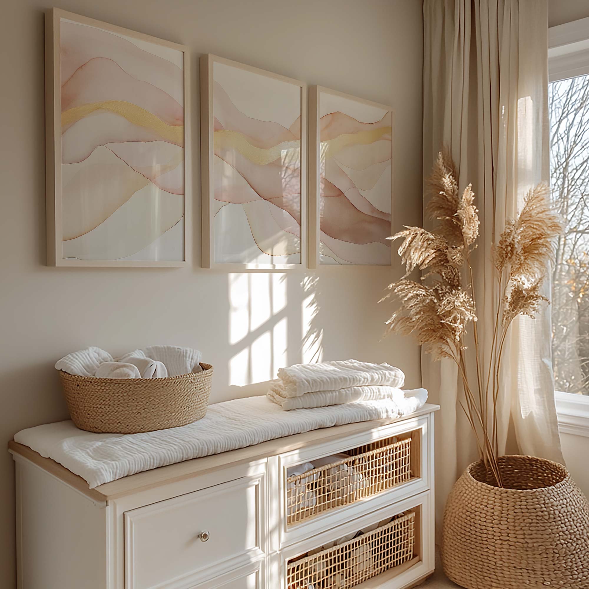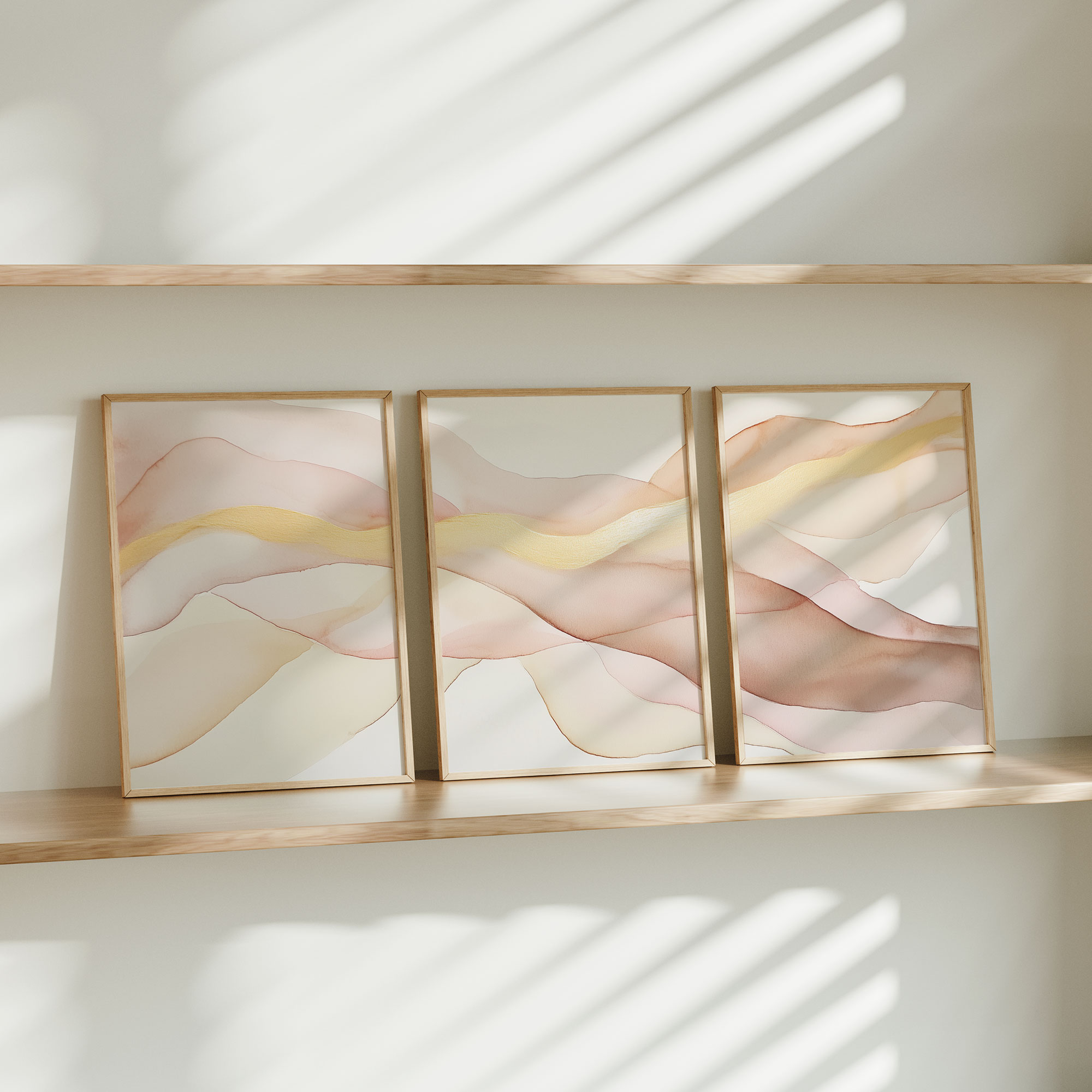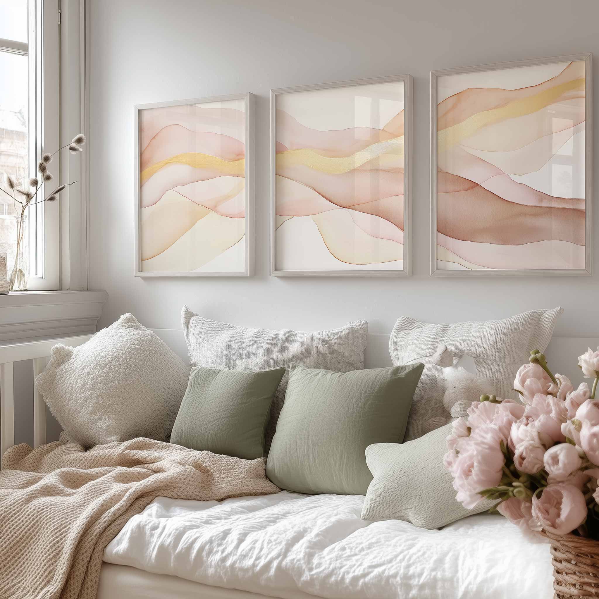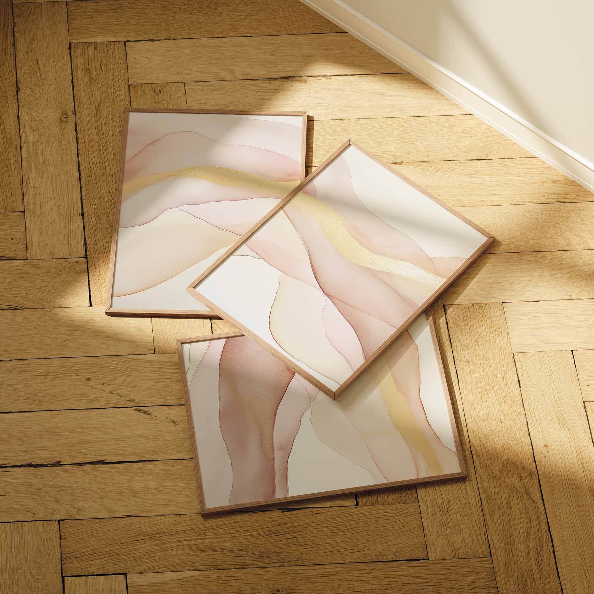 Zacht Fluoressente Abstracte Wanddecoratie in Roze en Beige
