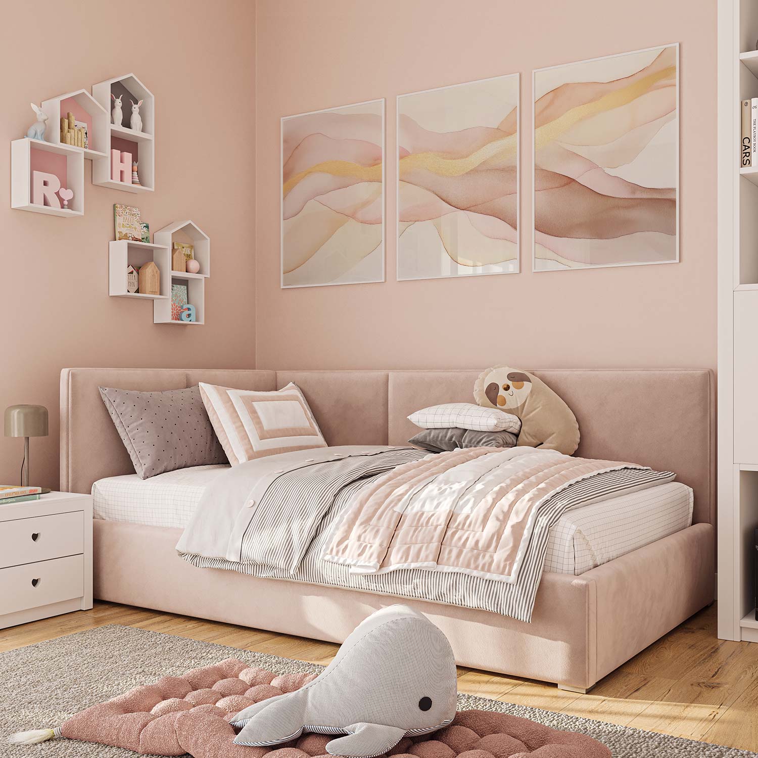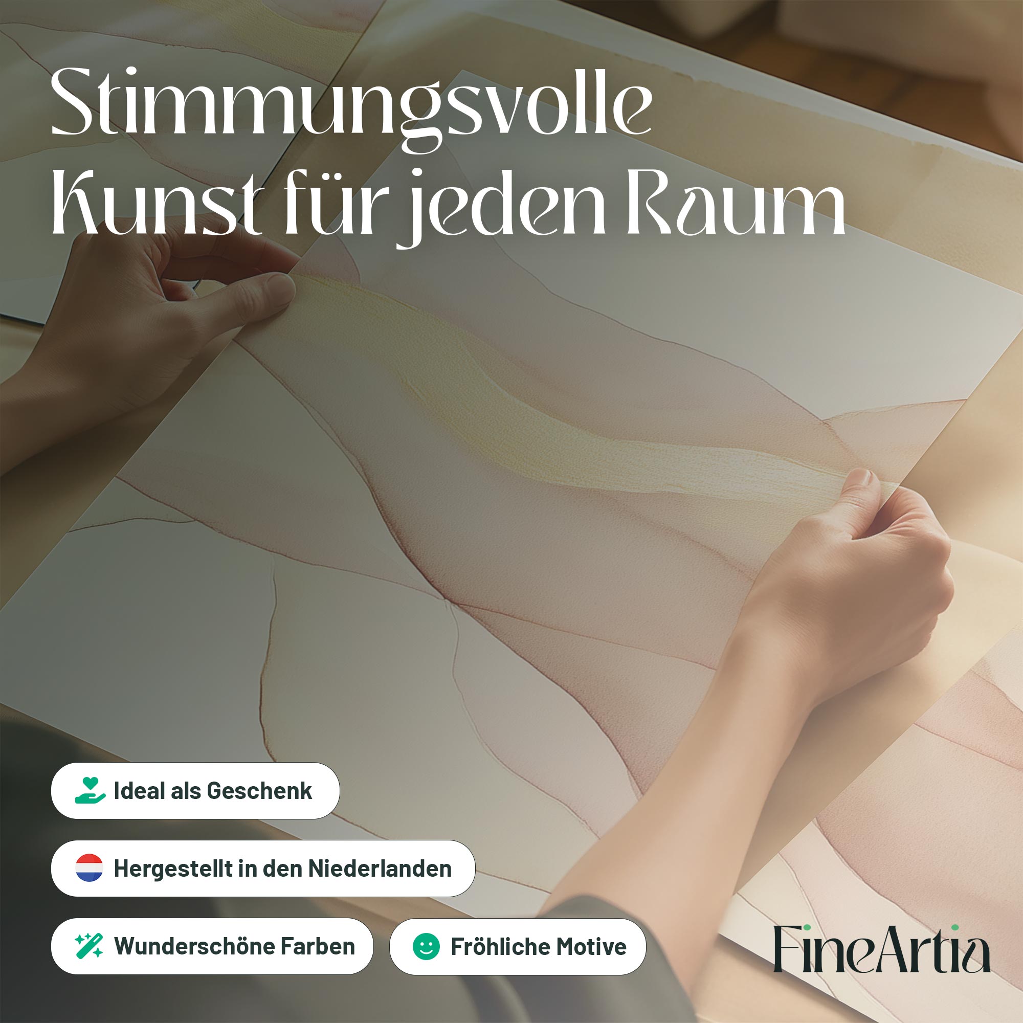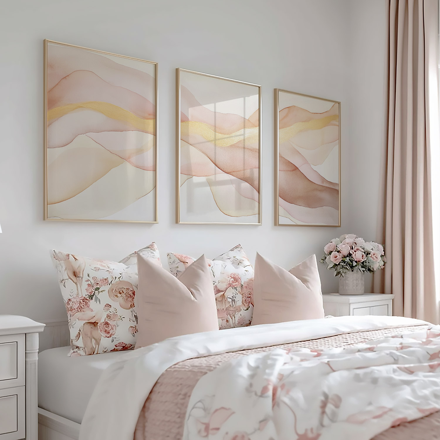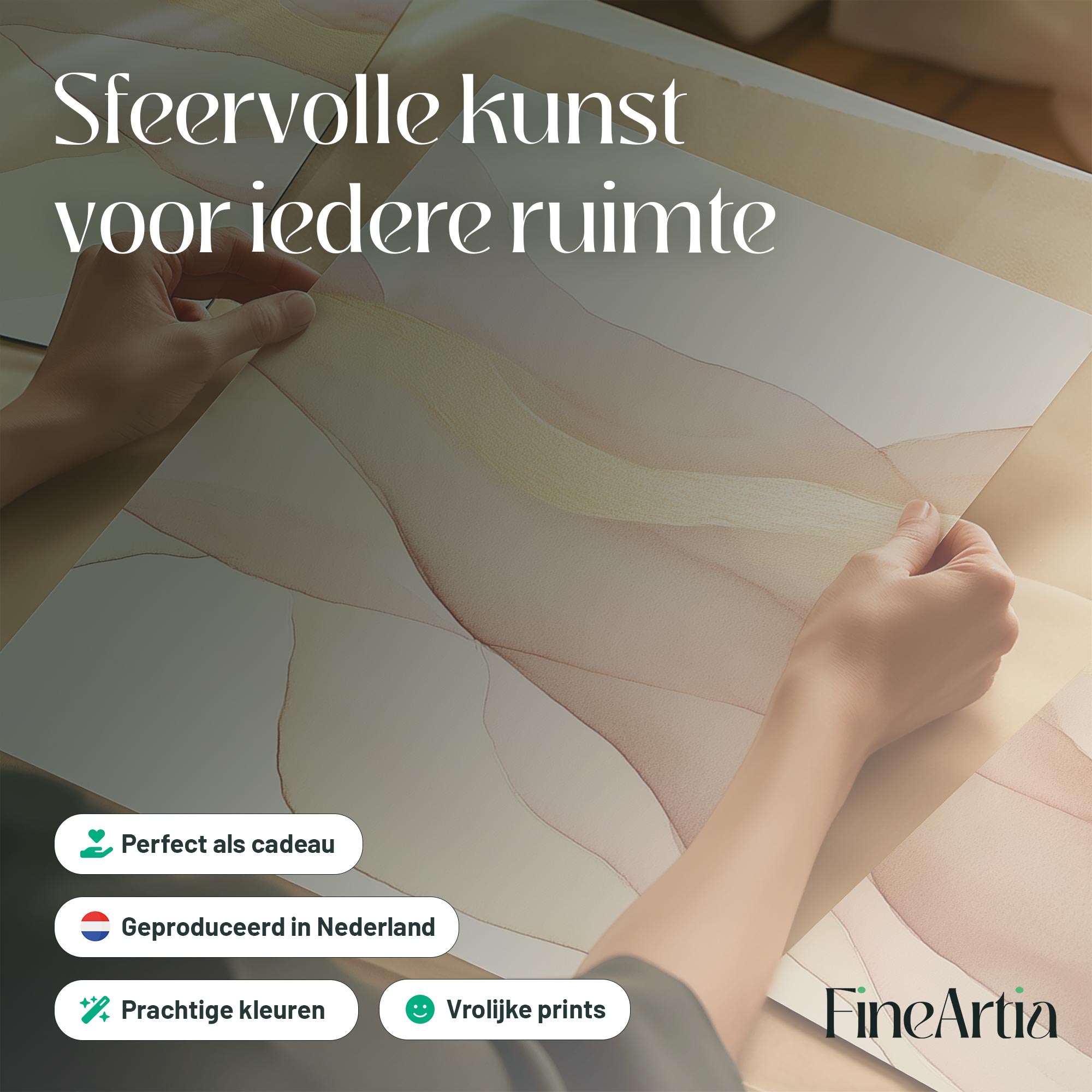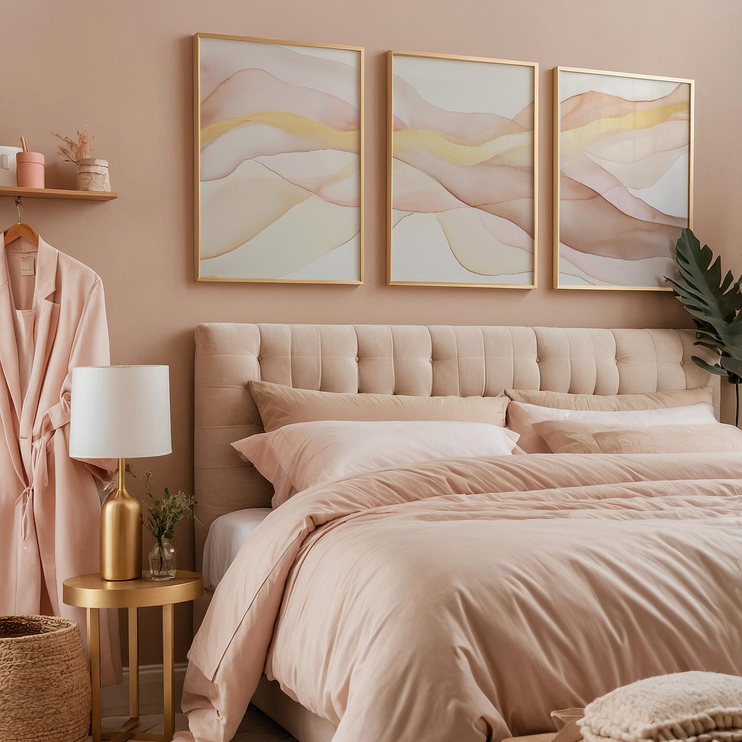 Zacht Fluoressente Abstracte Wanddecoratie in Roze en Beige