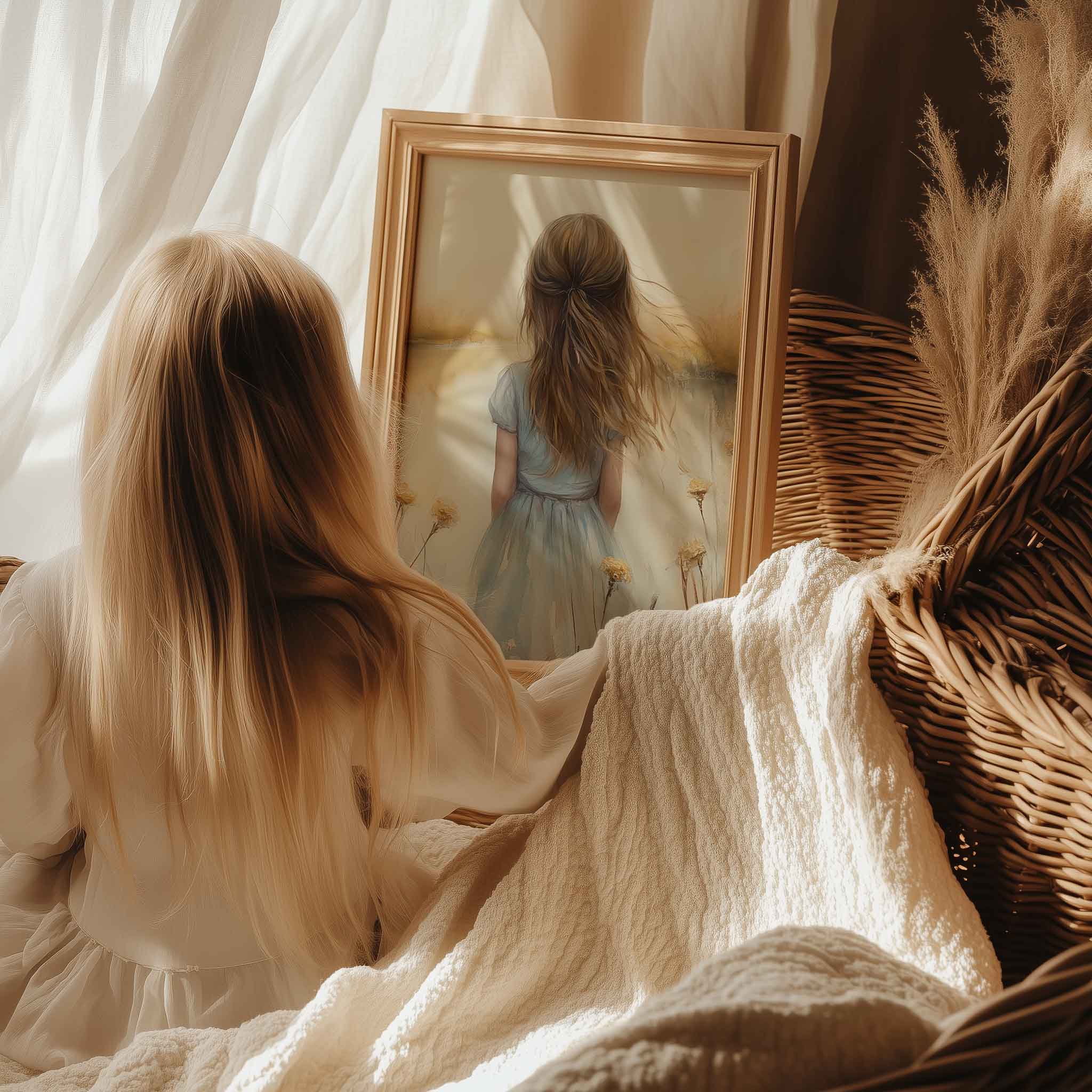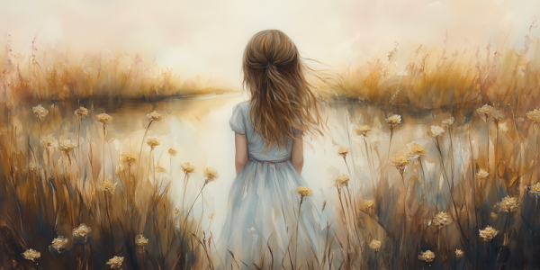 Zacht Geel Meisje in Bloemenveld – Dromerige Sfeer