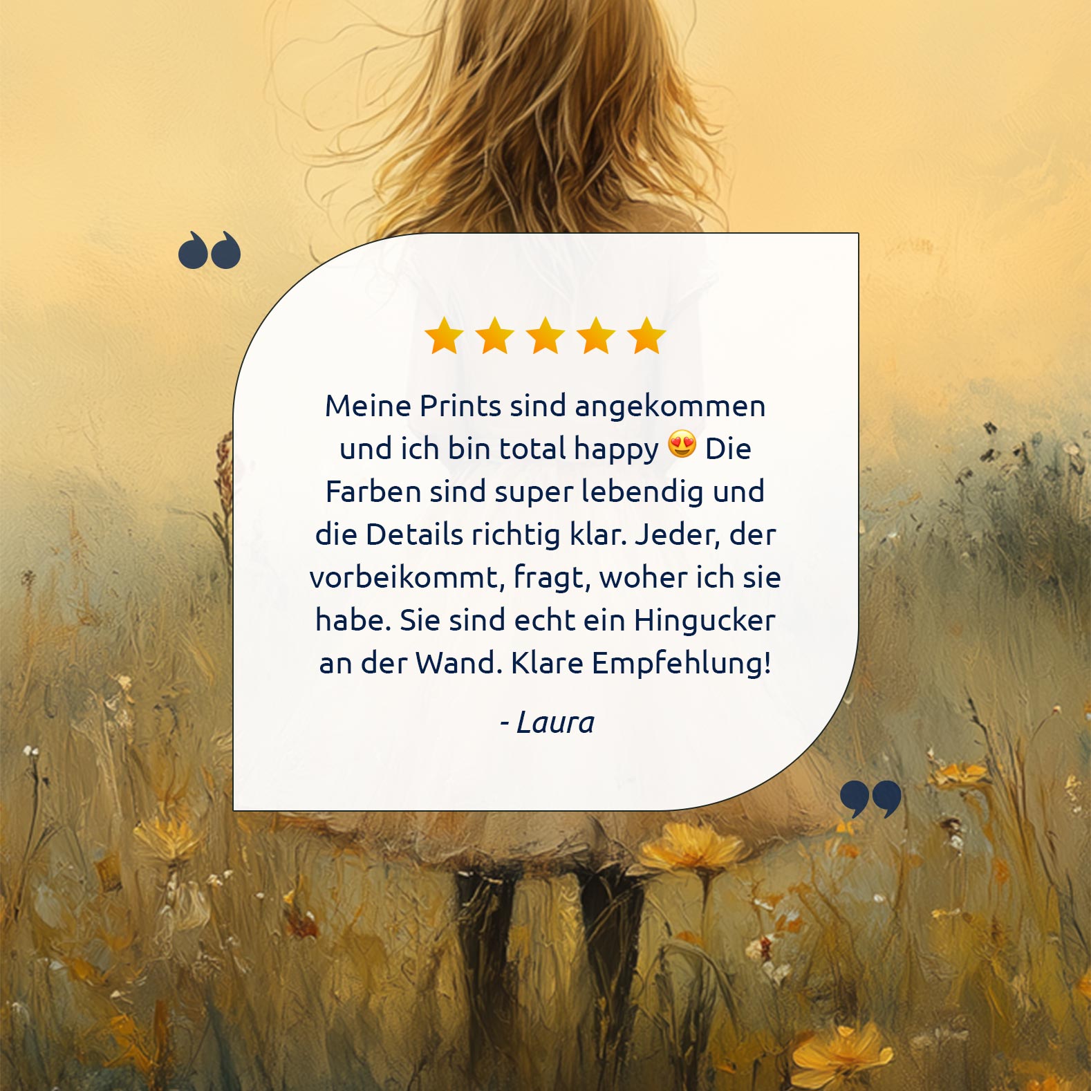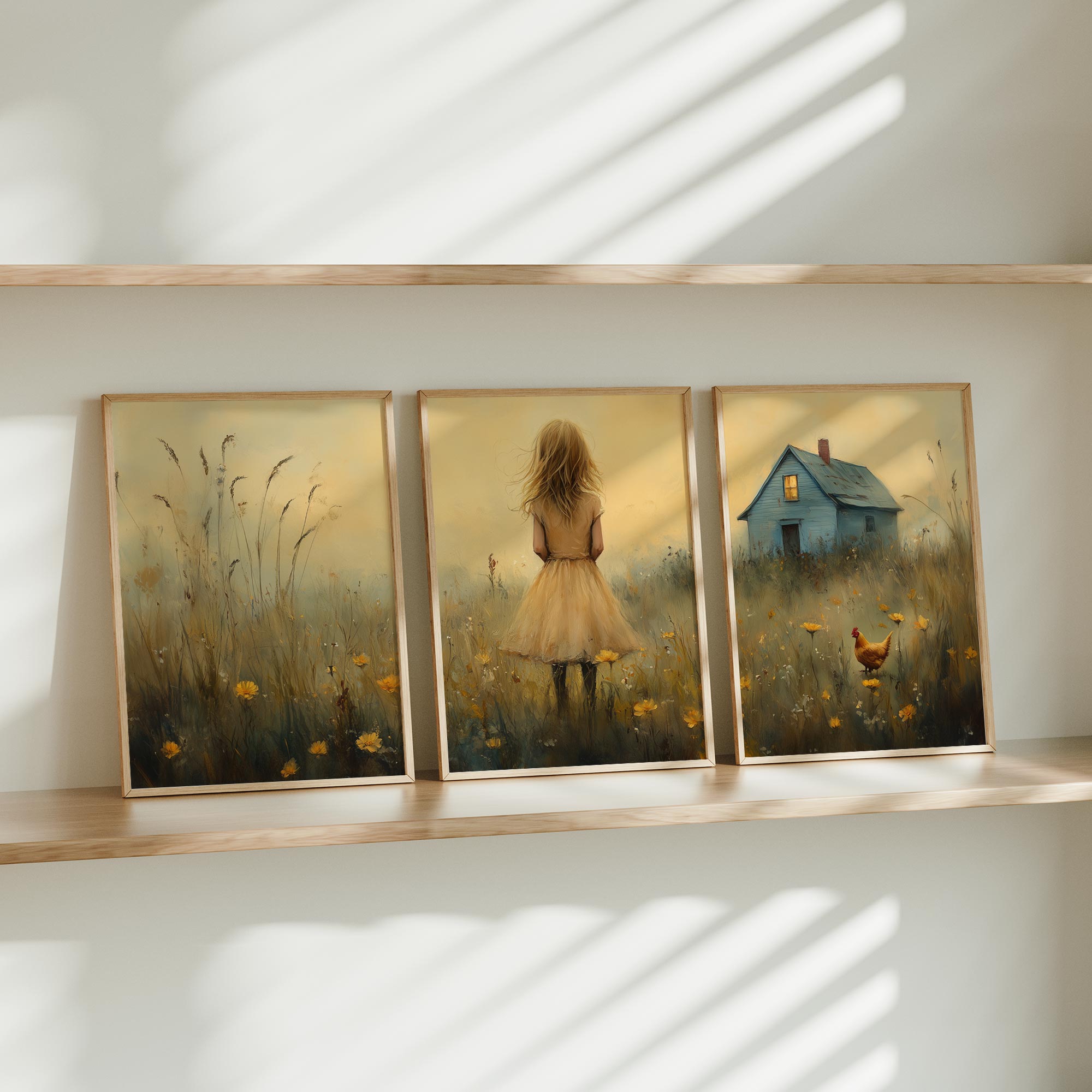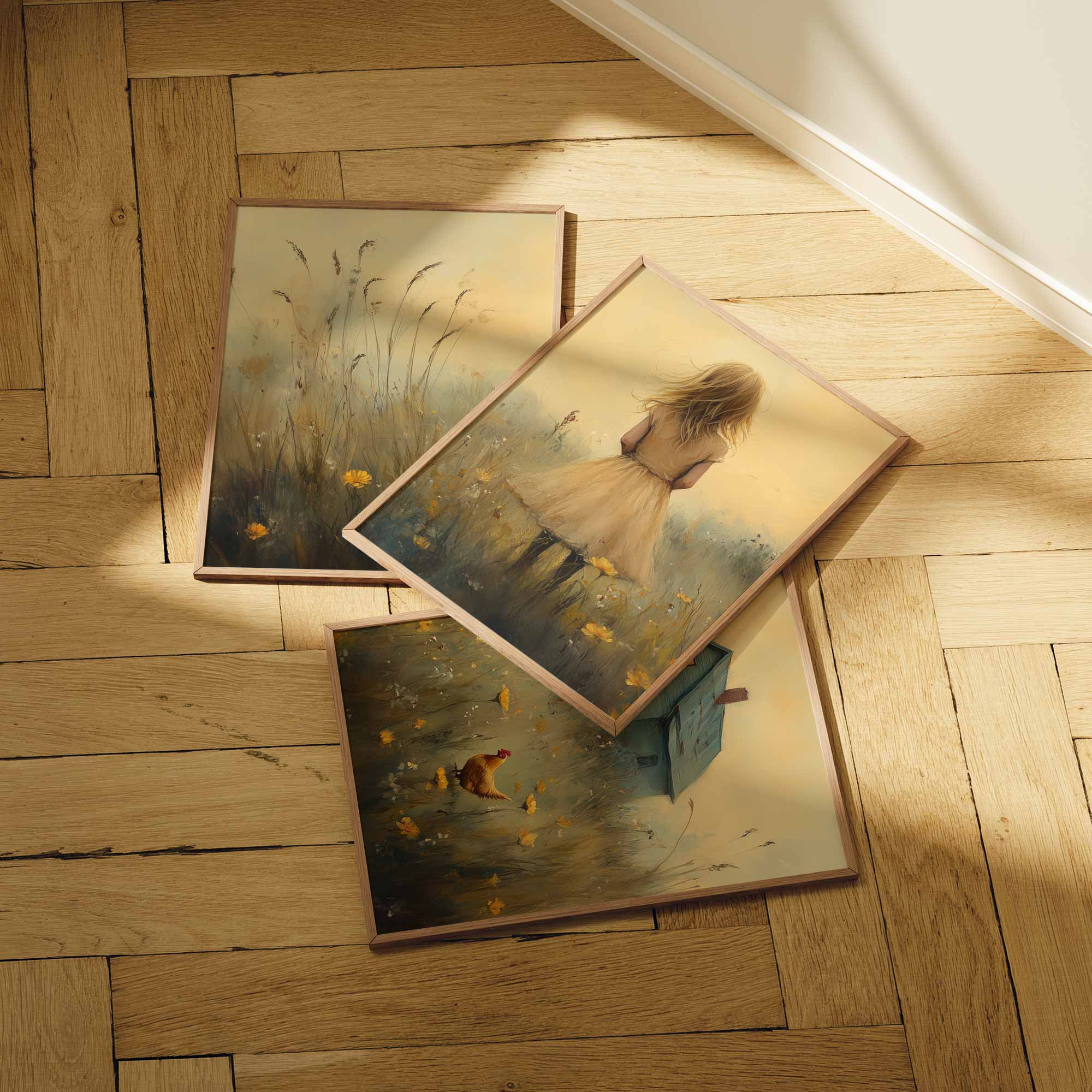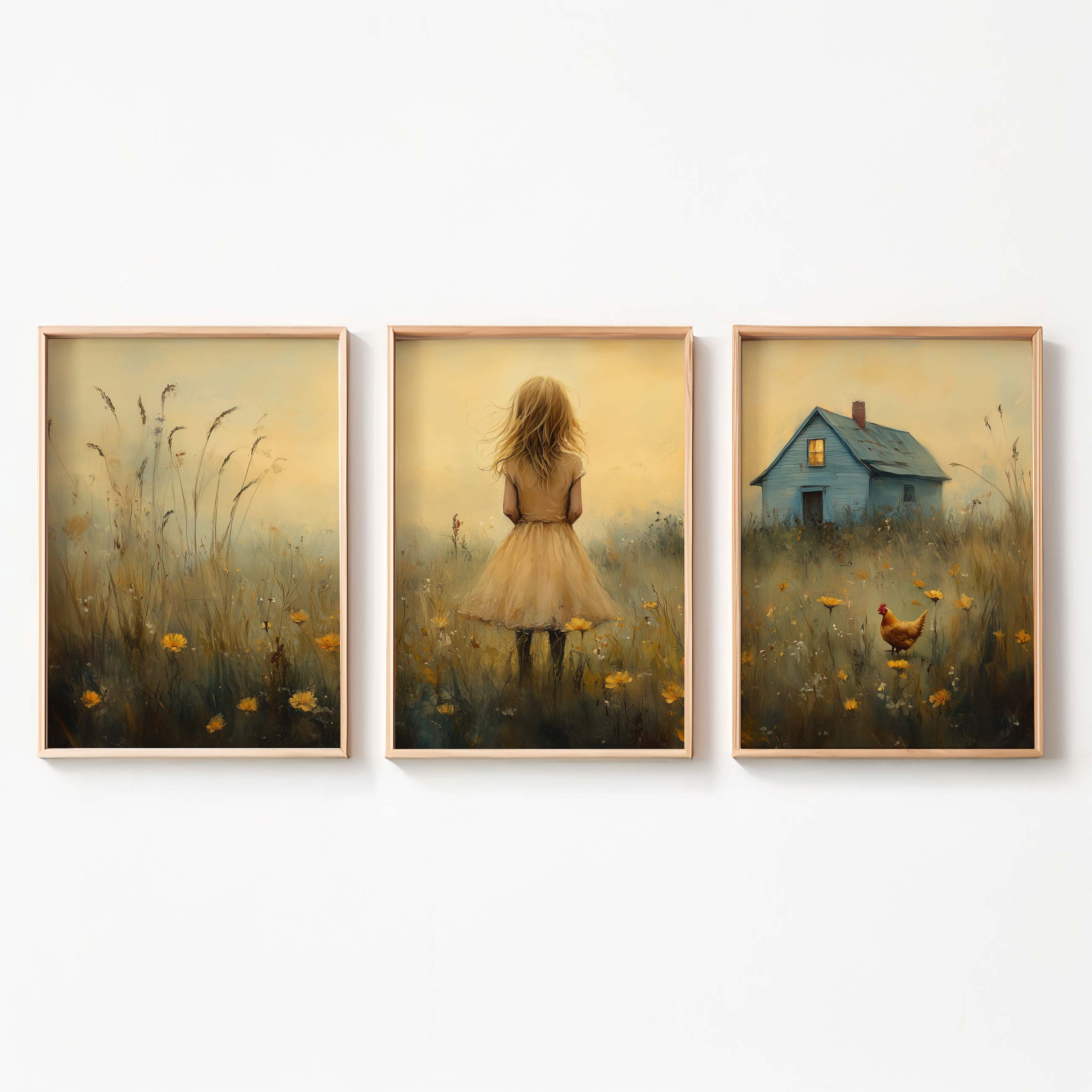 Zacht Geel Meisje in Bloemenveld met Blauw Huis