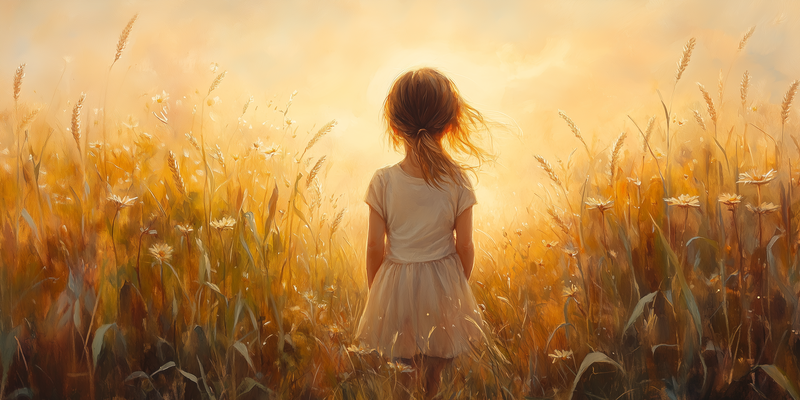Zacht Gouden Veld – Meisje in Witte Jurk