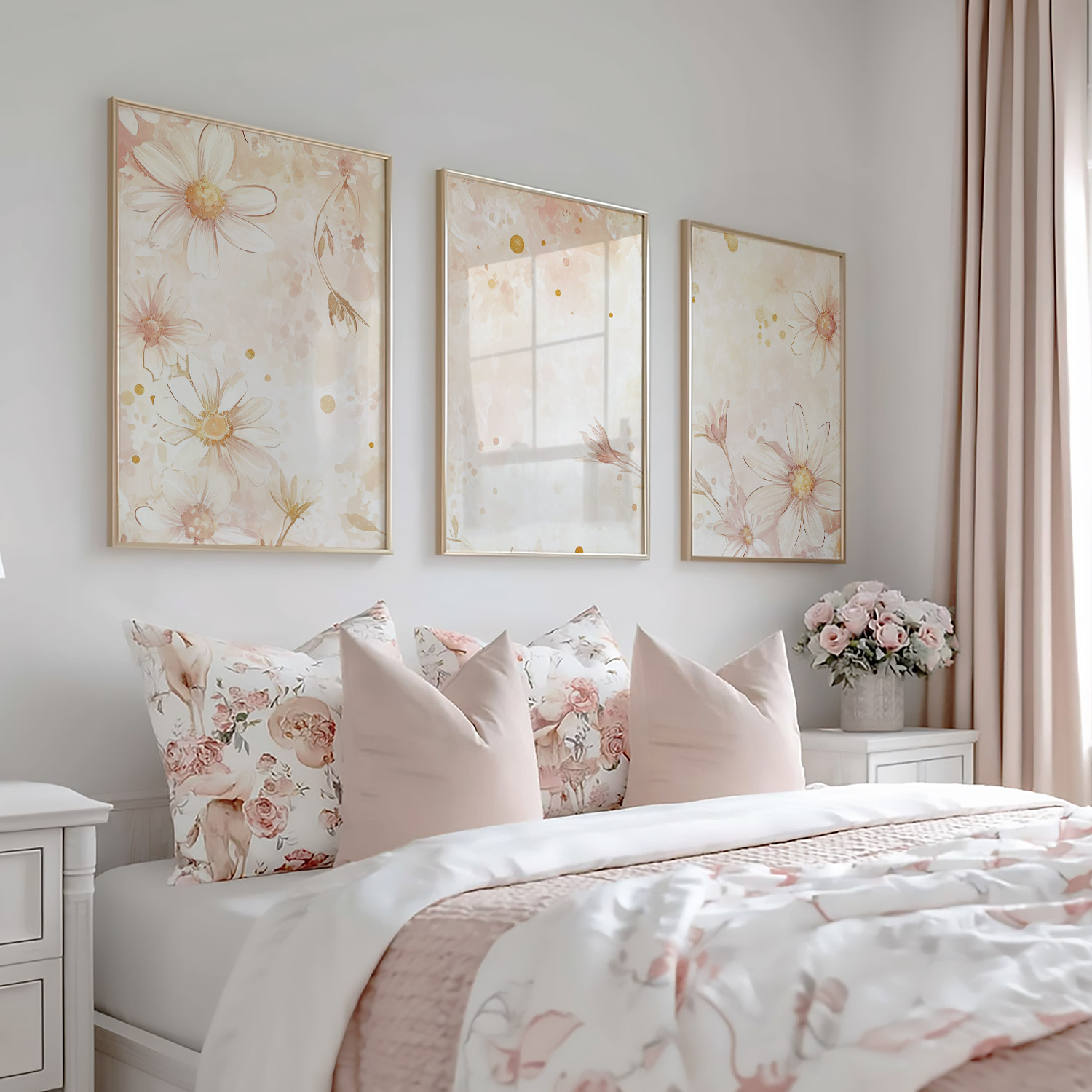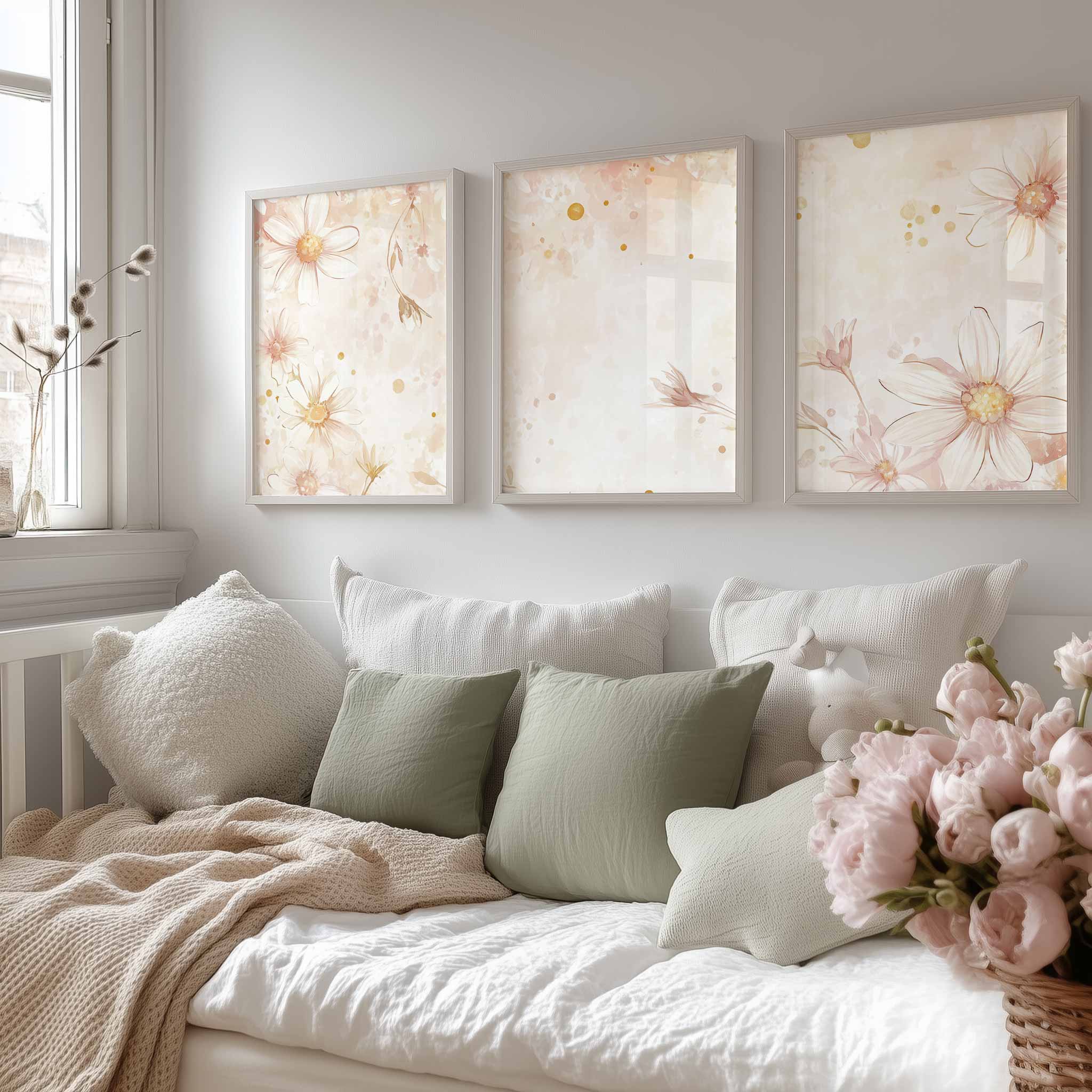 Zacht Pastel Bloemen Watercolor Wanddecoratie