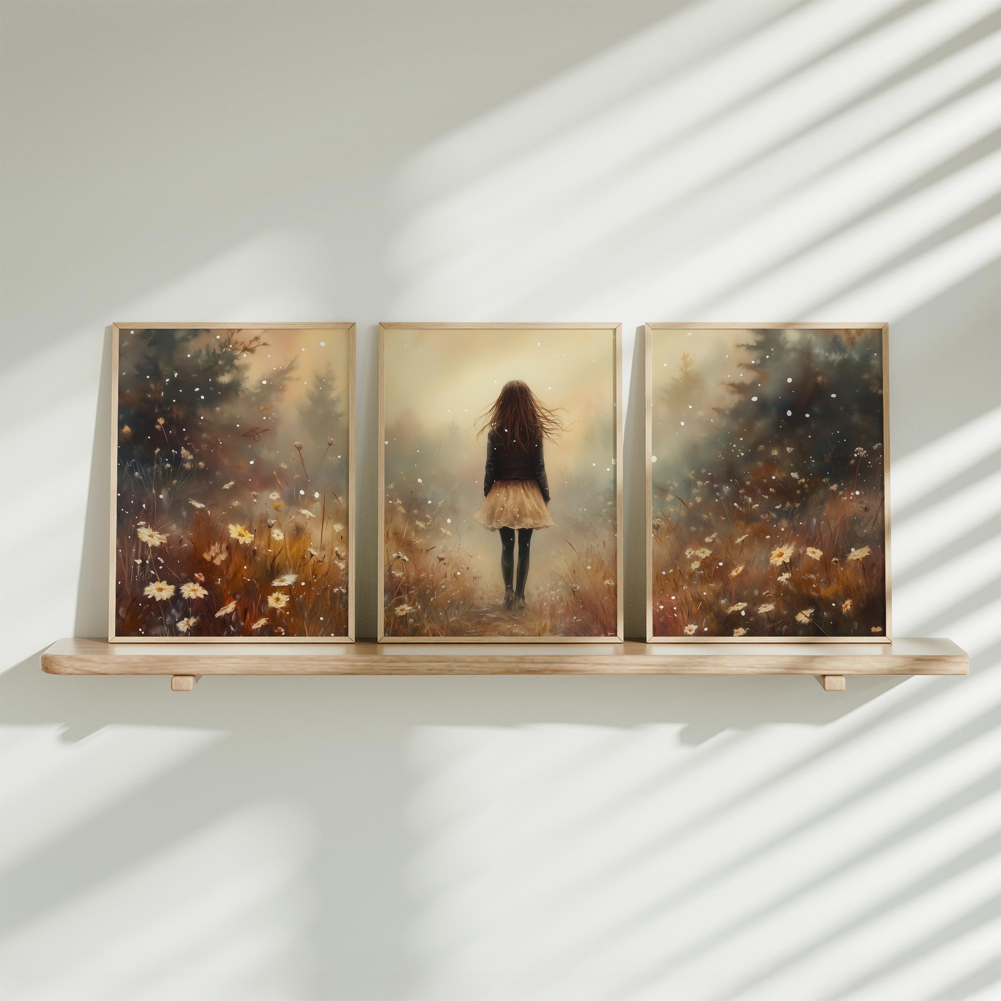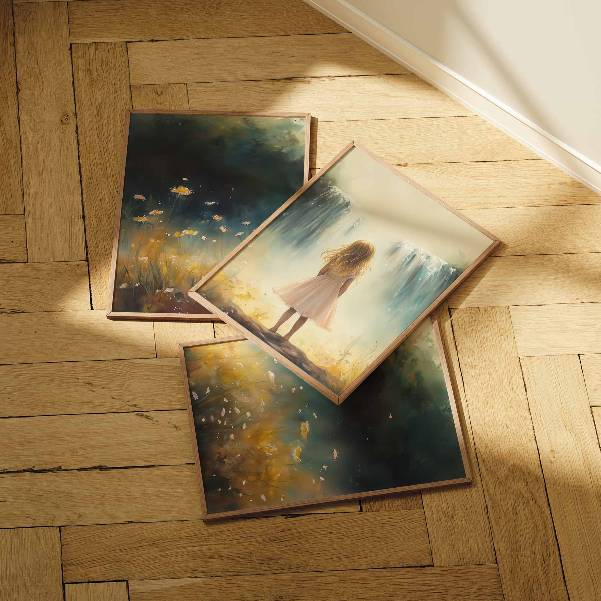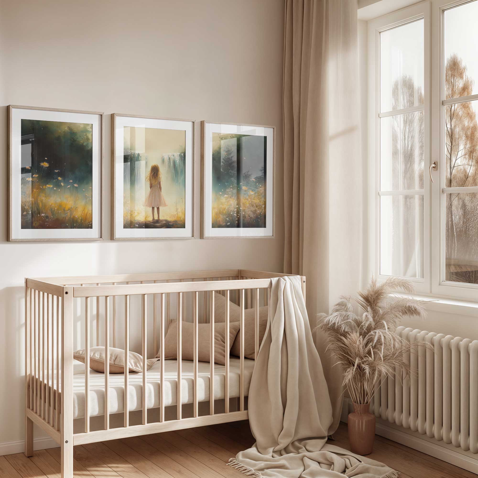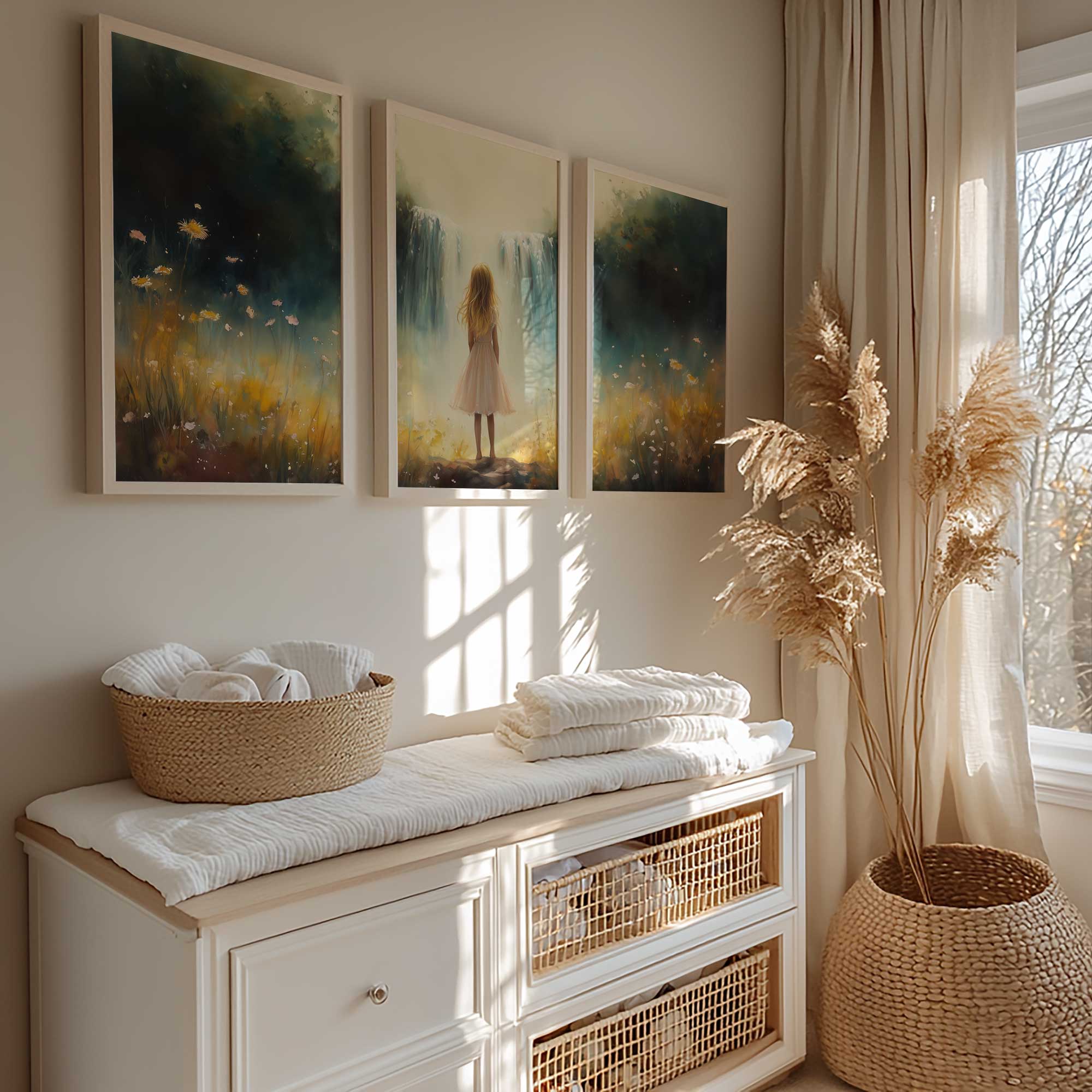 Zacht Pastel Meisje bij Waterval en Bloemen