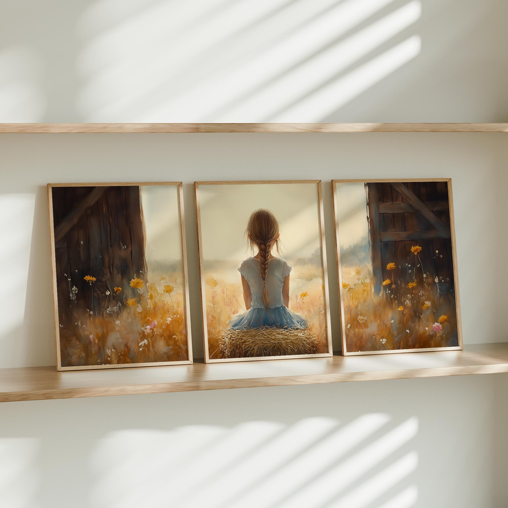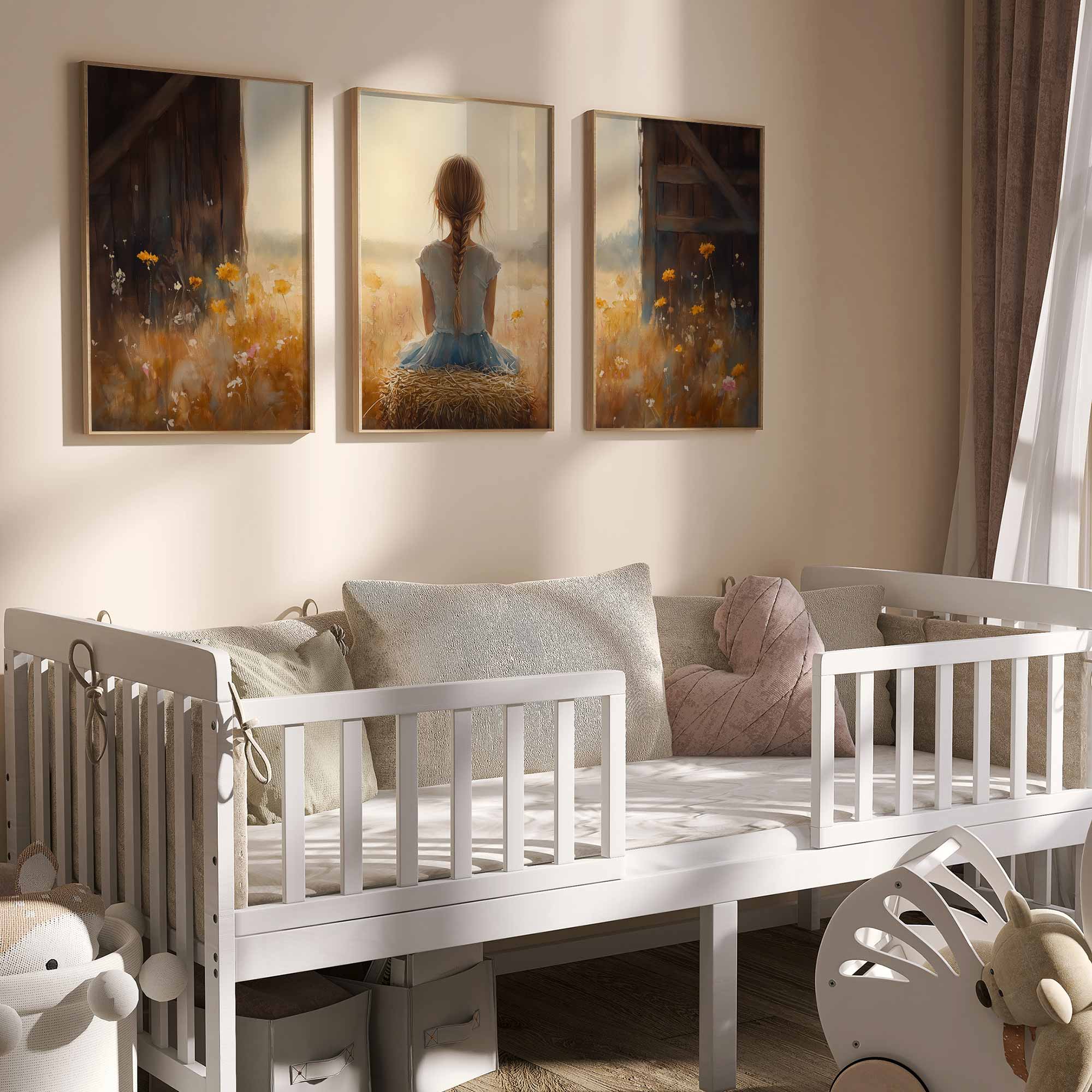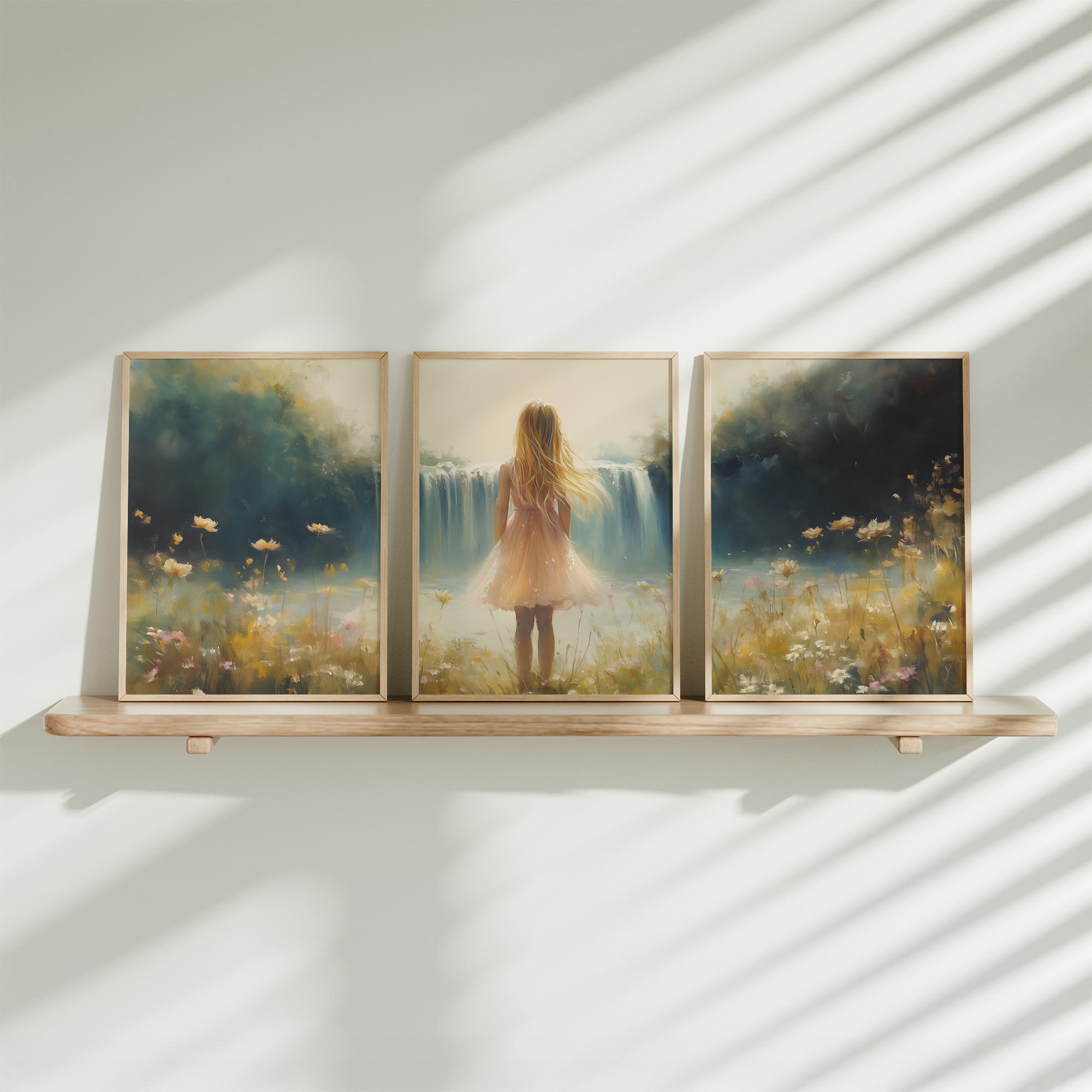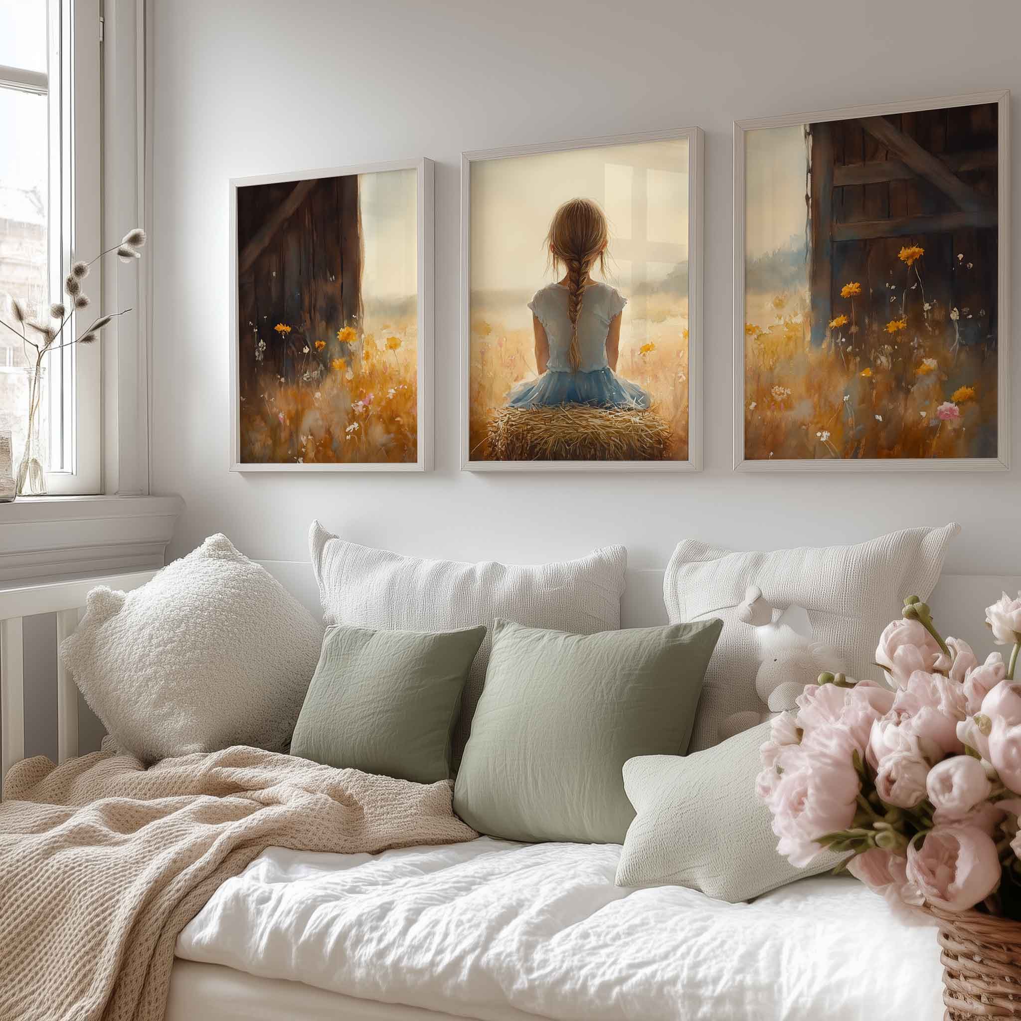 Zacht Pastel Meisje in Blauw tussen Bloemenveld