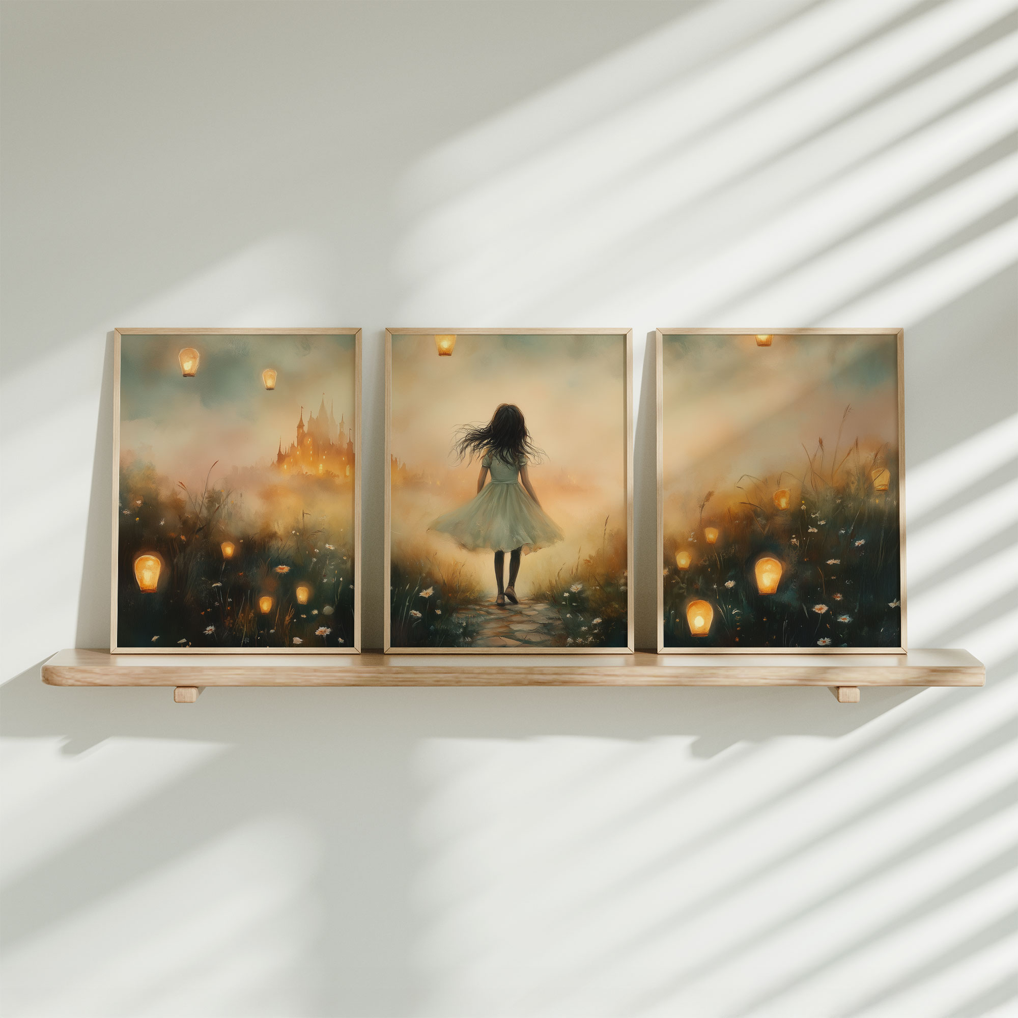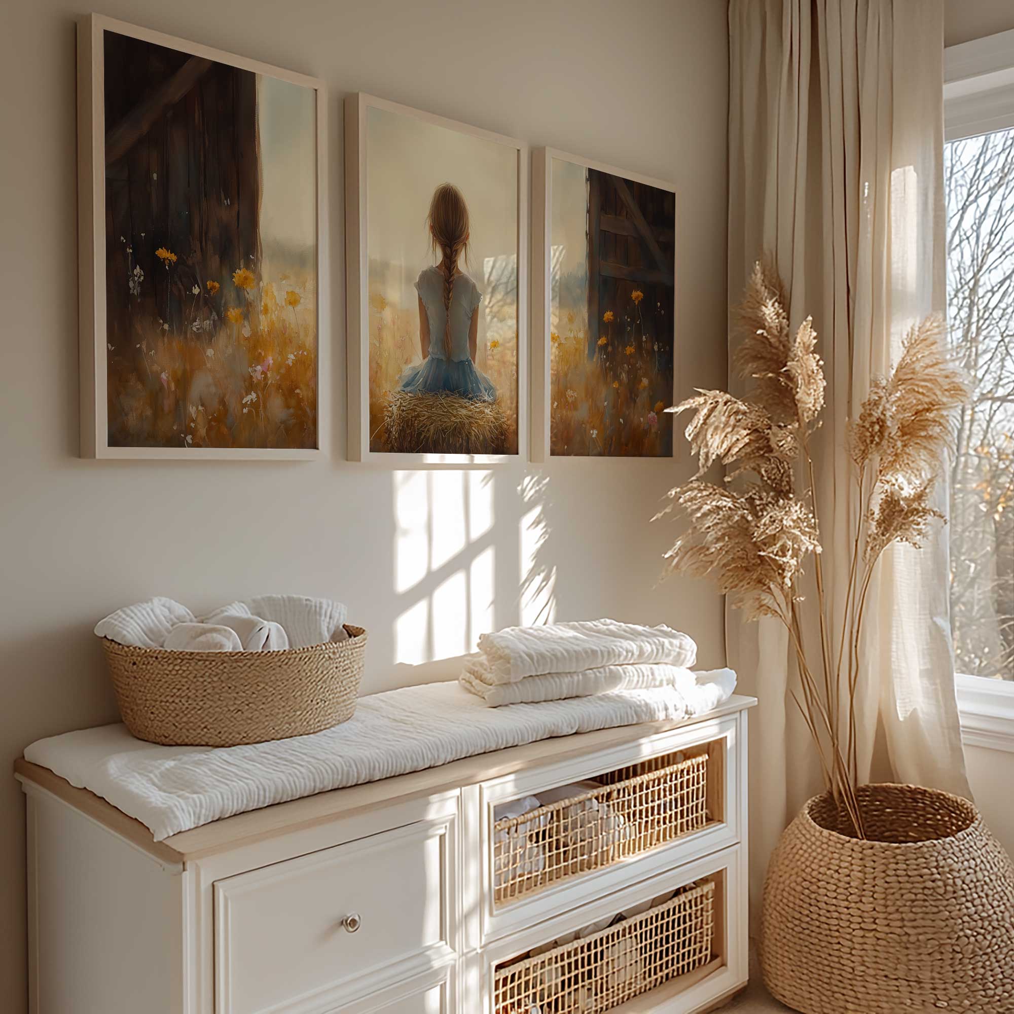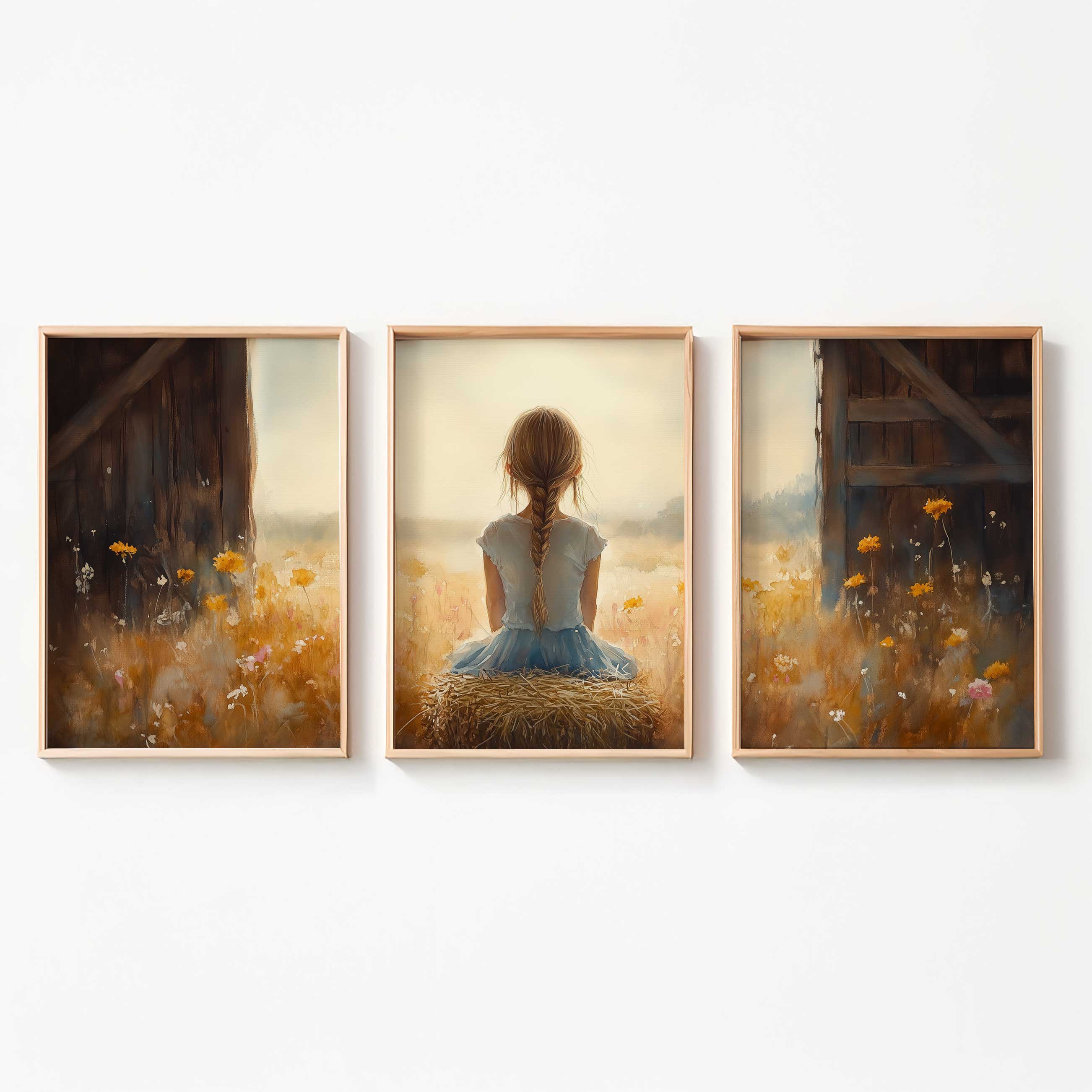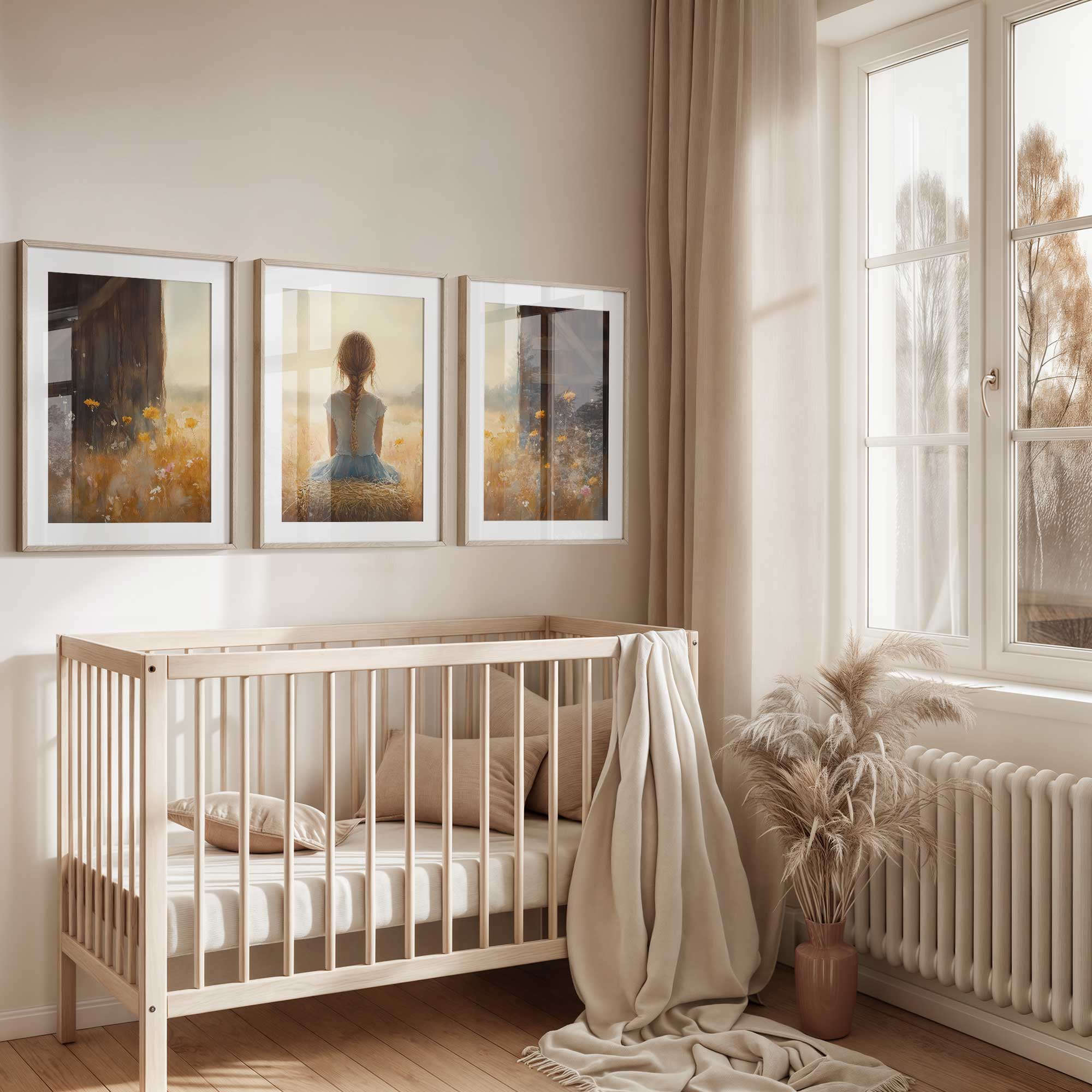 Zacht Pastel Meisje in Blauw tussen Bloemenveld