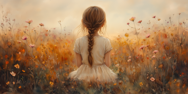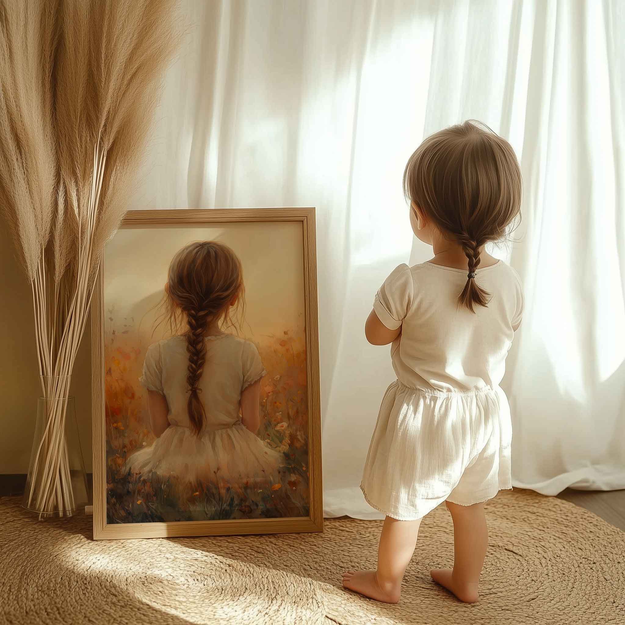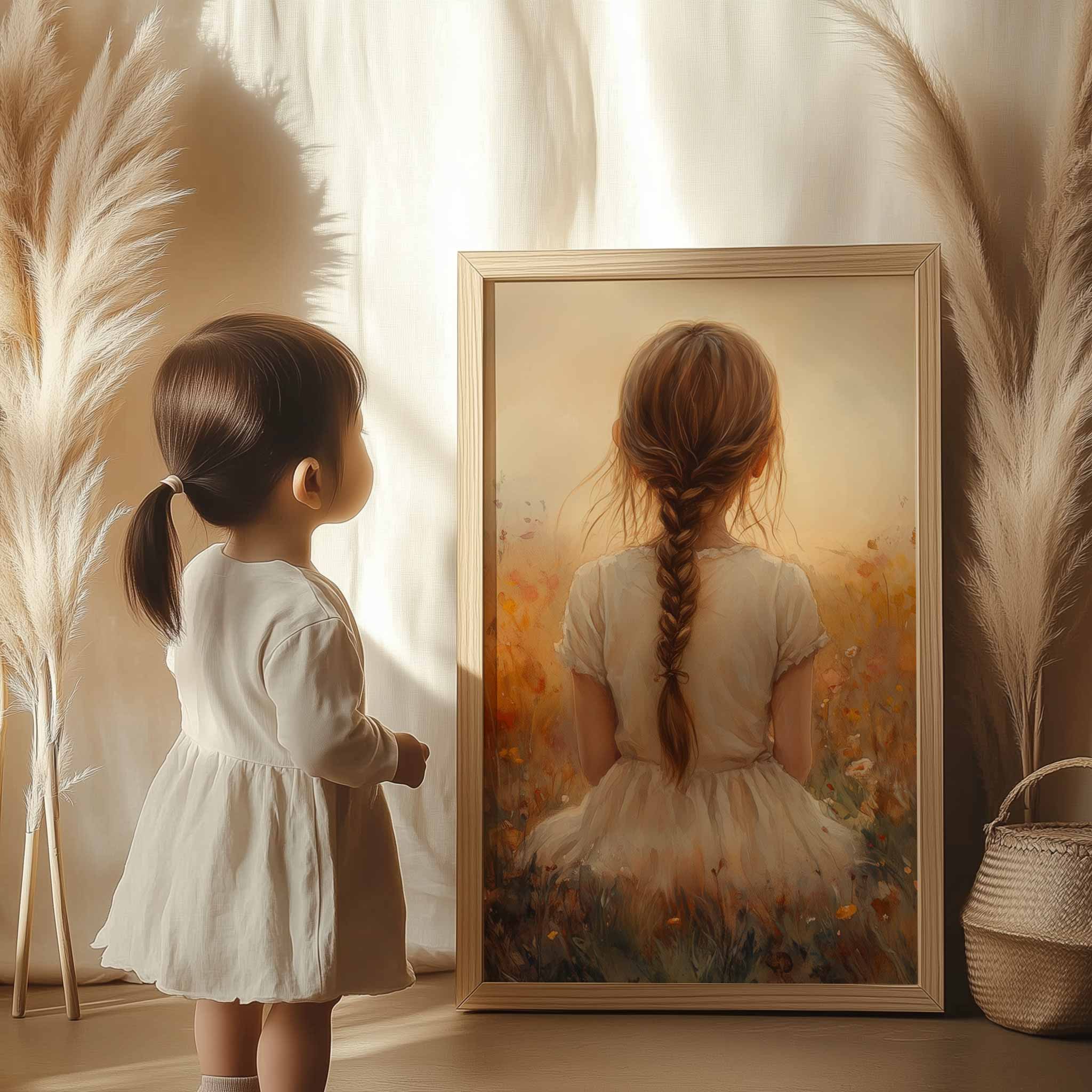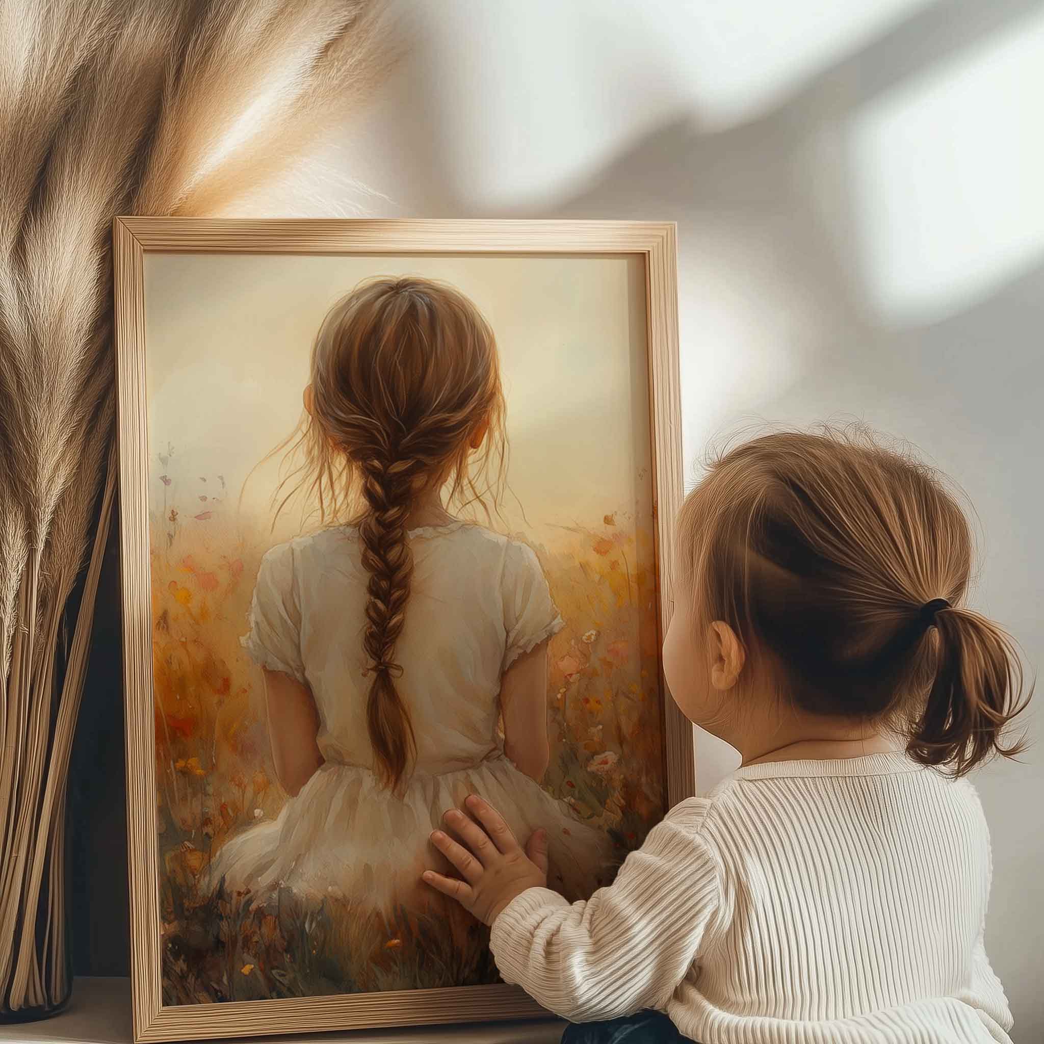 Terug naar collectie Posters Zacht Pastel Meisje in Bloemenveld
