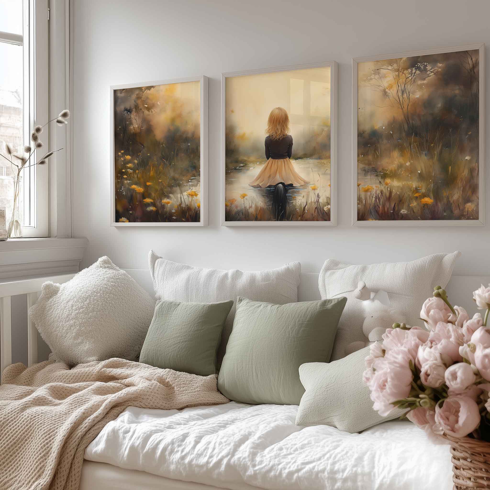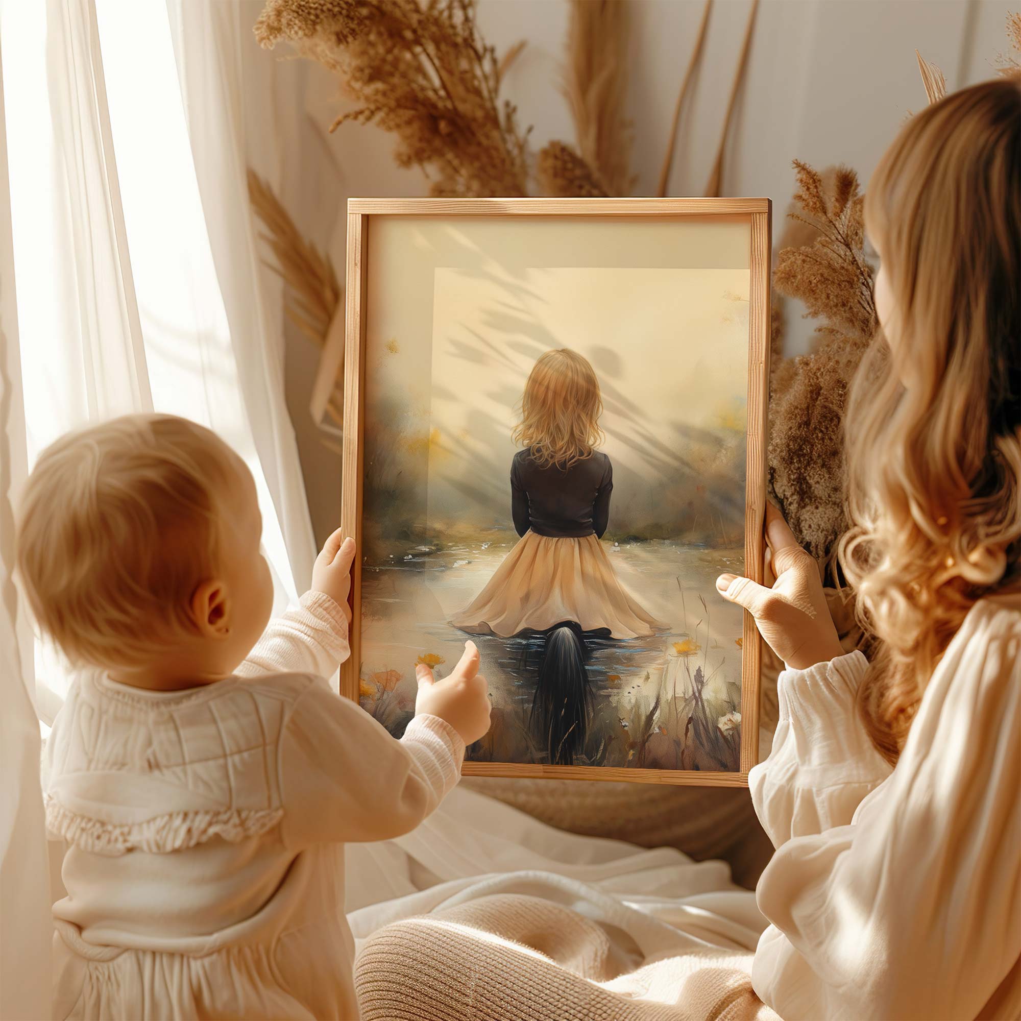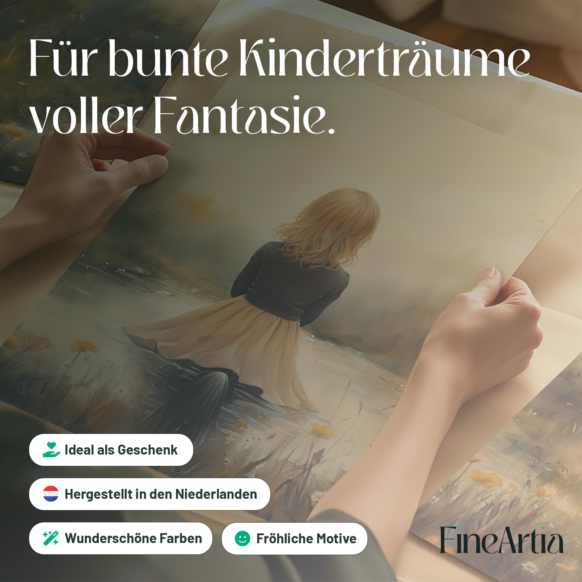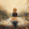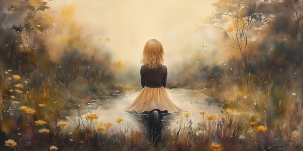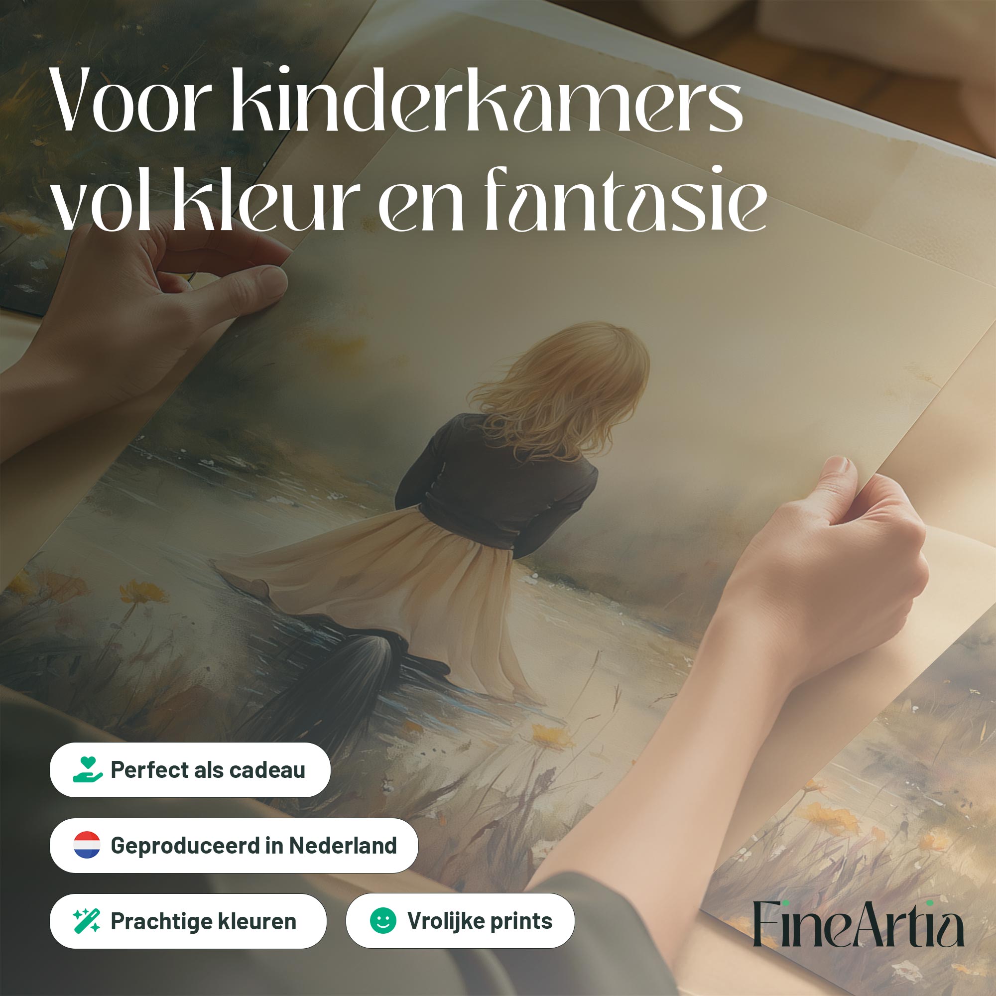 Zacht Pastel Meisje in Bloemenveld bij Water