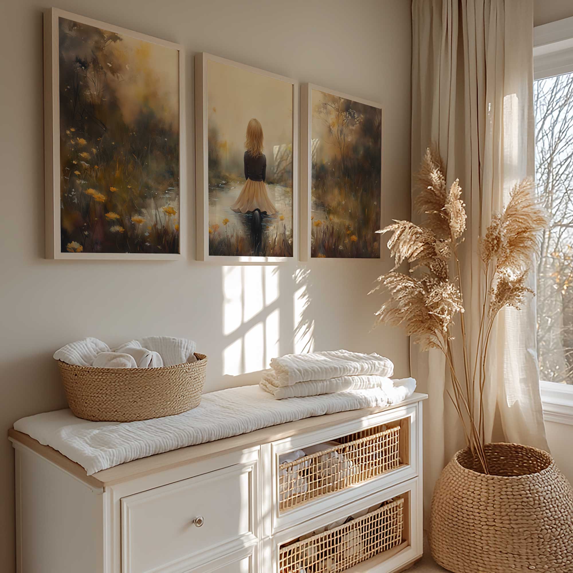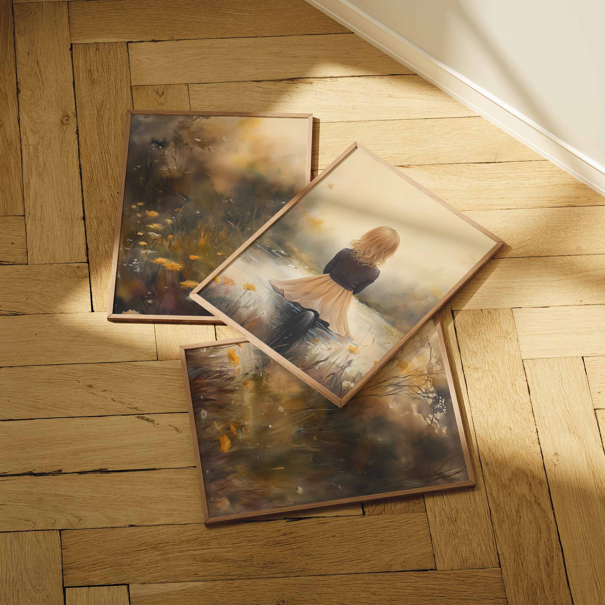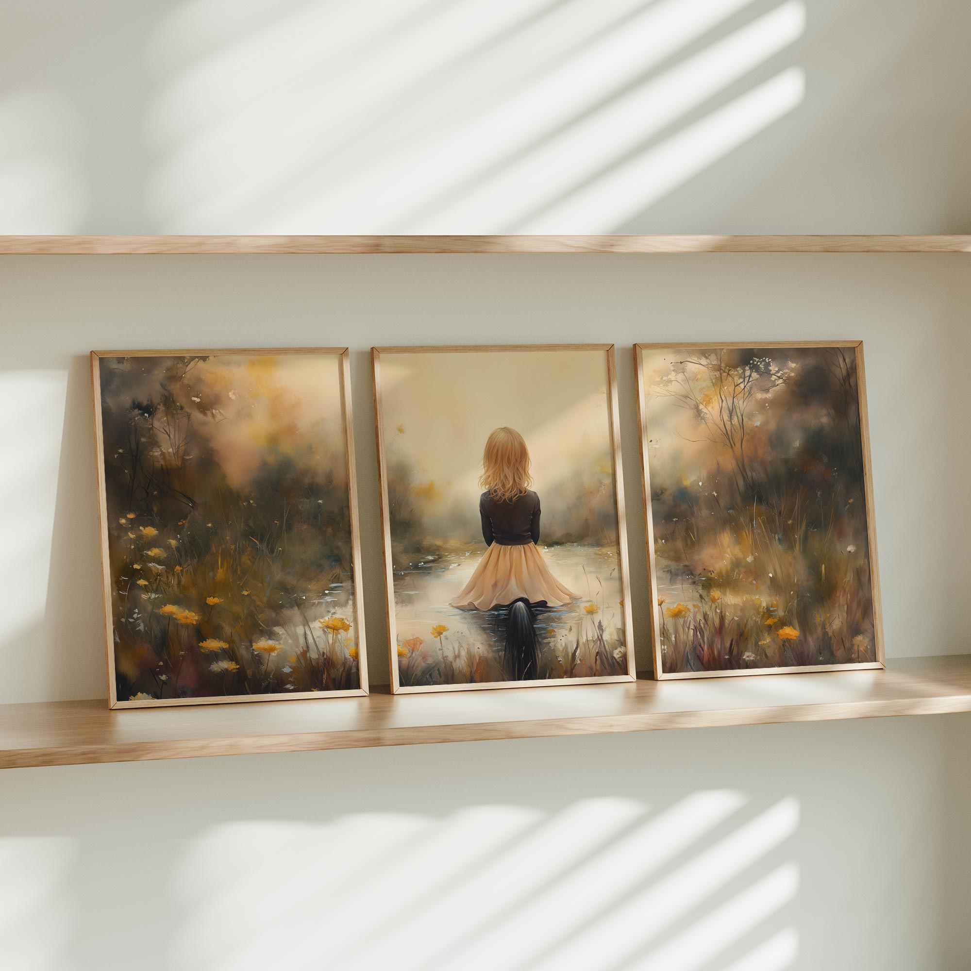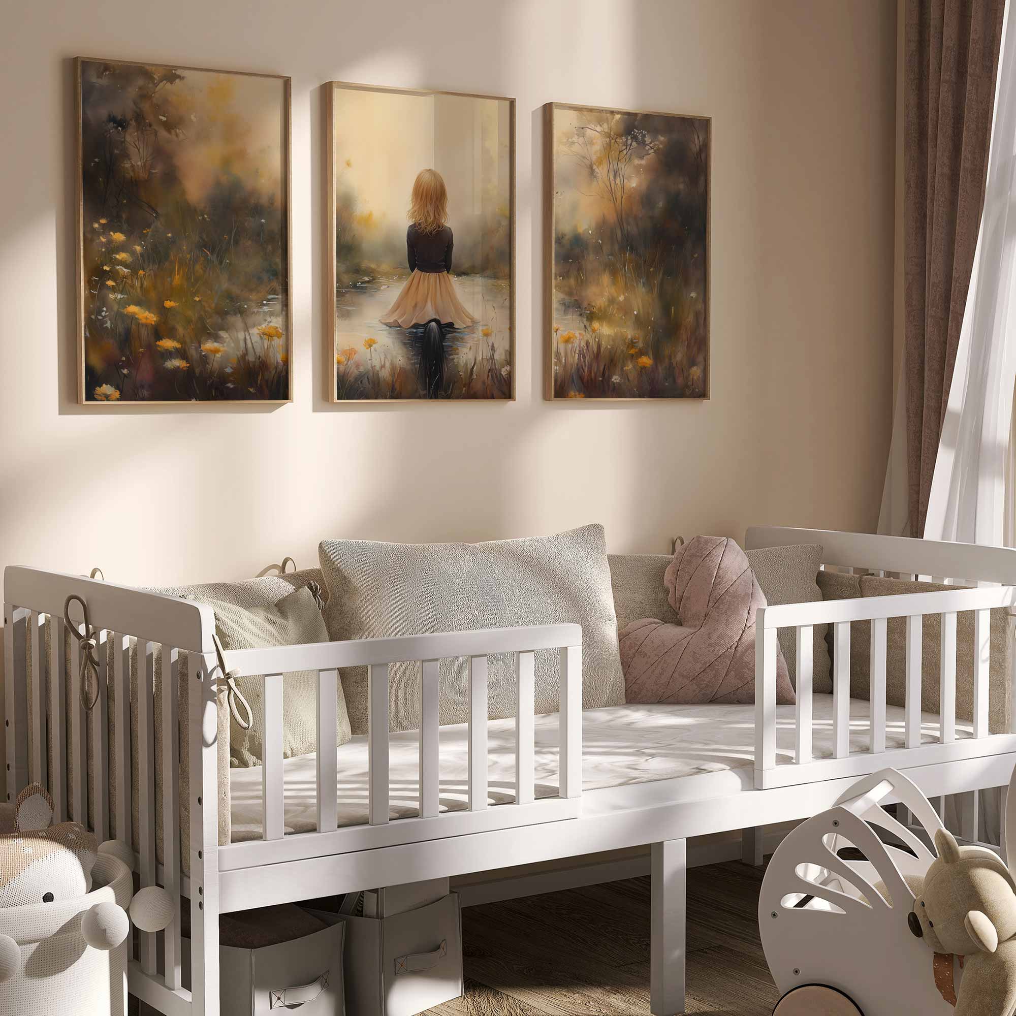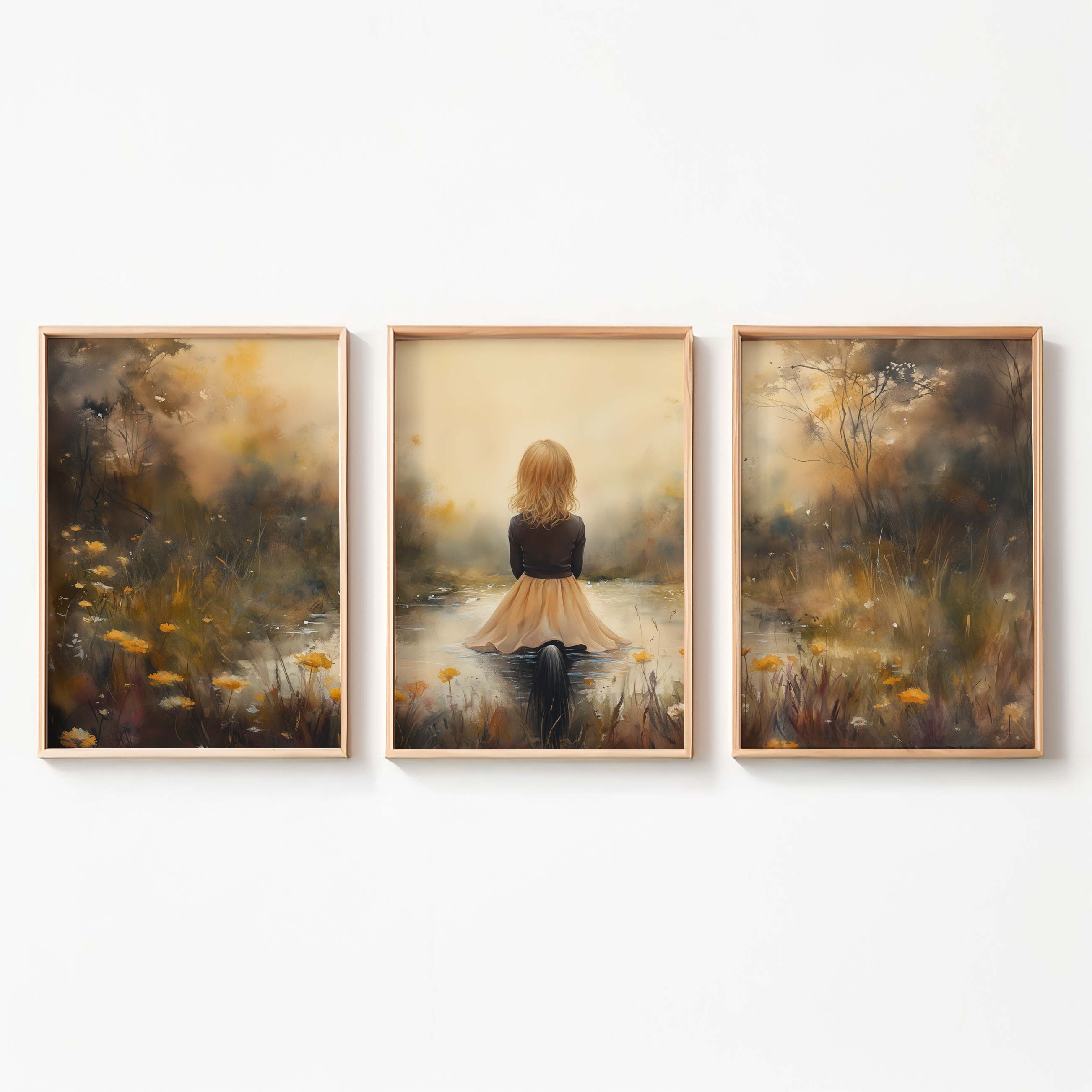 Zacht Pastel Meisje in Bloemenveld bij Water