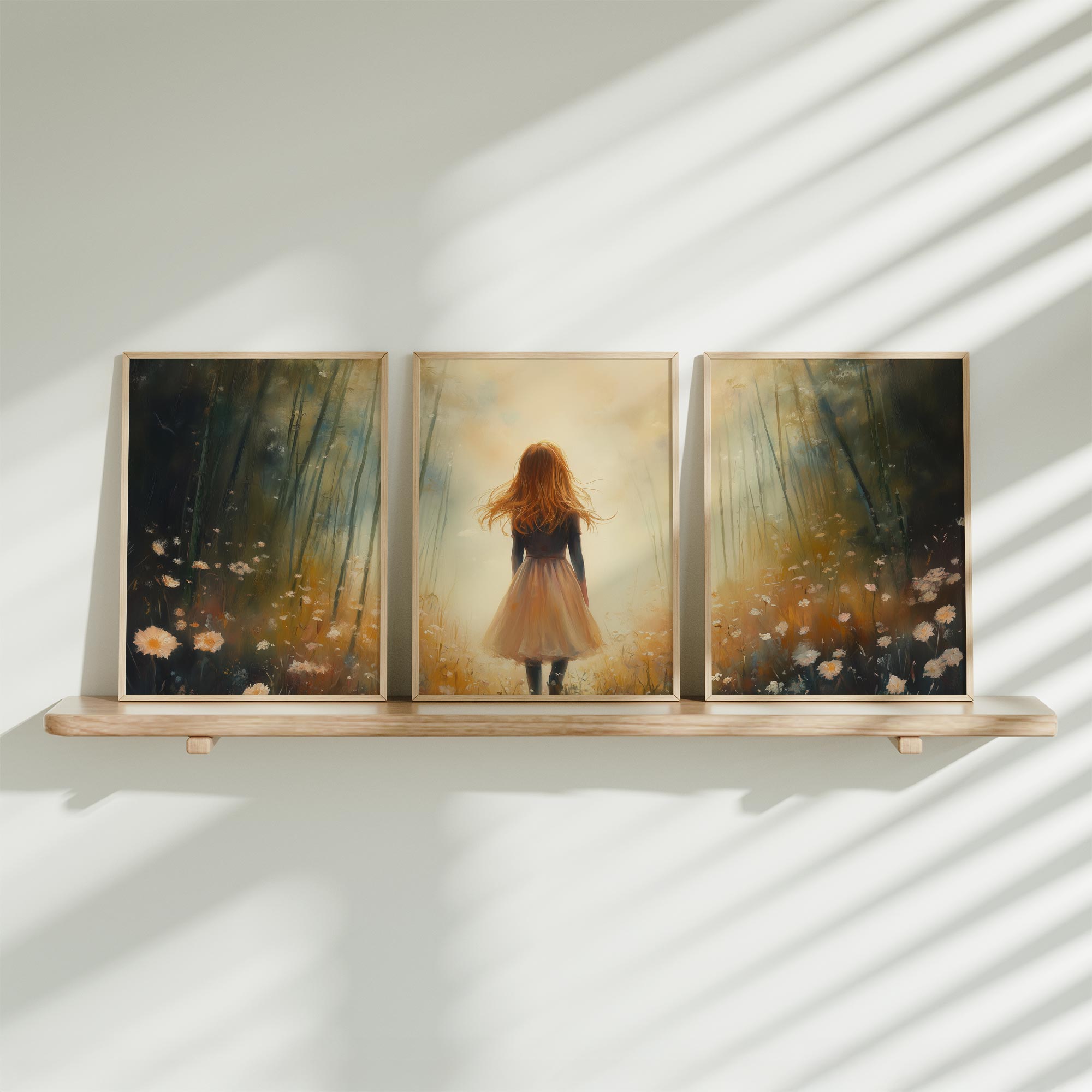 Terug naar collectie Posters Zacht Pastel Meisje in Bloemenveld bij Zonsondergang