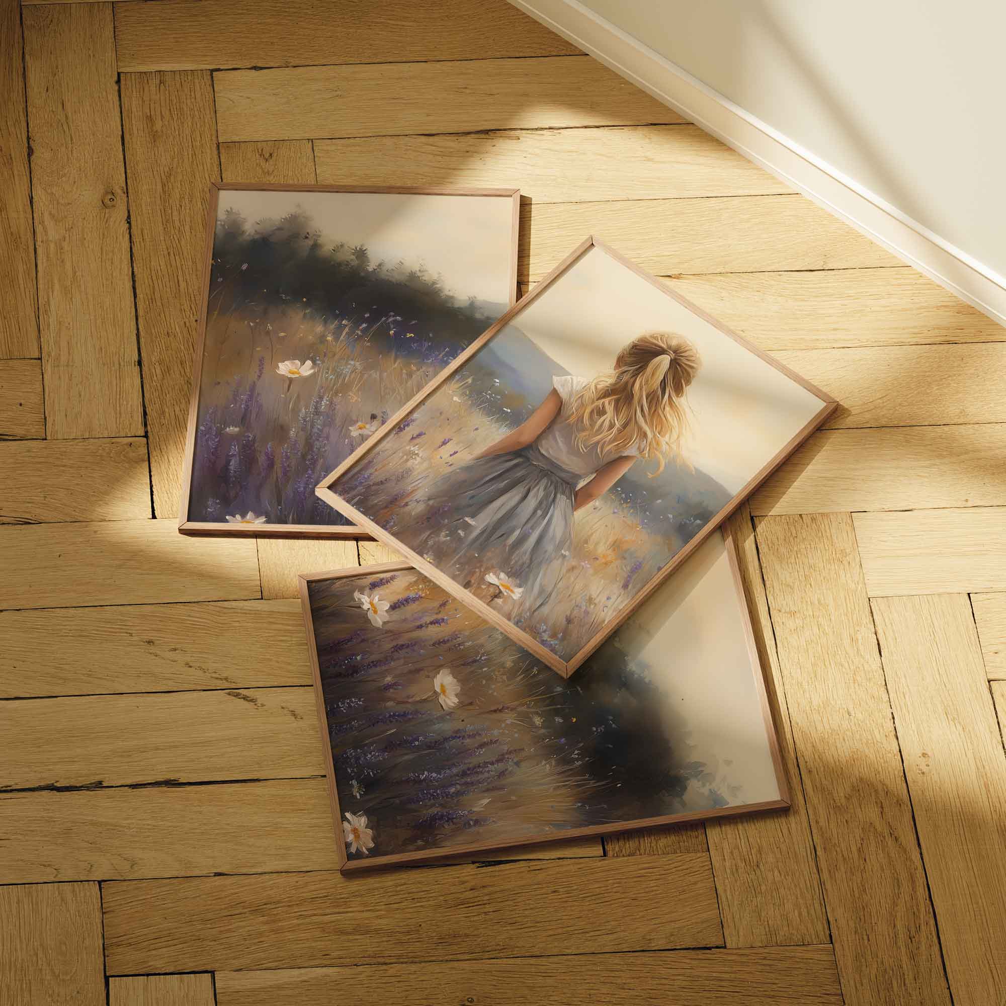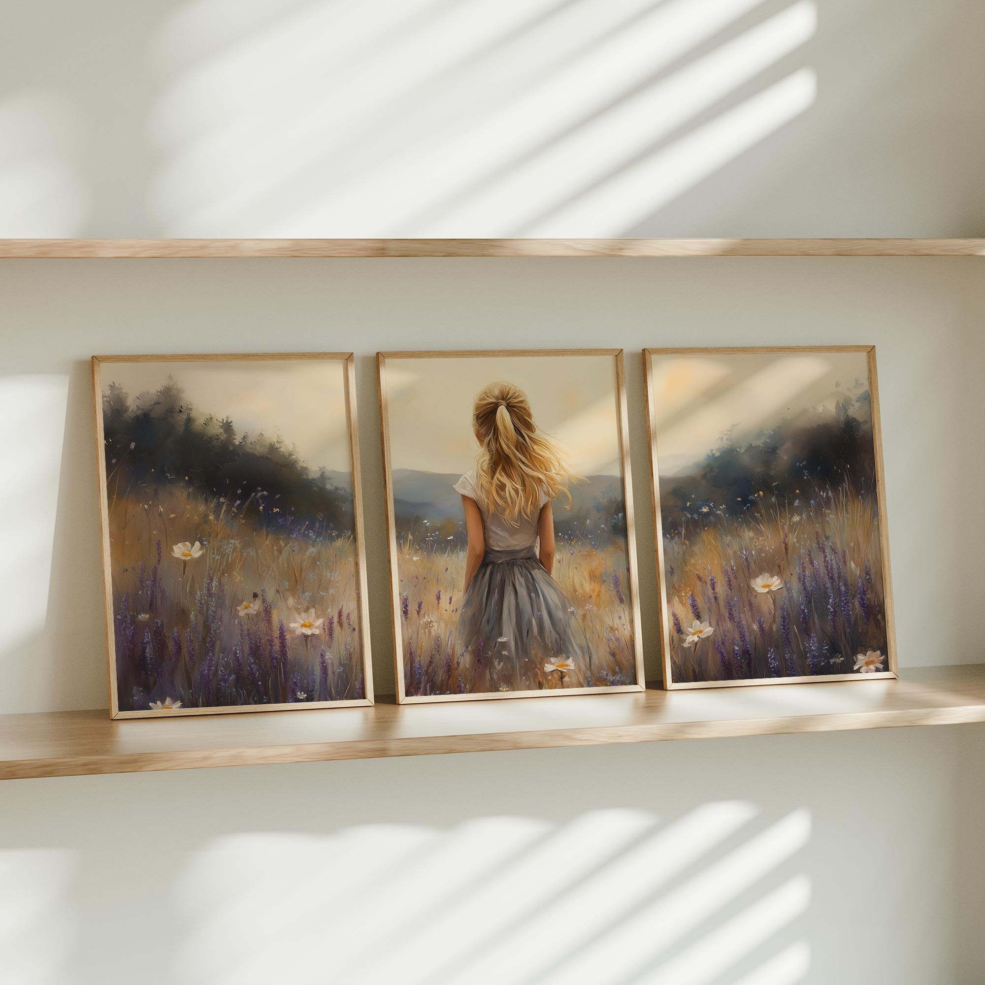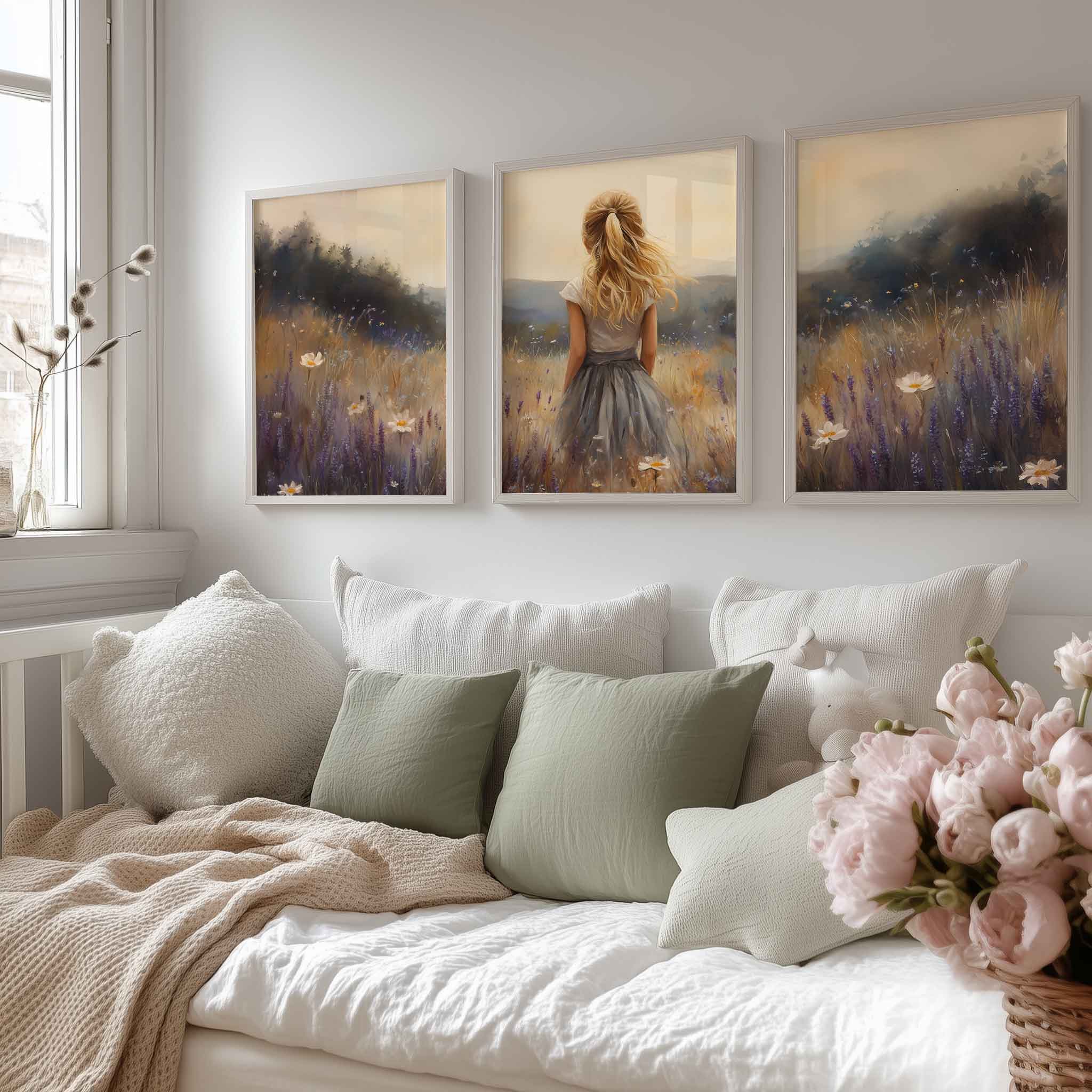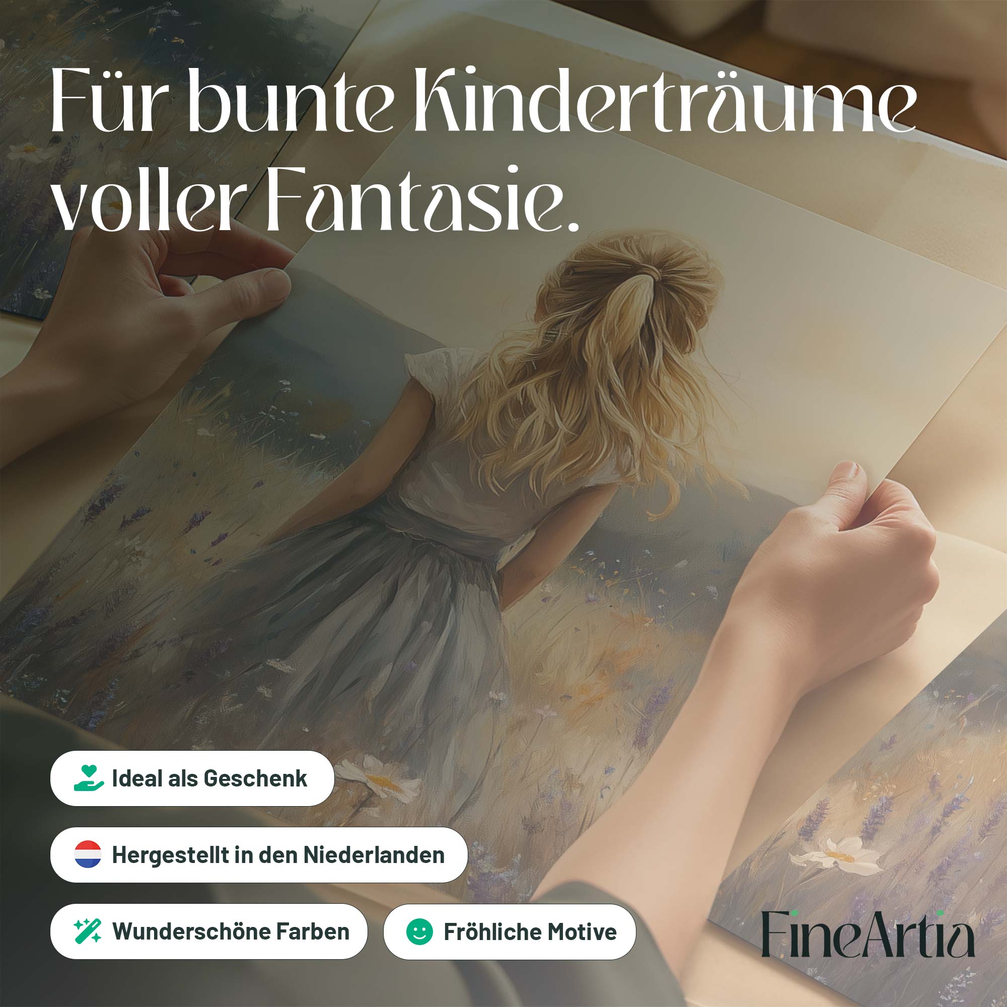 Zacht Pastel Meisje in Bloemenveld – Dromerig Landschap