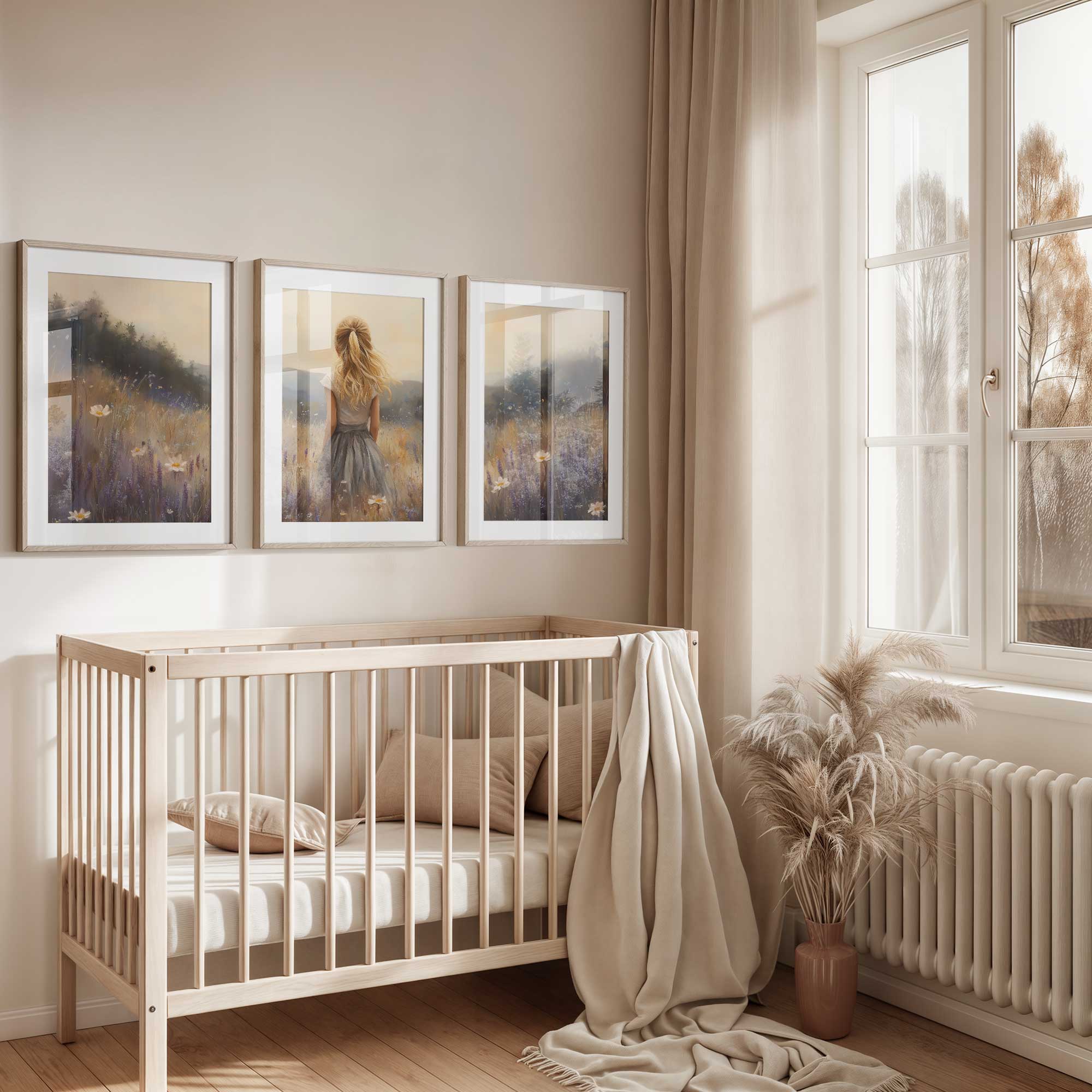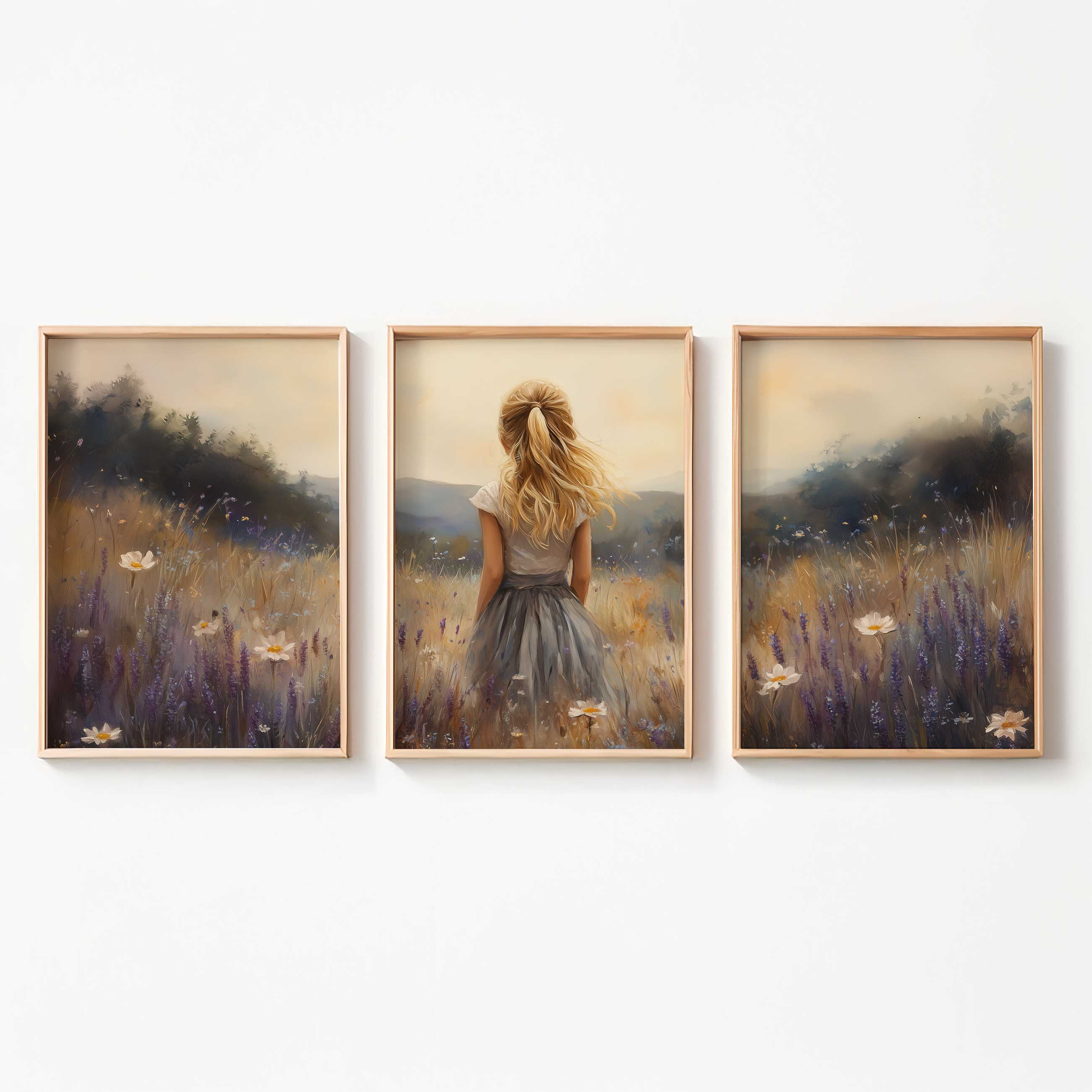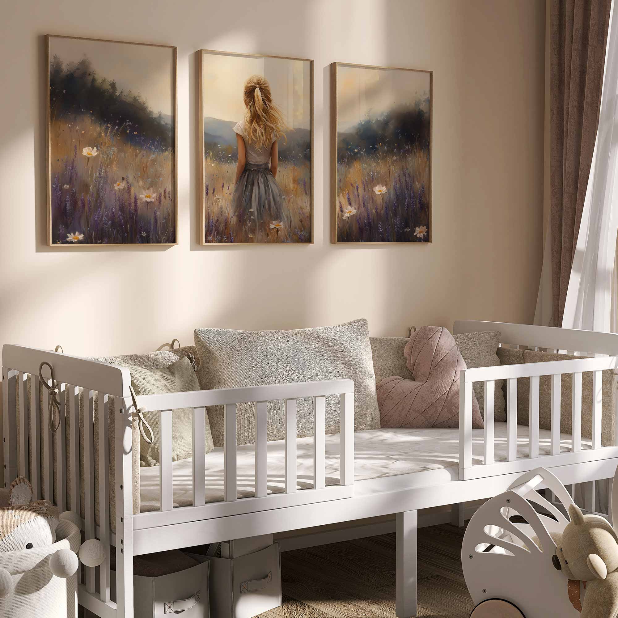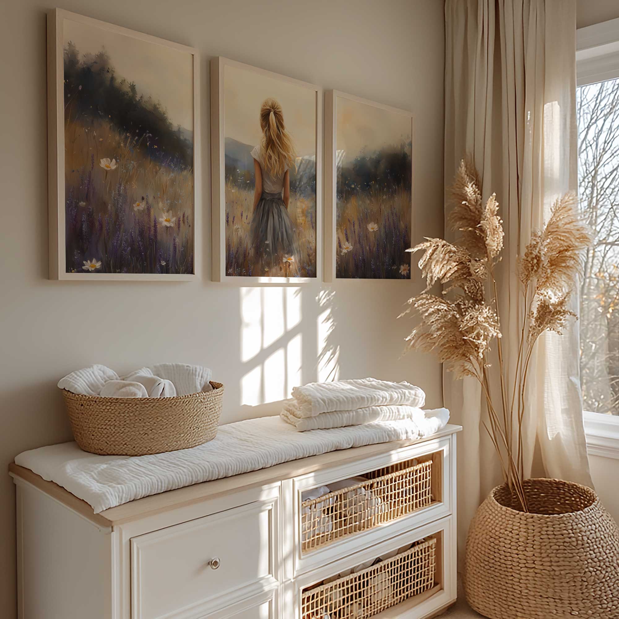 Zacht Pastel Meisje in Bloemenveld – Dromerig Landschap