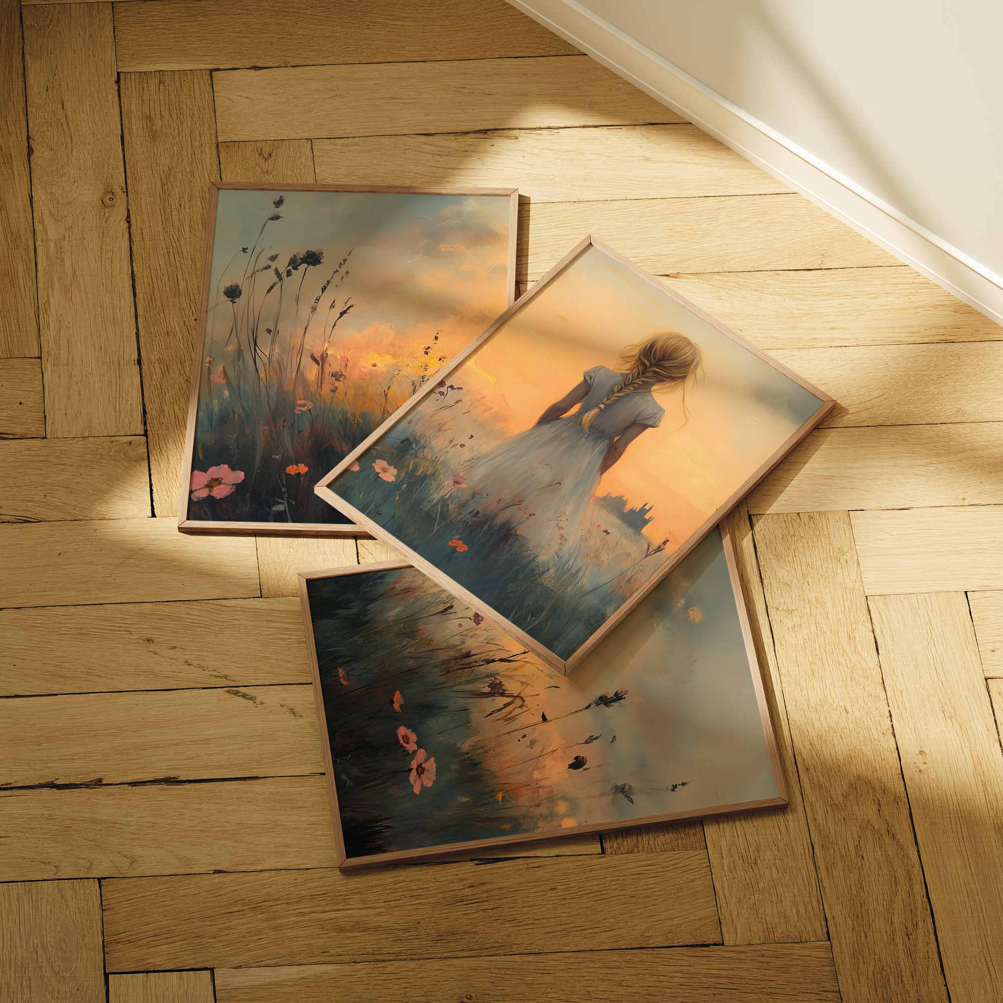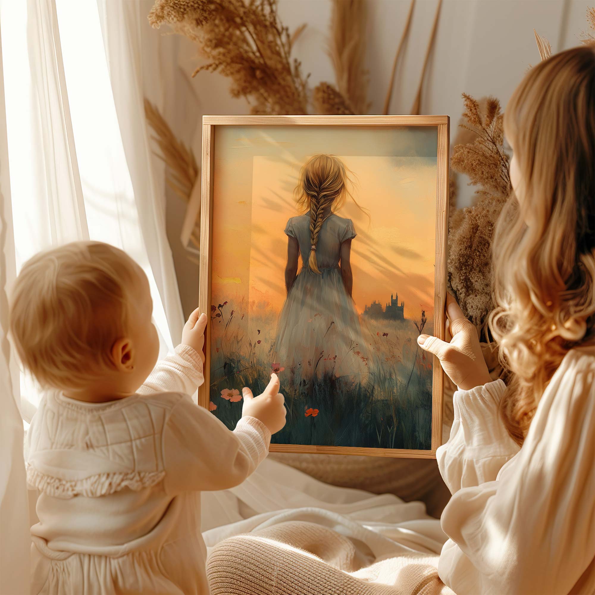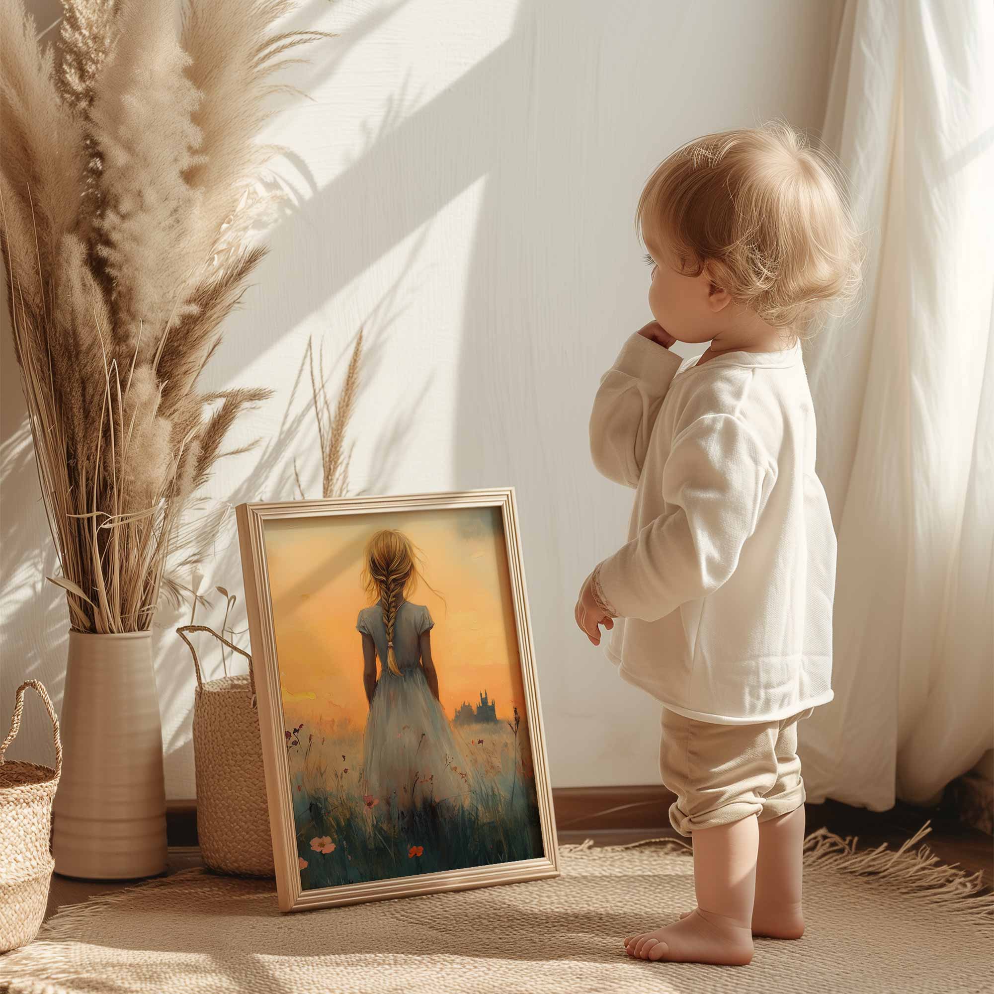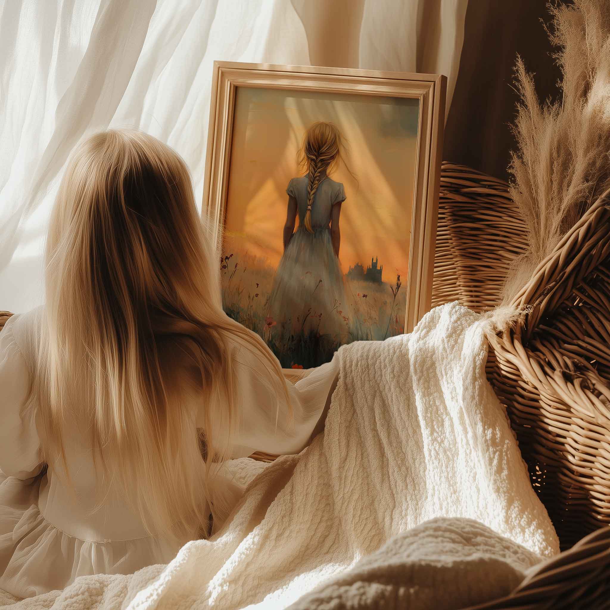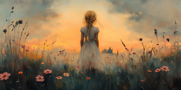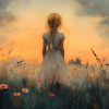 Zacht Pastel Meisje in Bloemenveld – Dromerig Sfeerbeeld