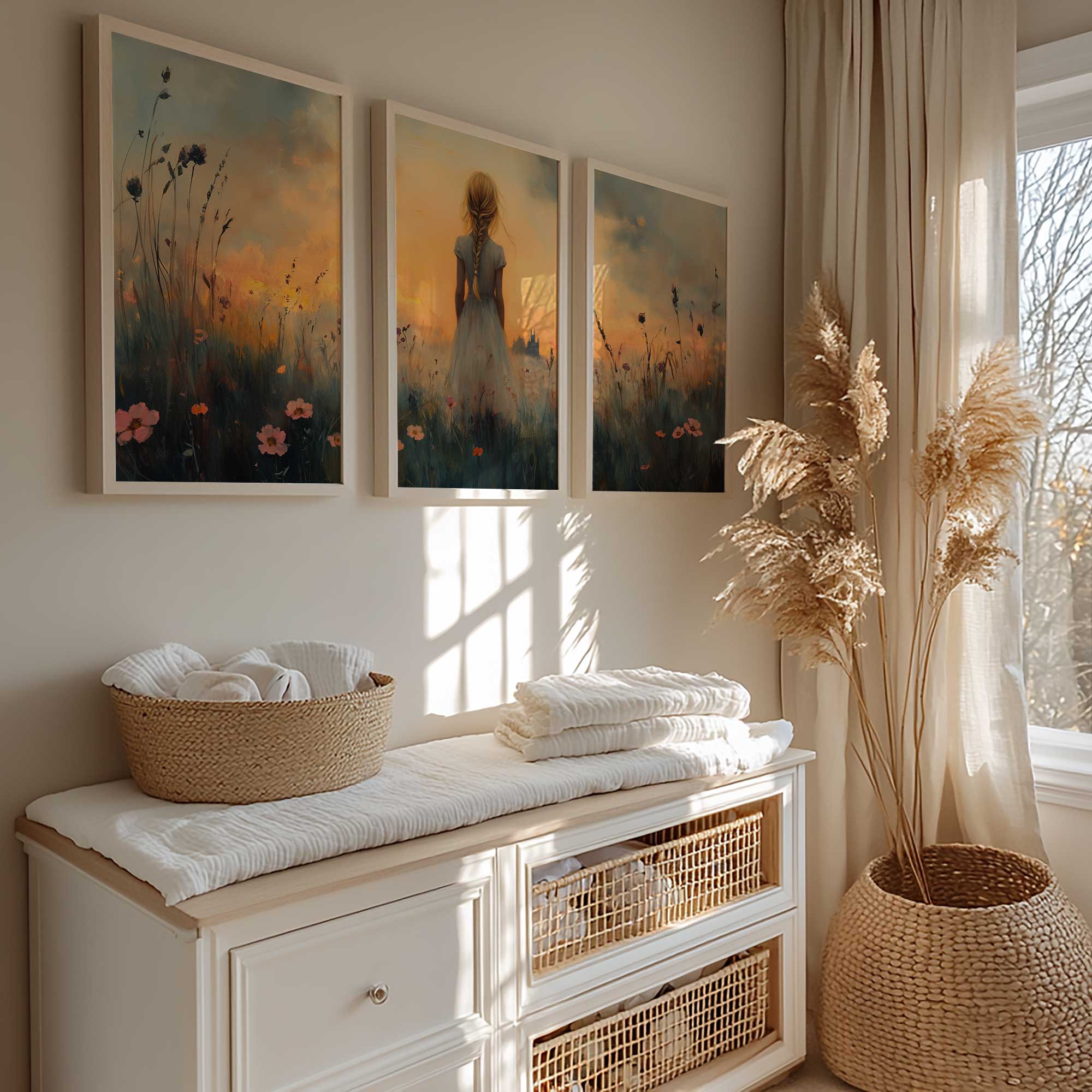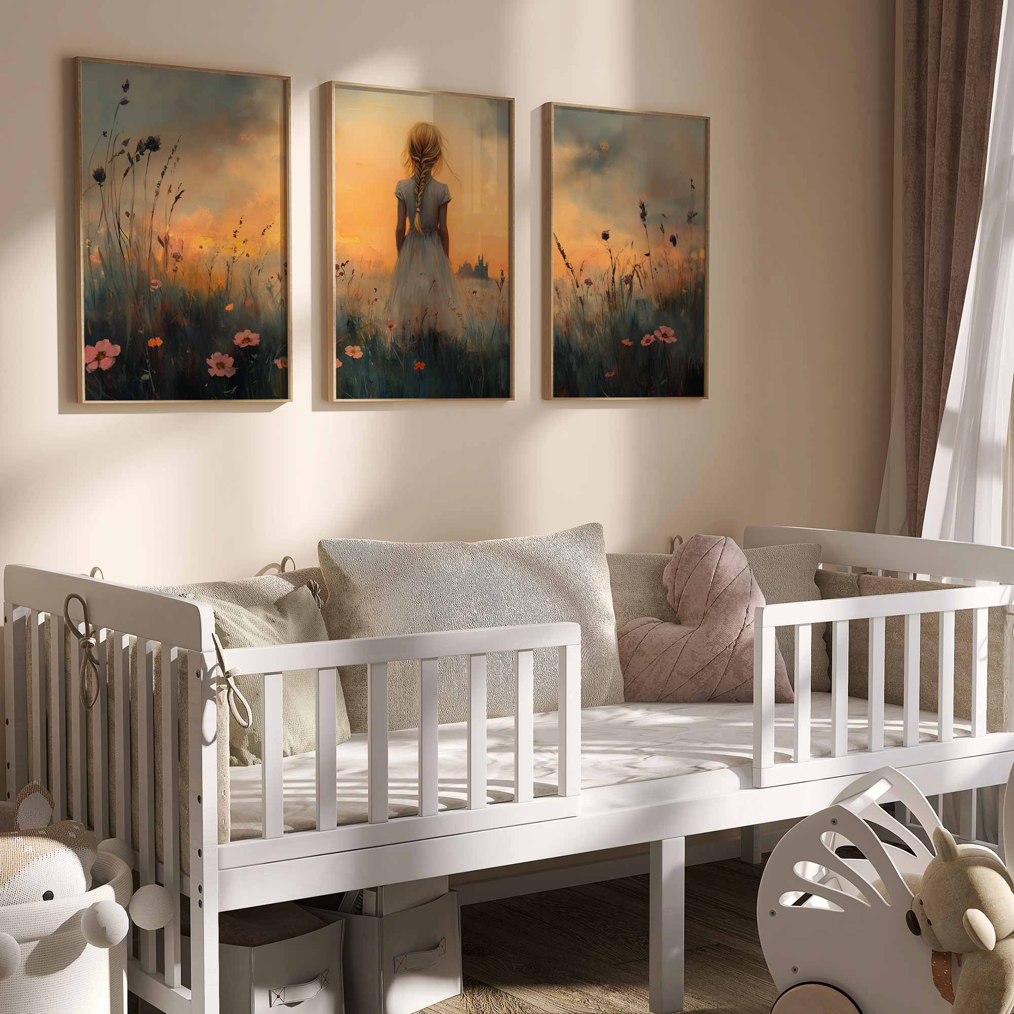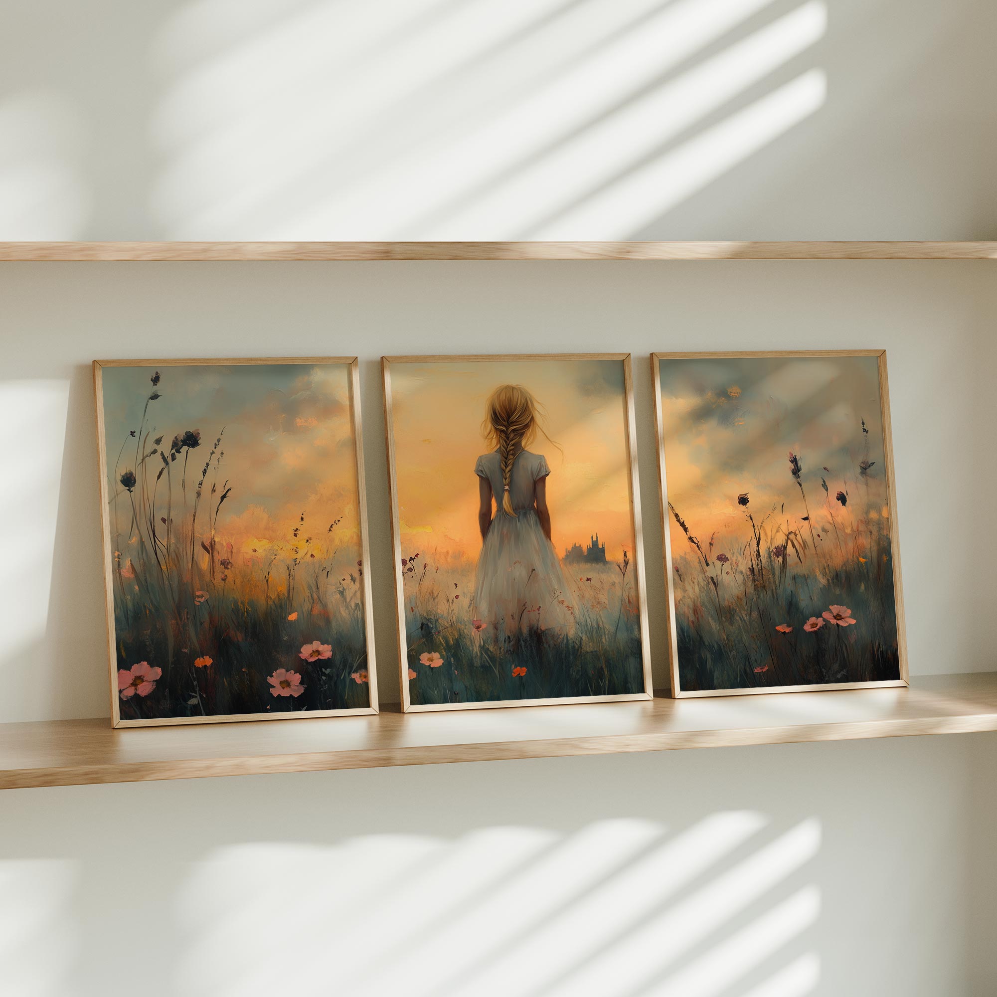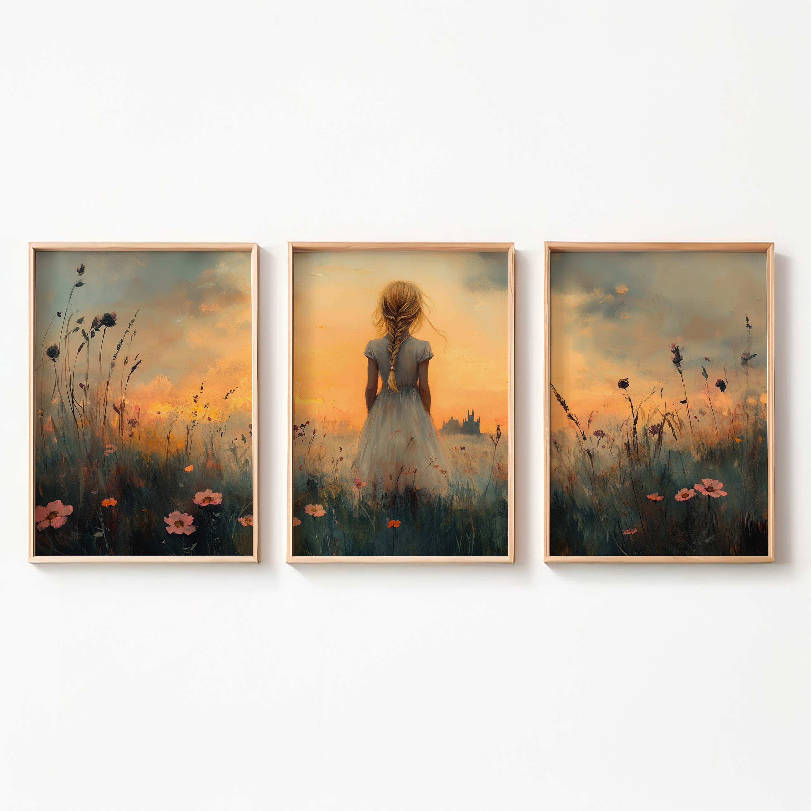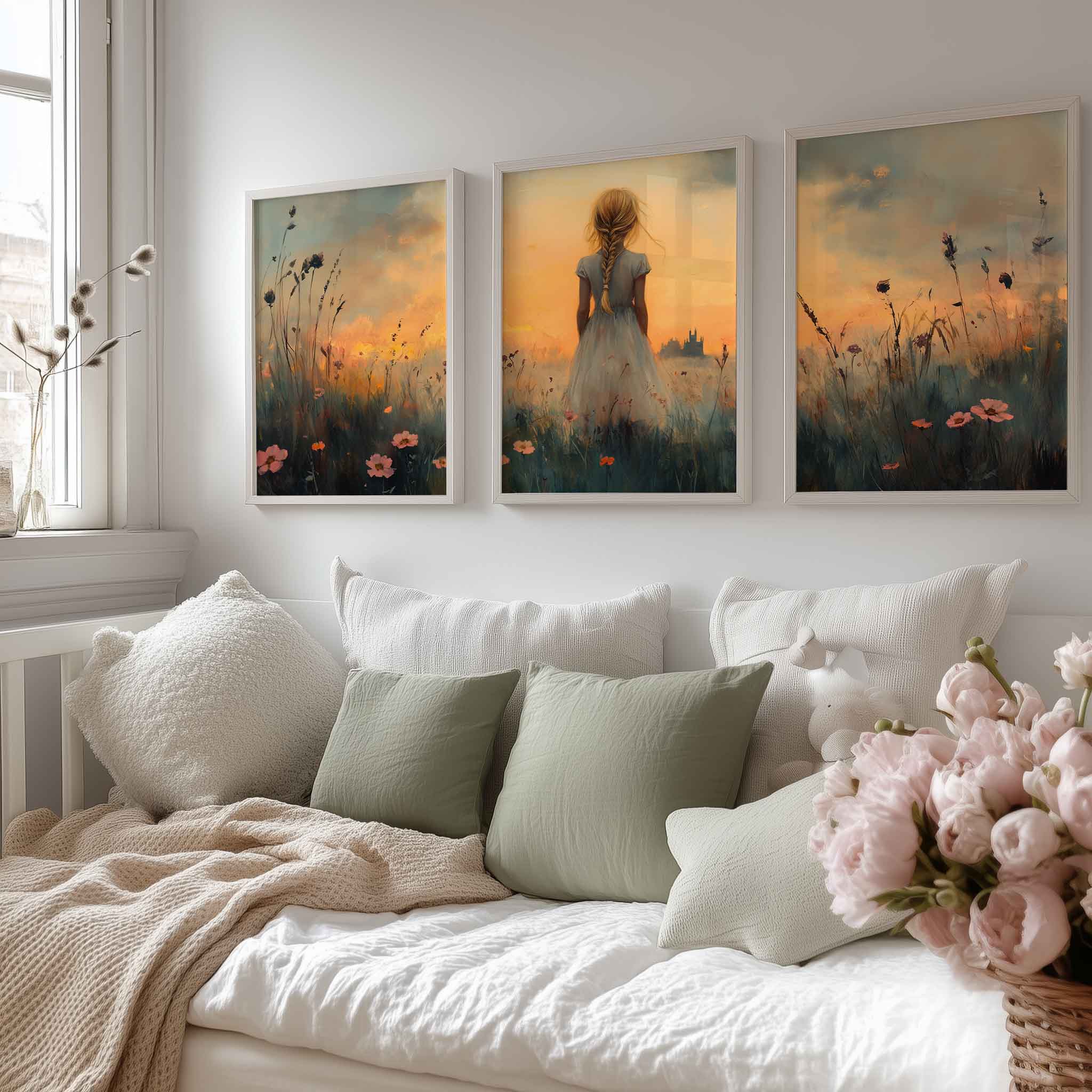 Zacht Pastel Meisje in Bloemenveld – Dromerig Sfeerbeeld