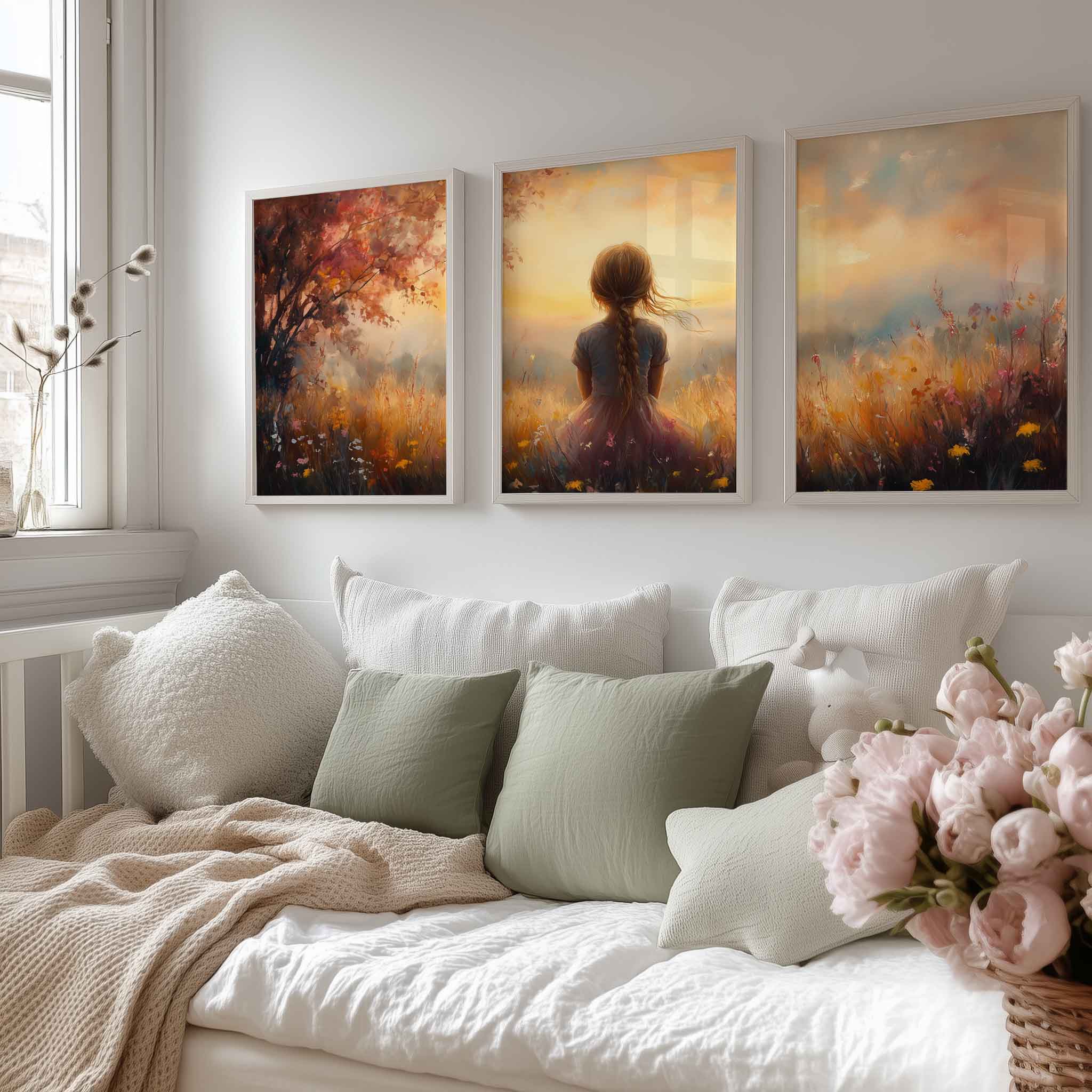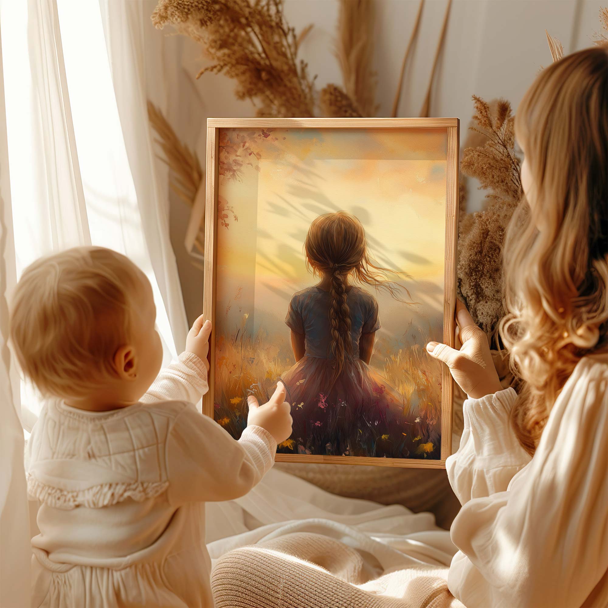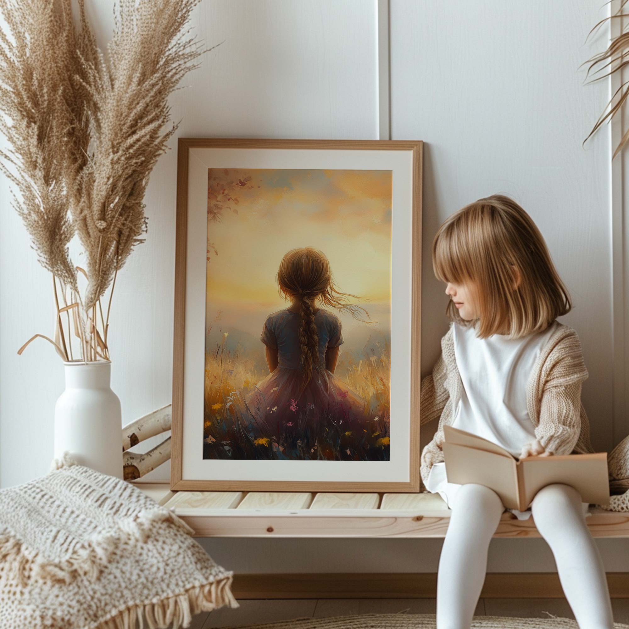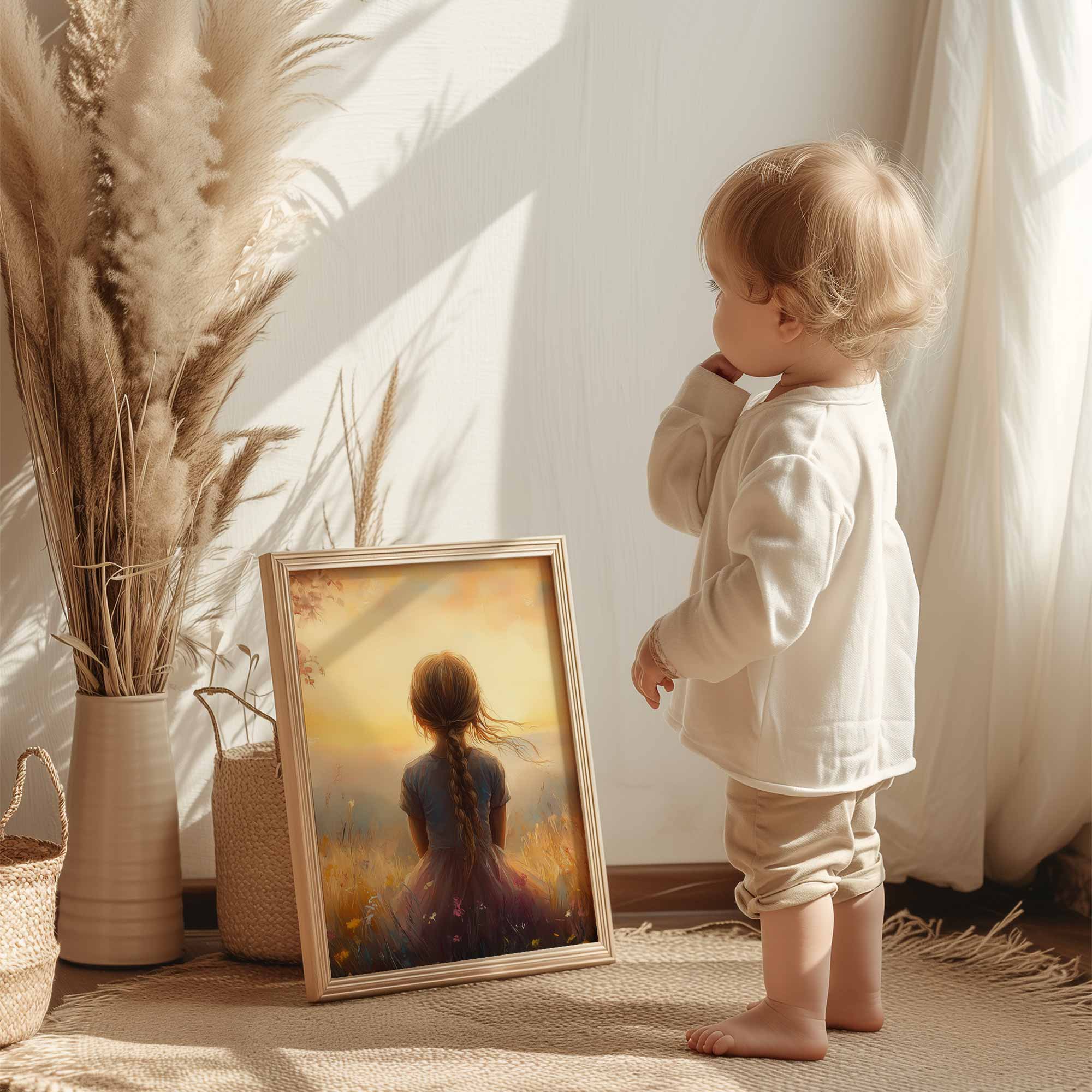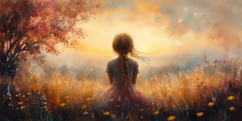 Zacht Pastel Meisje in Bloemenveld – Dromerige Sfeer