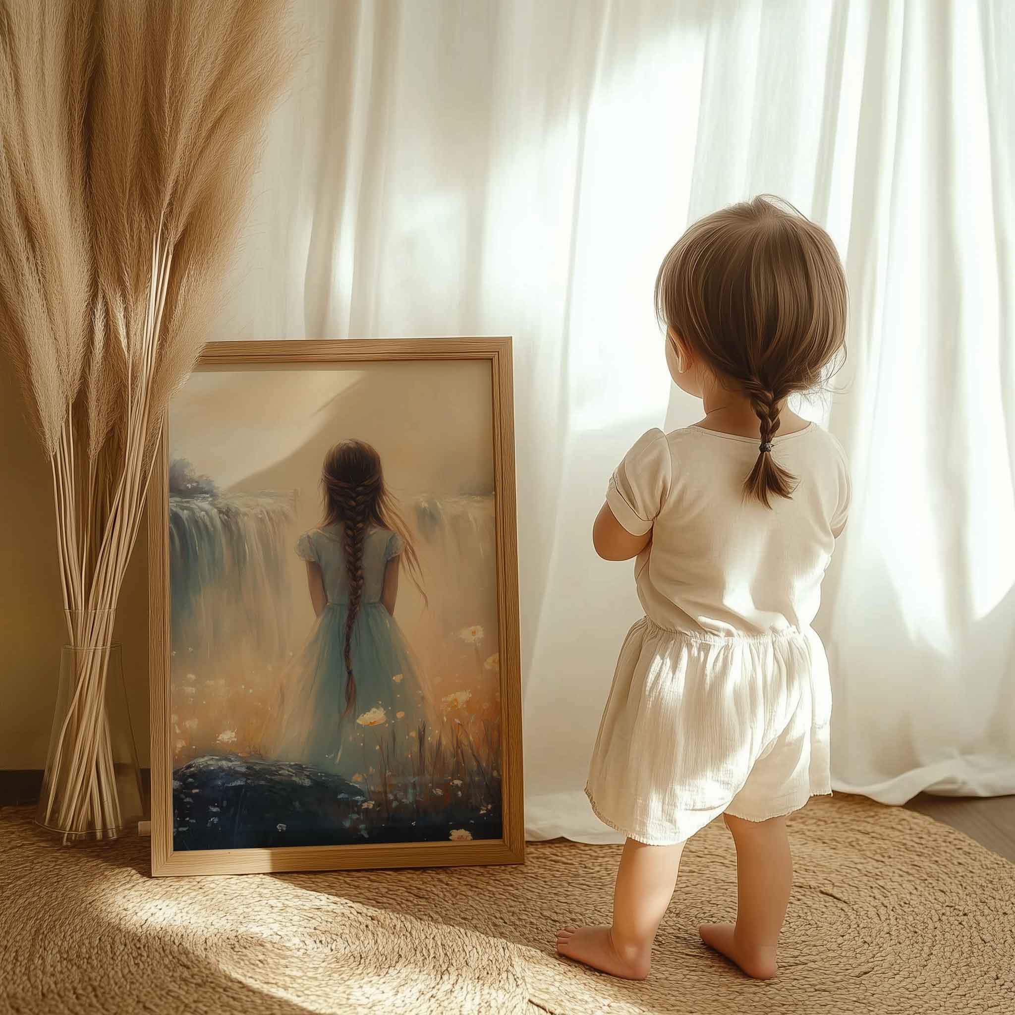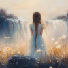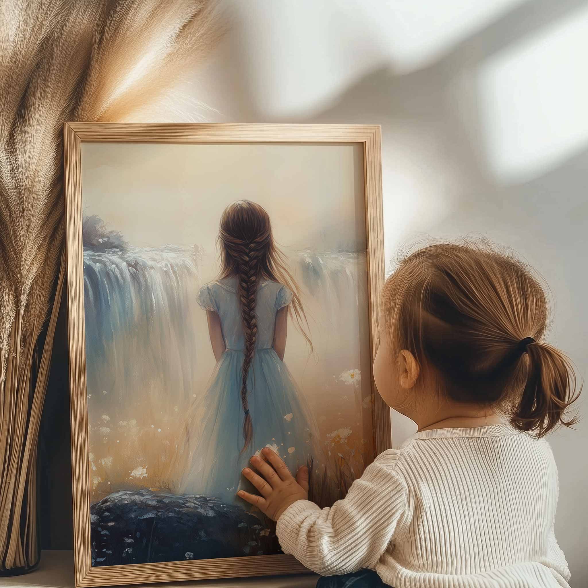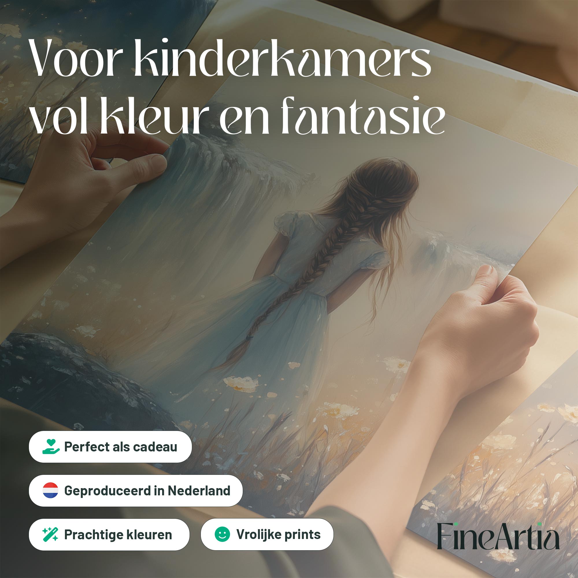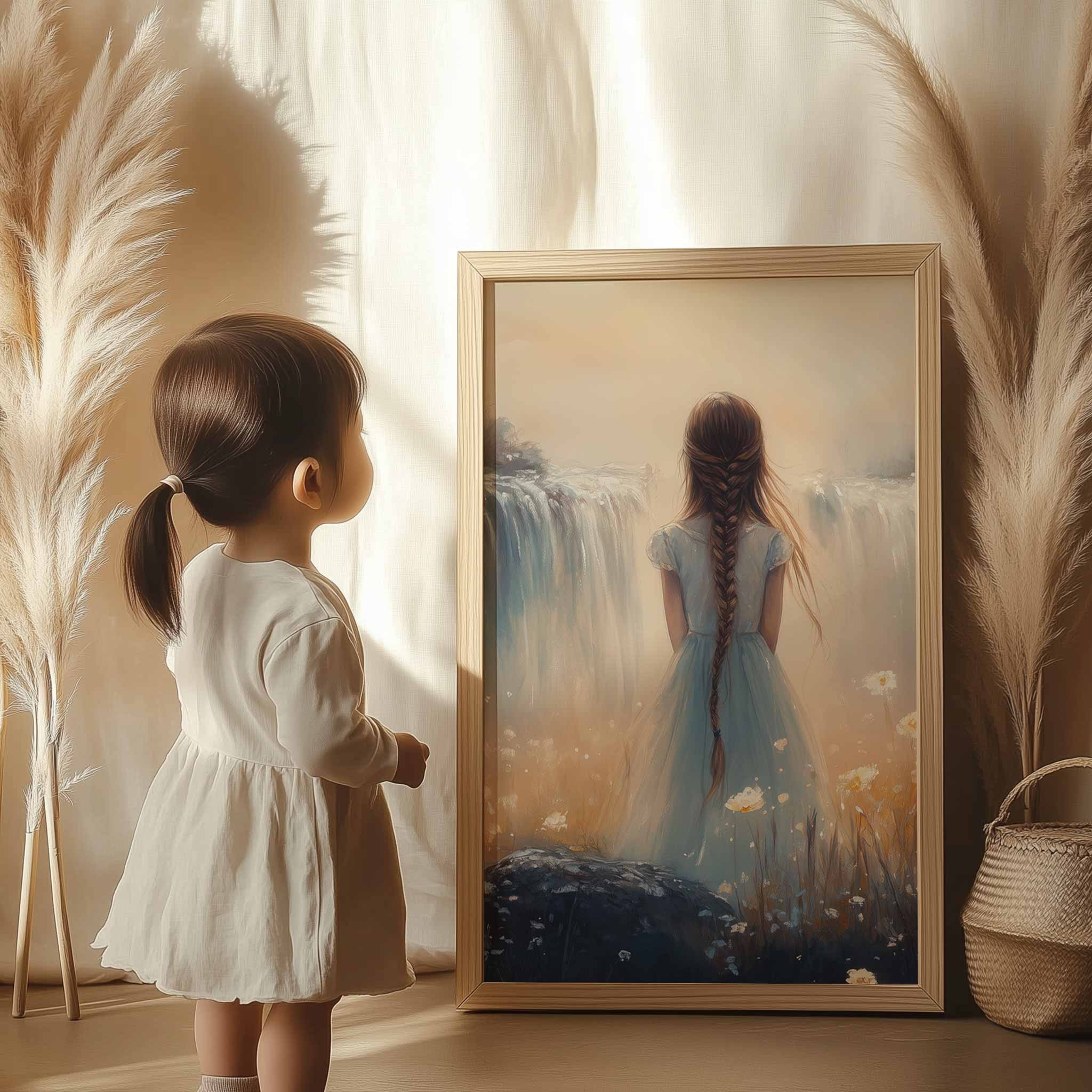 Terug naar collectie Posters Zacht Pastel Meisje in Bloemenveld met Waterval