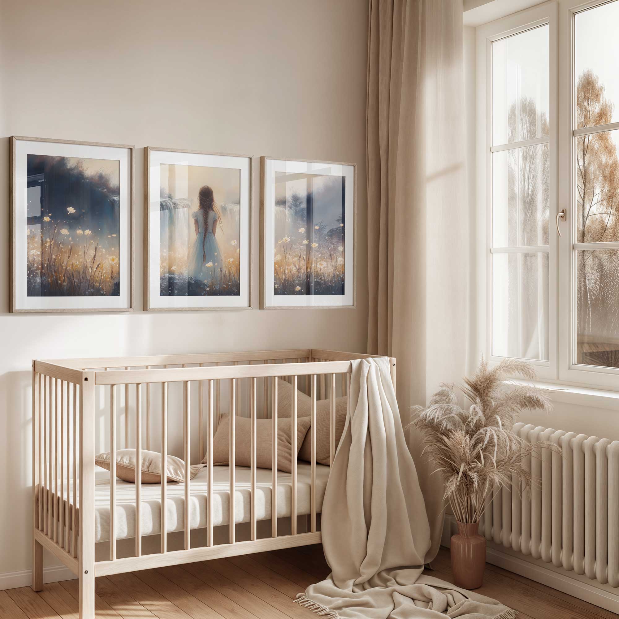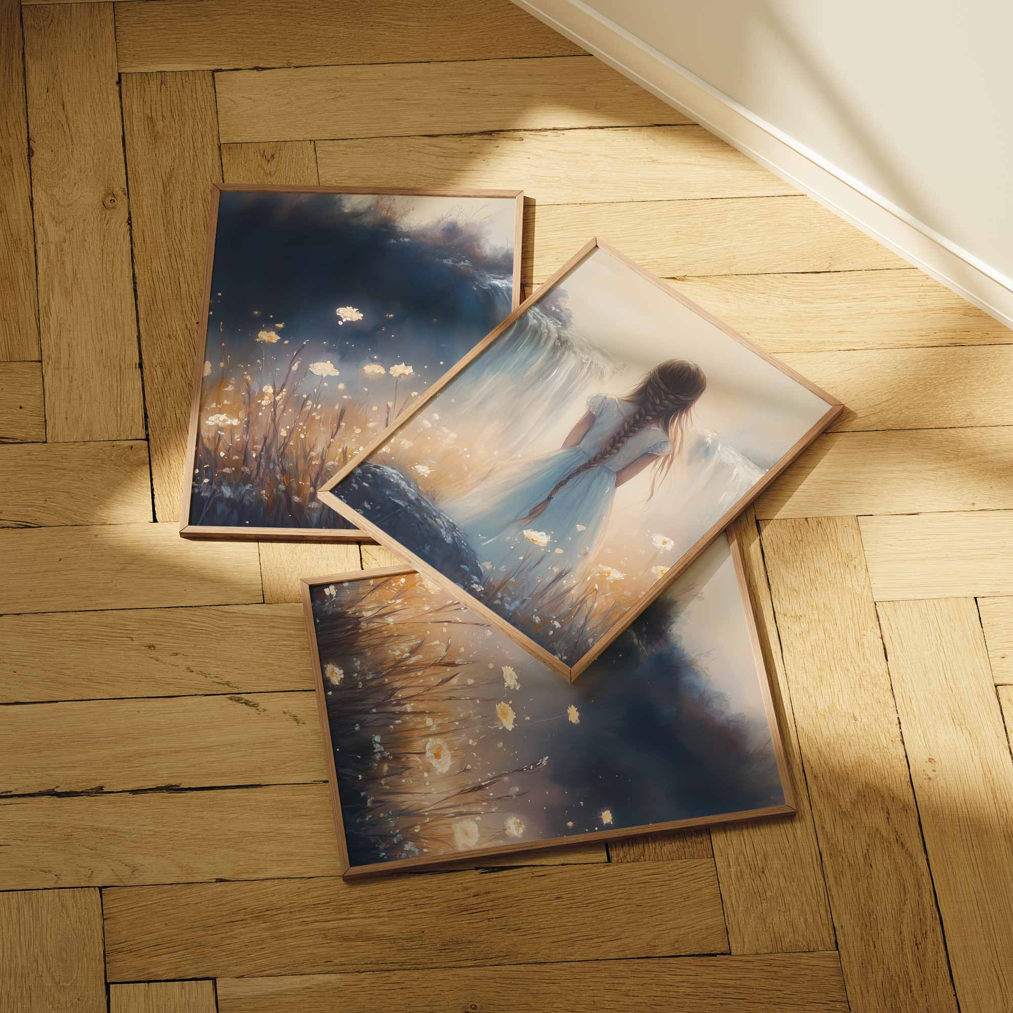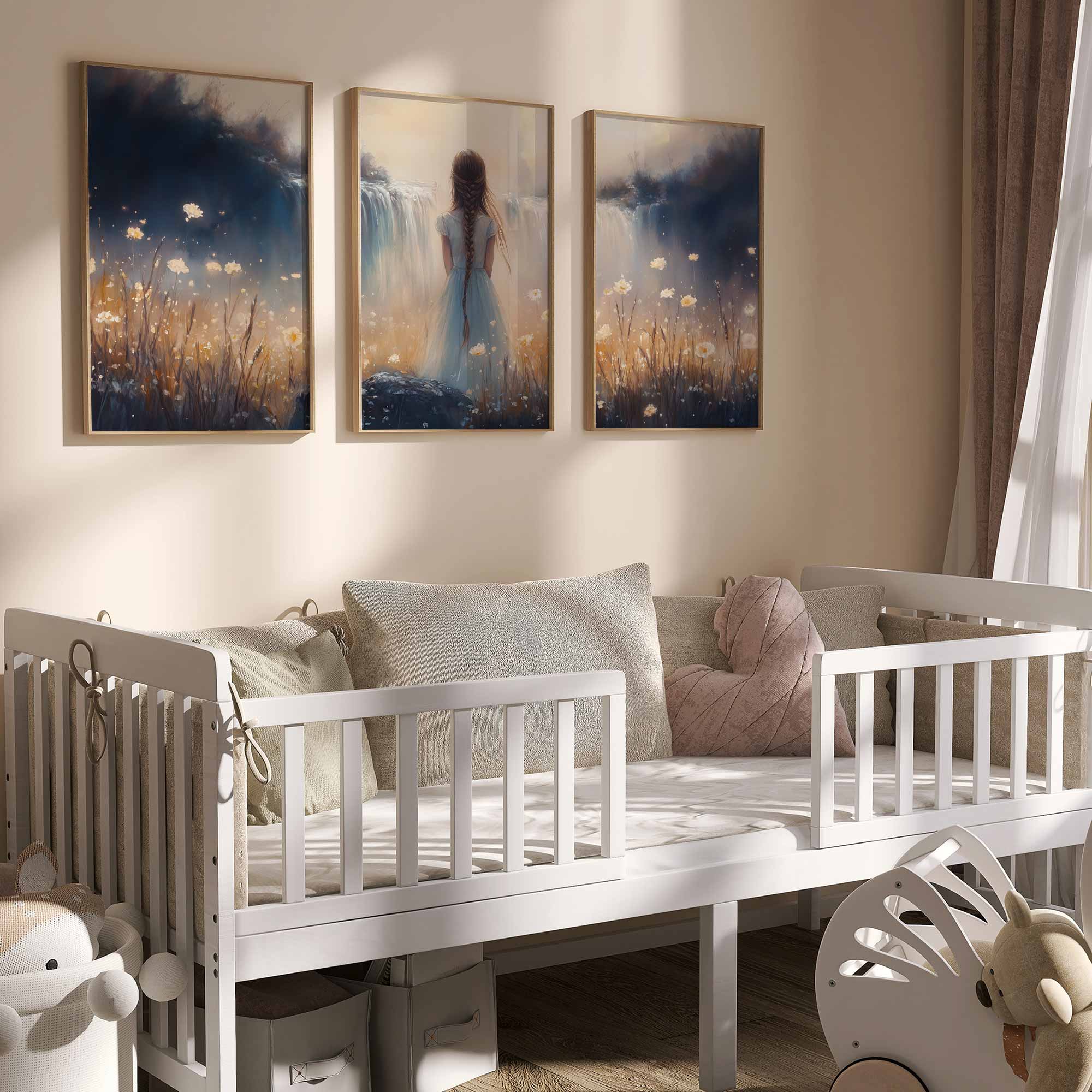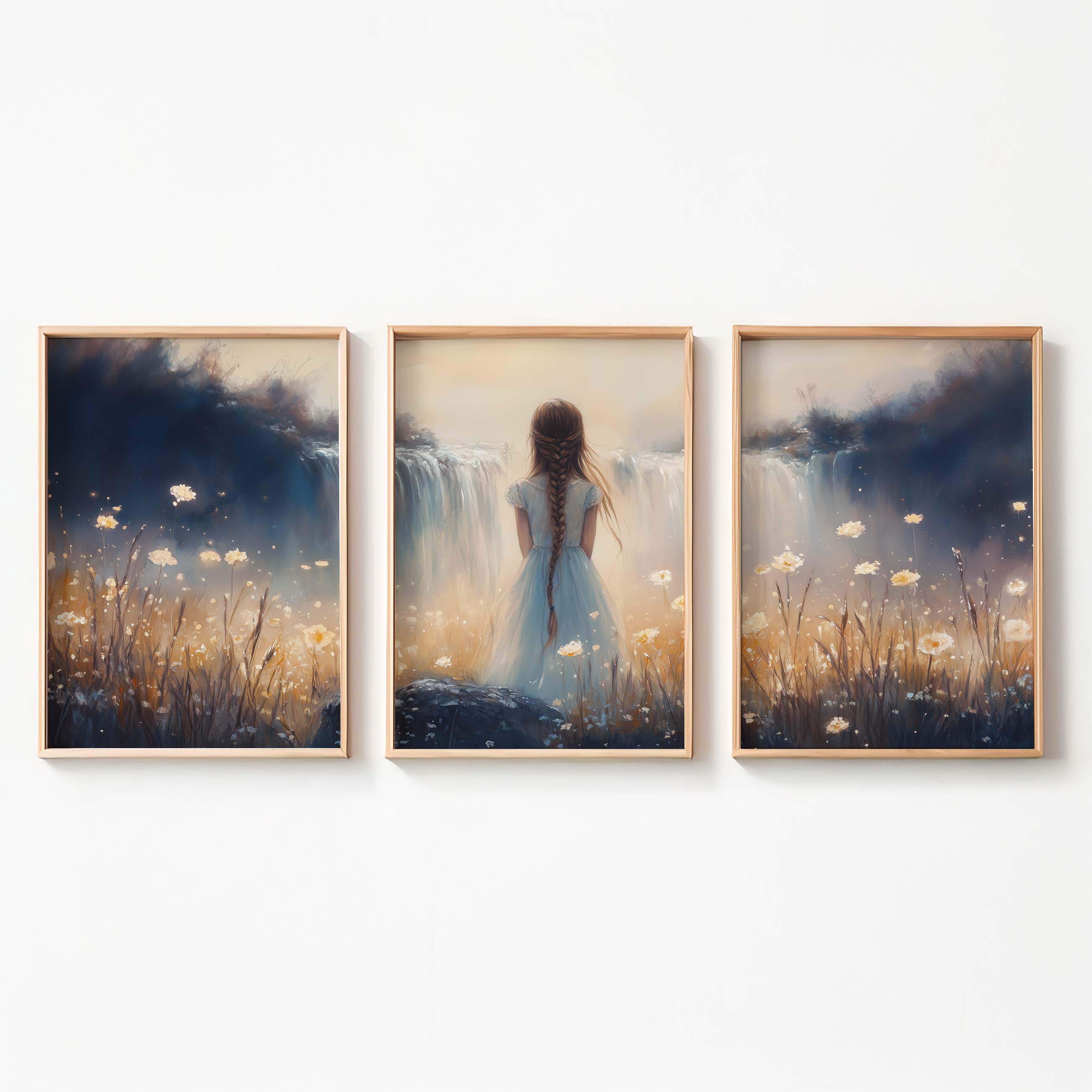 Terug naar collectie Posters Zacht Pastel Meisje in Bloemenveld met Waterval