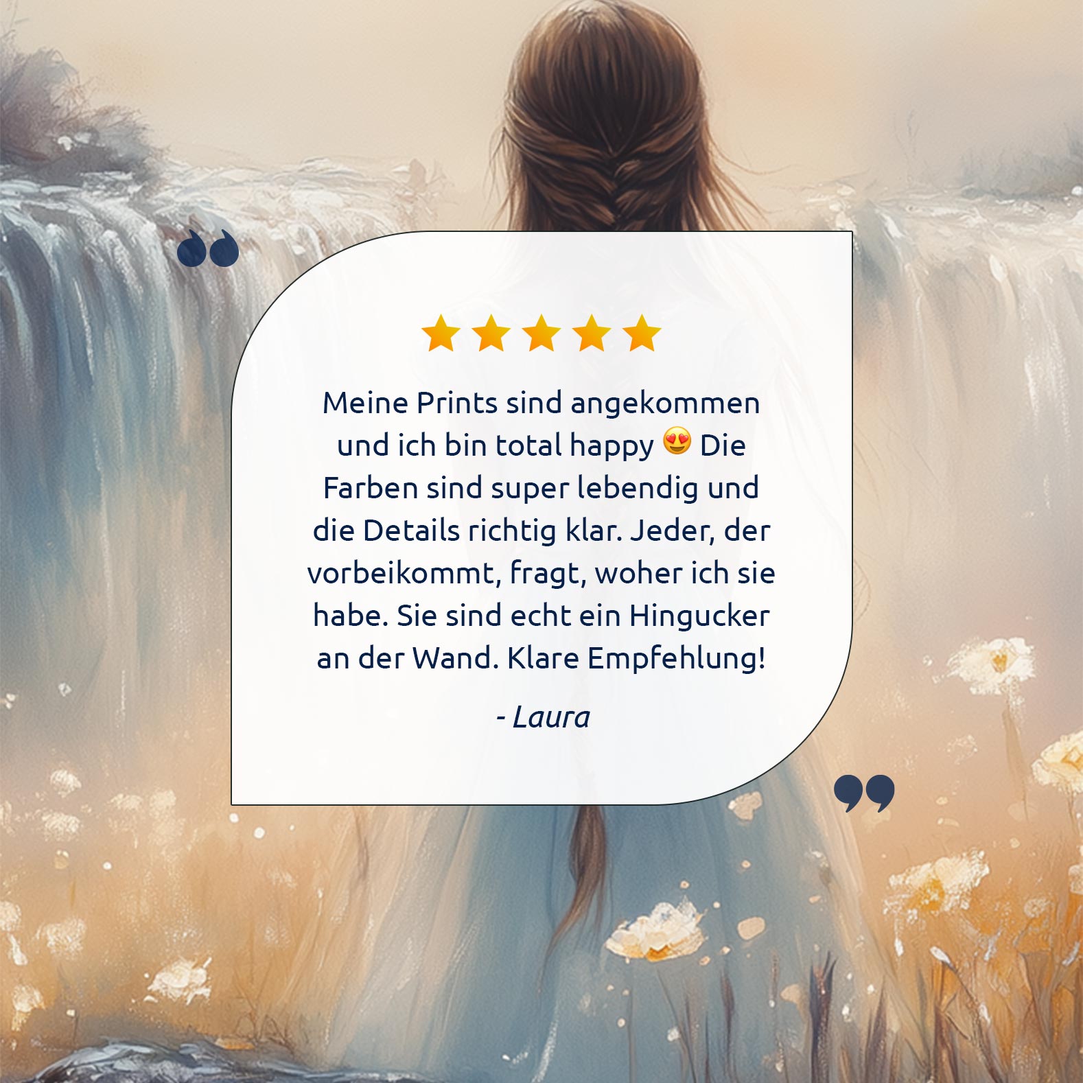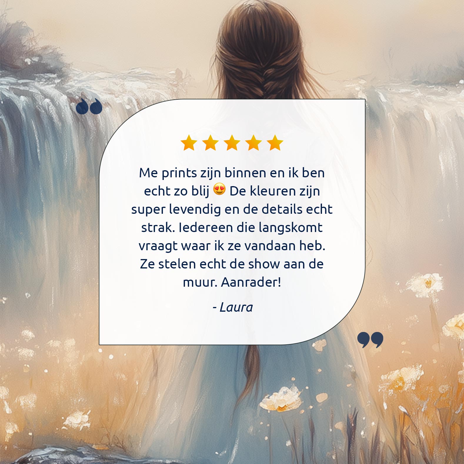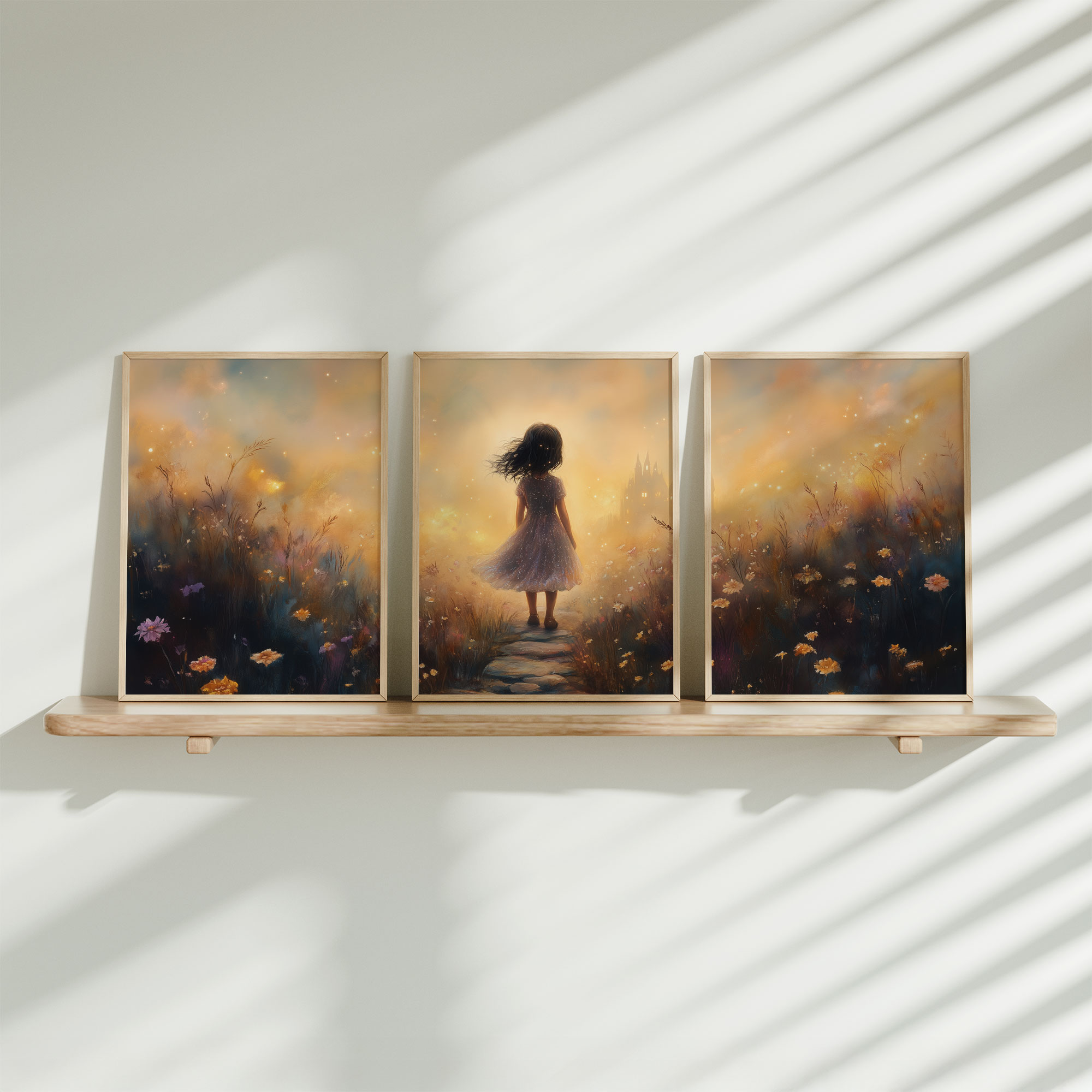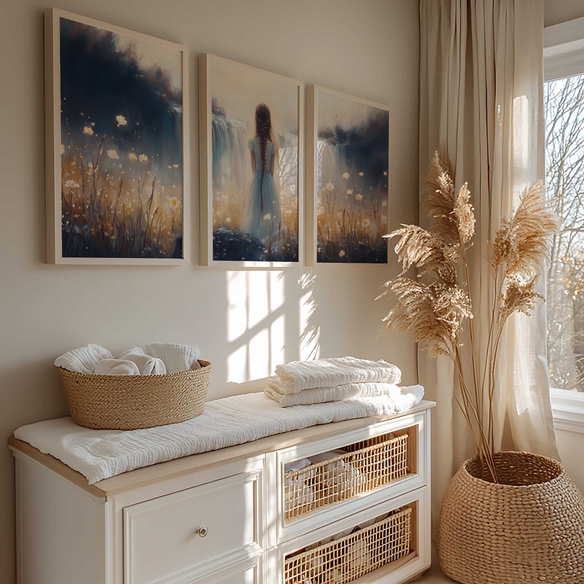 Terug naar collectie Posters Zacht Pastel Meisje in Bloemenveld met Waterval