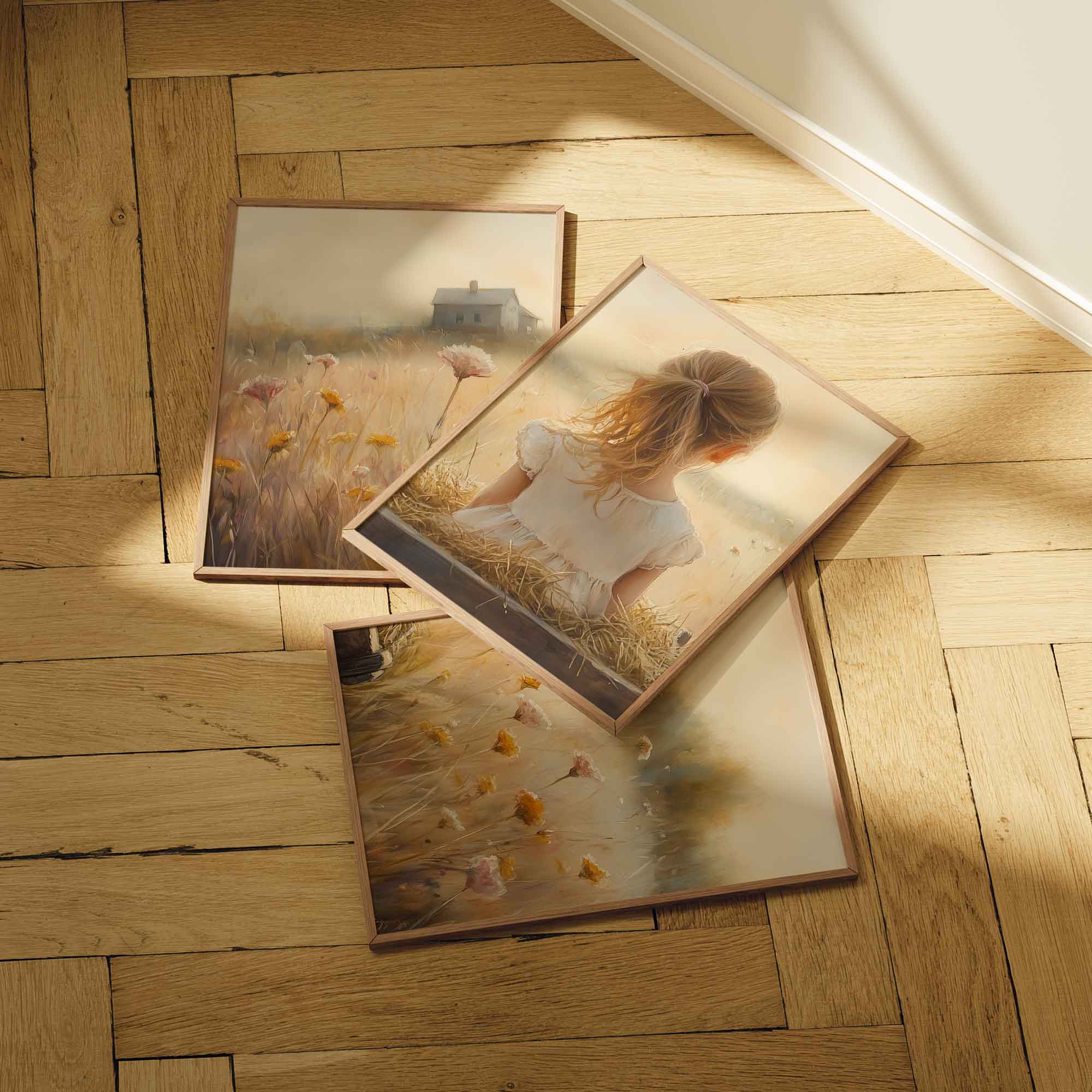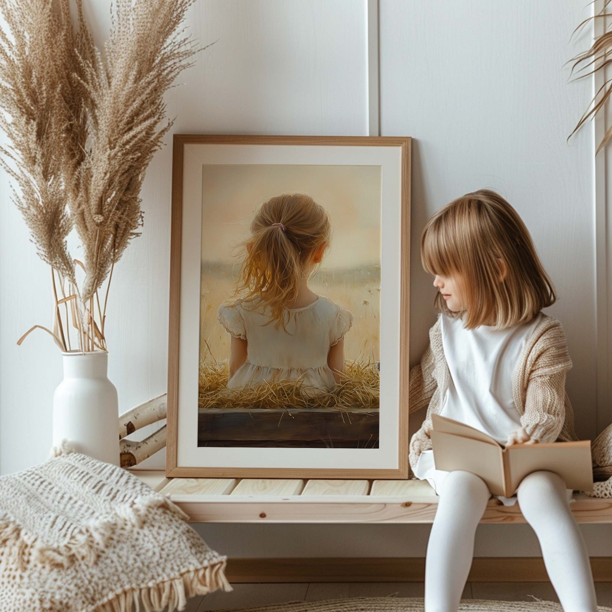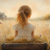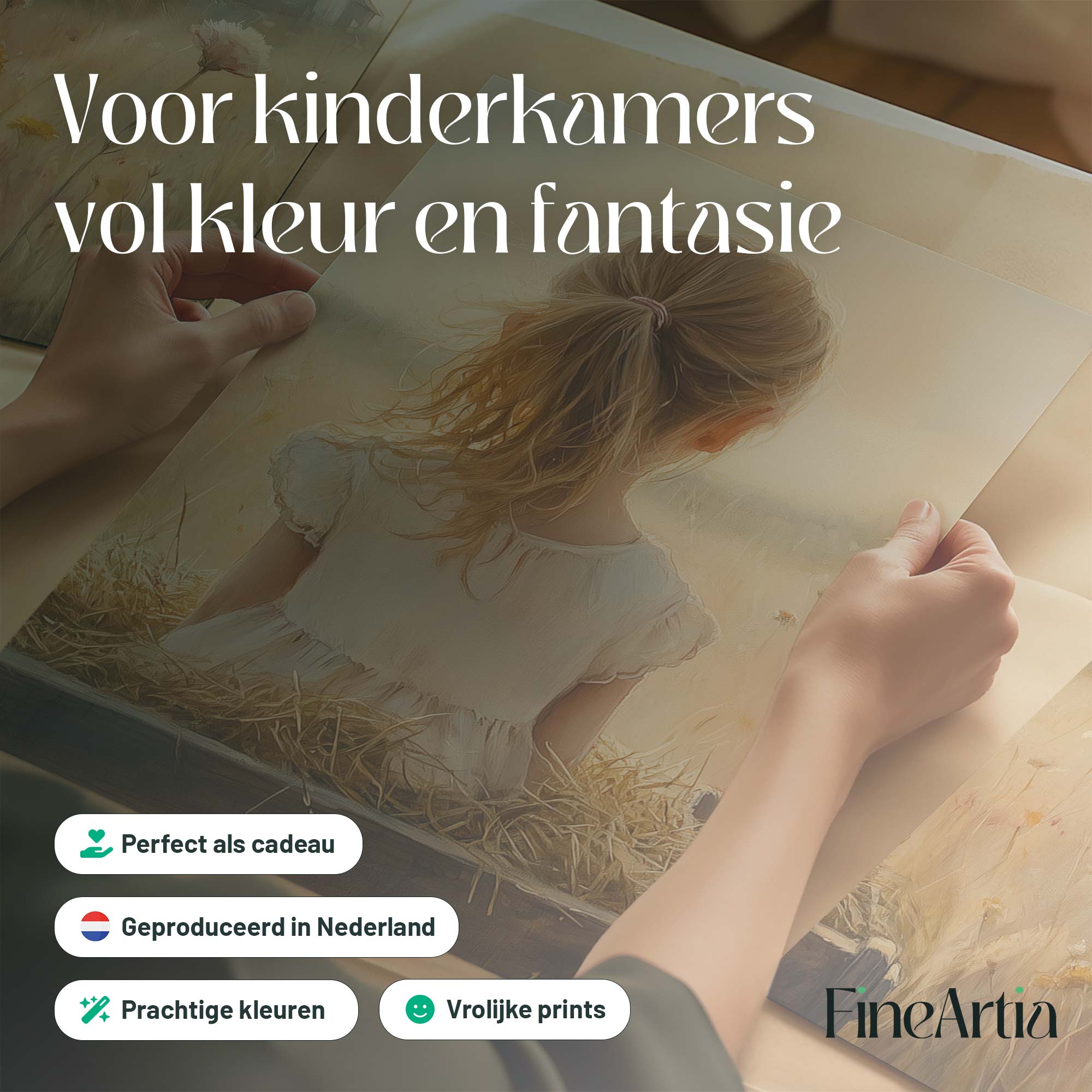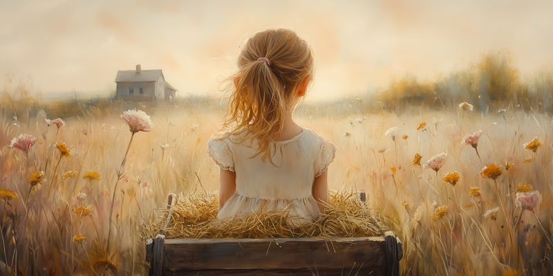 Zacht Pastel Meisje in Bloemenveld op Hooiwagen
