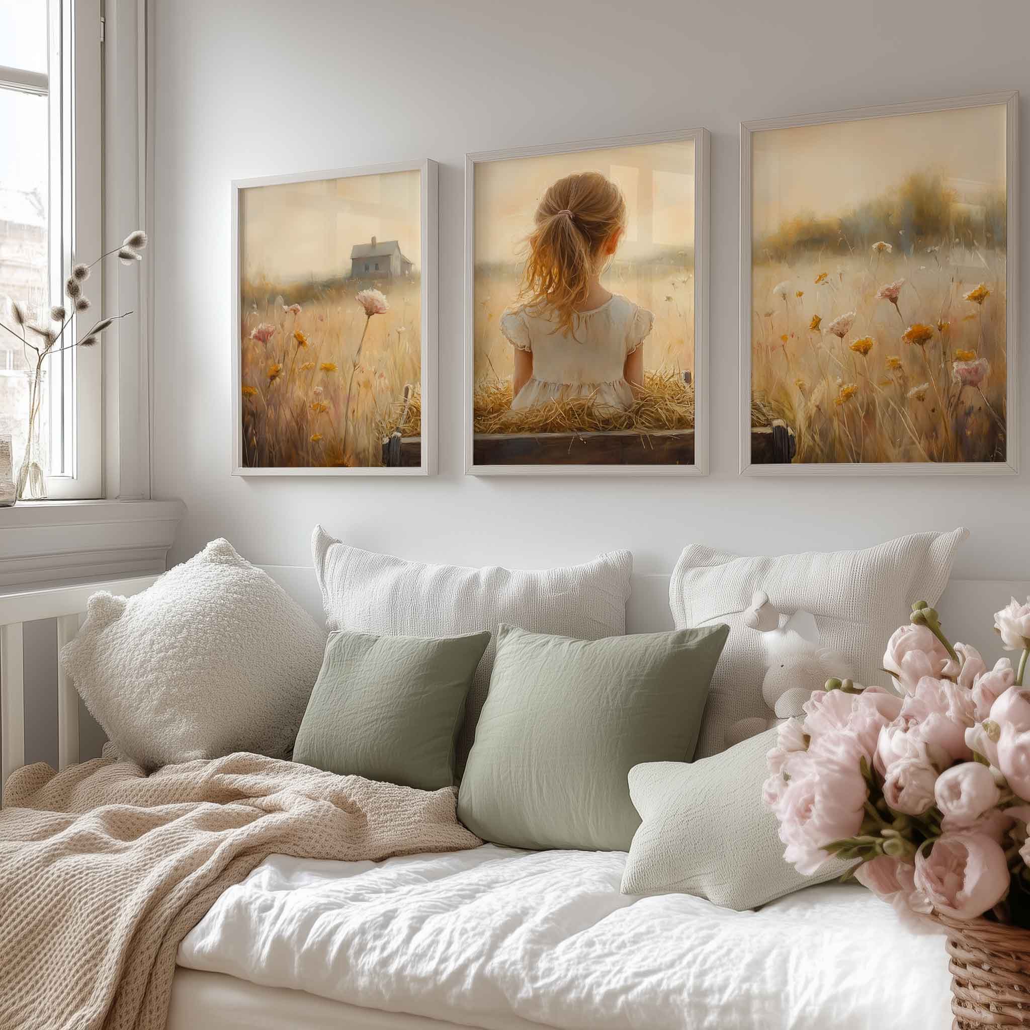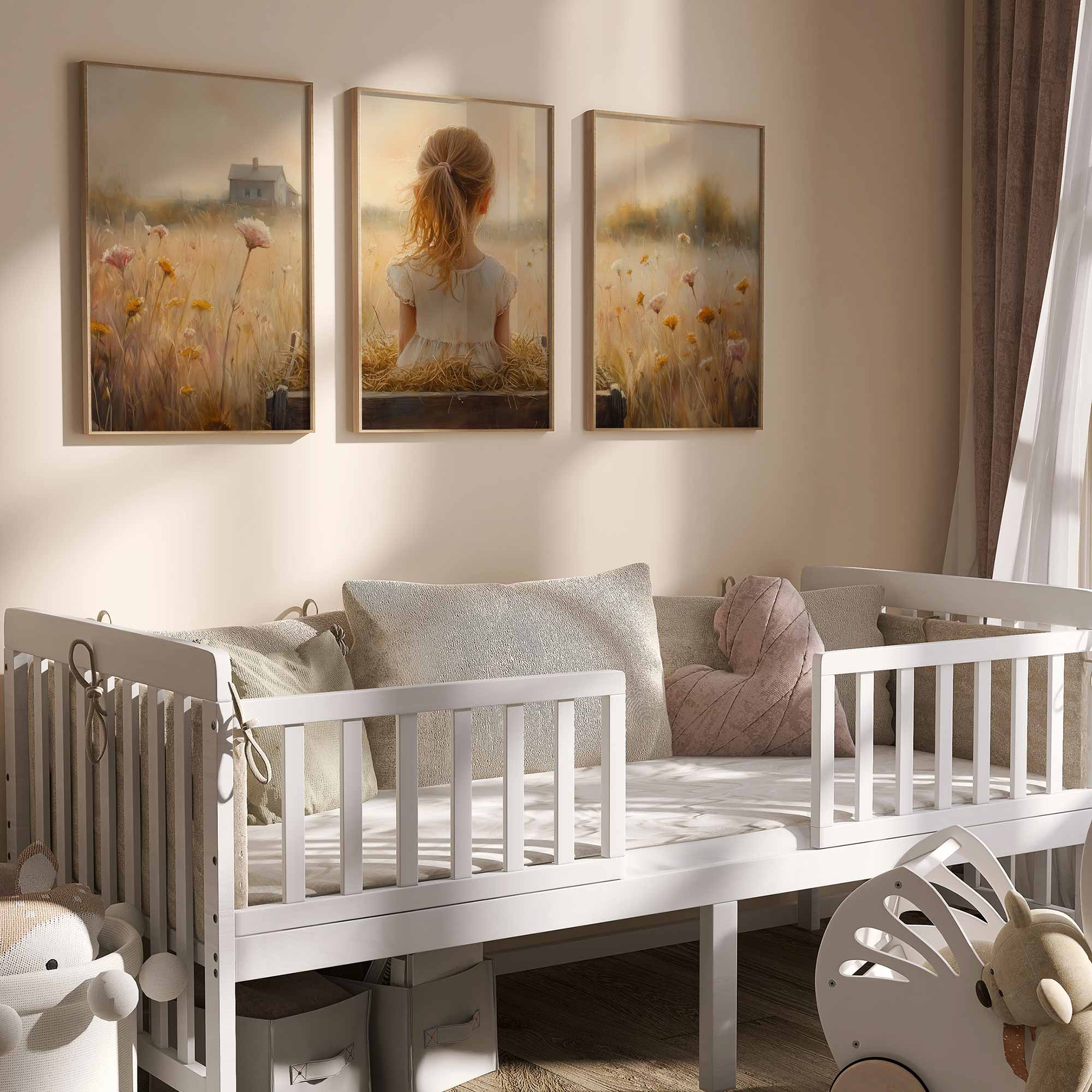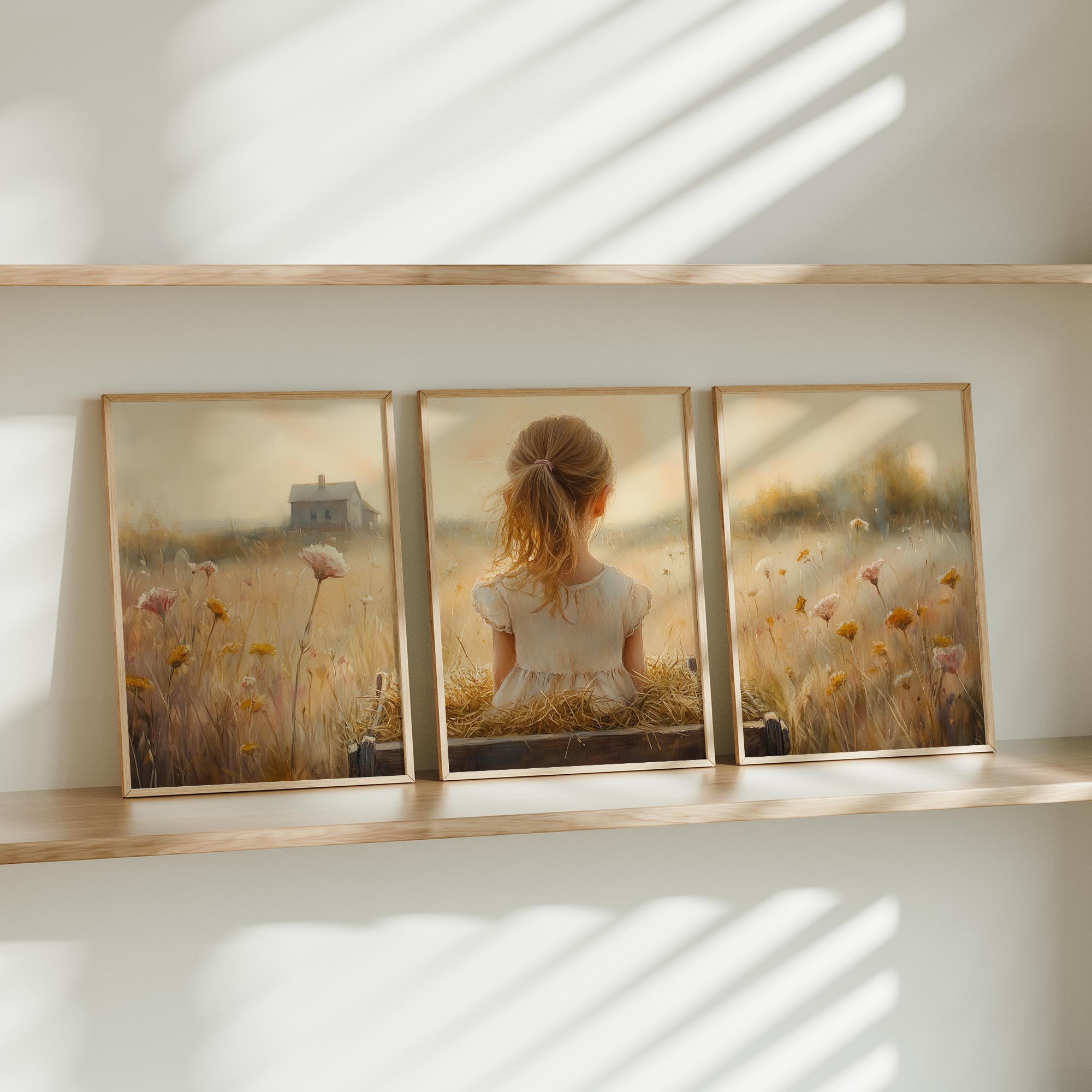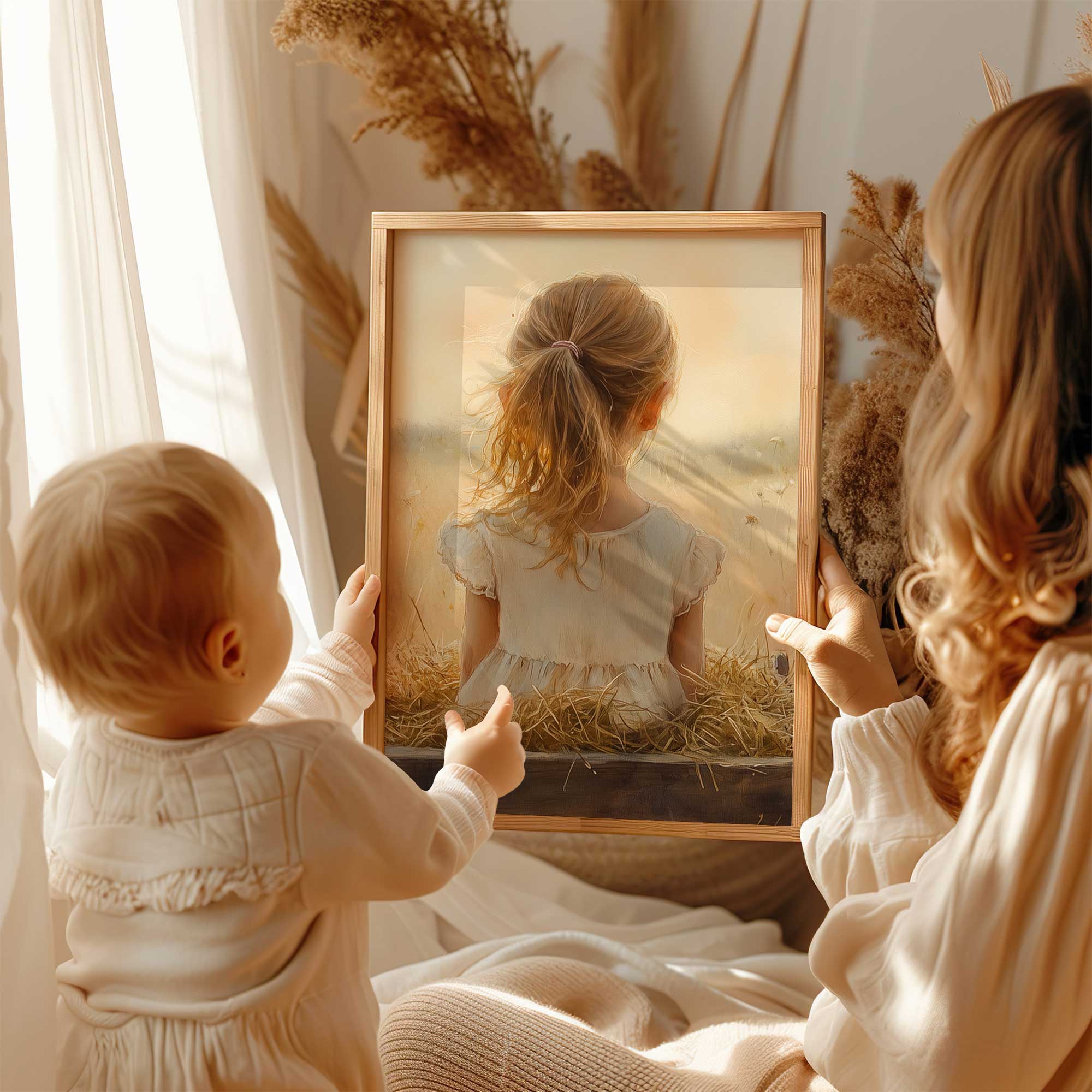 Zacht Pastel Meisje in Bloemenveld op Hooiwagen