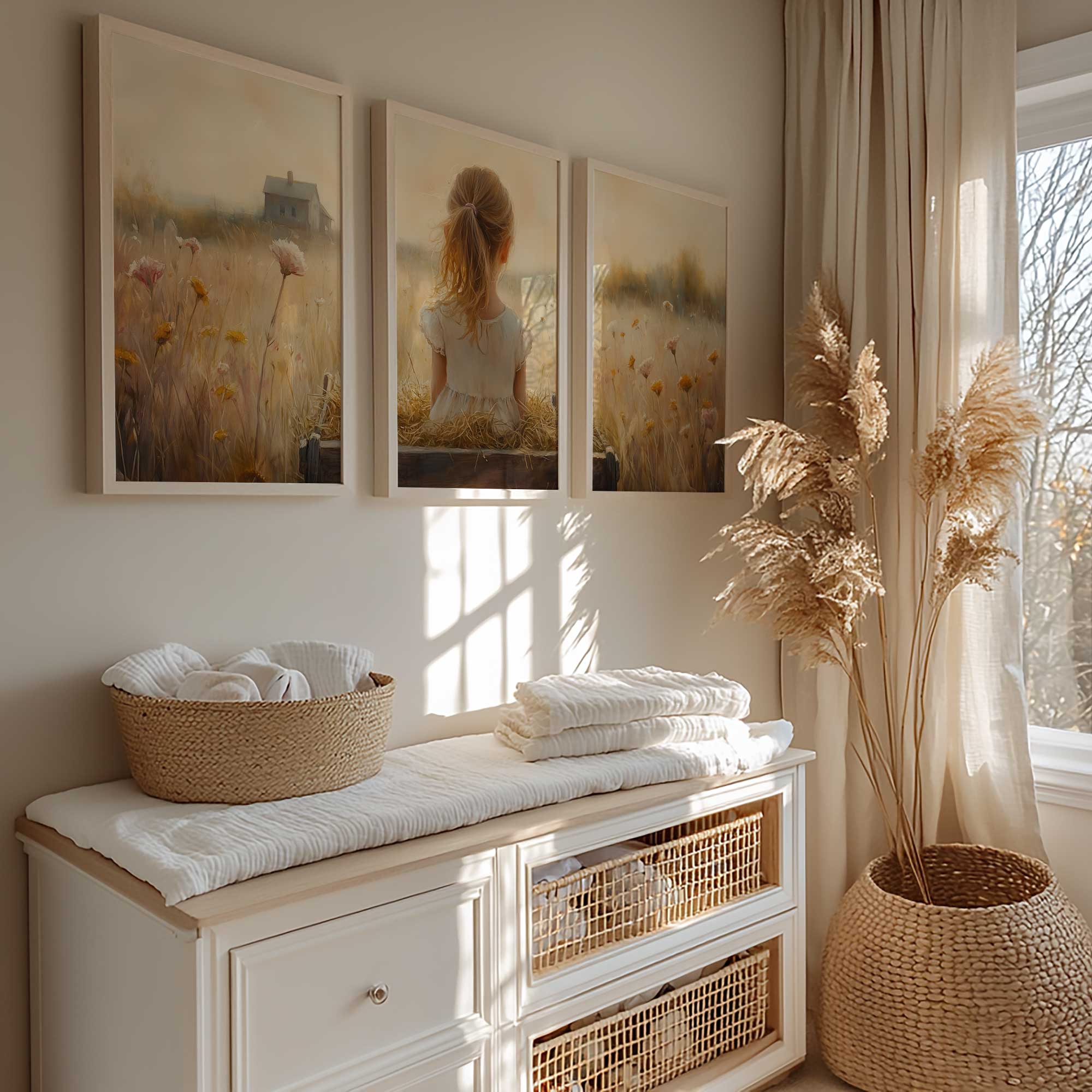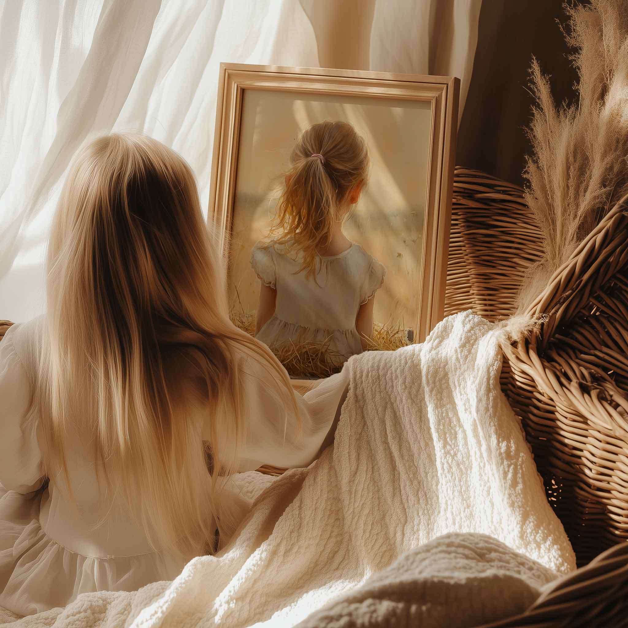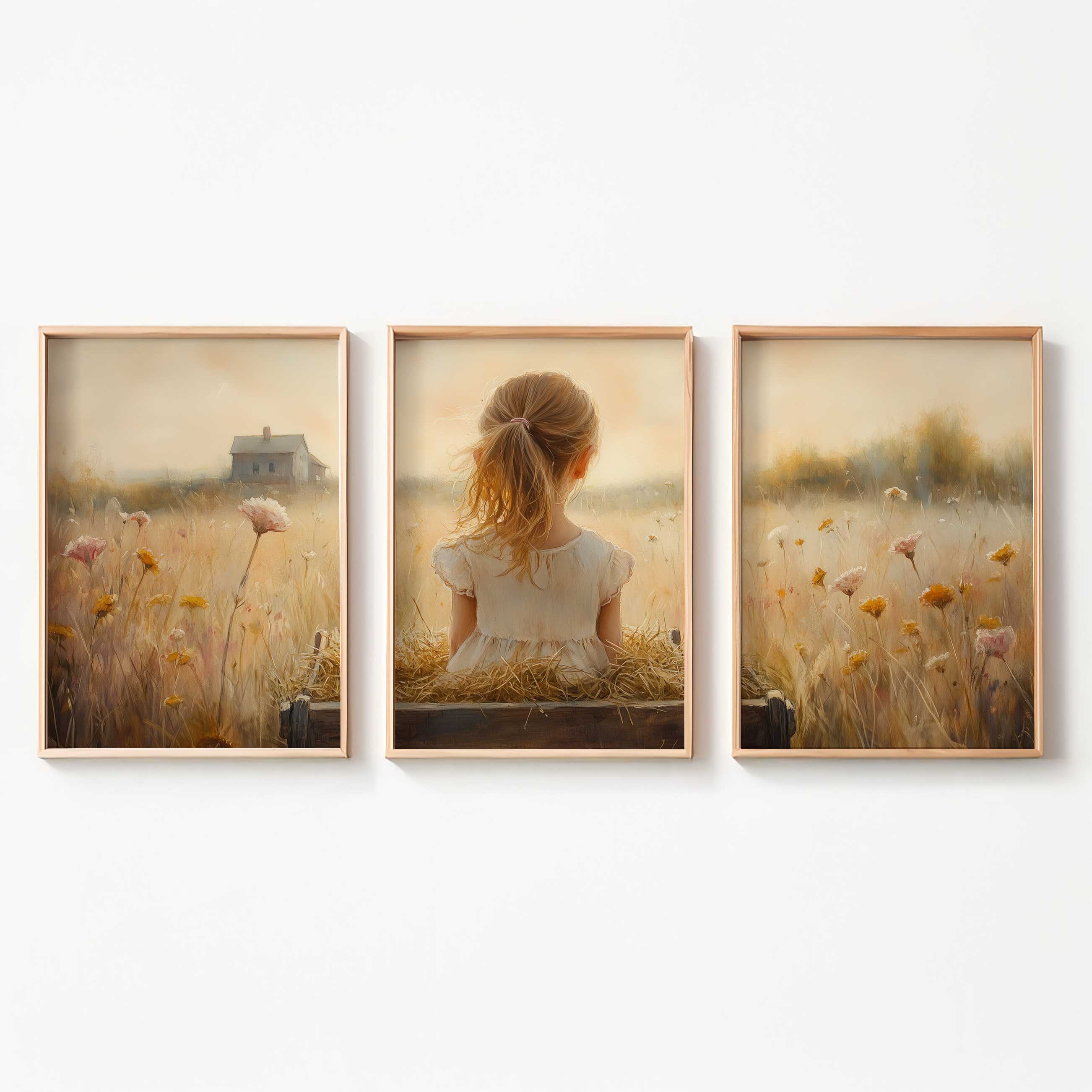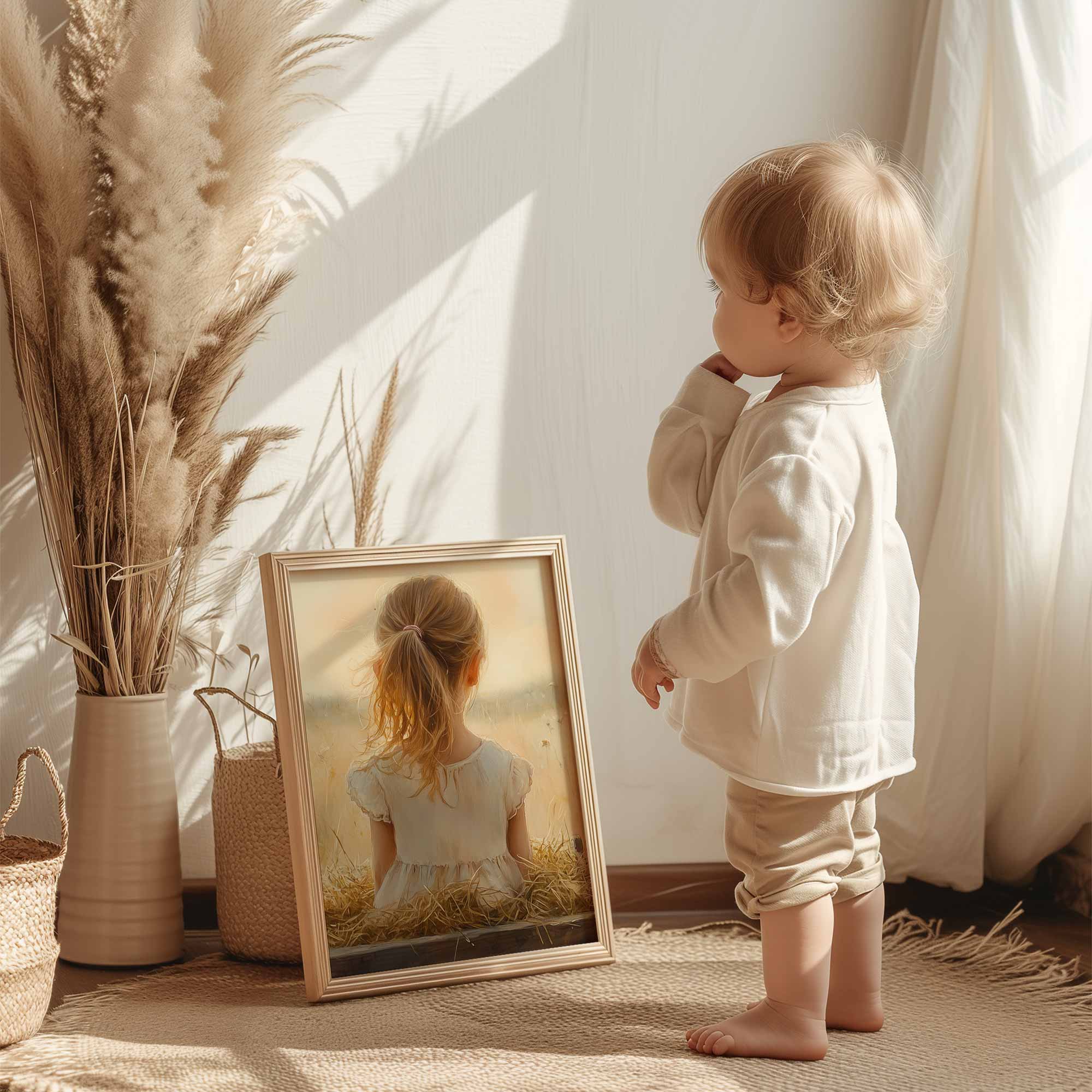 Zacht Pastel Meisje in Bloemenveld op Hooiwagen
