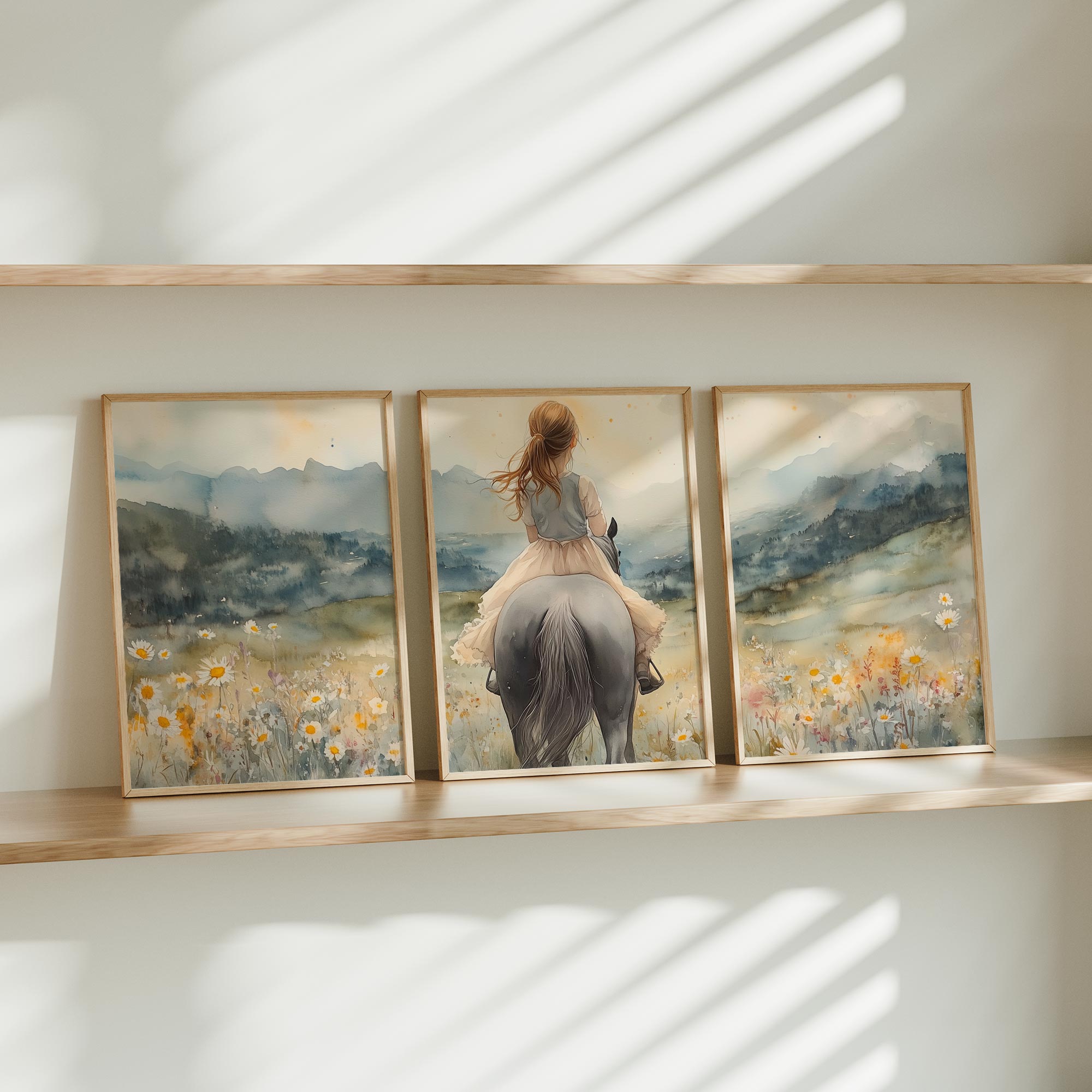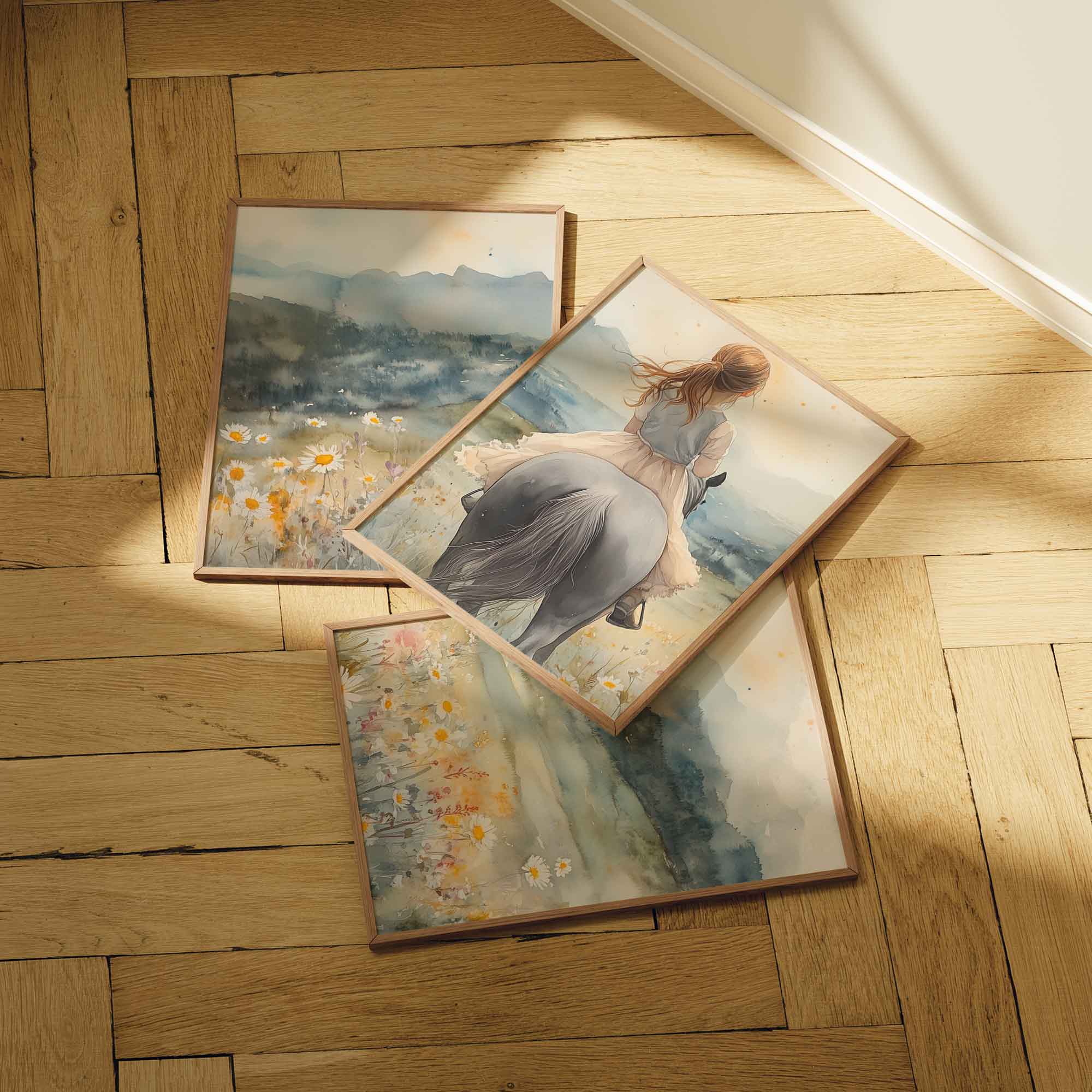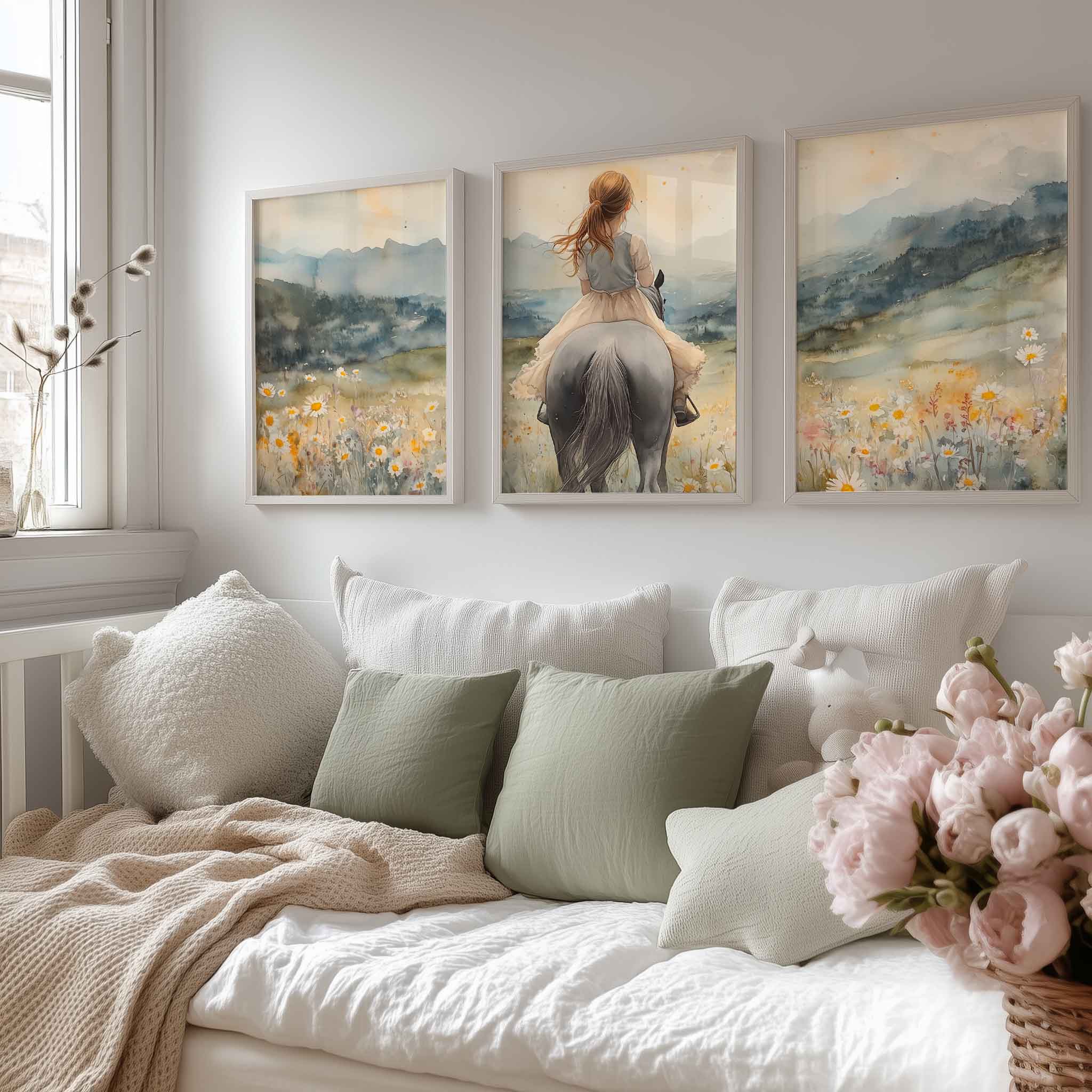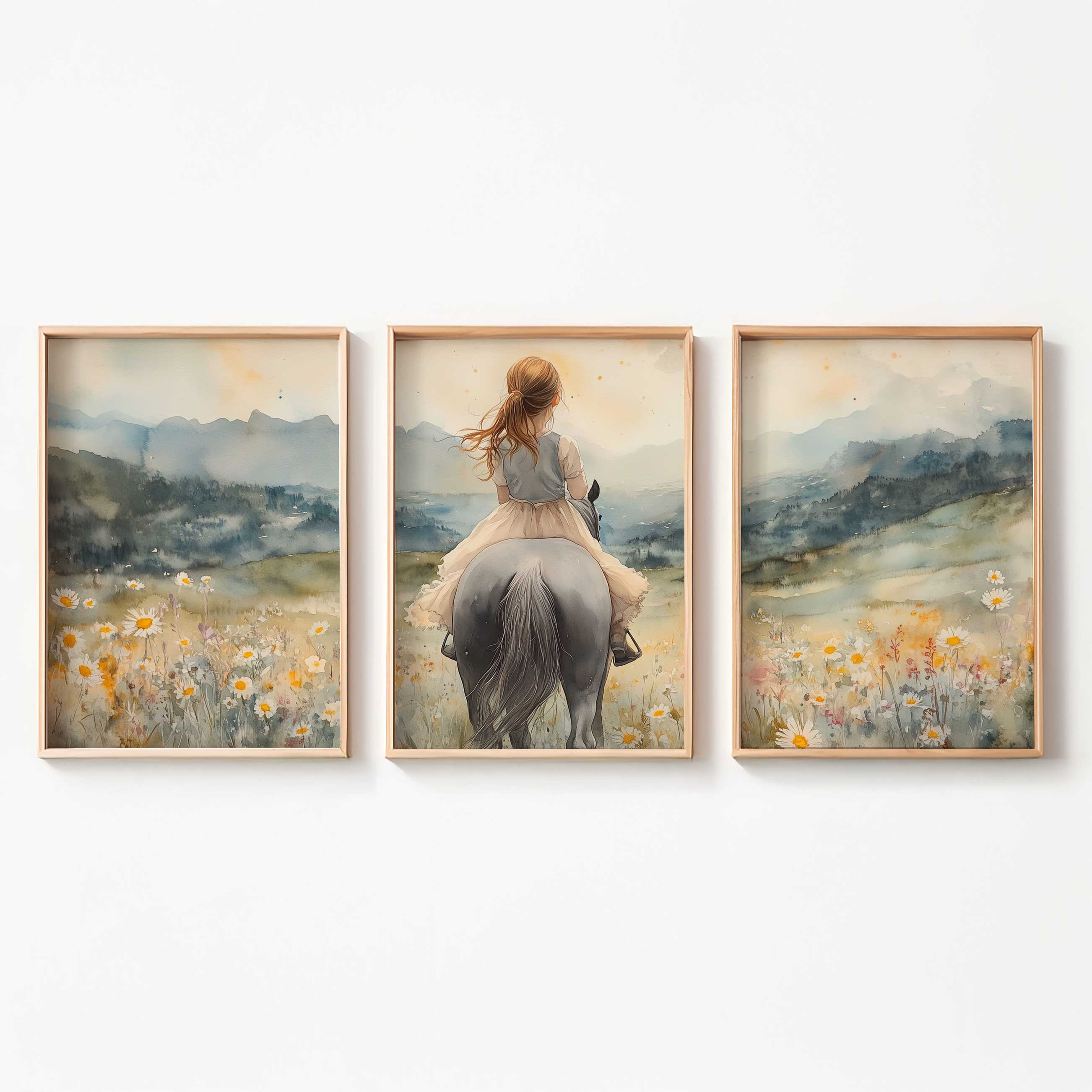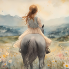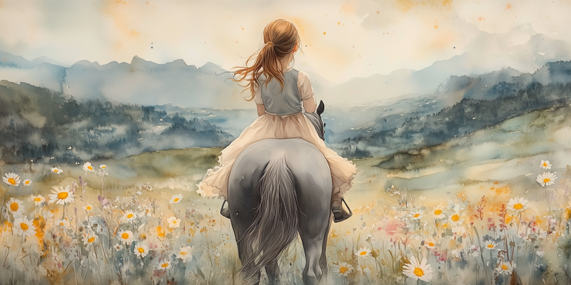 Zacht Pastel Meisje op Paard in Bloemenveld