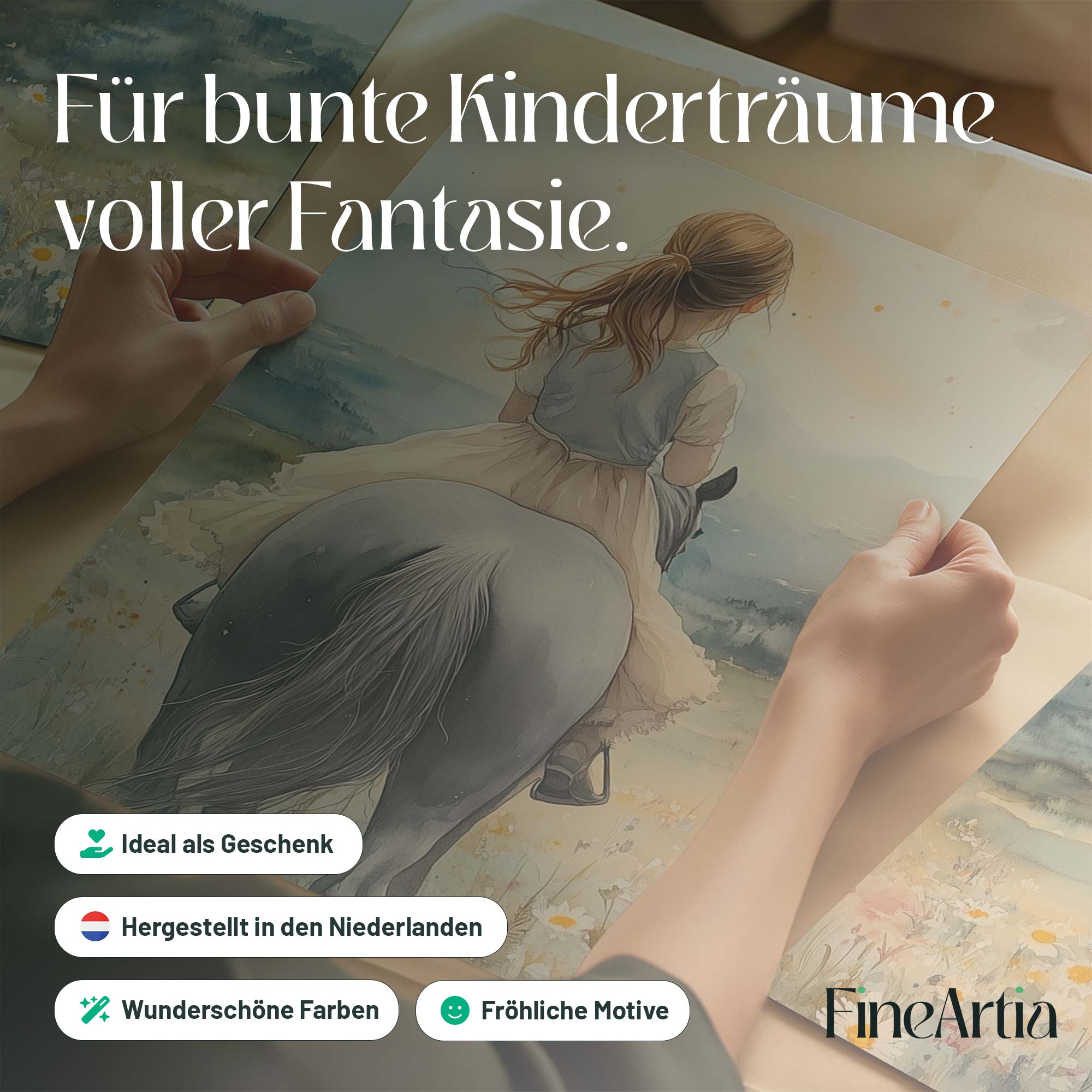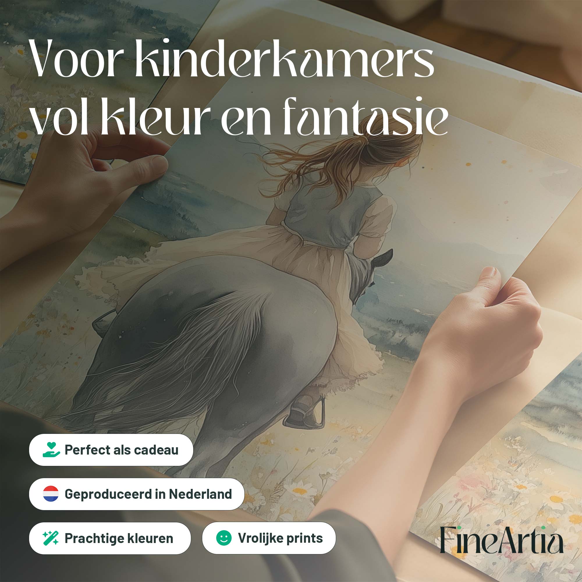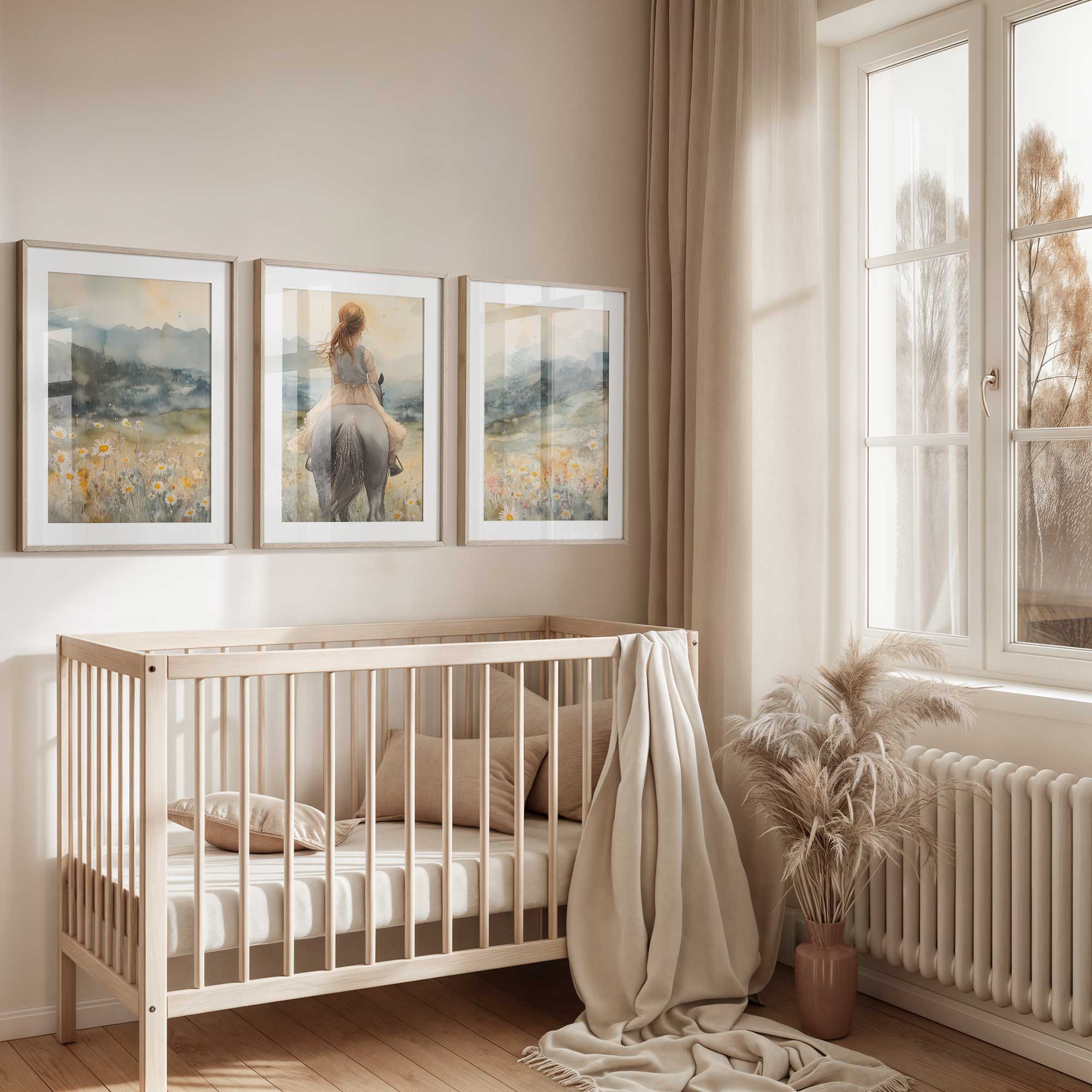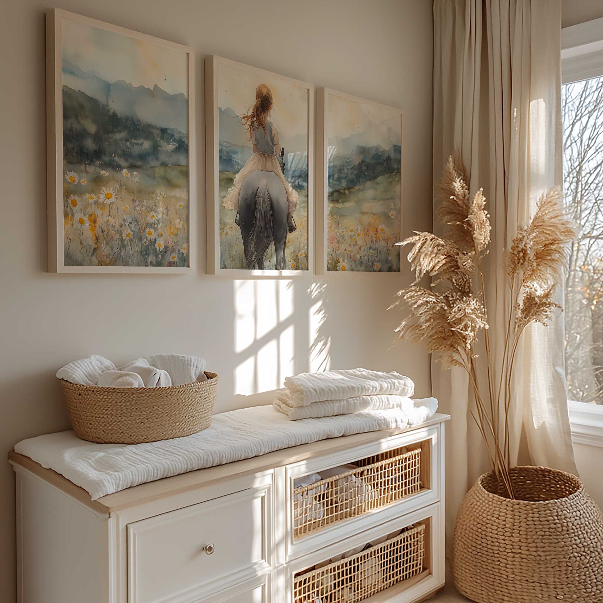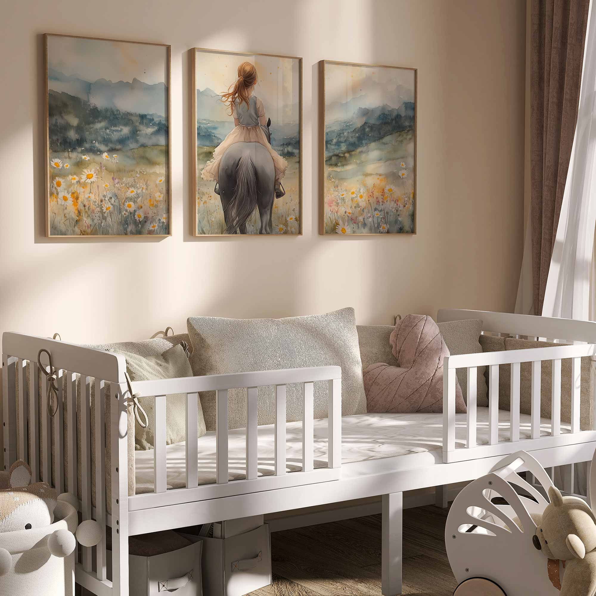 Zacht Pastel Meisje op Paard in Bloemenveld
