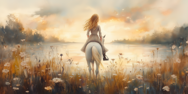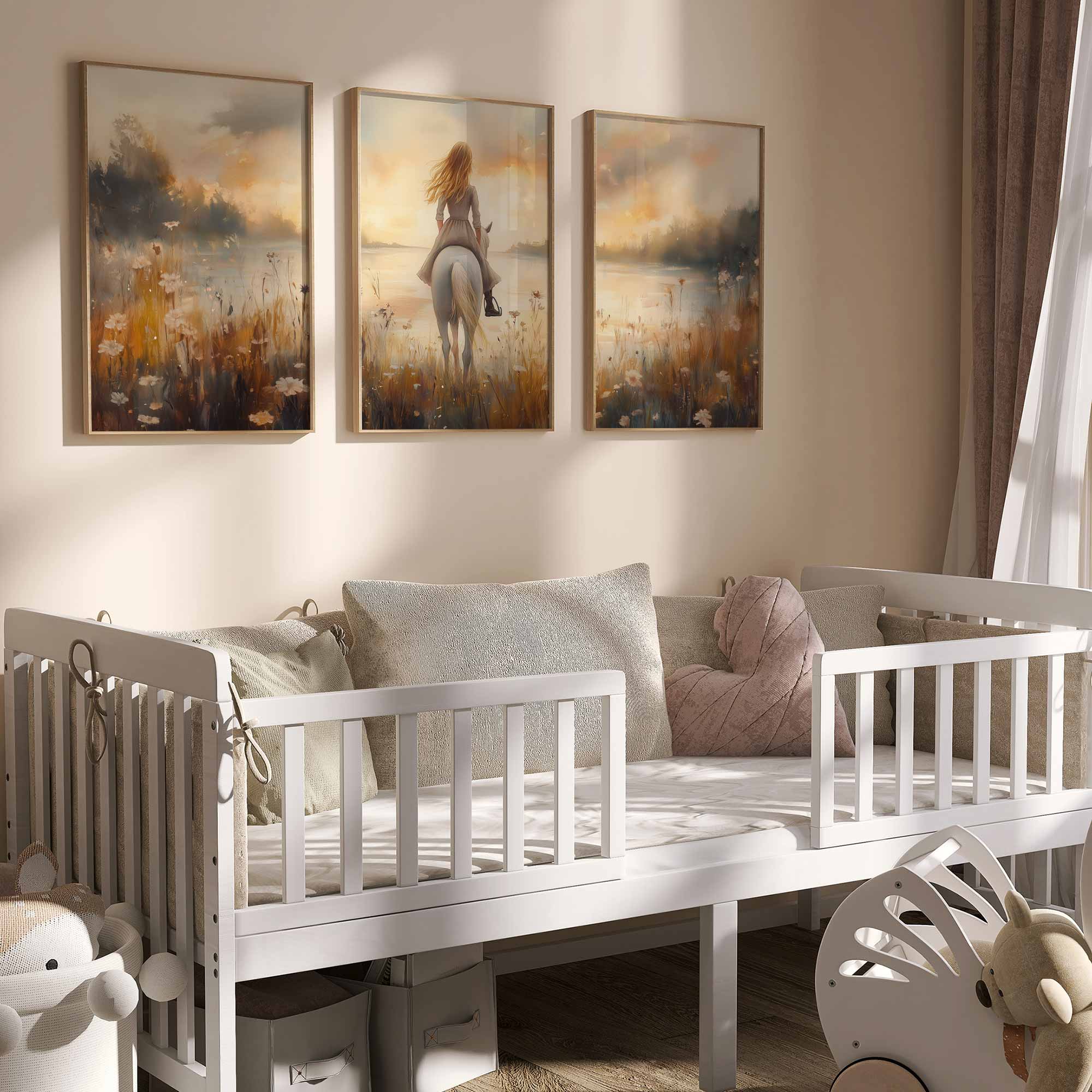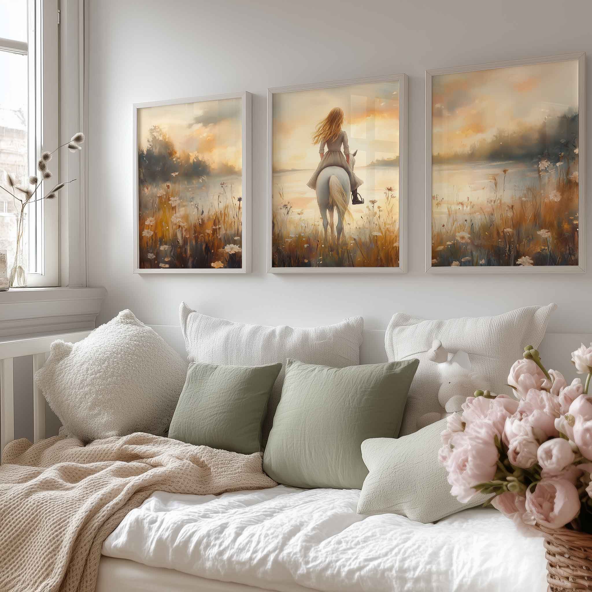 Zacht Pastel Paard in Bloemenveld voor Meisjes