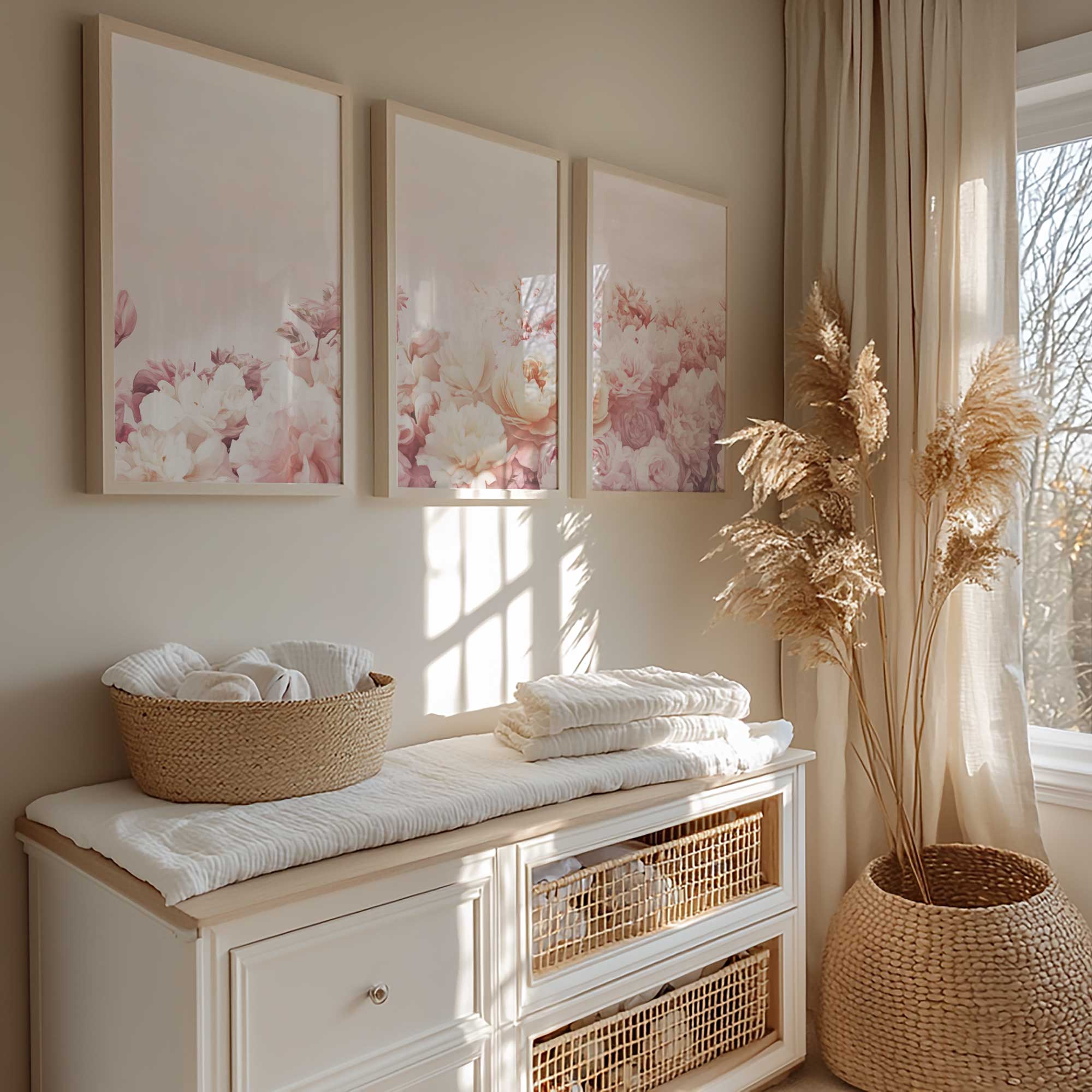 Zacht Roze Bloemenpracht – Stijlvolle Wanddecoratie