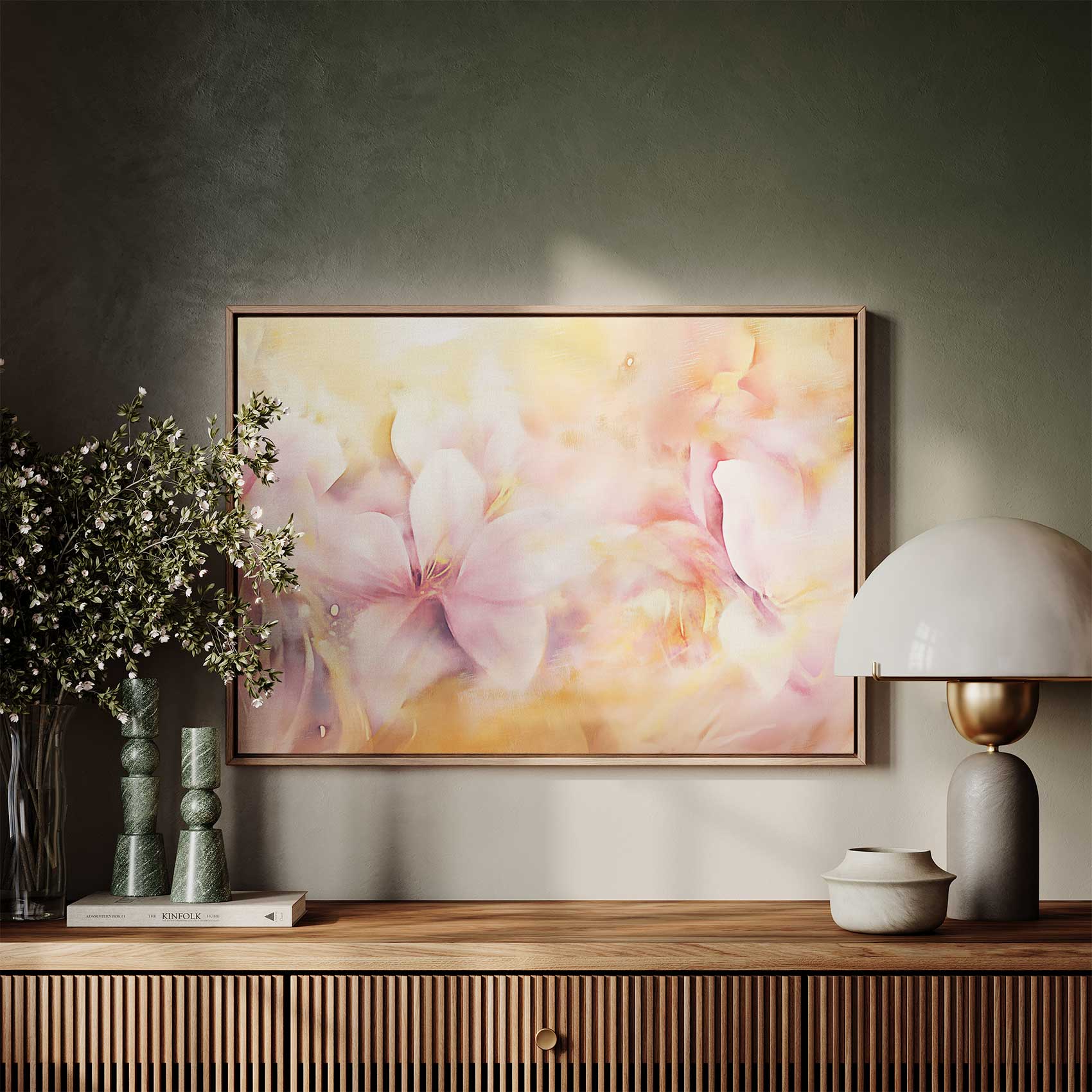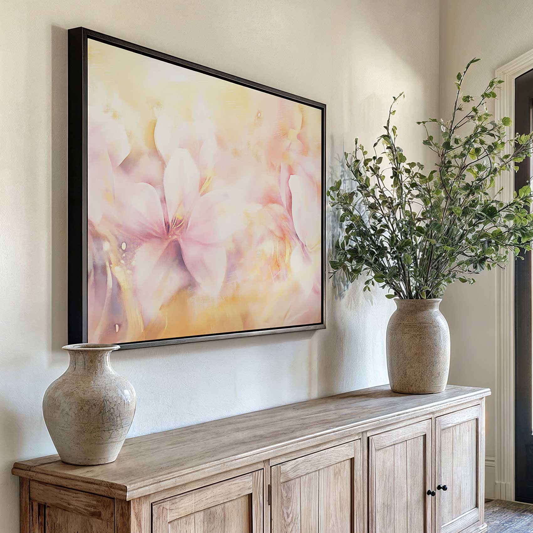 Terug naar collectie Canvas Zacht roze bloemenveld
