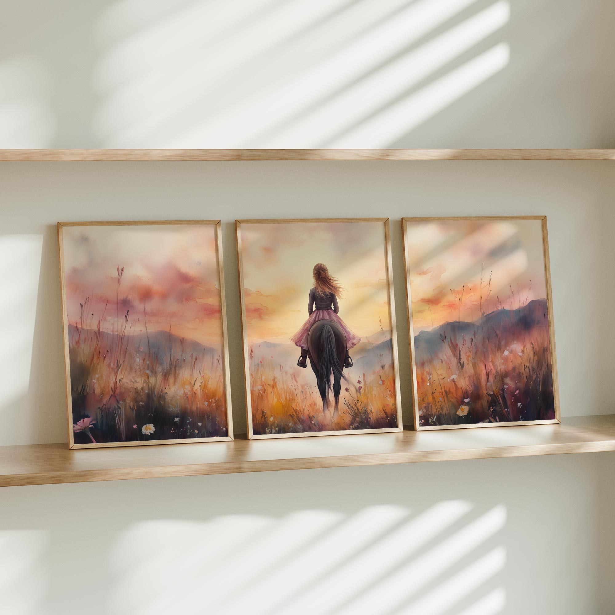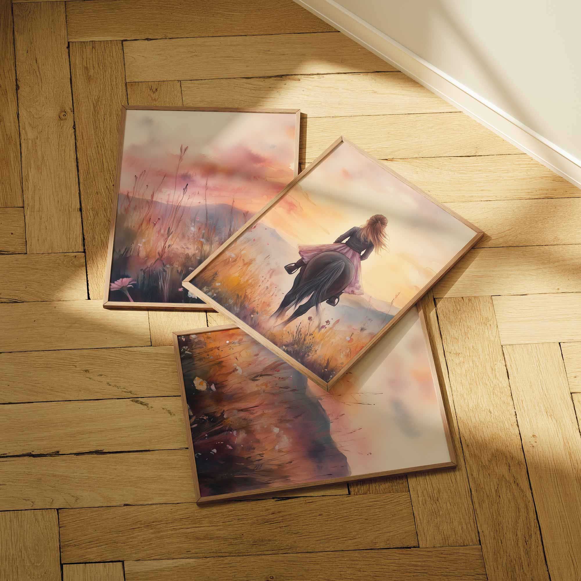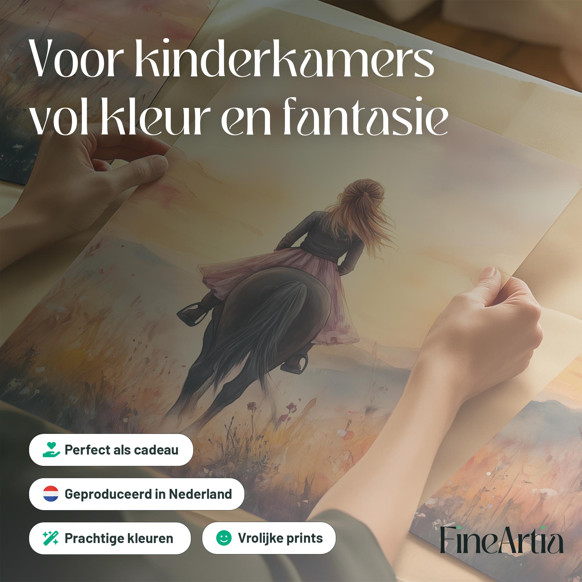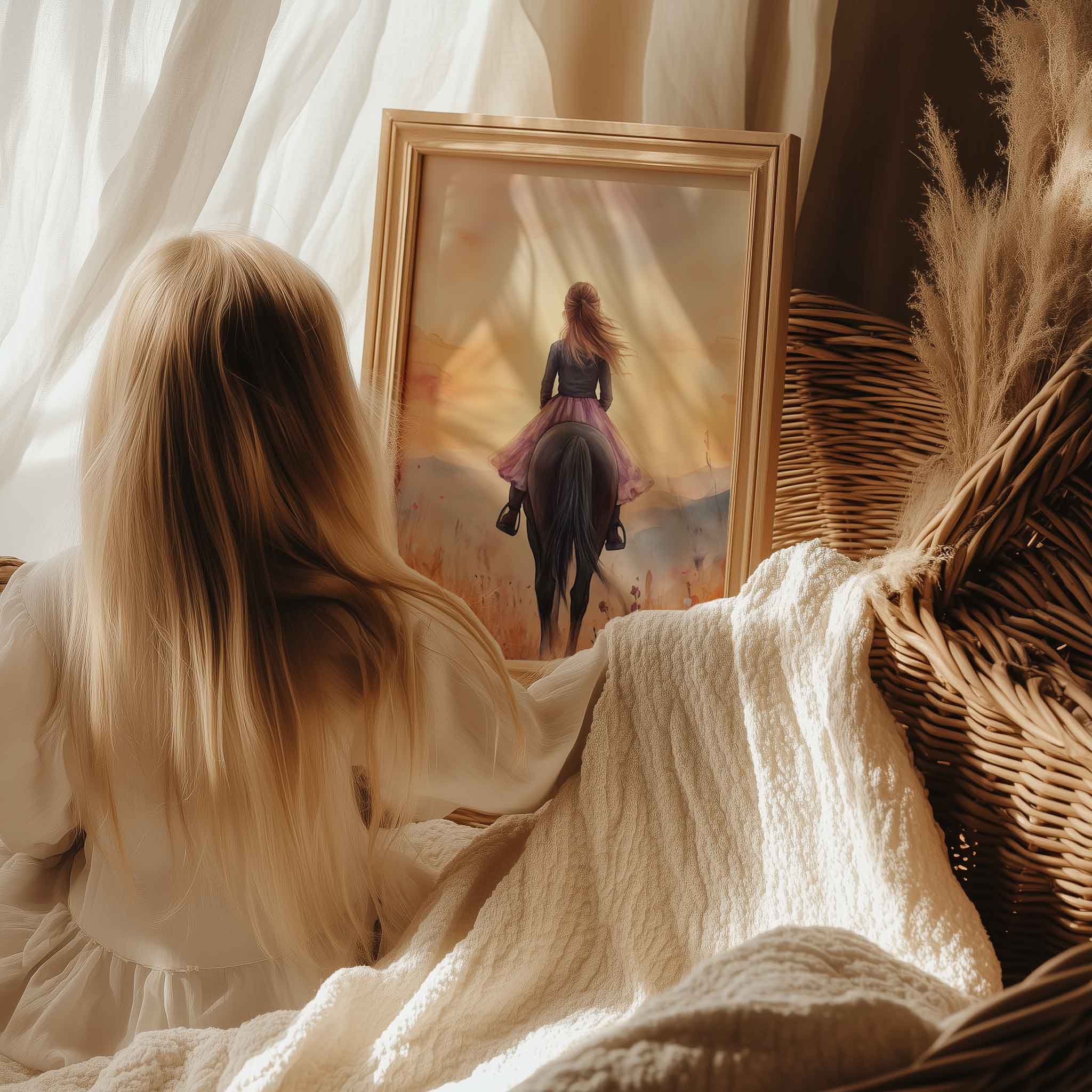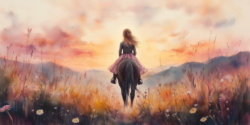 Zacht Roze Droom: Vrouw te Paard in Bloemenveld